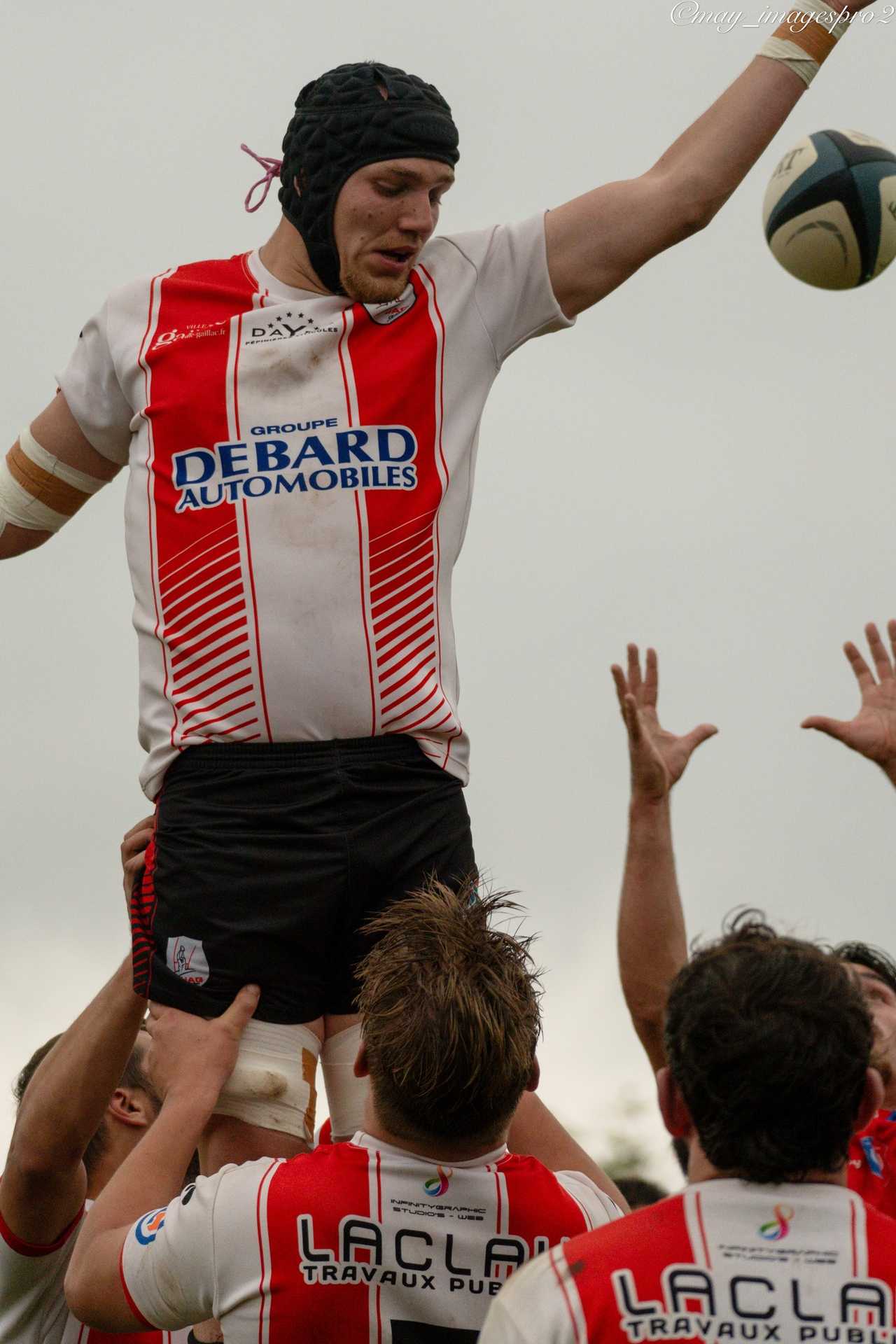 Thomas Breton, notre pilier droit, trouve la faille après plusieurs charges bien senties, dans le sillage d’un énorme Sandrick Maciotta. 19-16 à la 53′. Une percée de Victor Renaud aurait pu alourdir la marque quelques minutes plus tard, mais le ballon file à côté.