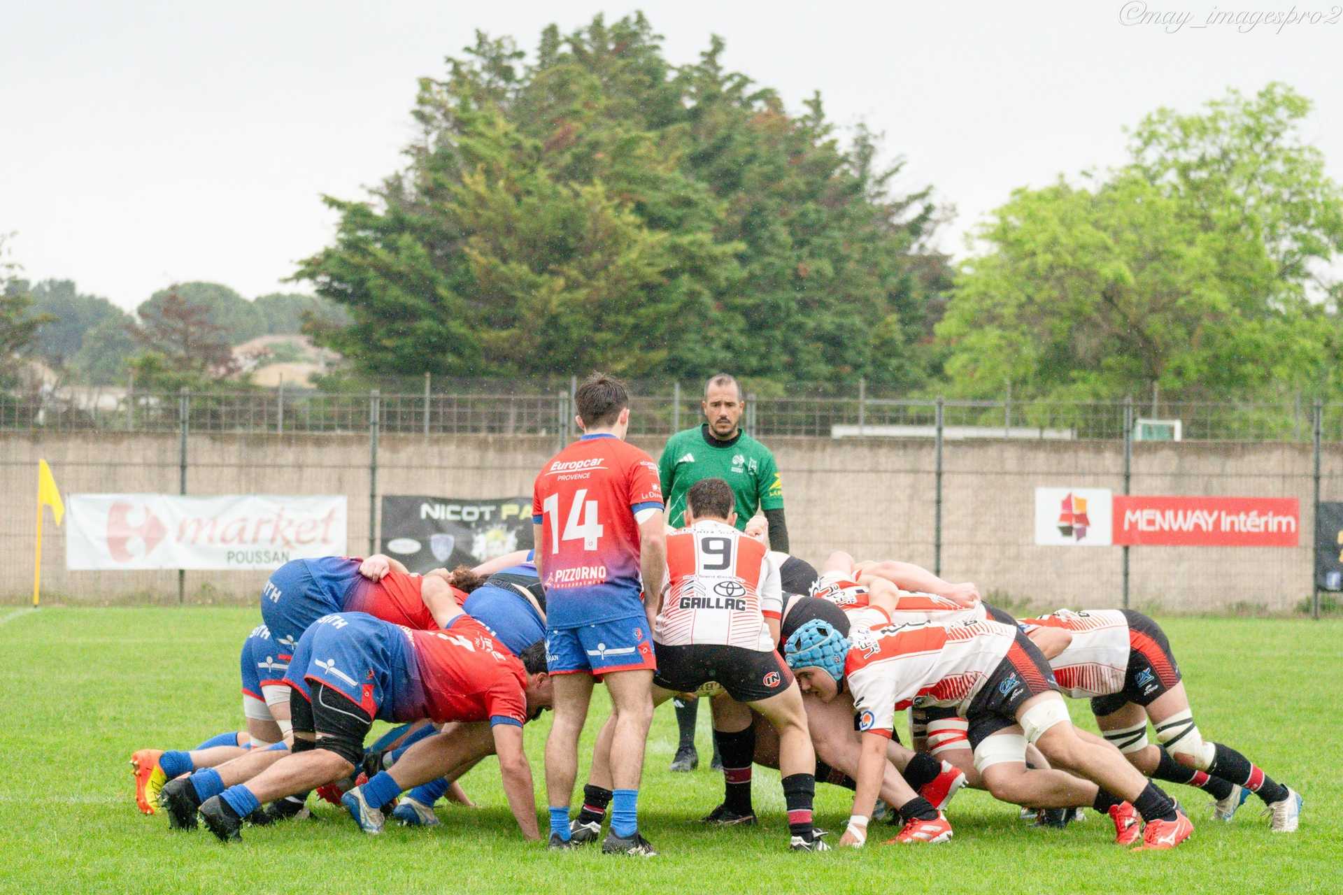 Dès le début du match, nos Gaillacois posent leur jeu, imposent leur rythme, tiennent le ballon et dominent les phases de conquête. Nos avants font le travail, en mêlée, dans les rucks…