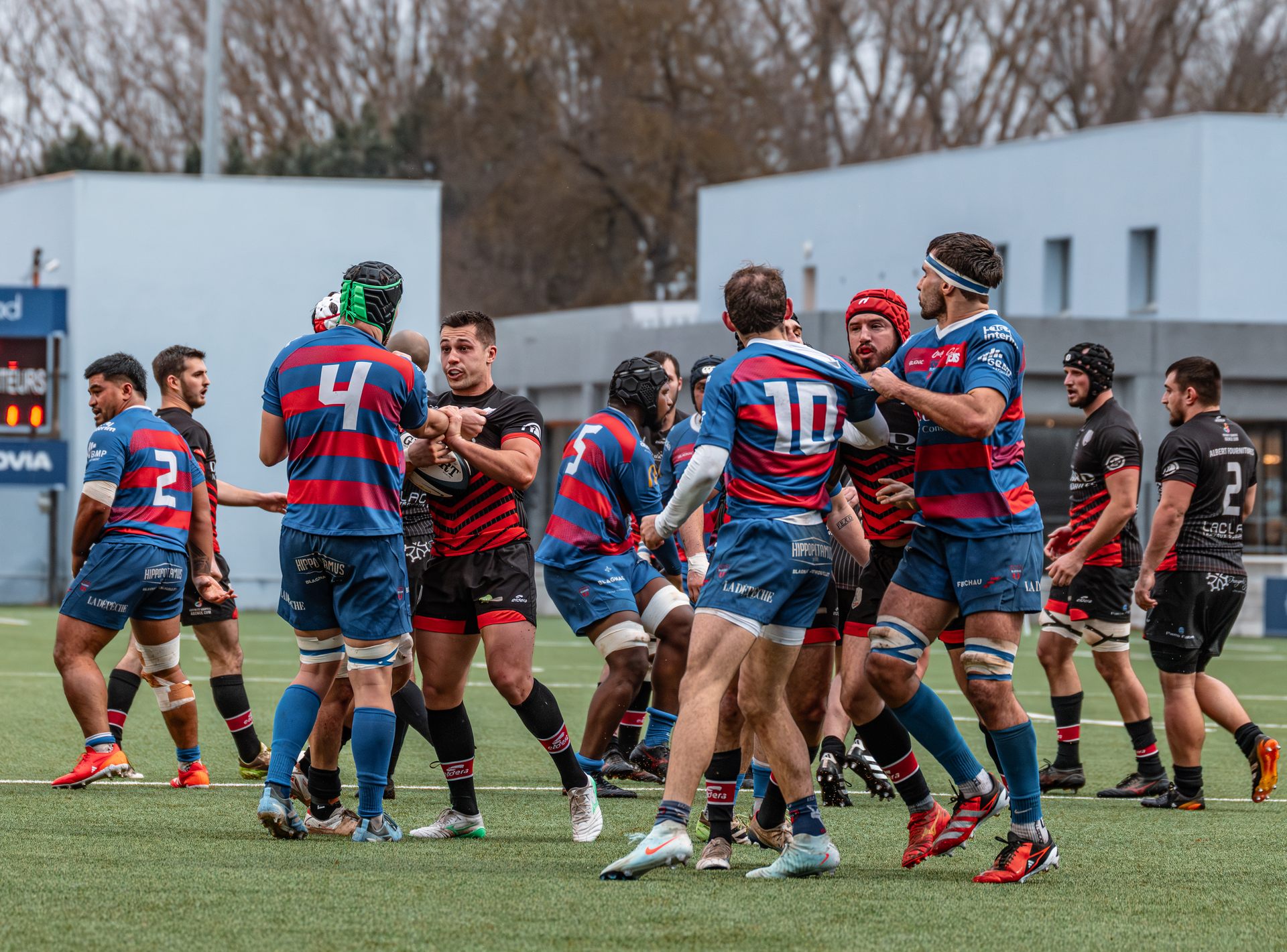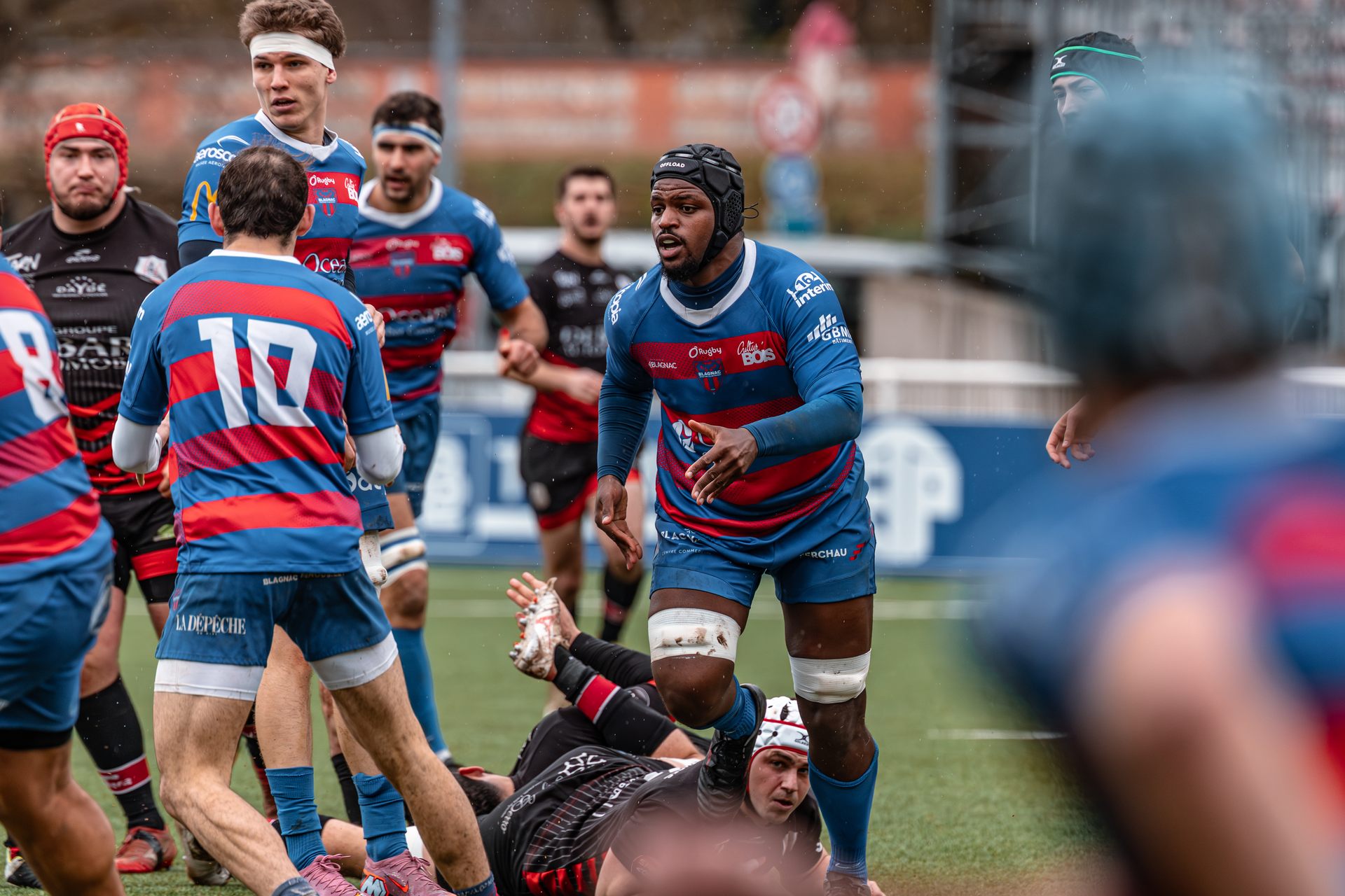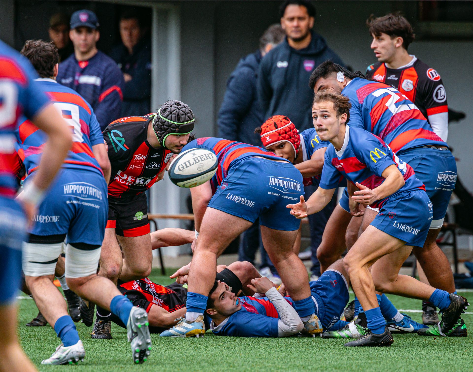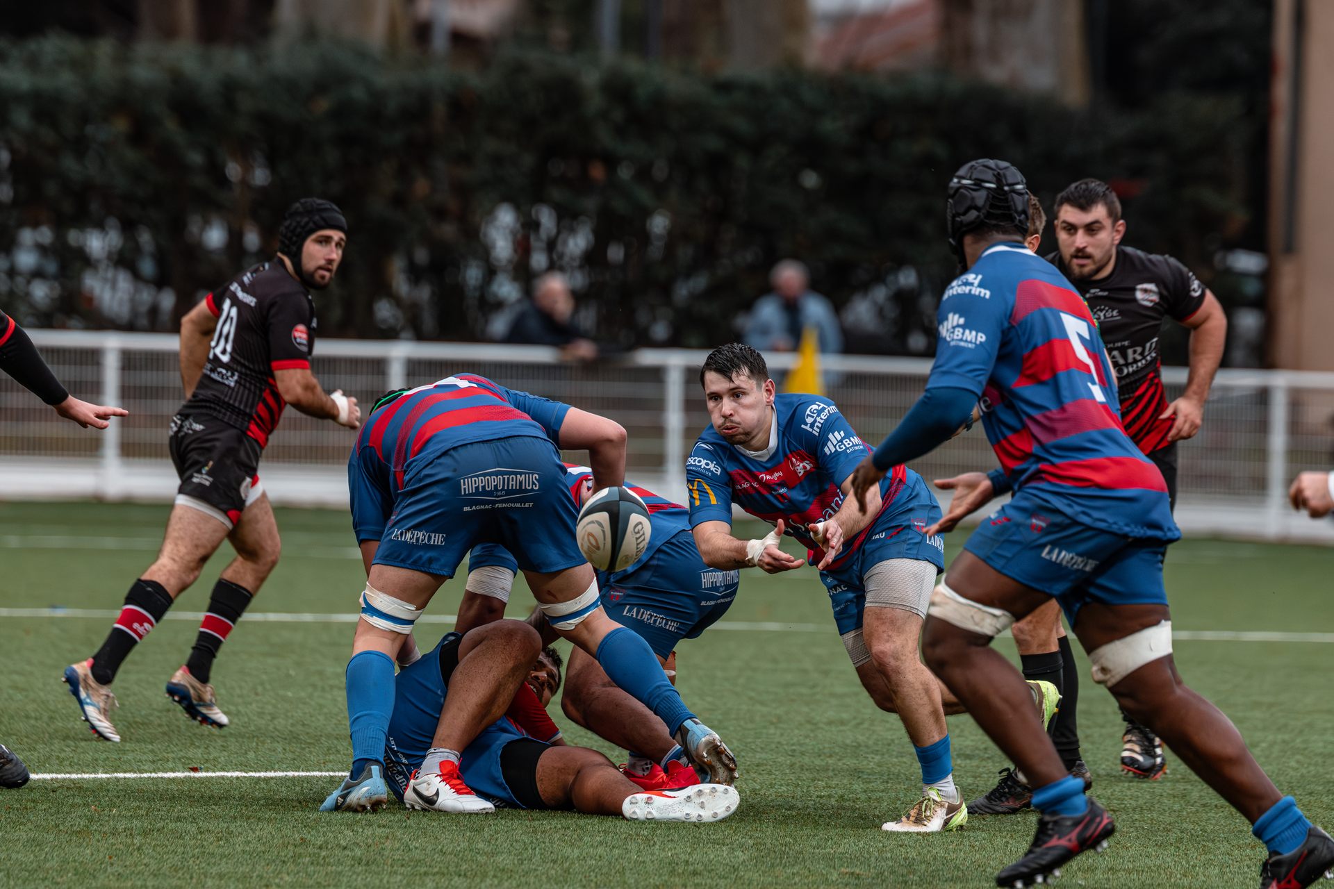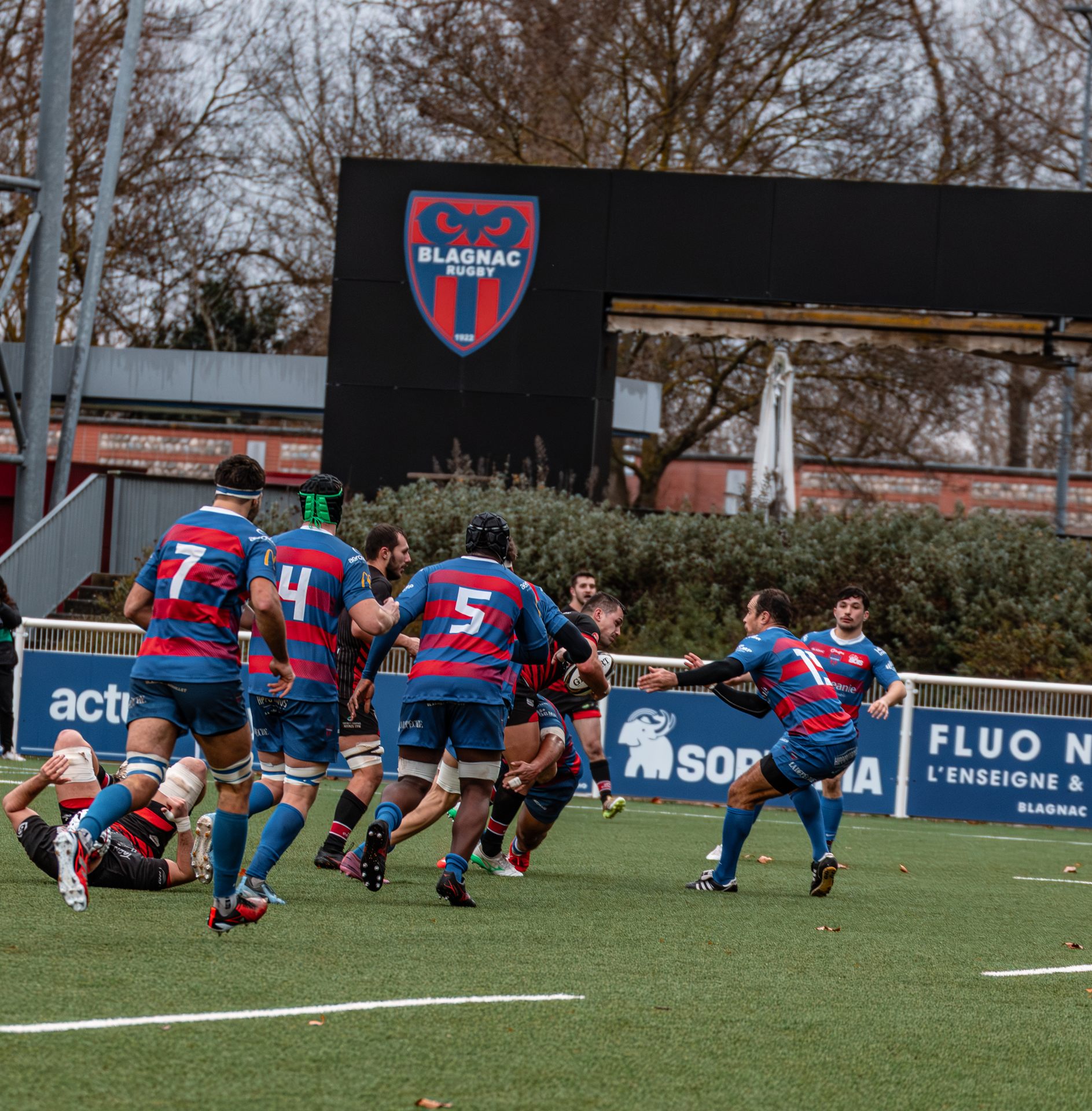 Direction Blagnac, un déplacement toujours compliqué, sur un terrain synthétique rendu glissant par la pluie, où la maîtrise, la discipline et la gestion des temps forts allaient être déterminantes. Les rouges et noirs le savaient : rien ne serait donné.