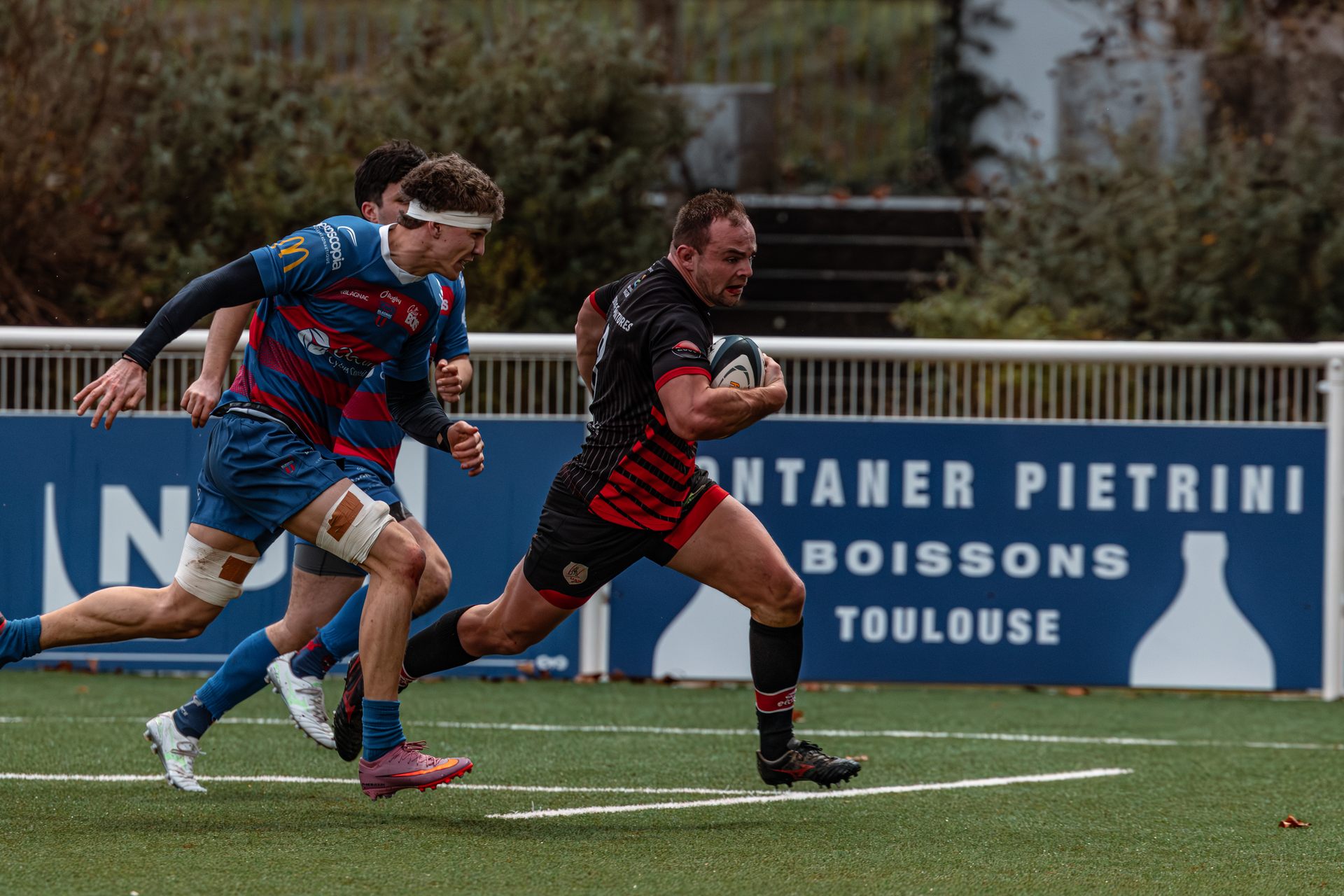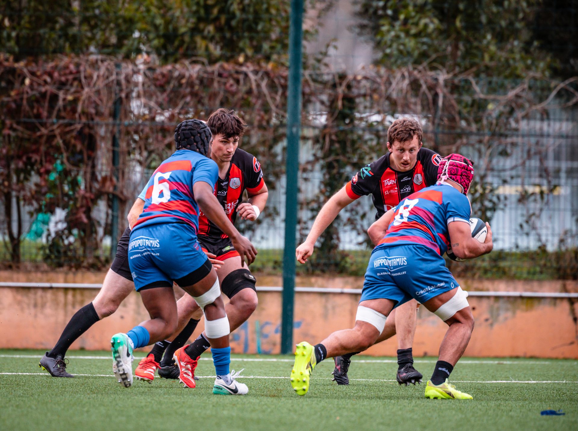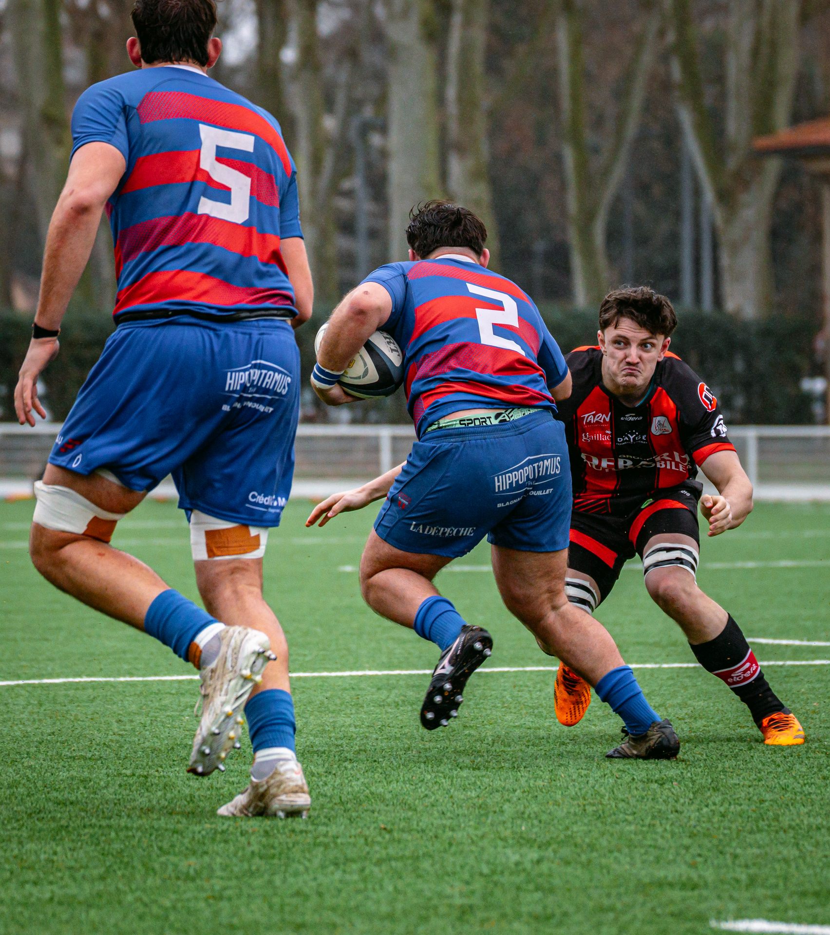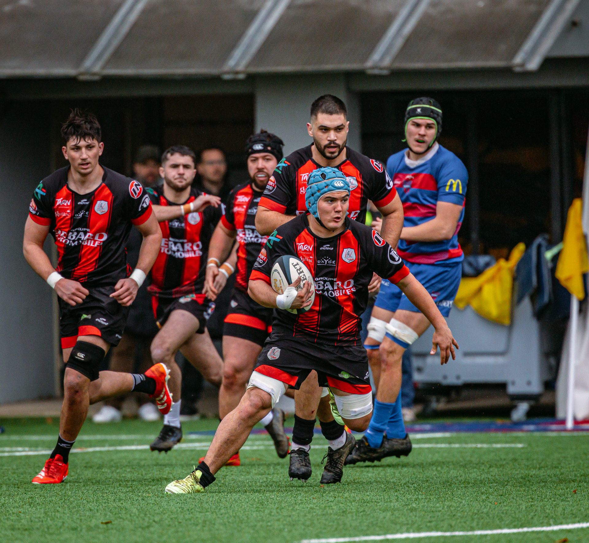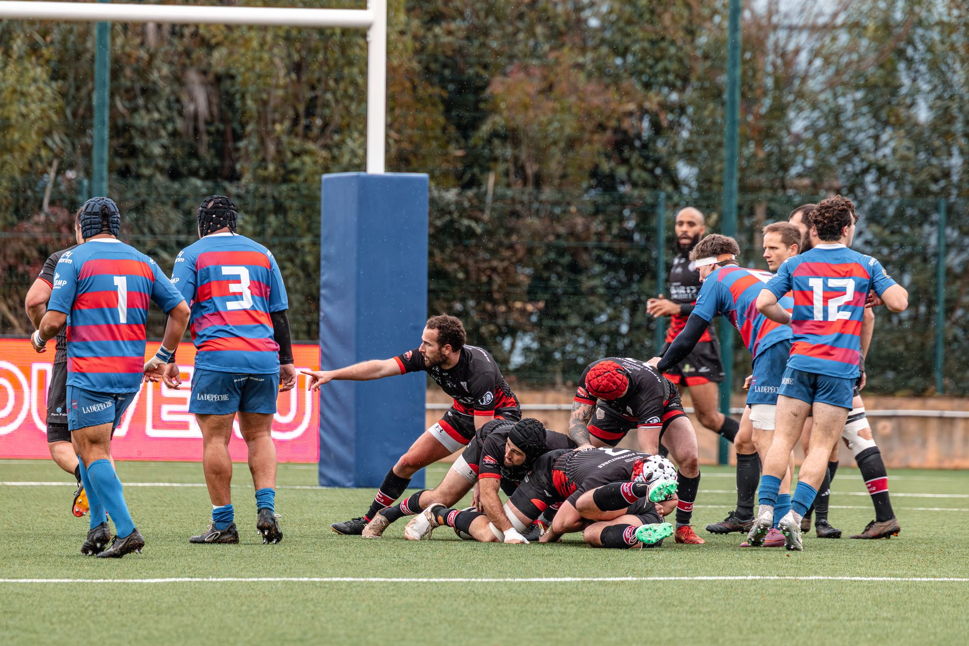 Direction Blagnac, un déplacement toujours compliqué, sur un terrain synthétique rendu glissant par la pluie, où la maîtrise, la discipline et la gestion des temps forts allaient être déterminantes. Les rouges et noirs le savaient : rien ne serait donné.