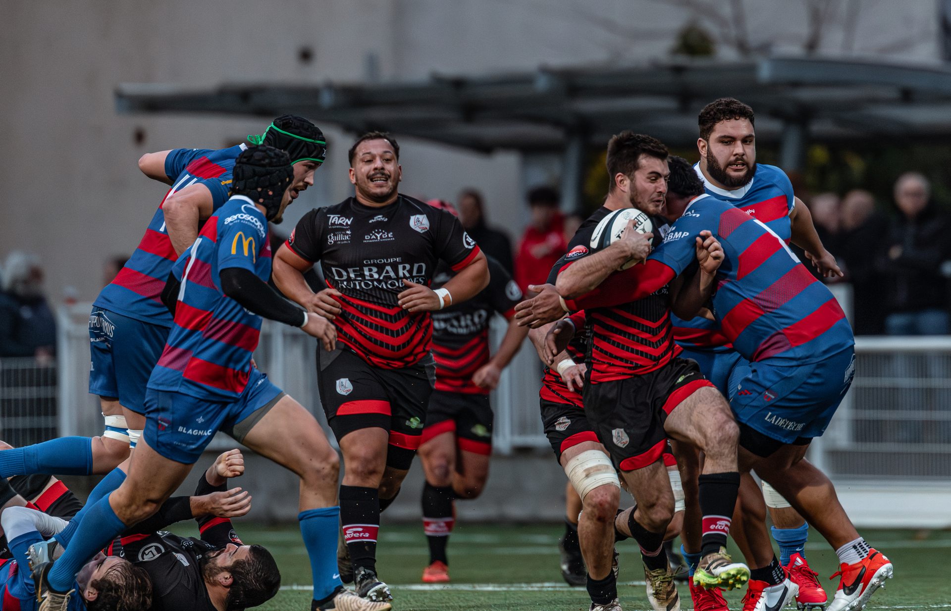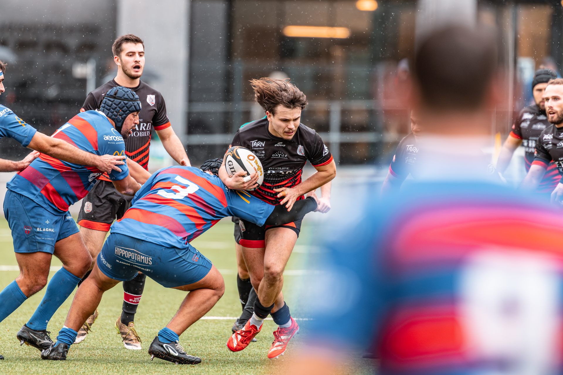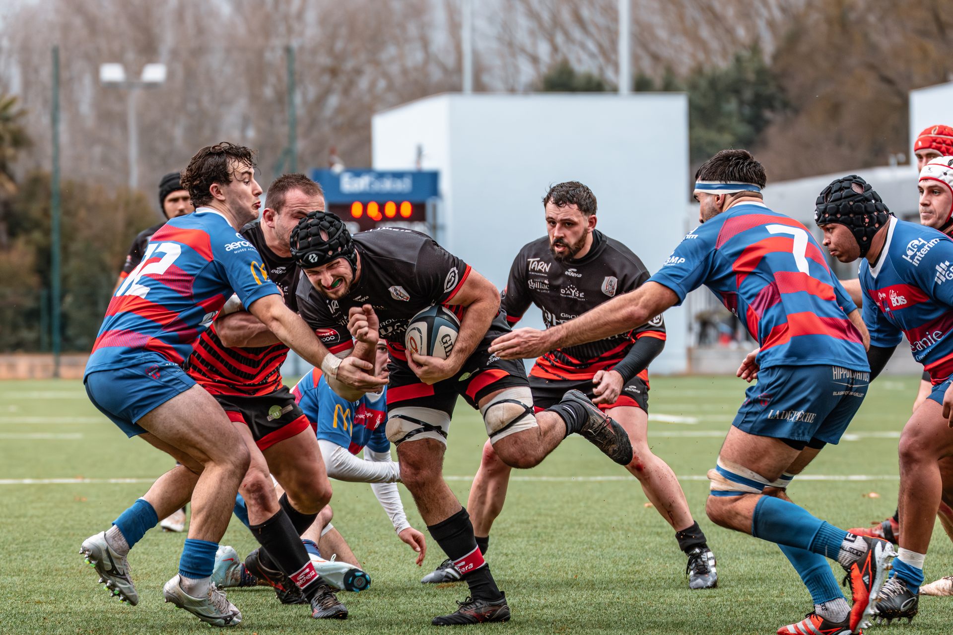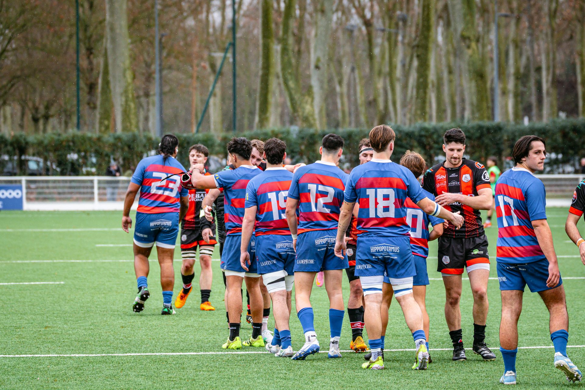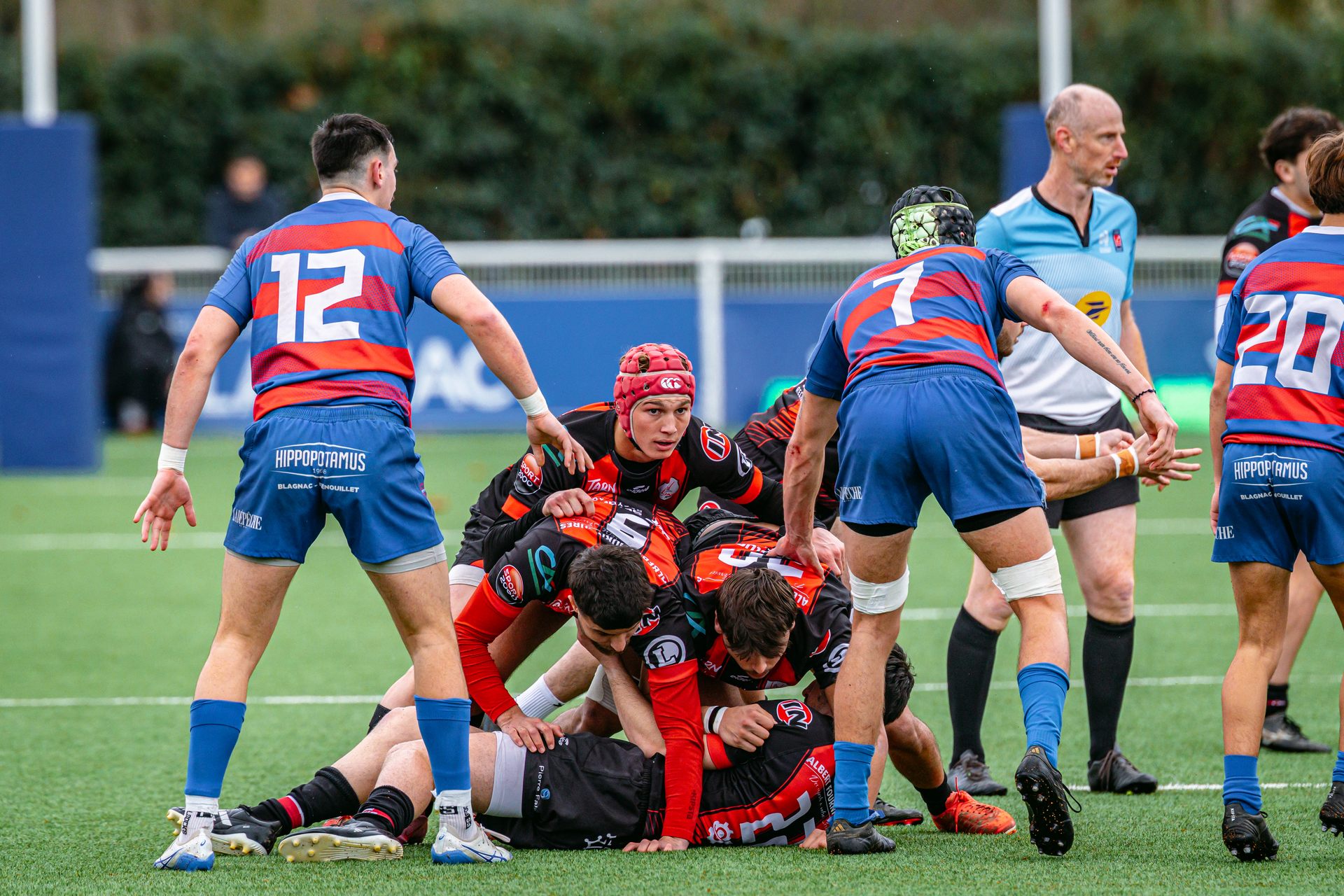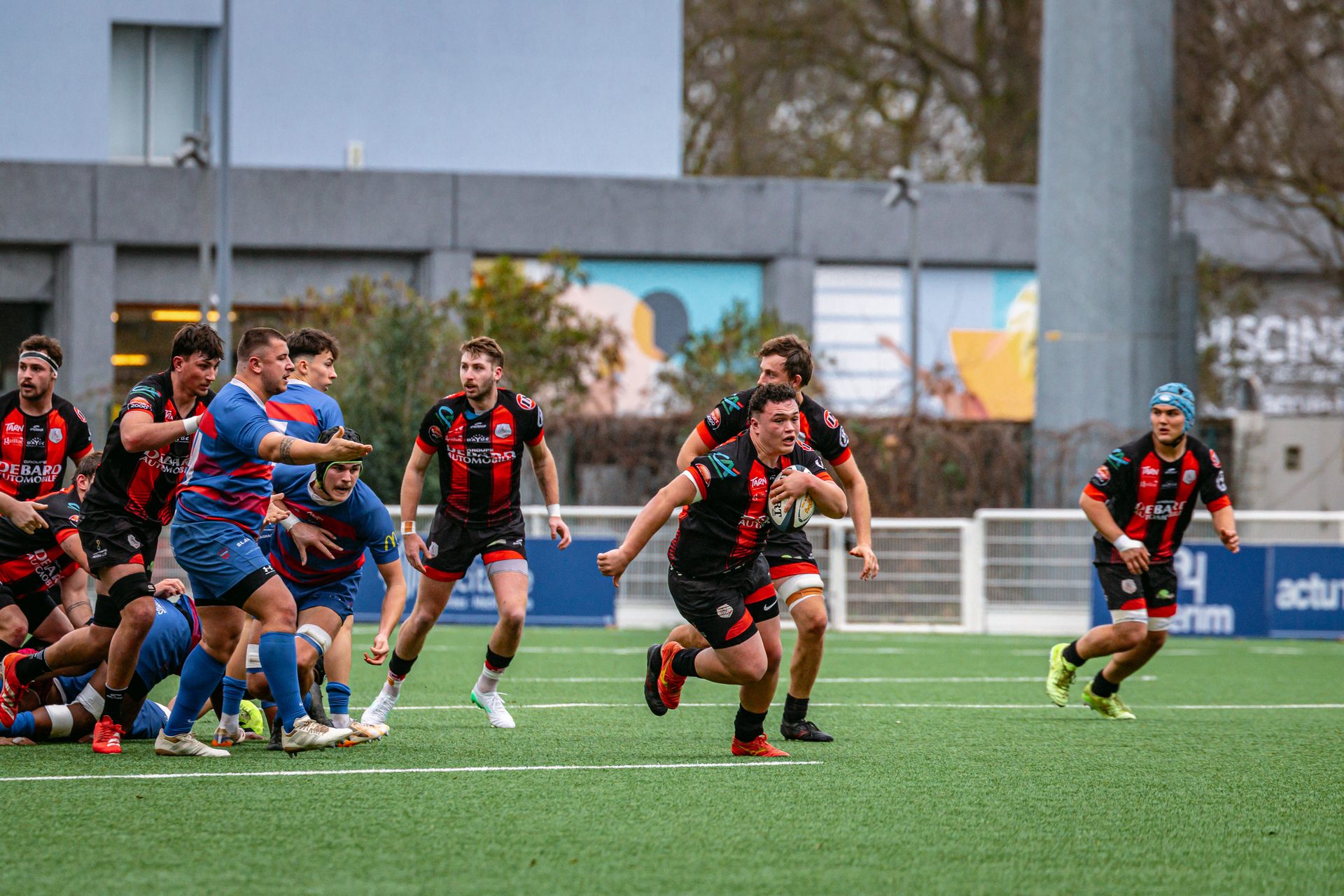 Direction Blagnac, un déplacement toujours compliqué, sur un terrain synthétique rendu glissant par la pluie, où la maîtrise, la discipline et la gestion des temps forts allaient être déterminantes. Les rouges et noirs le savaient : rien ne serait donné.