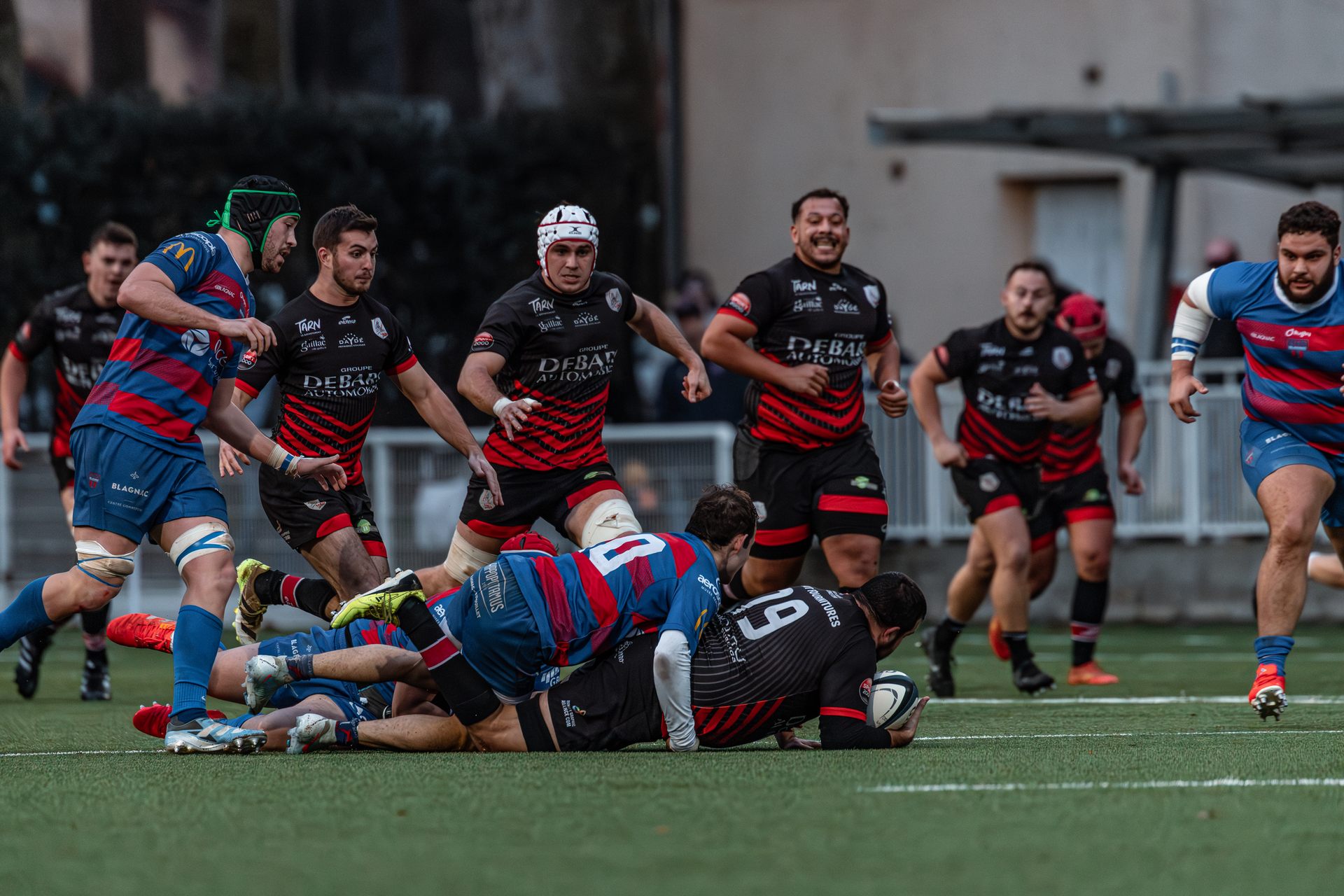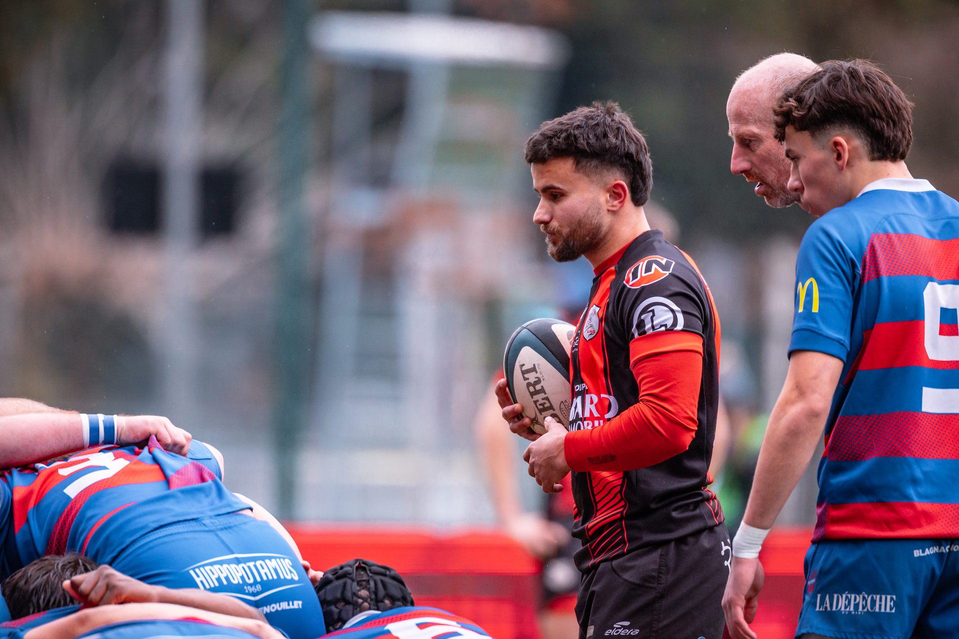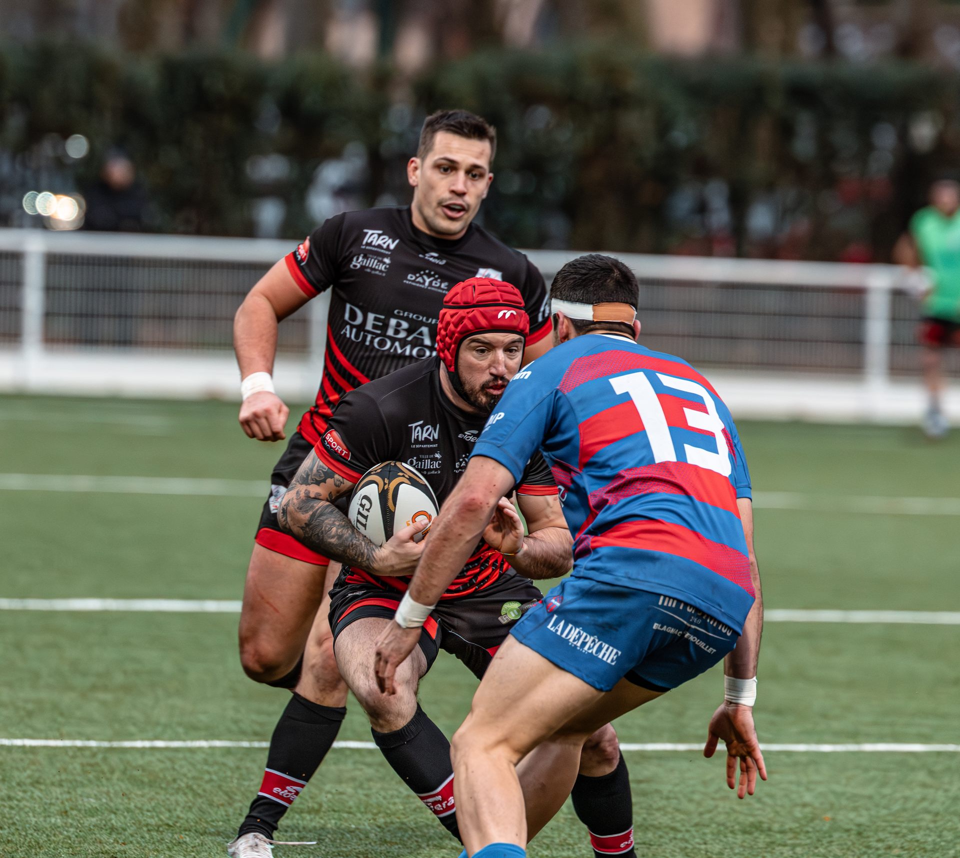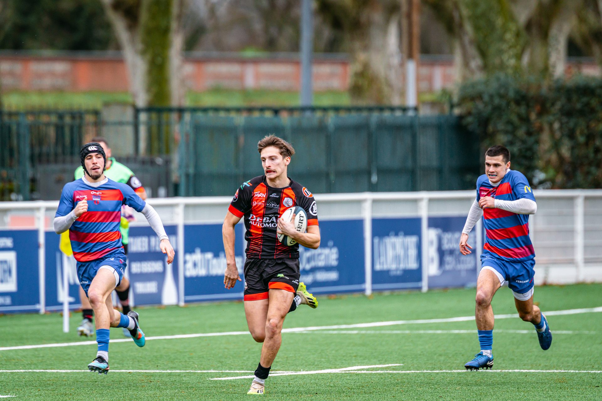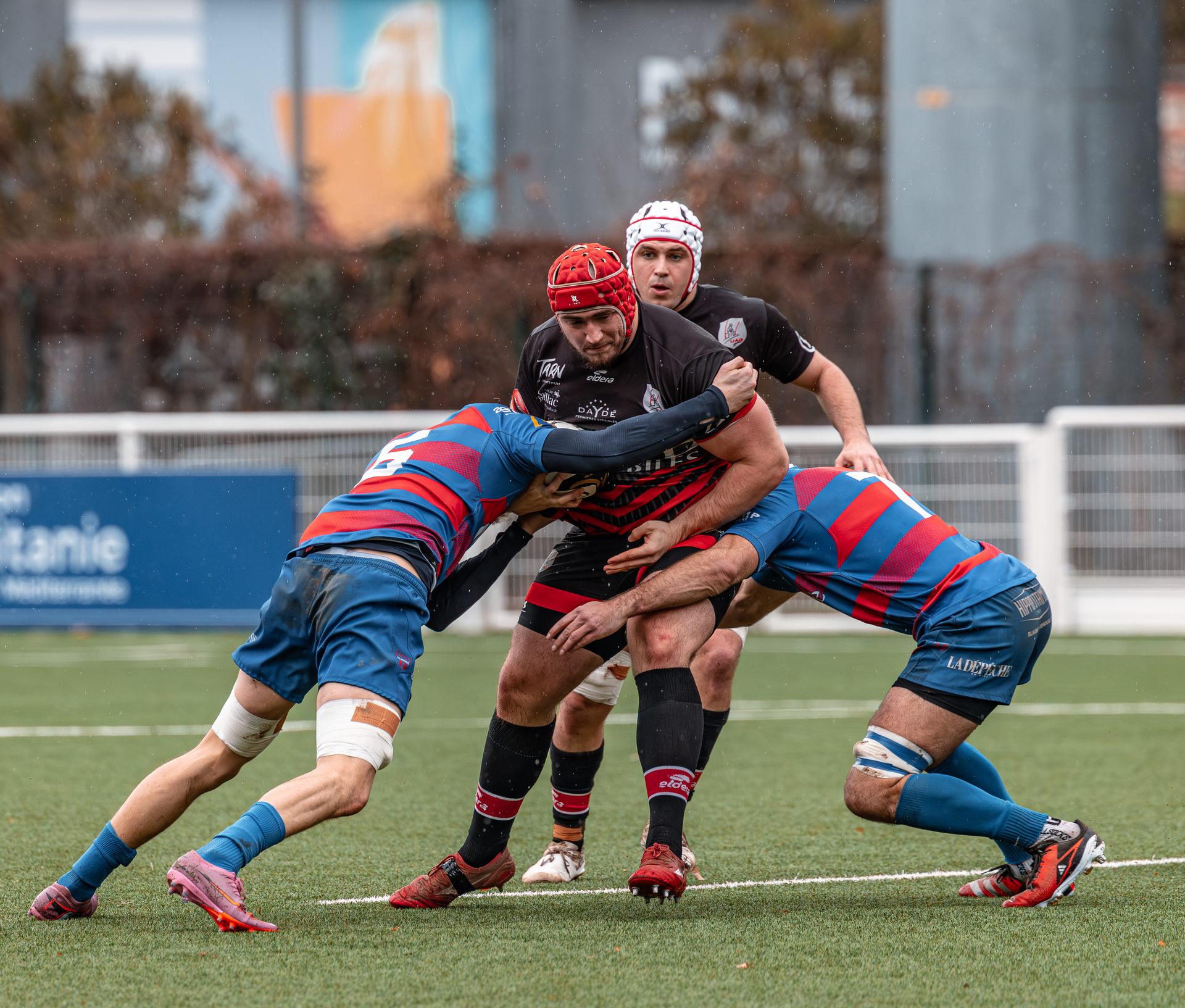 Direction Blagnac, un déplacement toujours compliqué, sur un terrain synthétique rendu glissant par la pluie, où la maîtrise, la discipline et la gestion des temps forts allaient être déterminantes. Les rouges et noirs le savaient : rien ne serait donné.