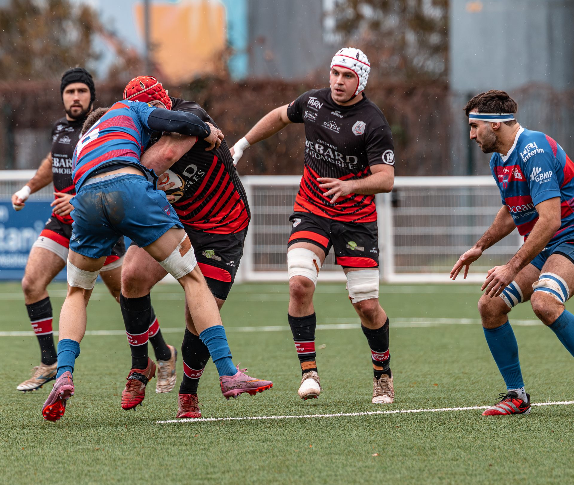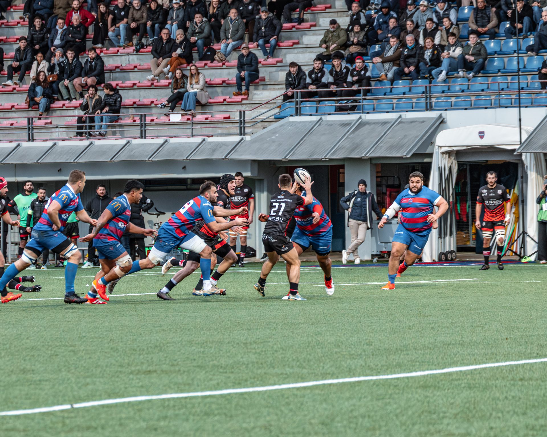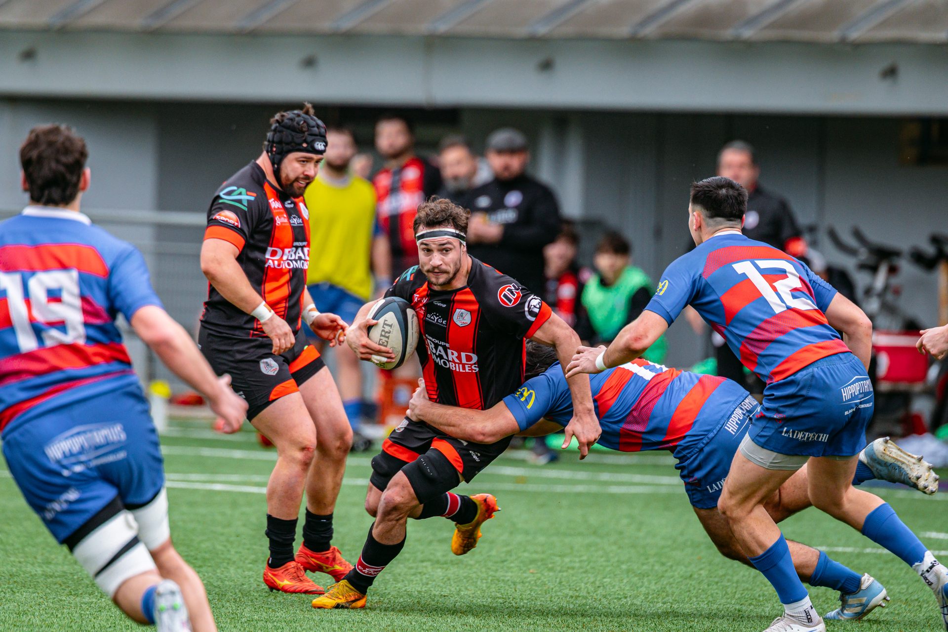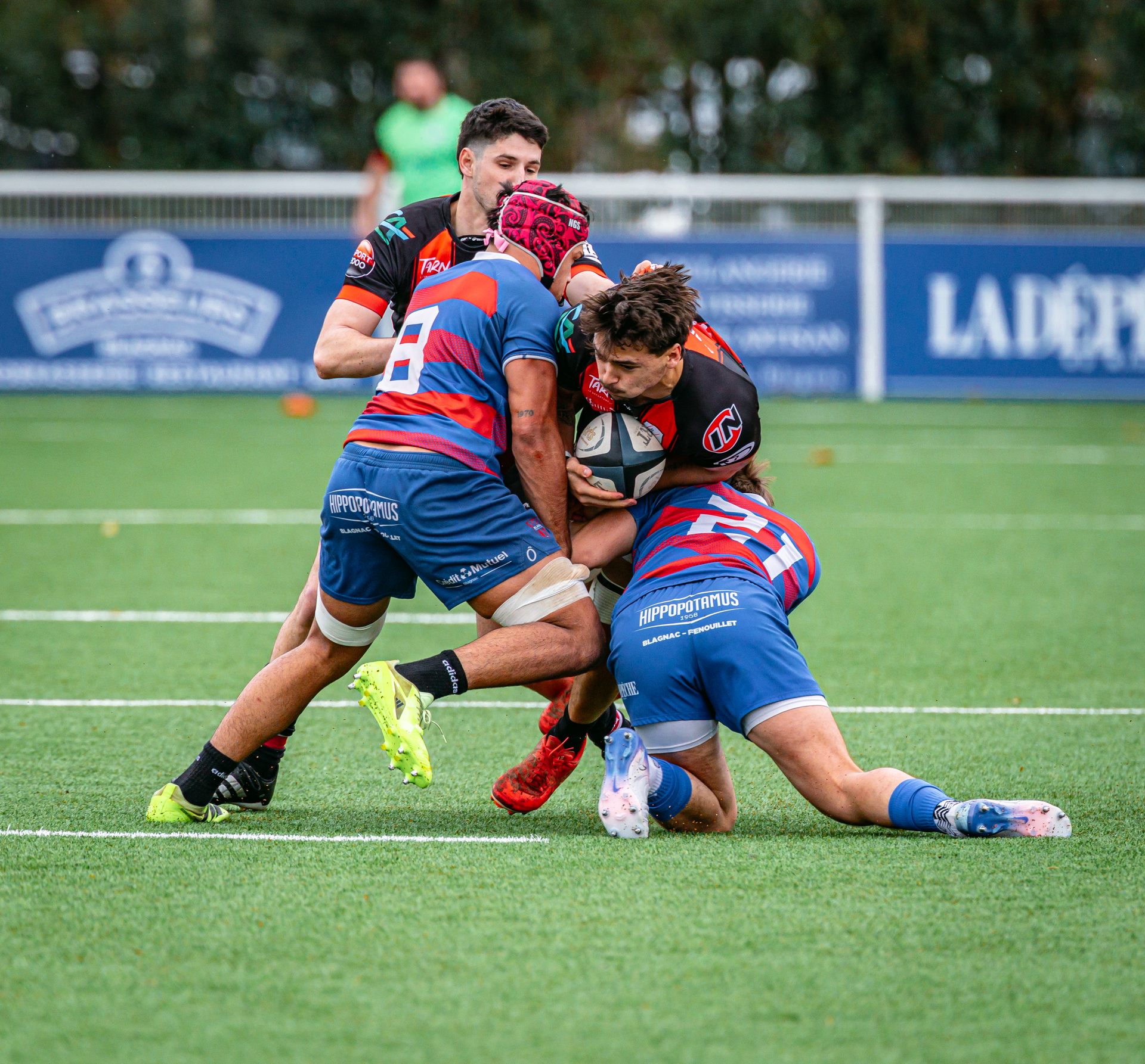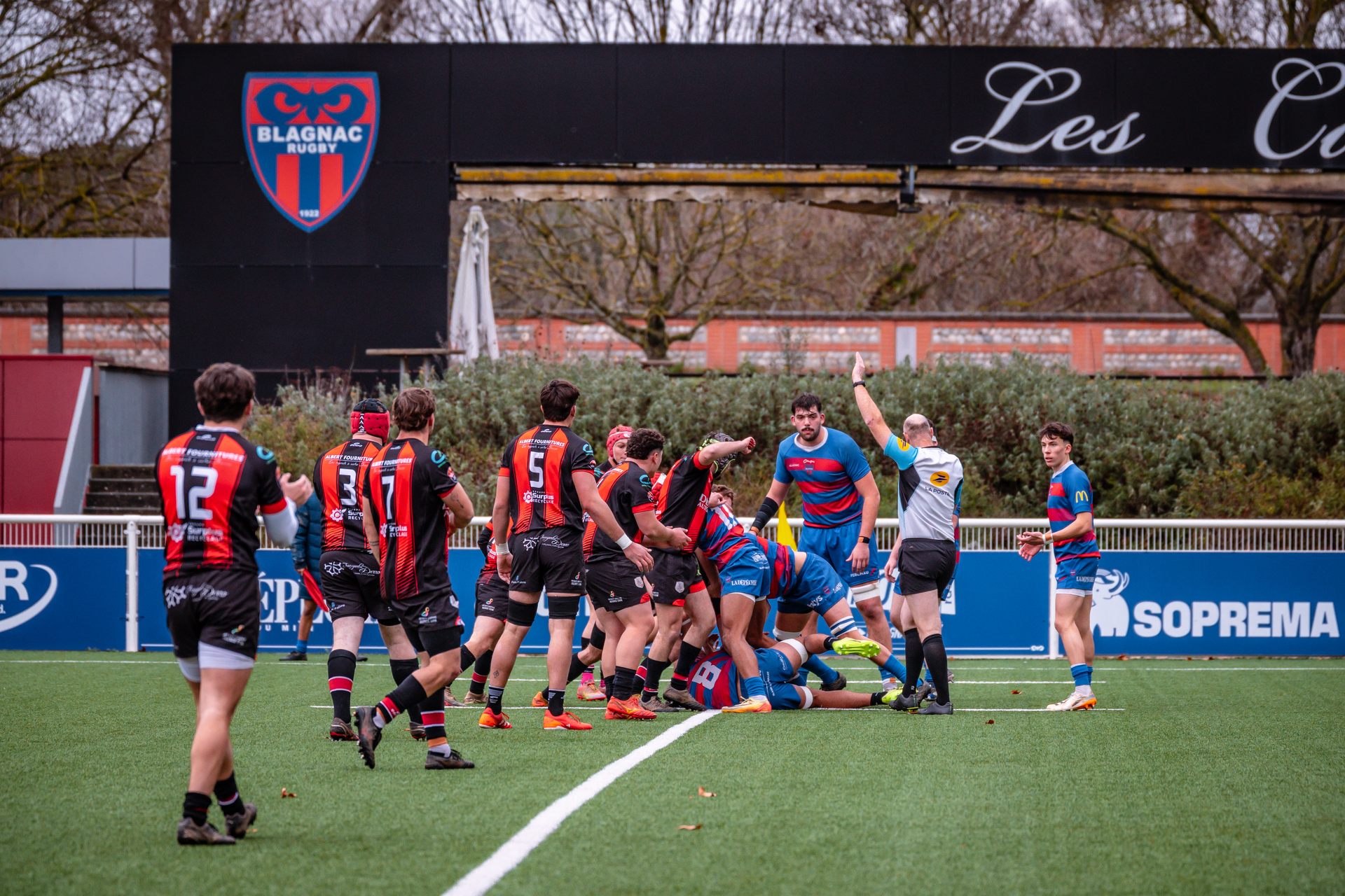 Direction Blagnac, un déplacement toujours compliqué, sur un terrain synthétique rendu glissant par la pluie, où la maîtrise, la discipline et la gestion des temps forts allaient être déterminantes. Les rouges et noirs le savaient : rien ne serait donné.