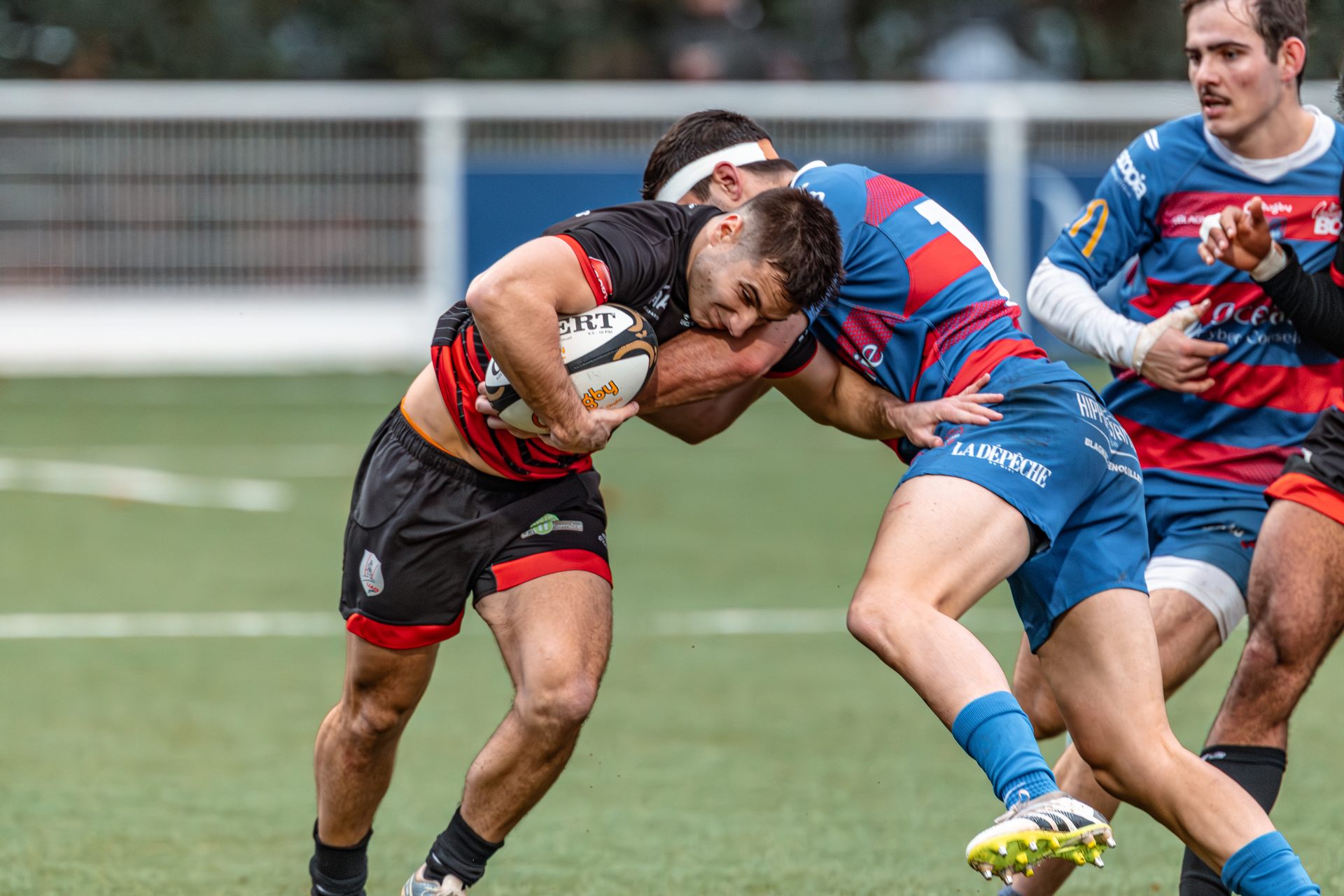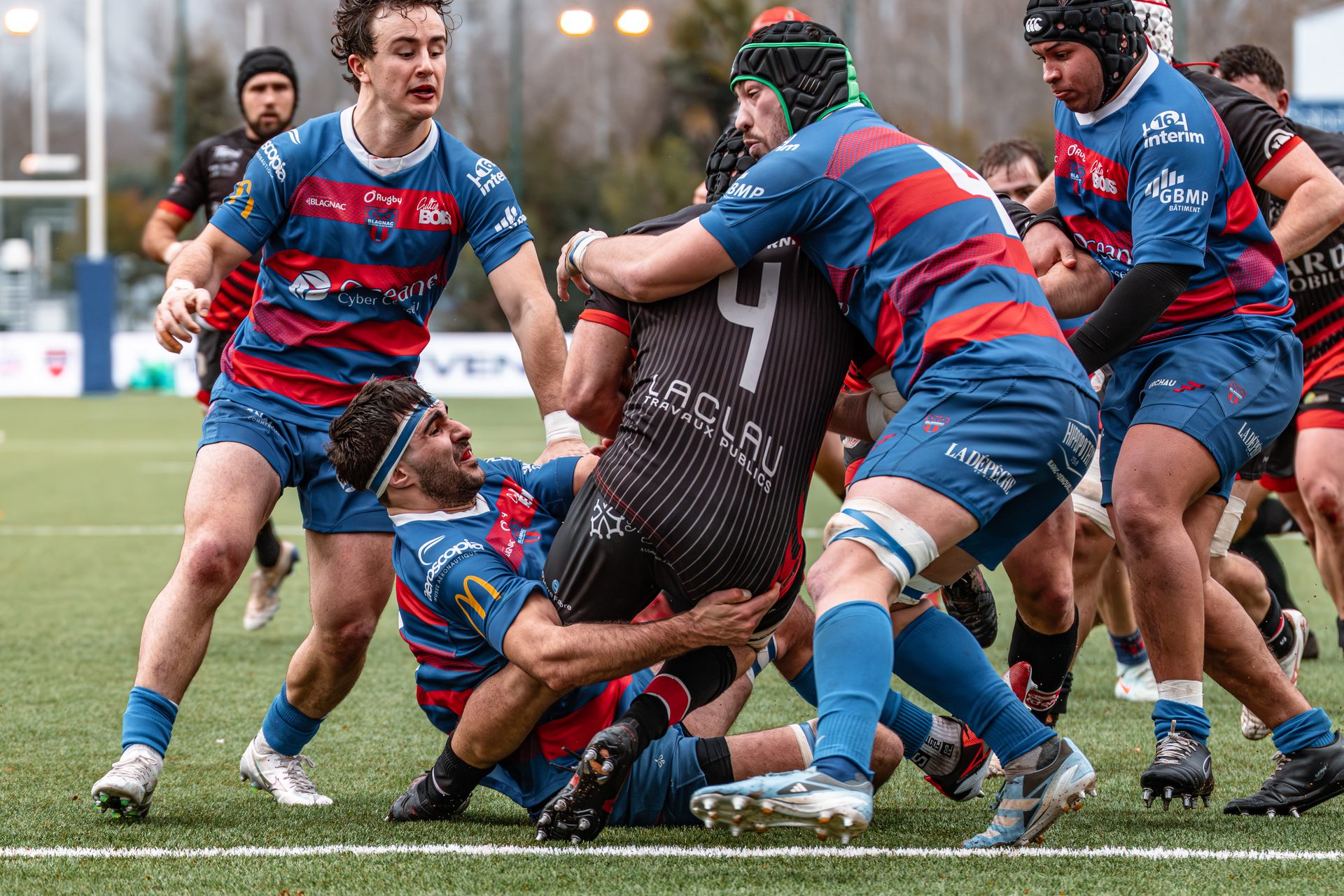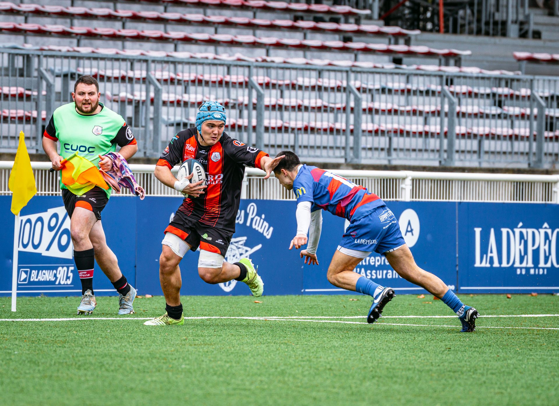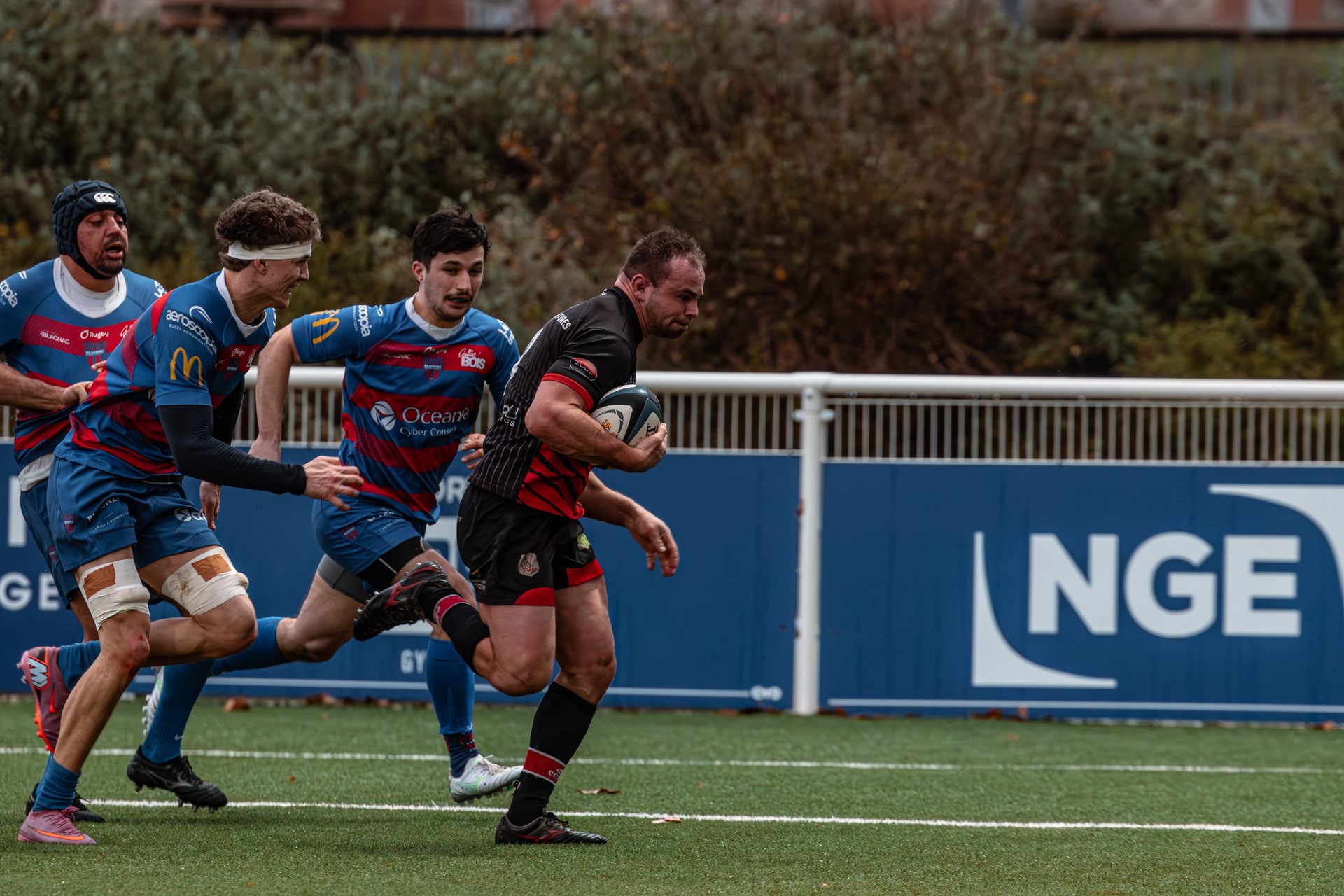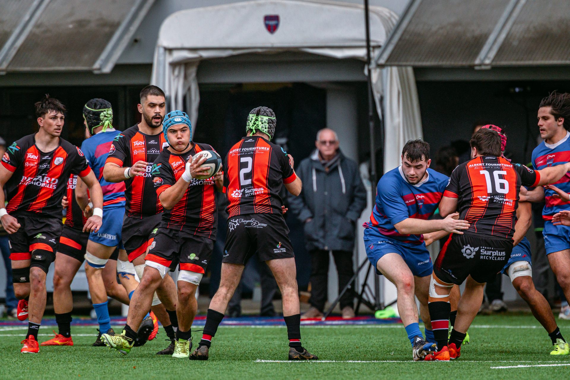 Direction Blagnac, un déplacement toujours compliqué, sur un terrain synthétique rendu glissant par la pluie, où la maîtrise, la discipline et la gestion des temps forts allaient être déterminantes. Les rouges et noirs le savaient : rien ne serait donné.