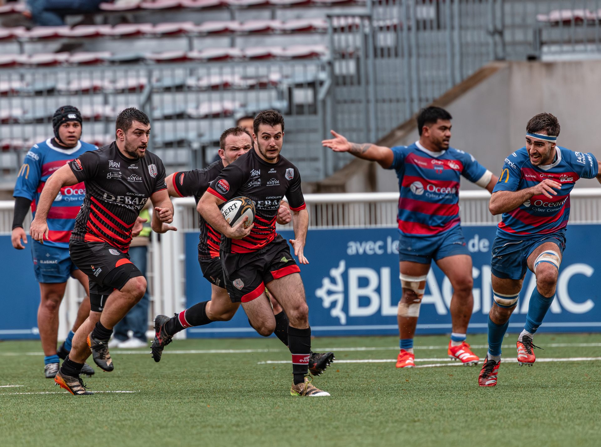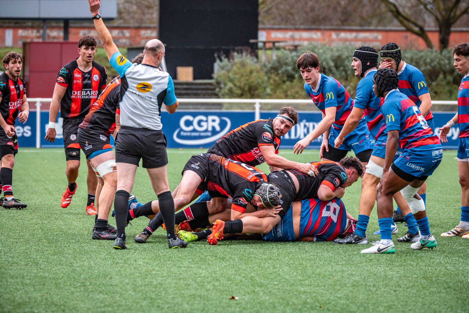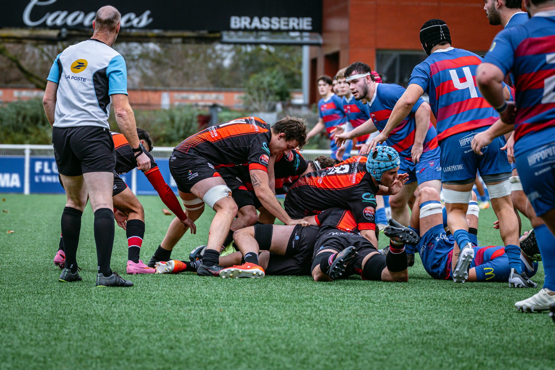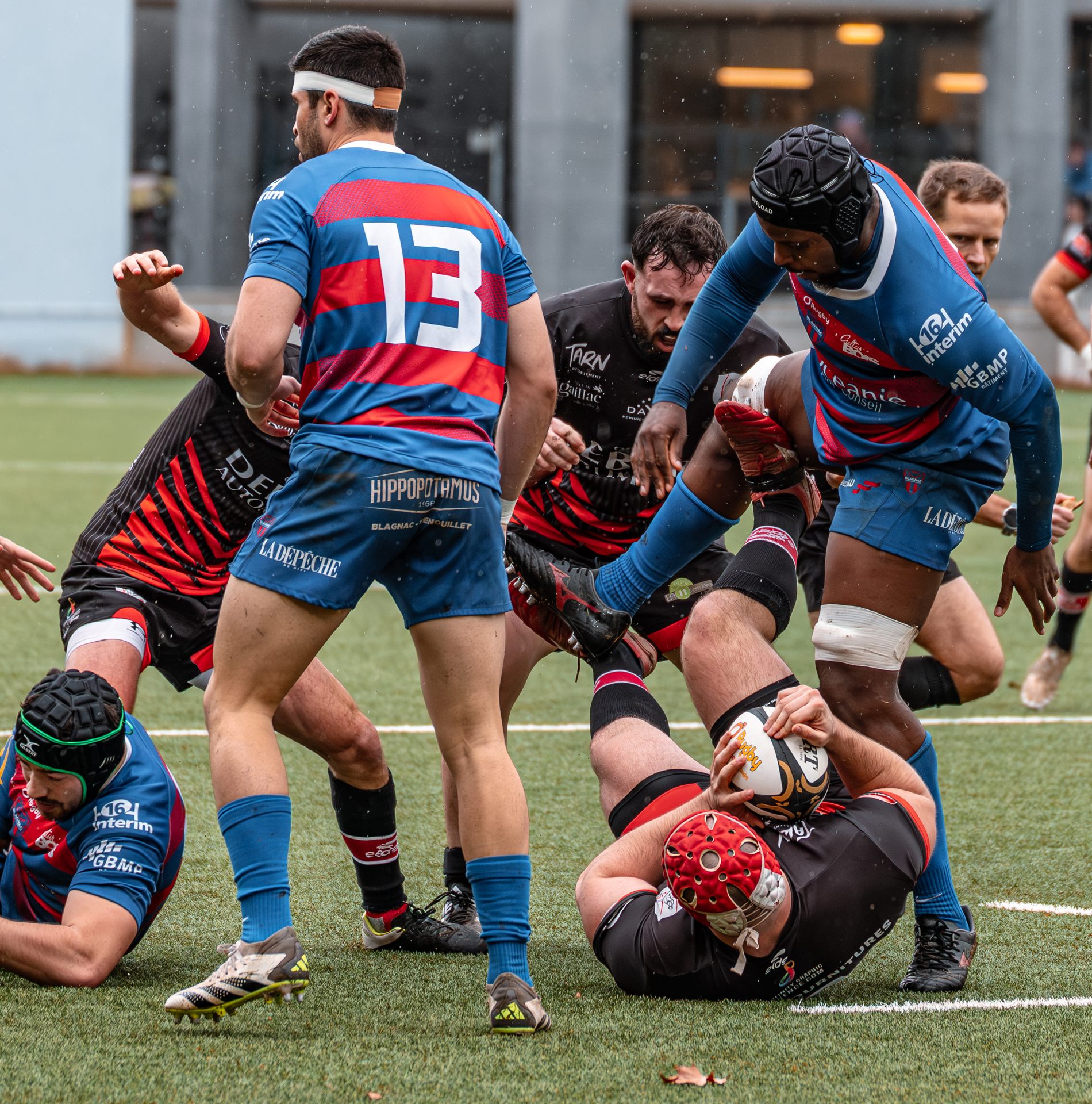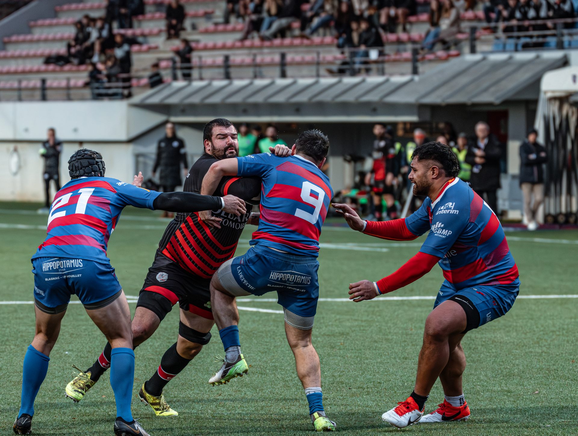 Direction Blagnac, un déplacement toujours compliqué, sur un terrain synthétique rendu glissant par la pluie, où la maîtrise, la discipline et la gestion des temps forts allaient être déterminantes. Les rouges et noirs le savaient : rien ne serait donné.