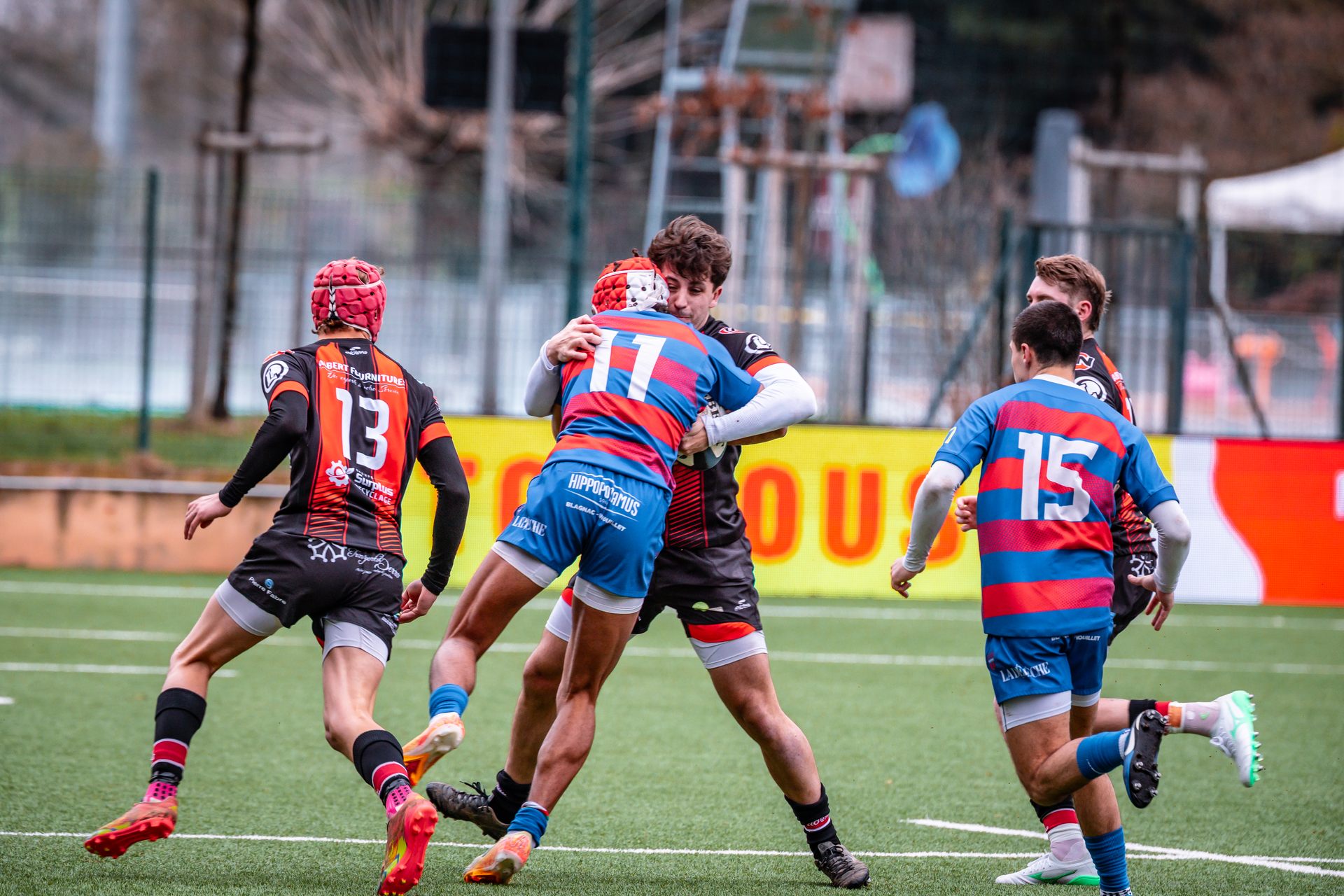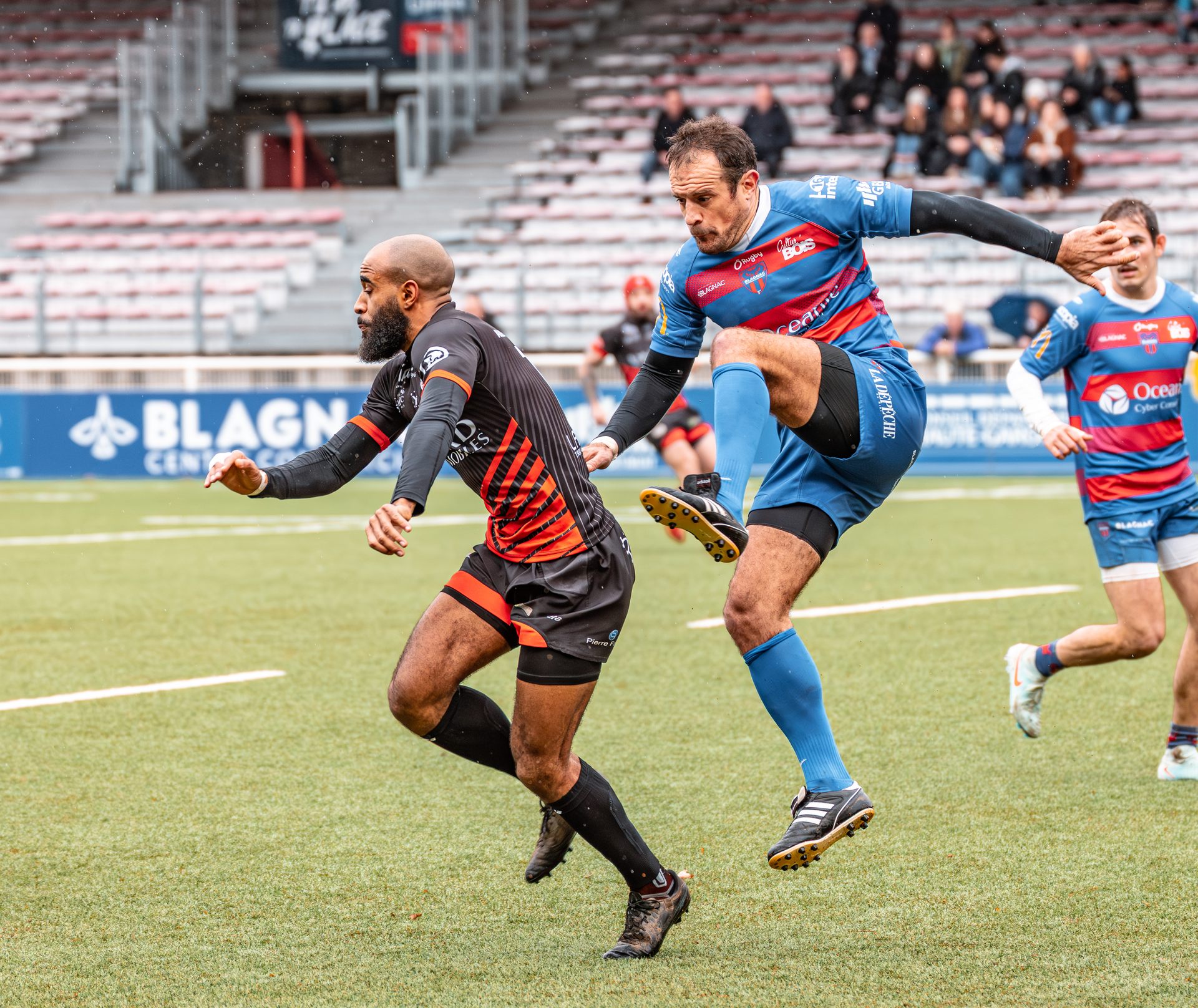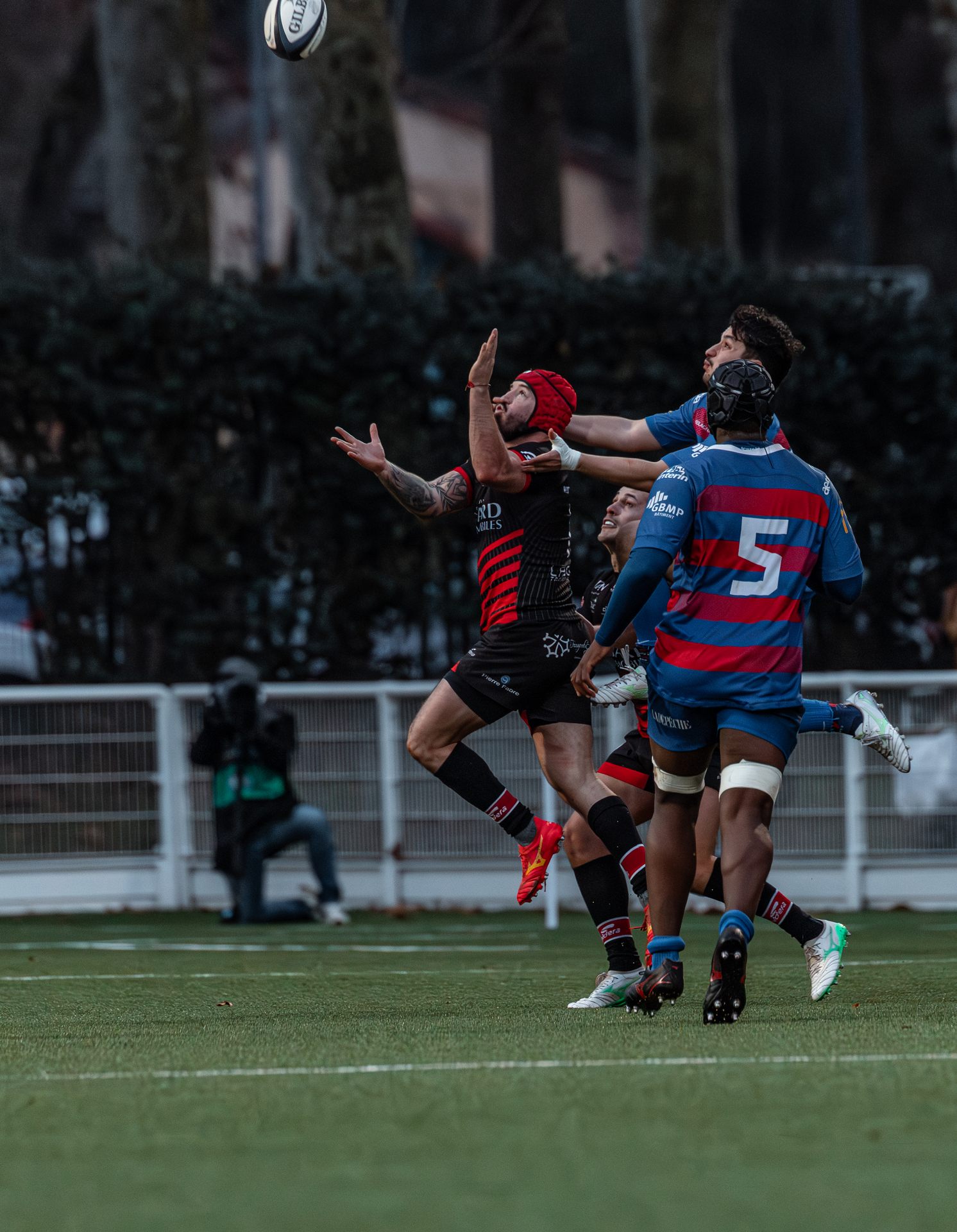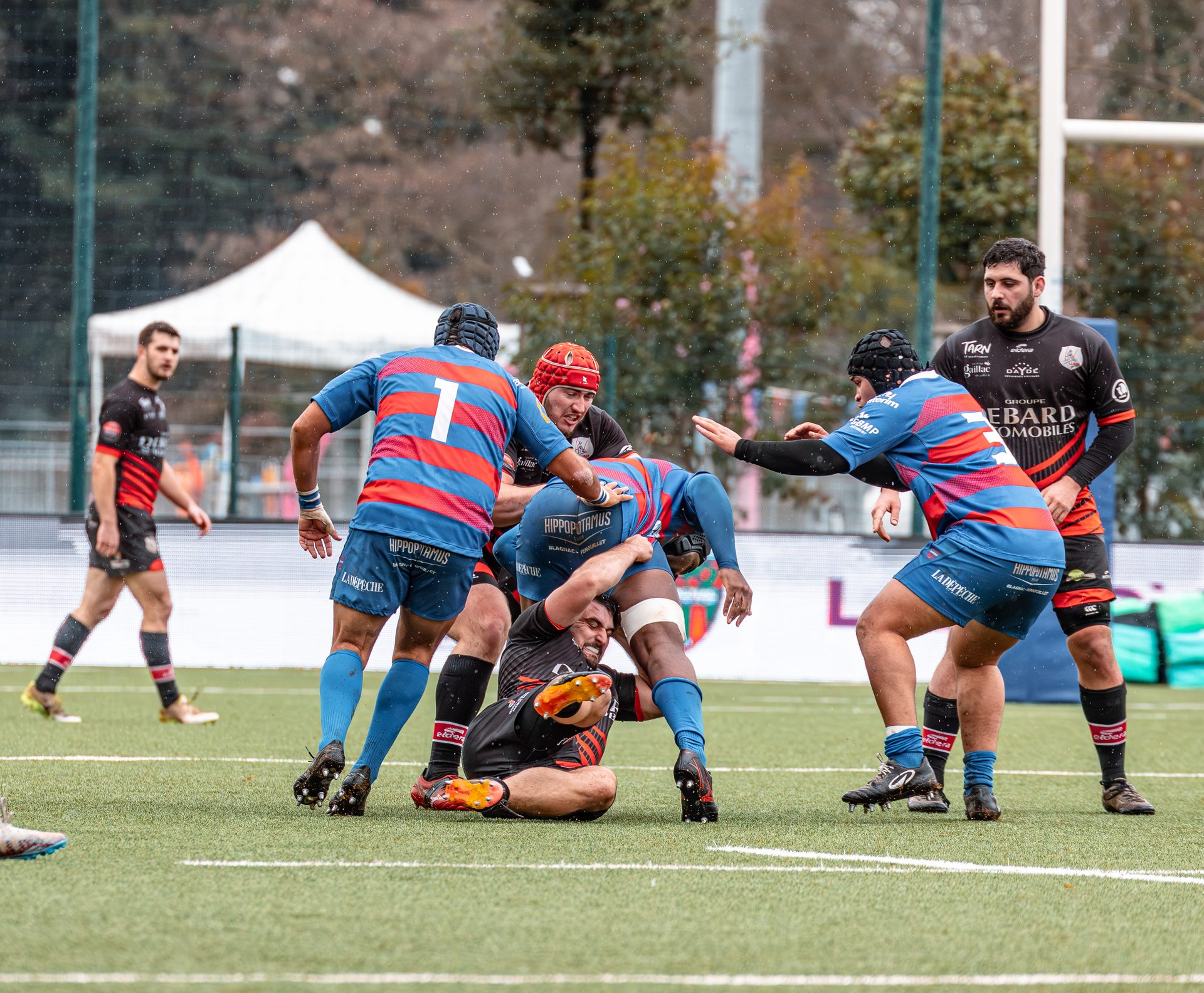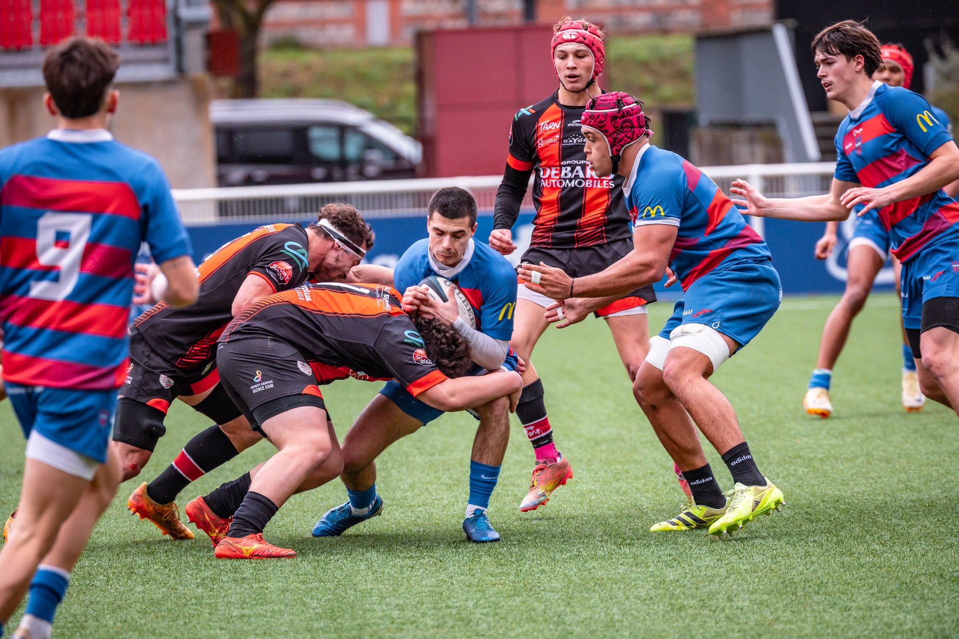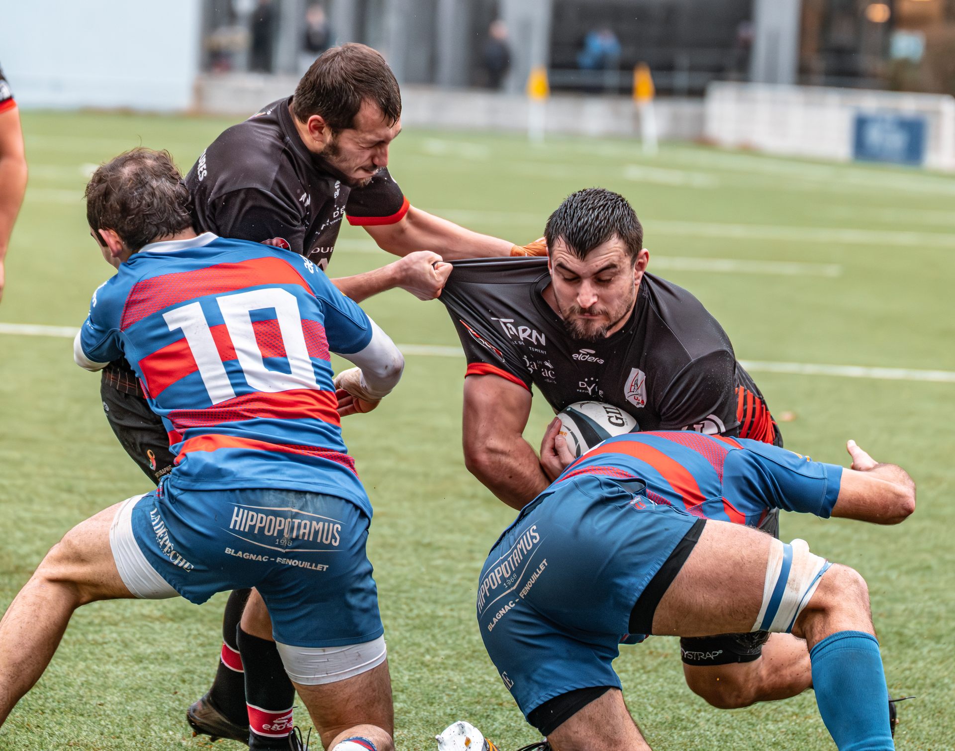 Direction Blagnac, un déplacement toujours compliqué, sur un terrain synthétique rendu glissant par la pluie, où la maîtrise, la discipline et la gestion des temps forts allaient être déterminantes. Les rouges et noirs le savaient : rien ne serait donné.