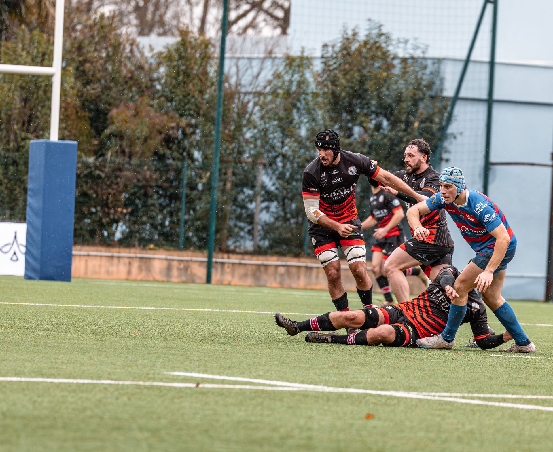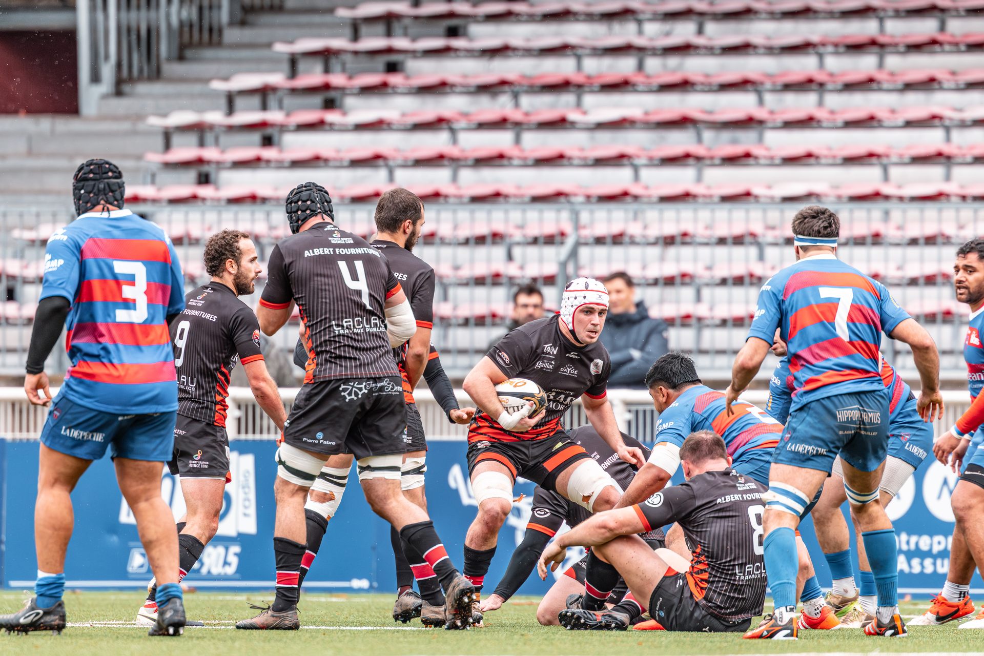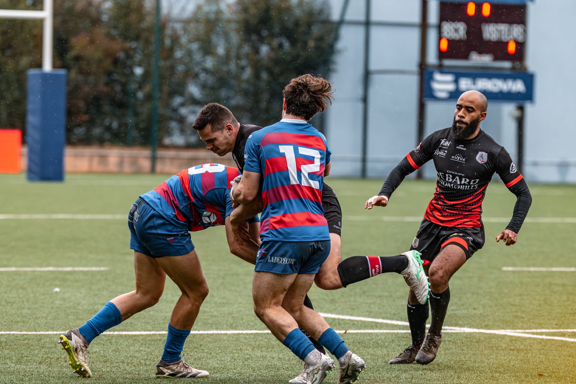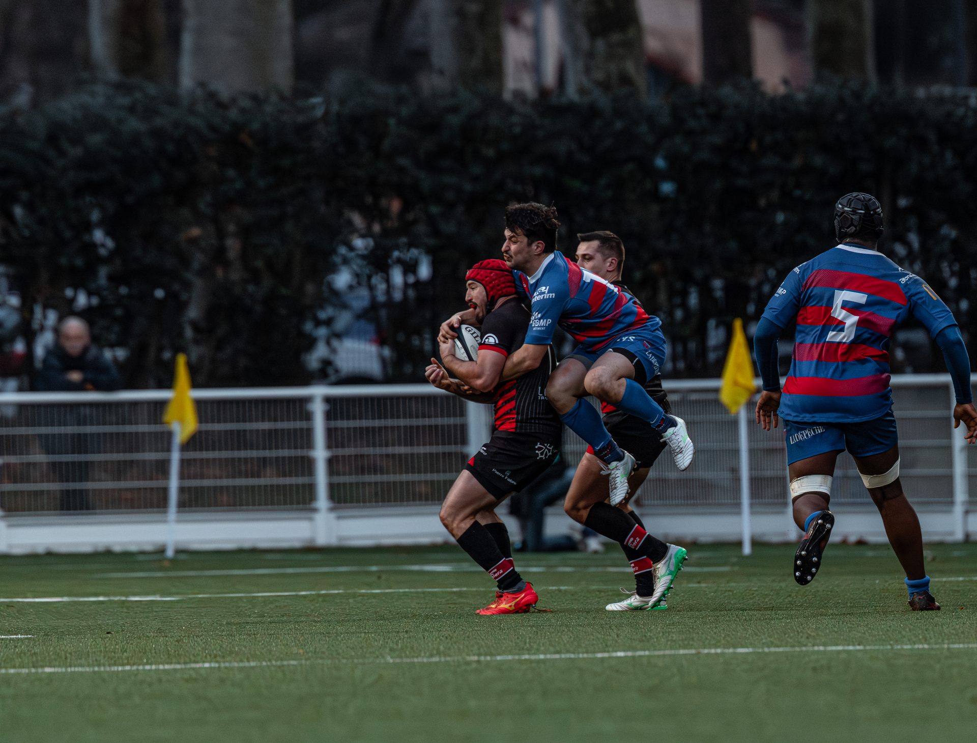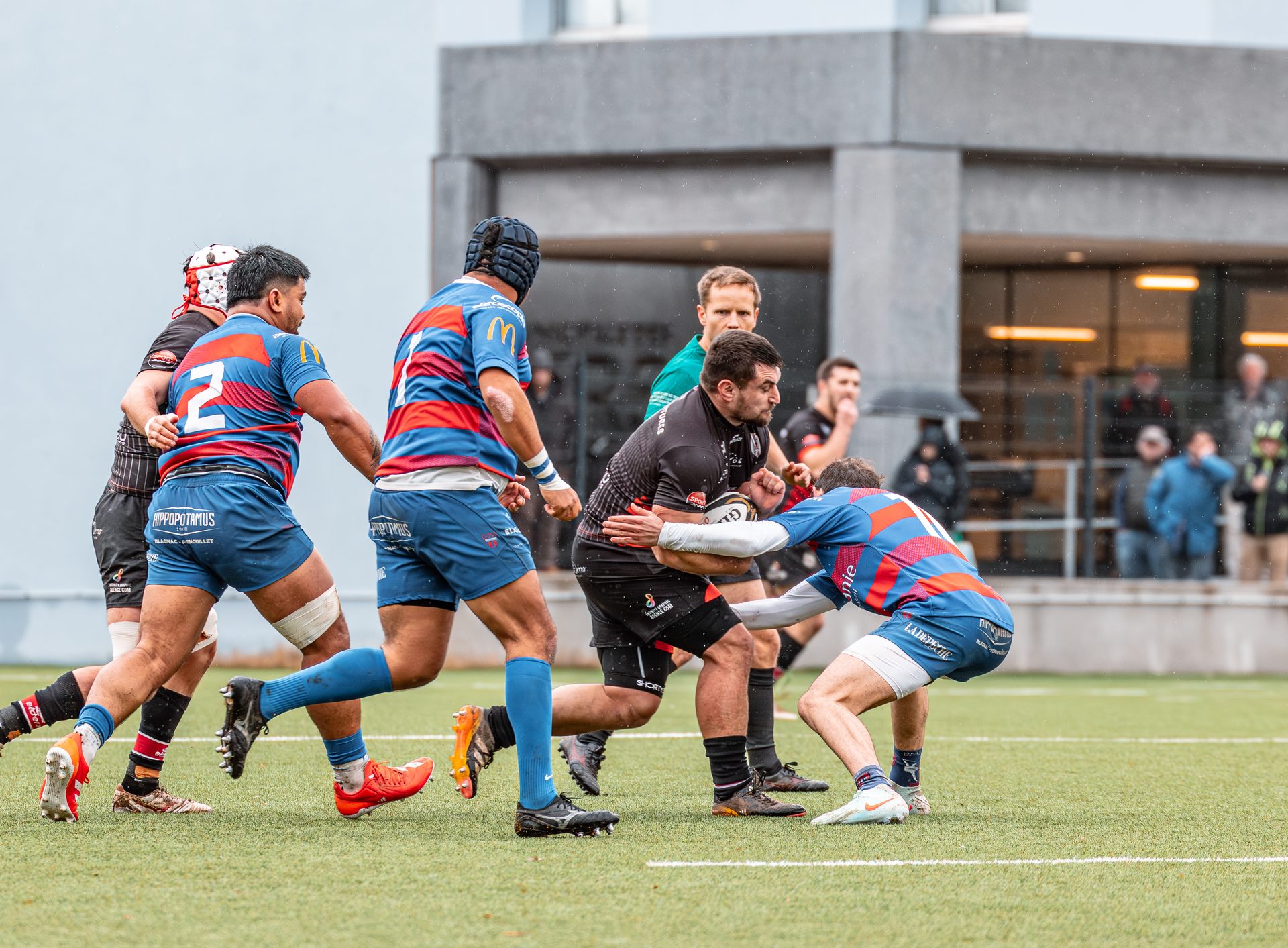 Direction Blagnac, un déplacement toujours compliqué, sur un terrain synthétique rendu glissant par la pluie, où la maîtrise, la discipline et la gestion des temps forts allaient être déterminantes. Les rouges et noirs le savaient : rien ne serait donné.