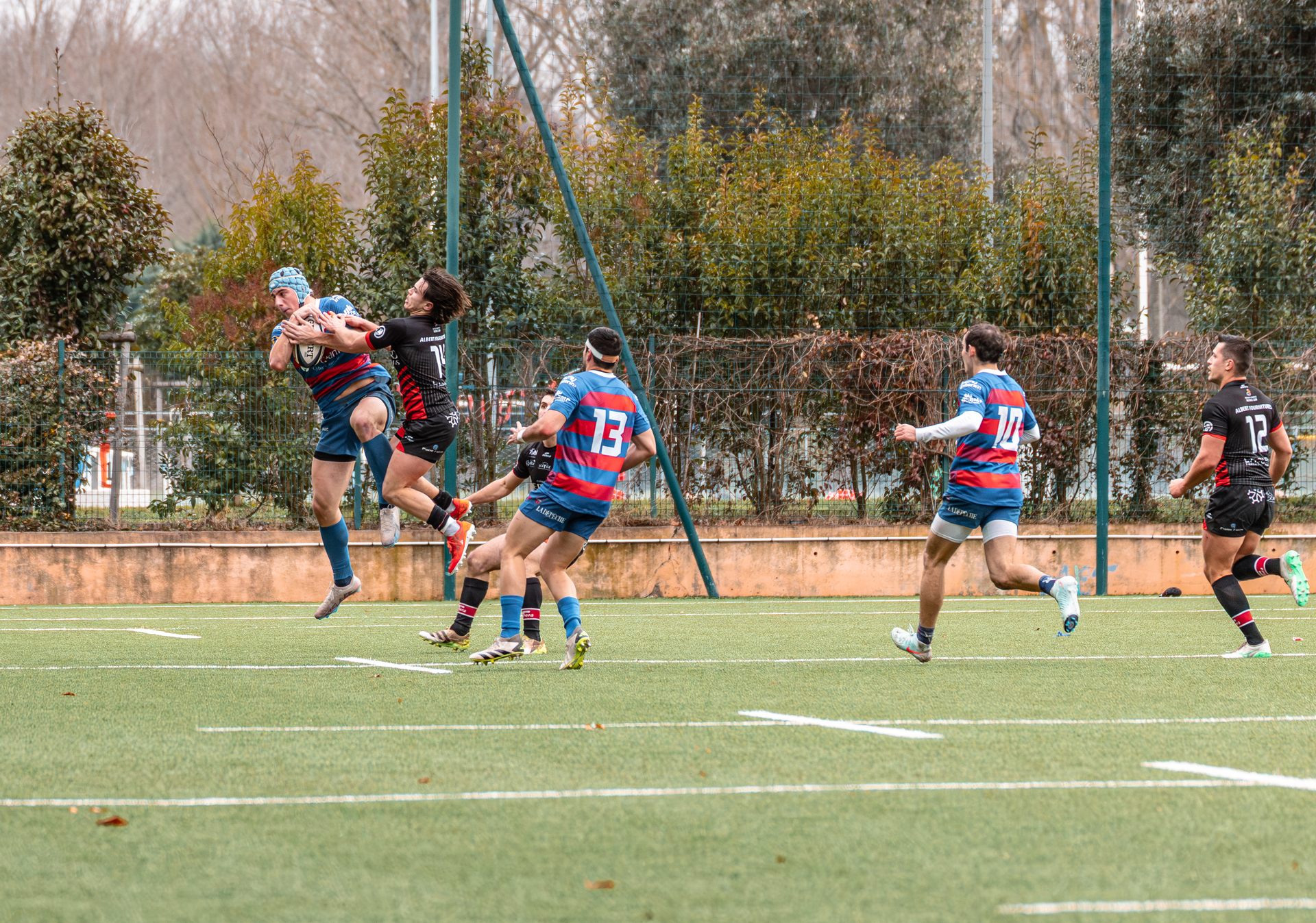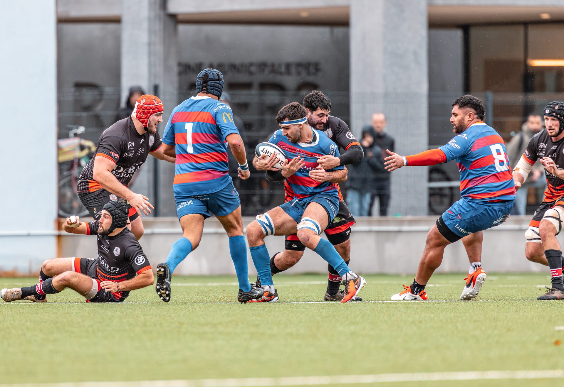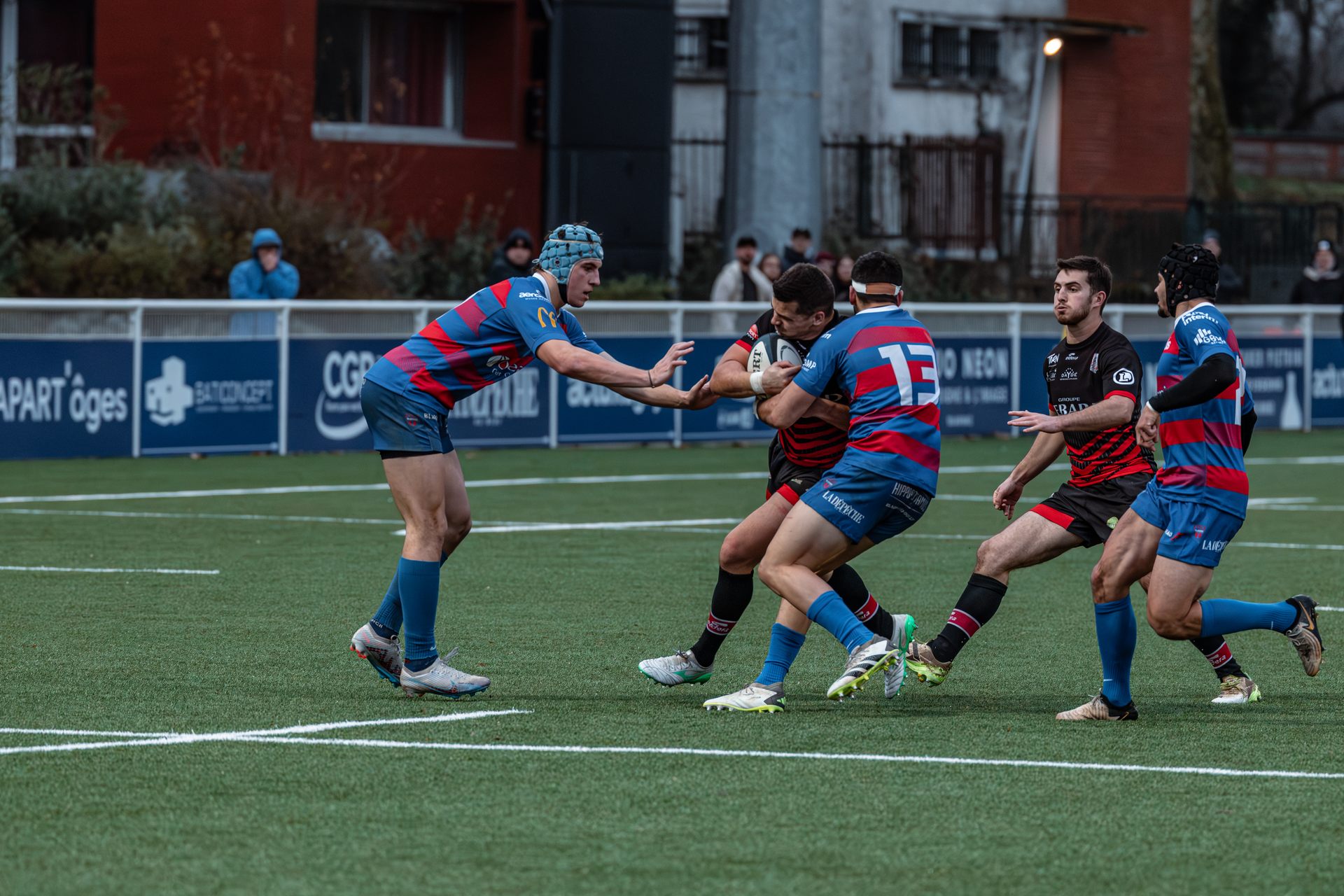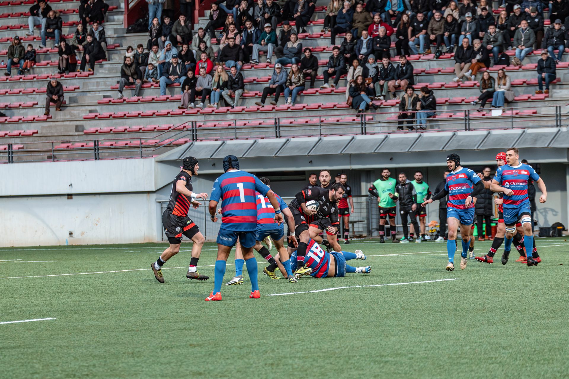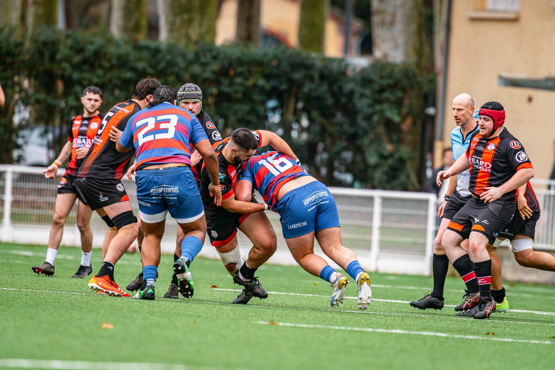 Direction Blagnac, un déplacement toujours compliqué, sur un terrain synthétique rendu glissant par la pluie, où la maîtrise, la discipline et la gestion des temps forts allaient être déterminantes. Les rouges et noirs le savaient : rien ne serait donné.