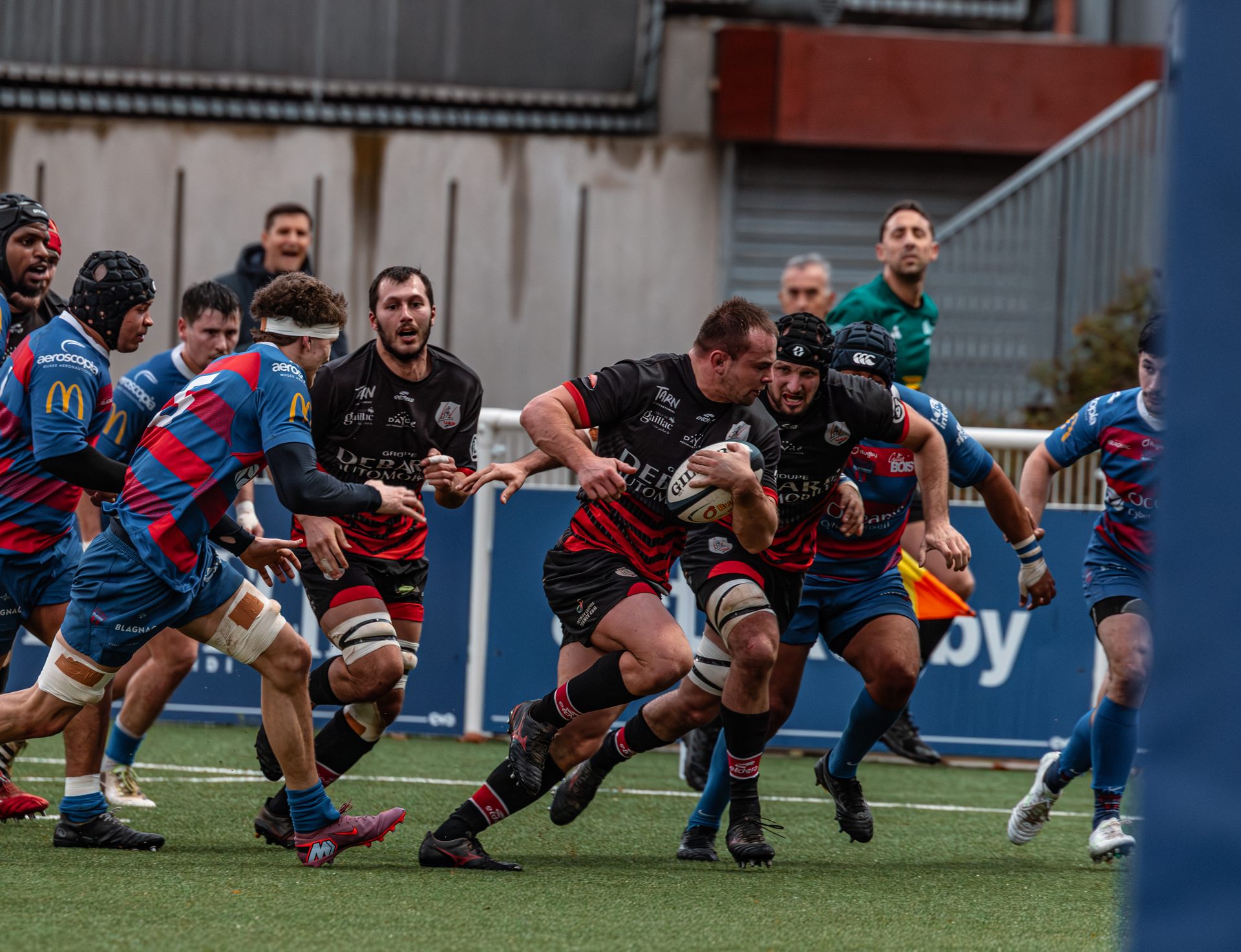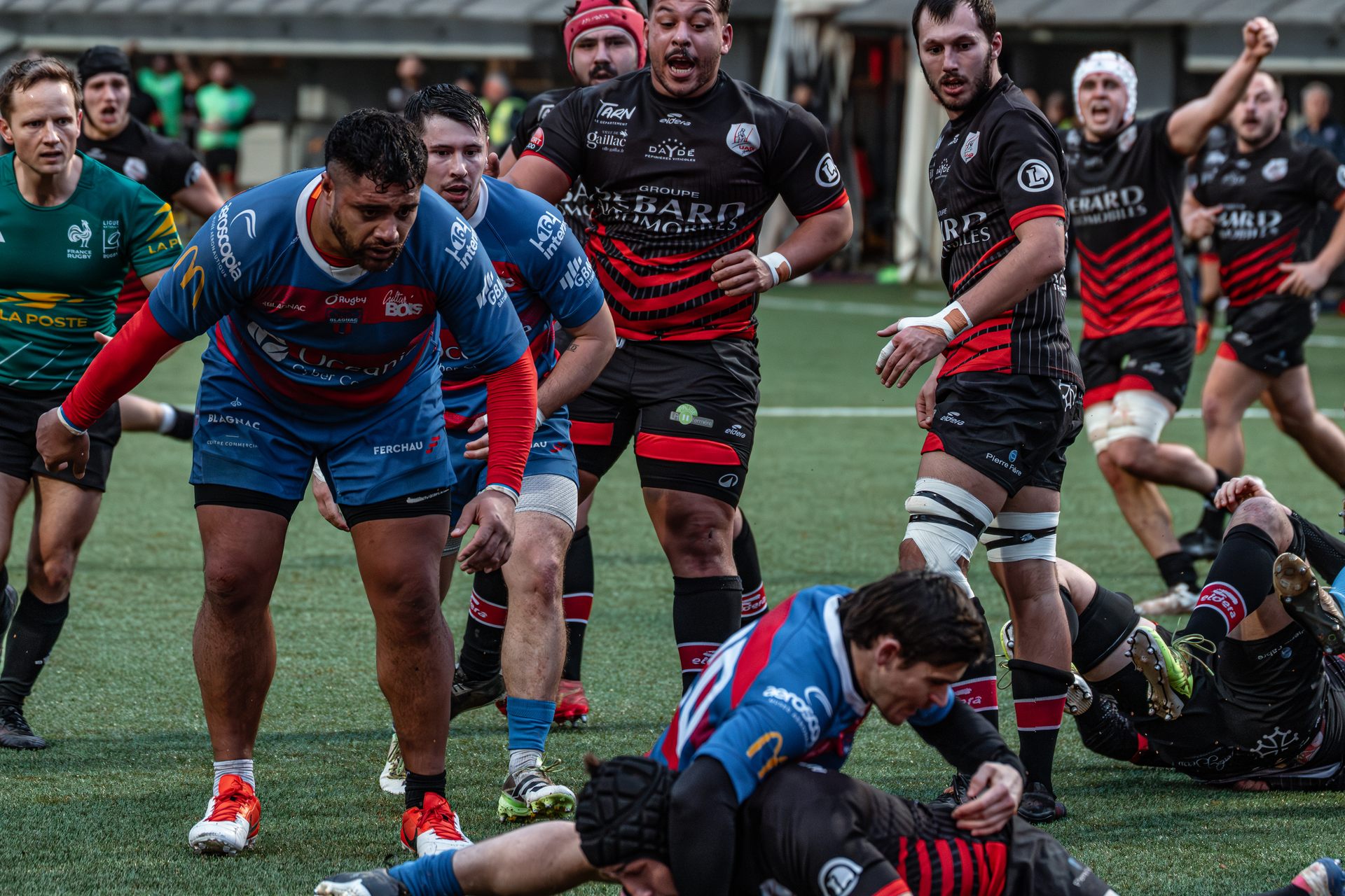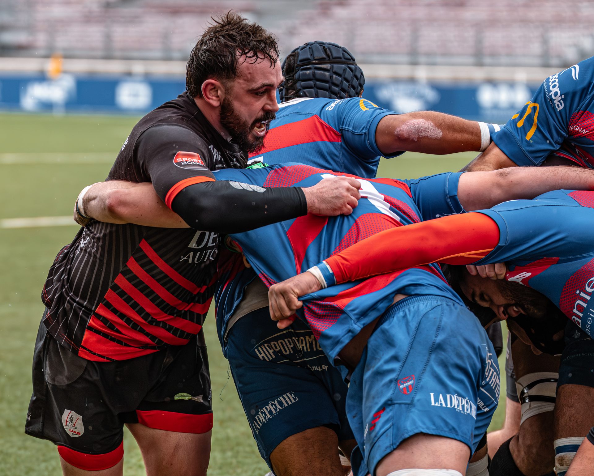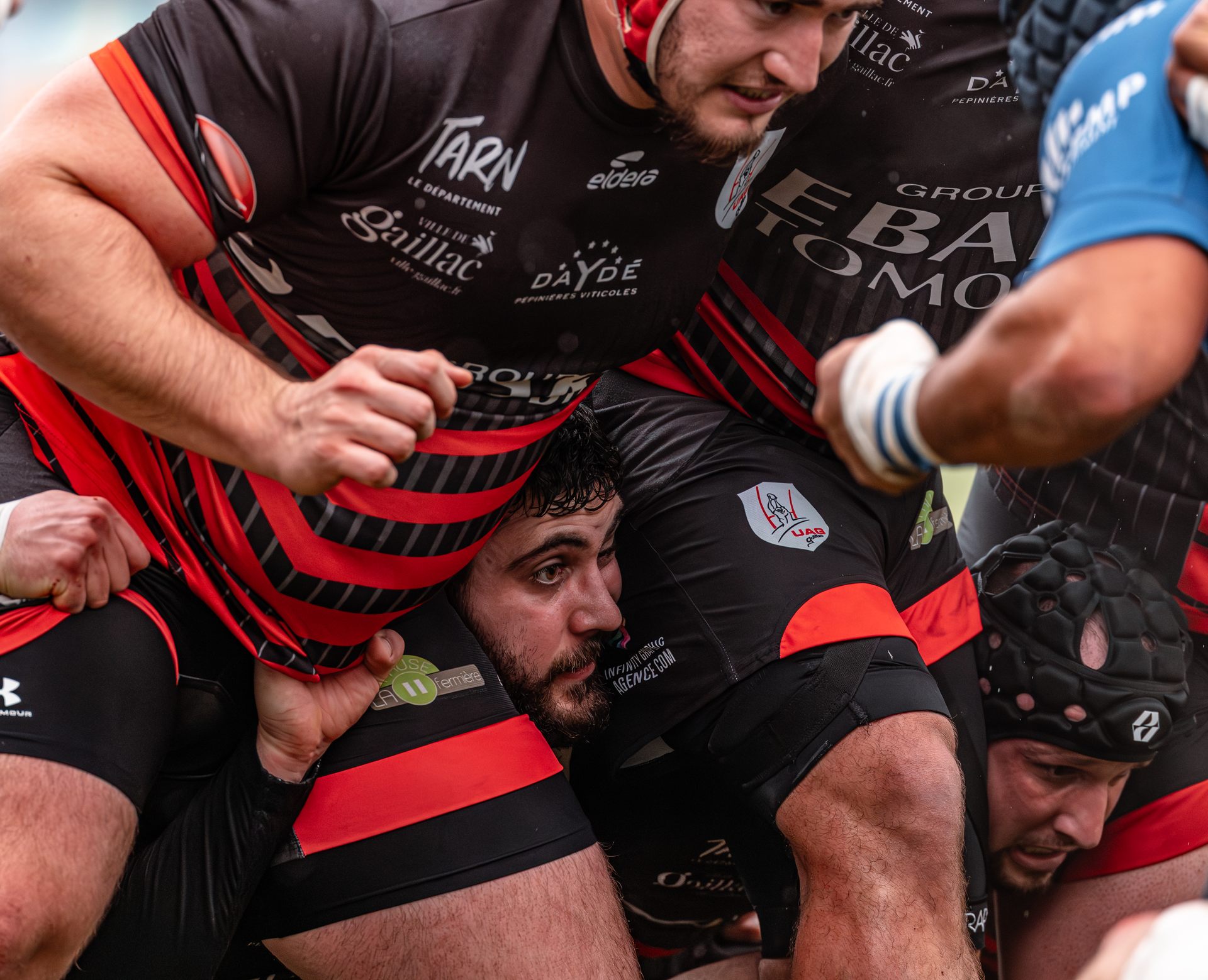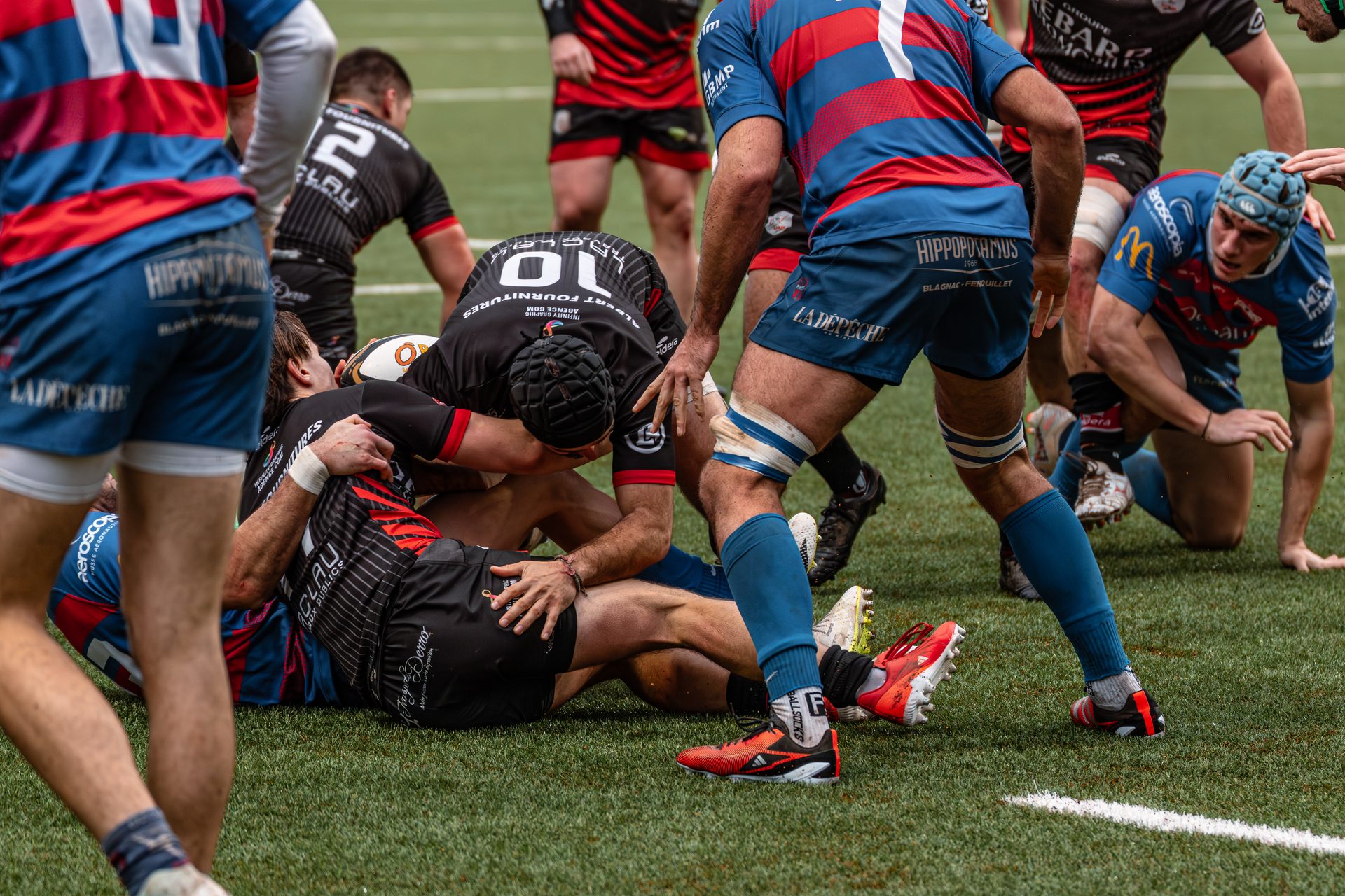 Mais c’est à ce moment-là que l’UAG montre toute sa force collective. Emmenés par un Sandrick Maciotta énorme dans l’impact, les remplaçants rouges et noirs prennent le dessus. La mêlée blagnacaise, jusque-là solide, recule.