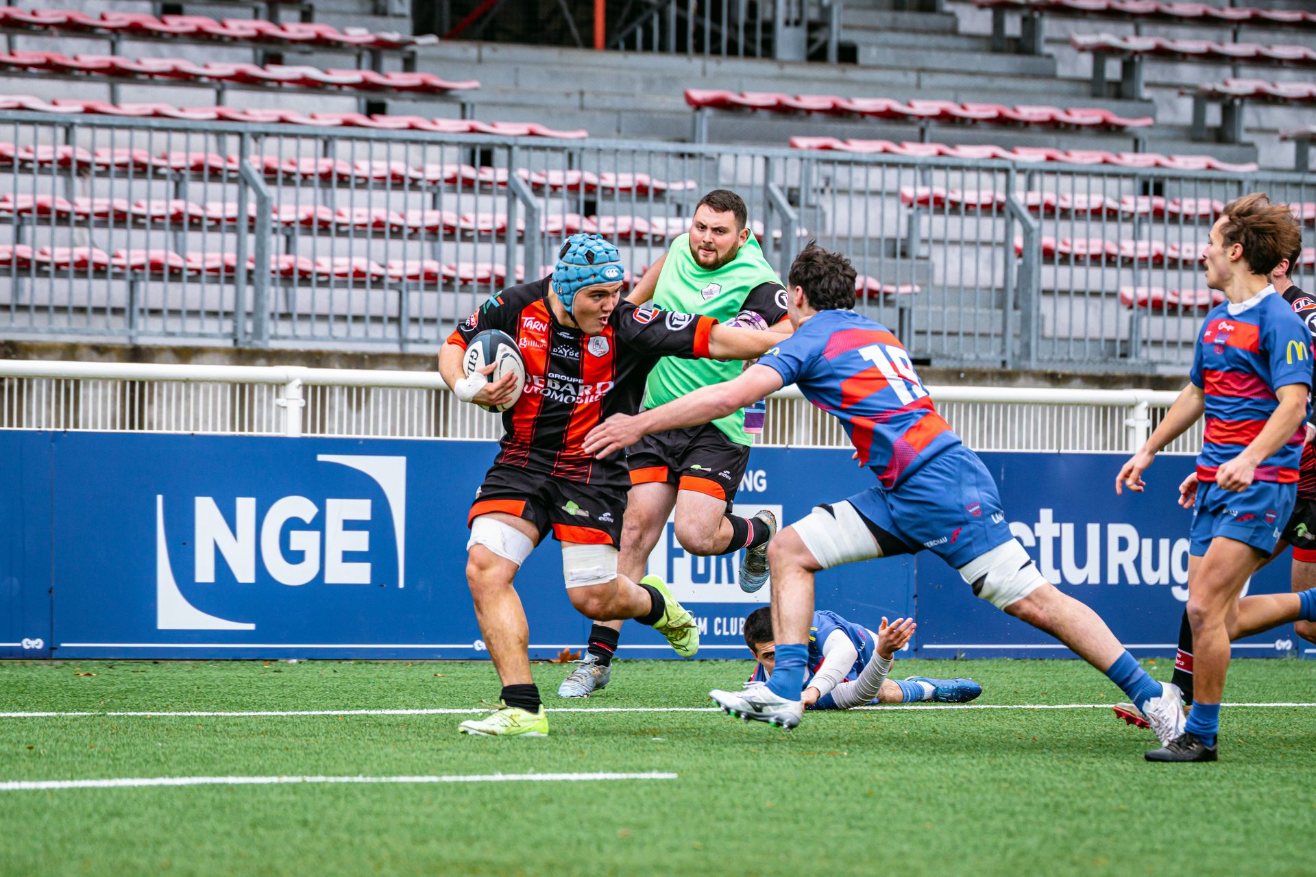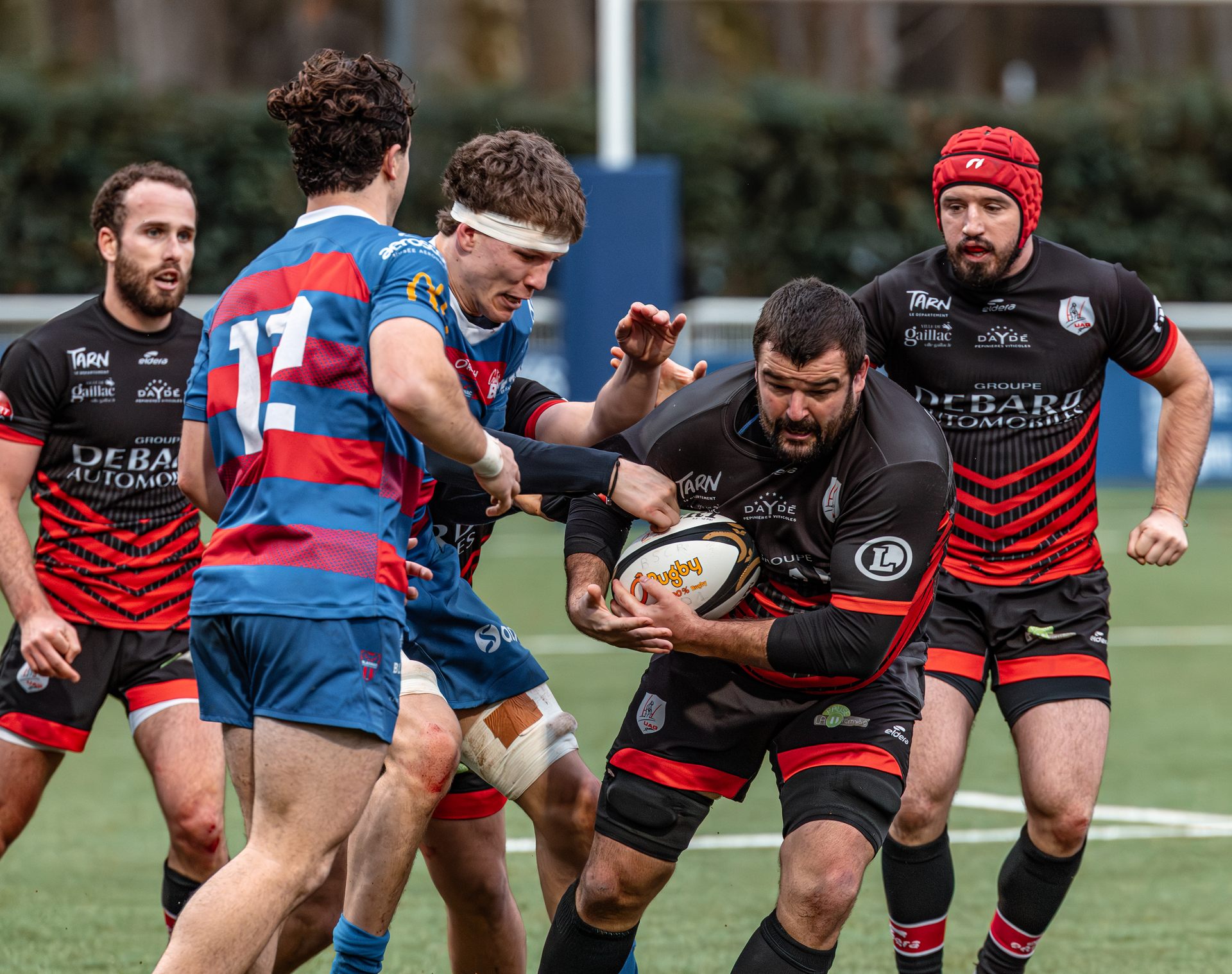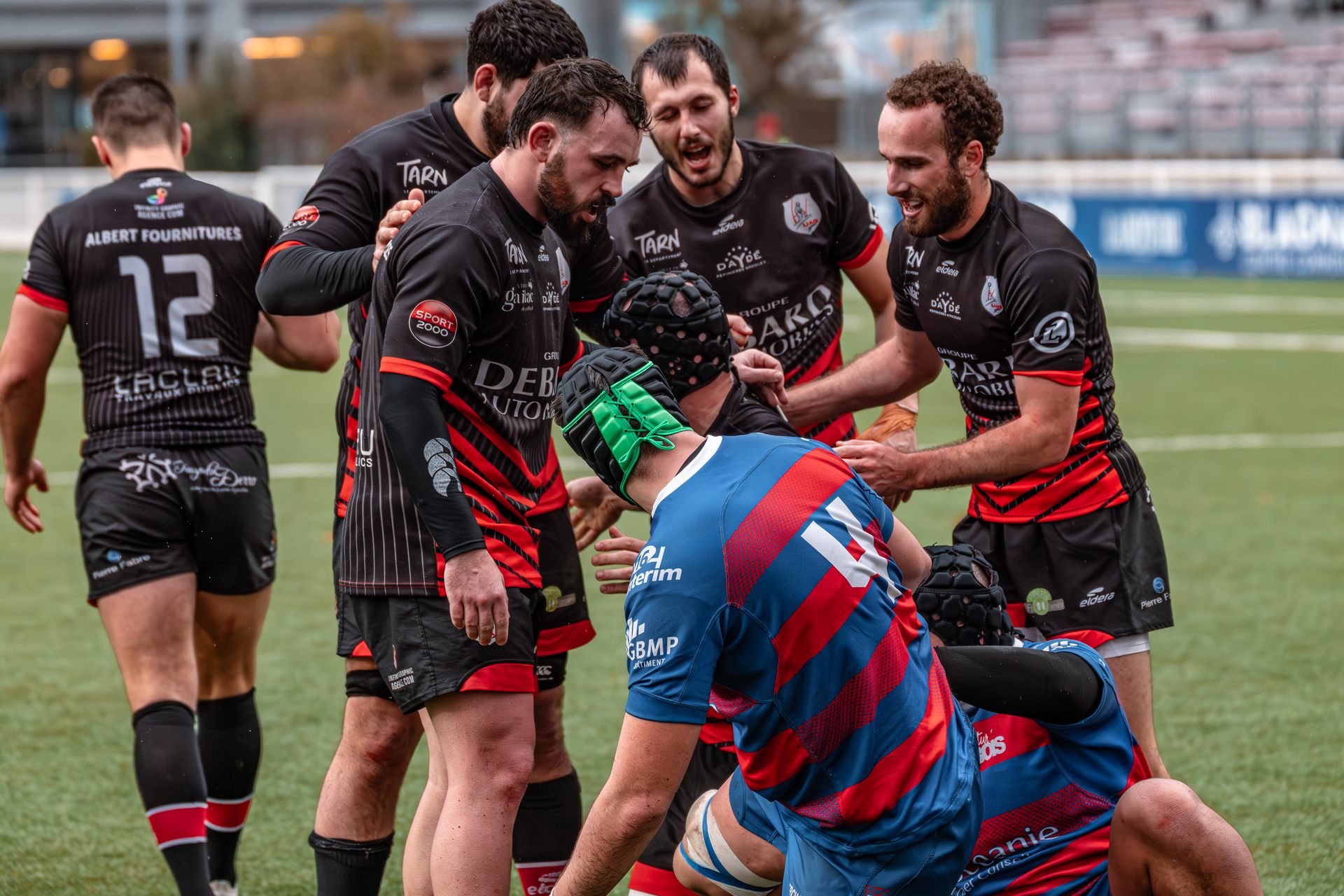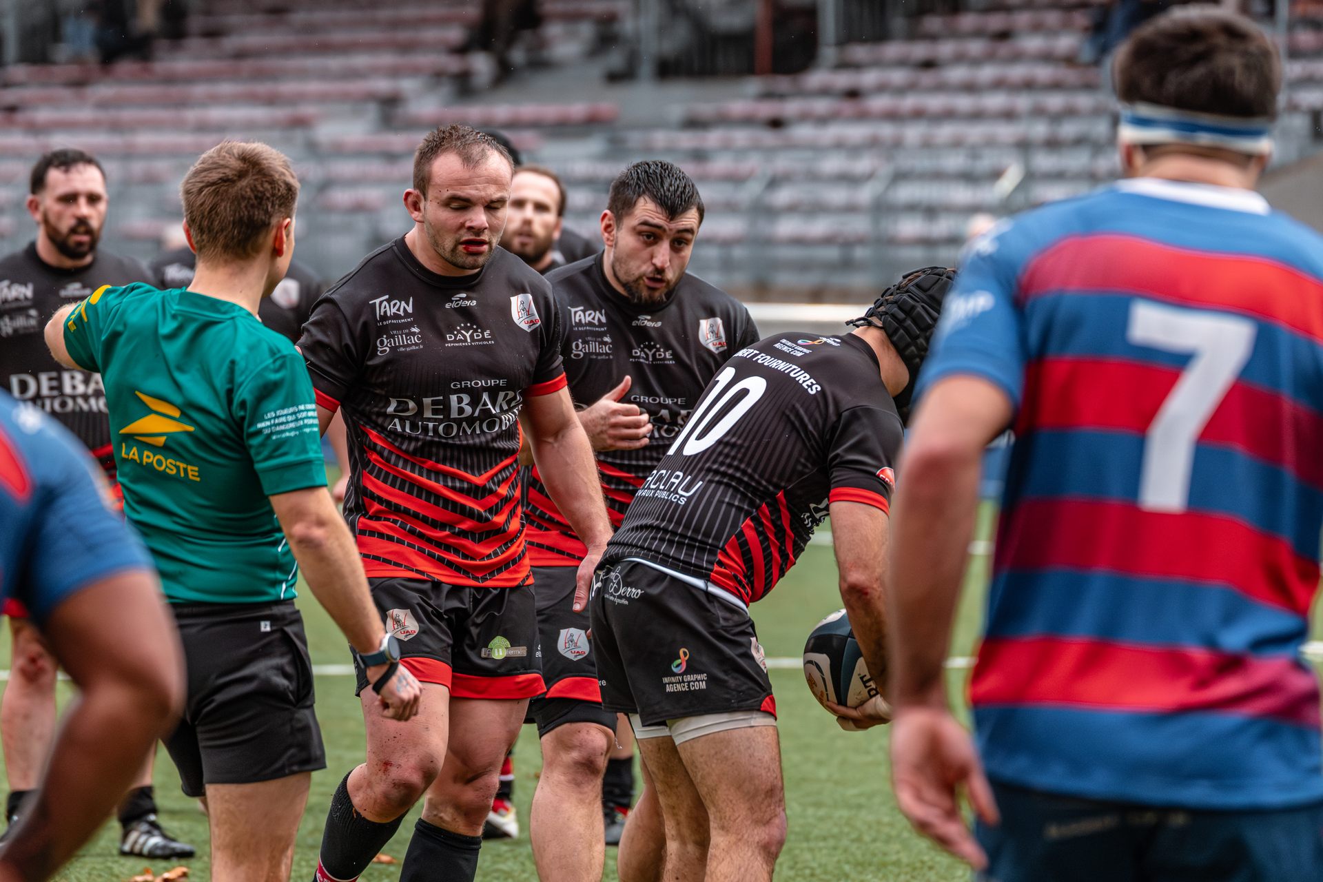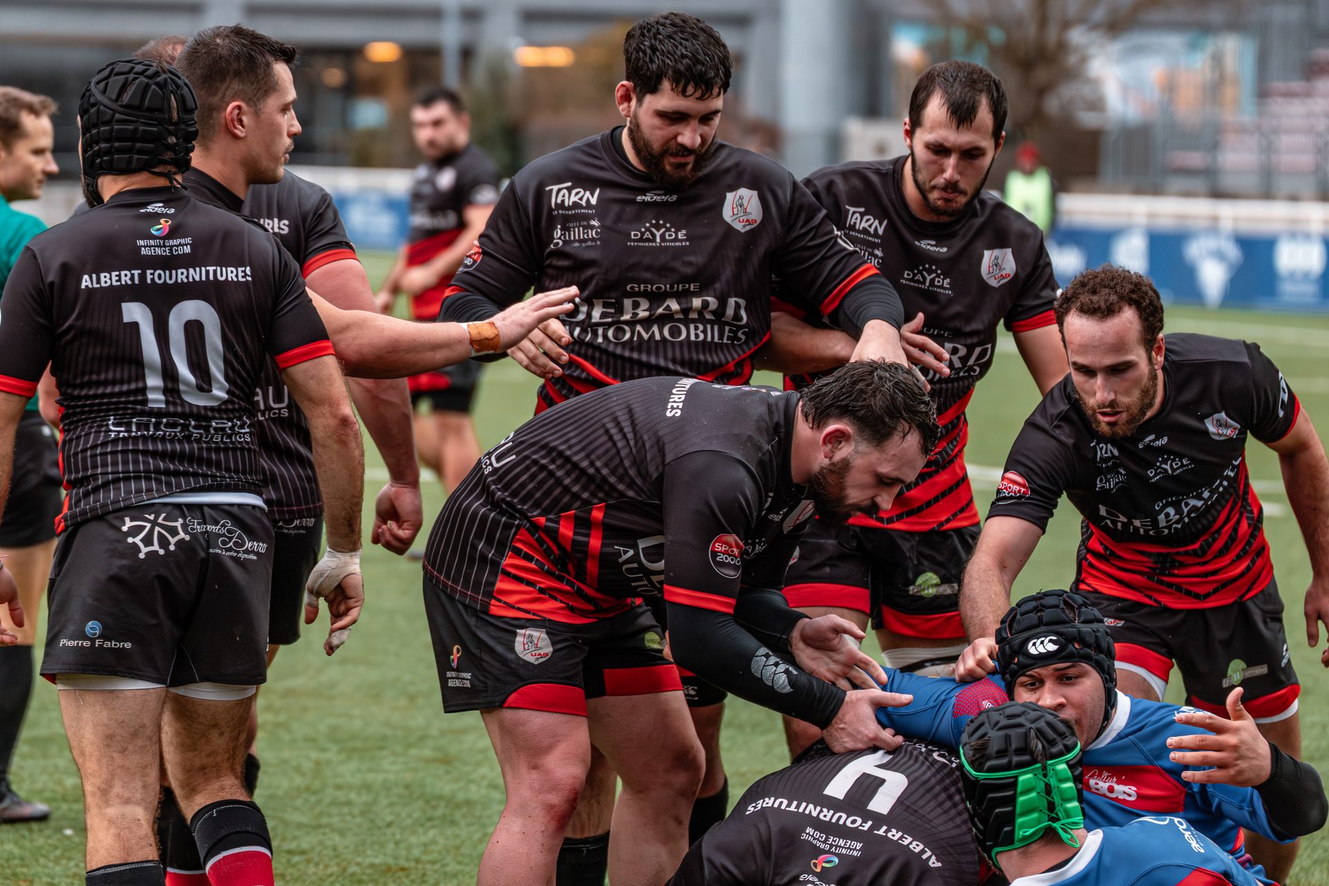 Mais c’est à ce moment-là que l’UAG montre toute sa force collective. Emmenés par un Sandrick Maciotta énorme dans l’impact, les remplaçants rouges et noirs prennent le dessus. La mêlée blagnacaise, jusque-là solide, recule.