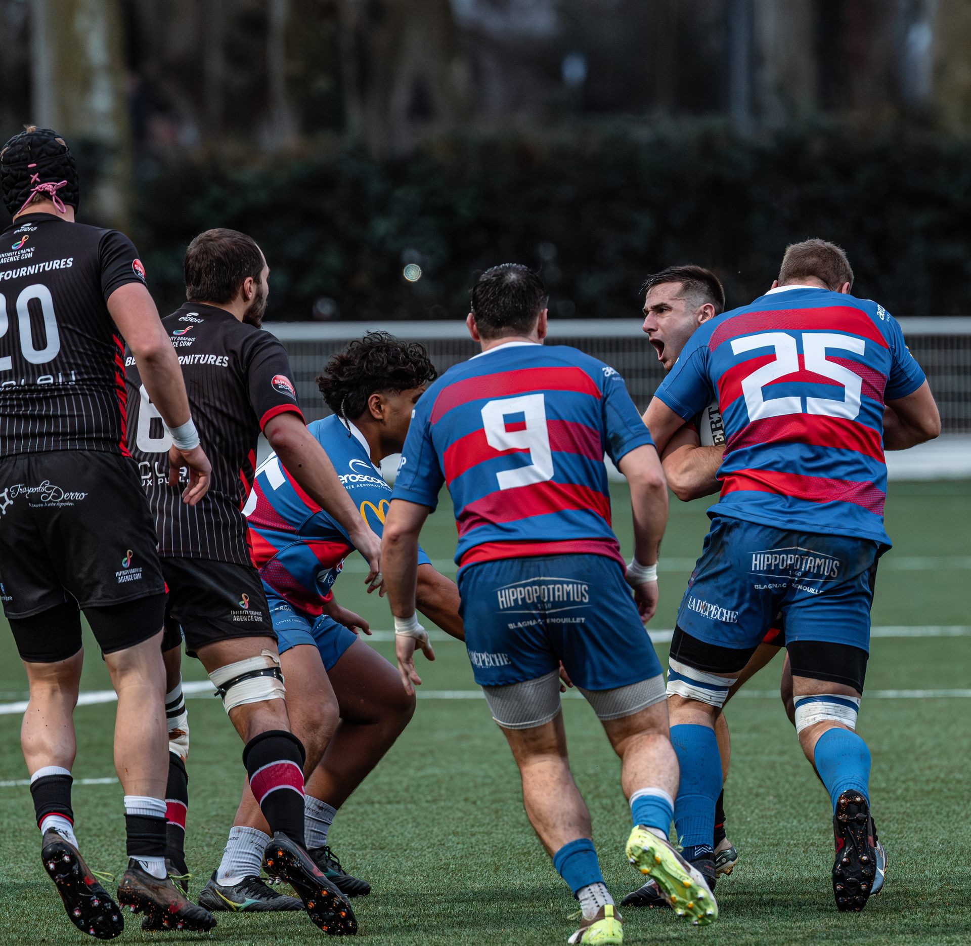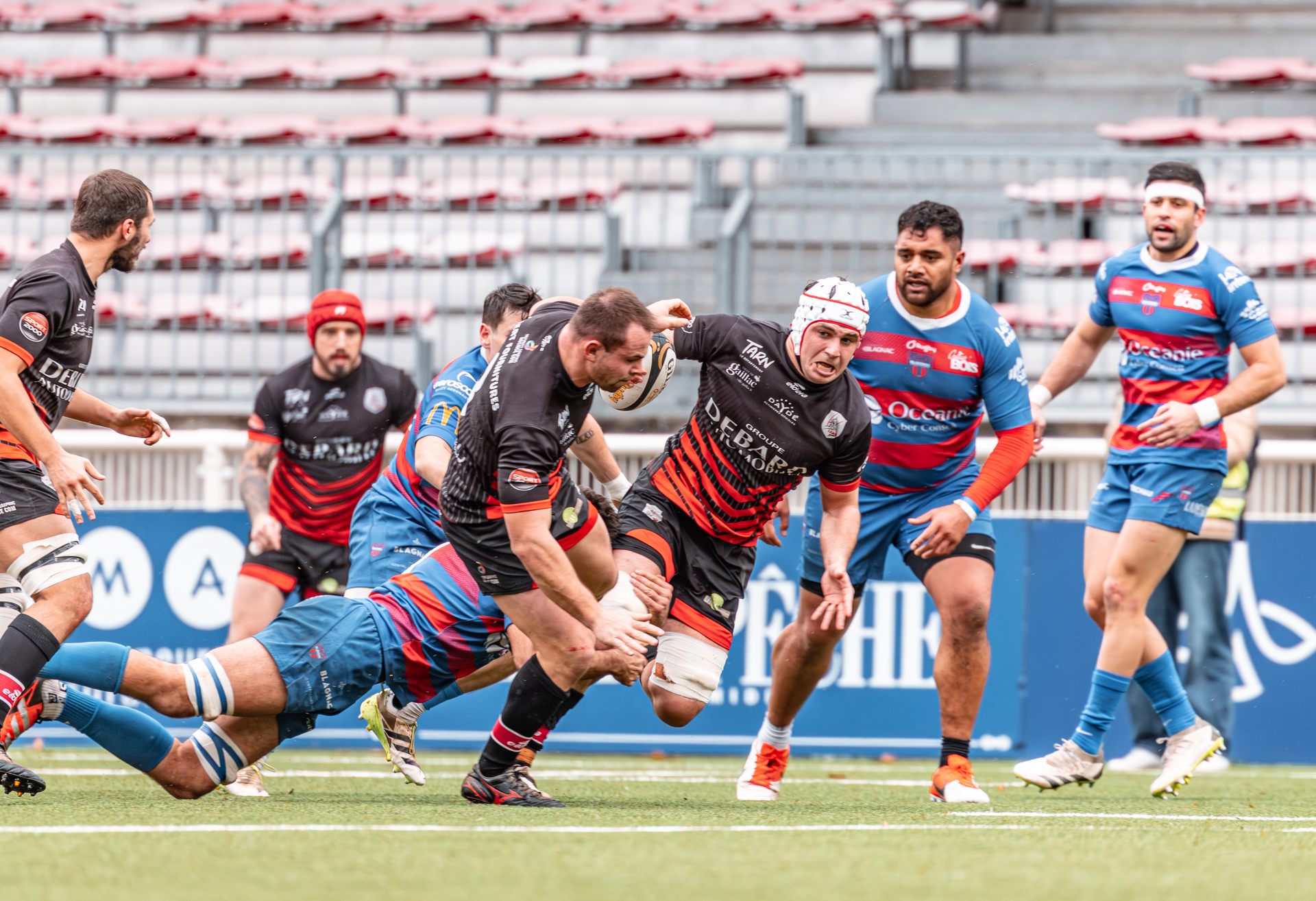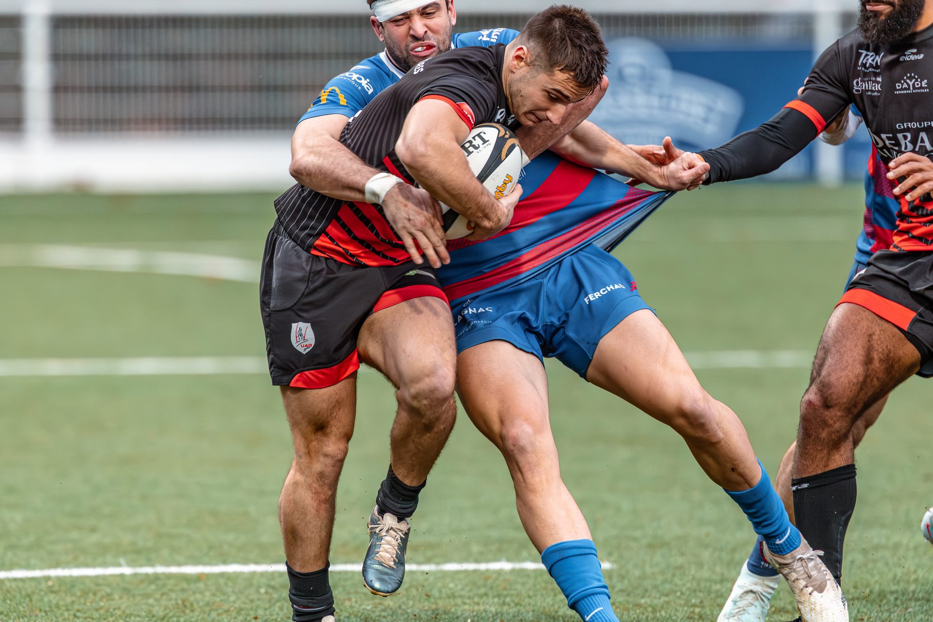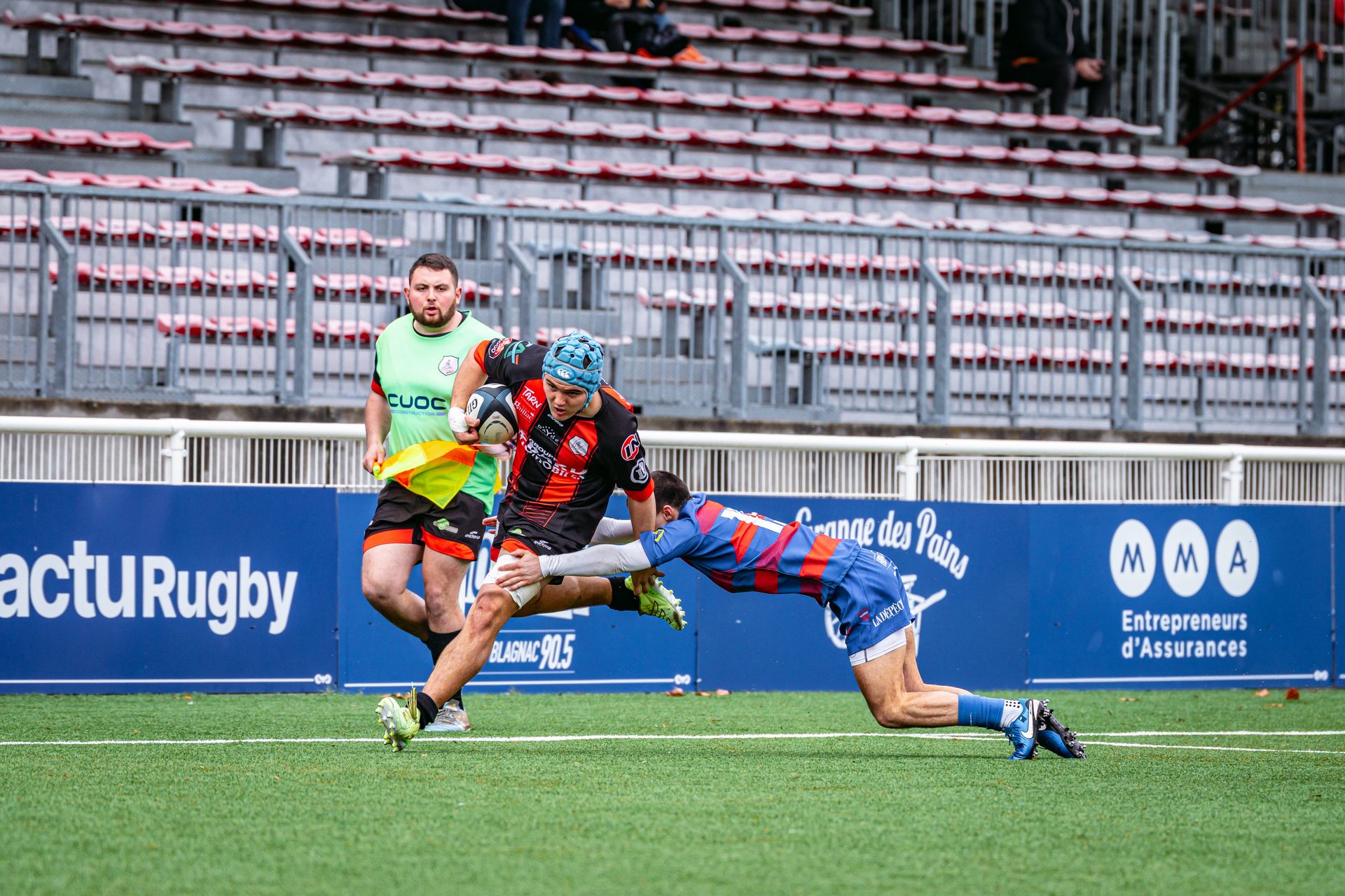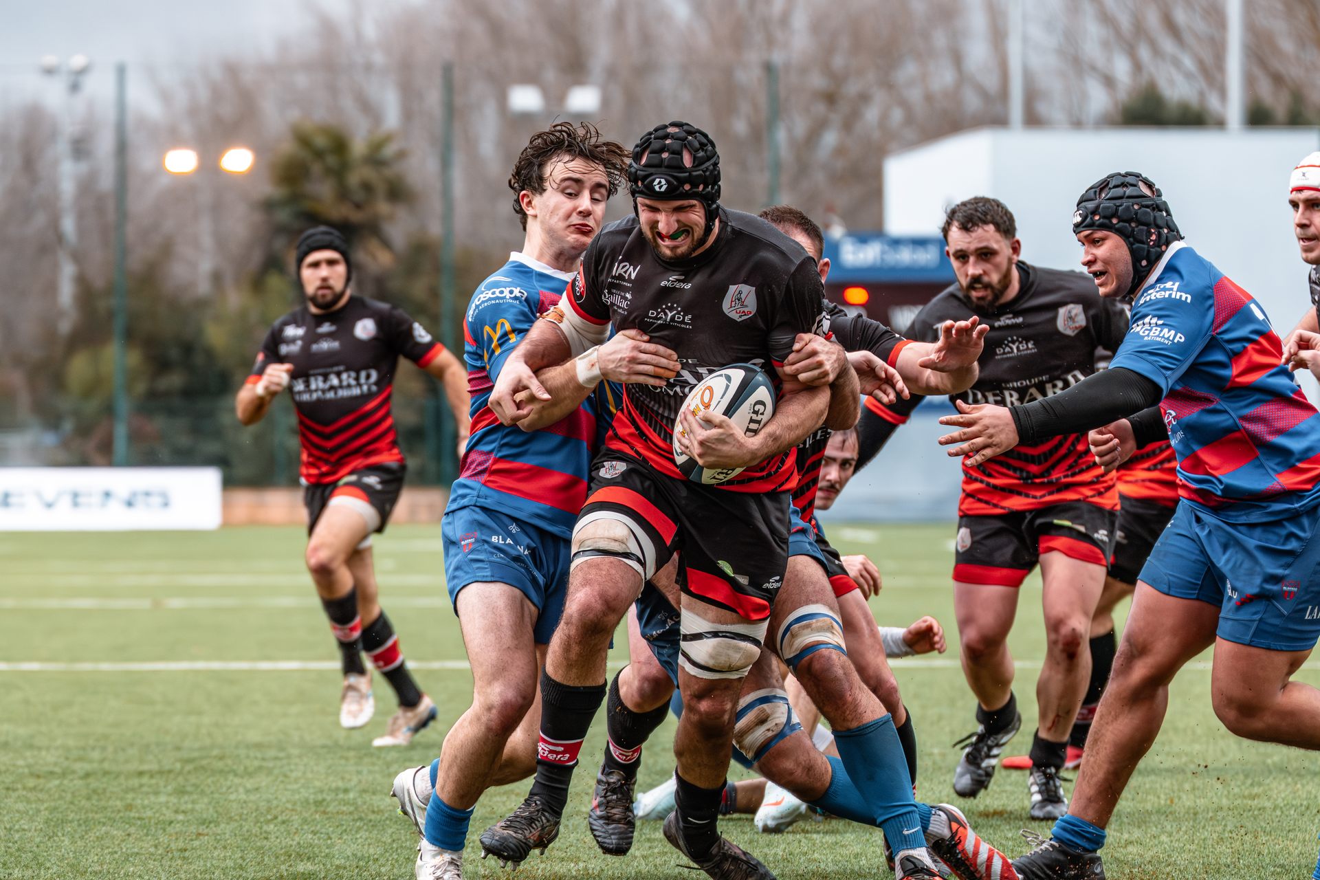Mais c’est à ce moment-là que l’UAG montre toute sa force collective. Emmenés par un Sandrick Maciotta énorme dans l’impact, les remplaçants rouges et noirs prennent le dessus. La mêlée blagnacaise, jusque-là solide, recule.