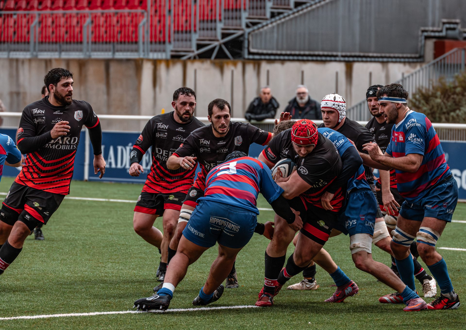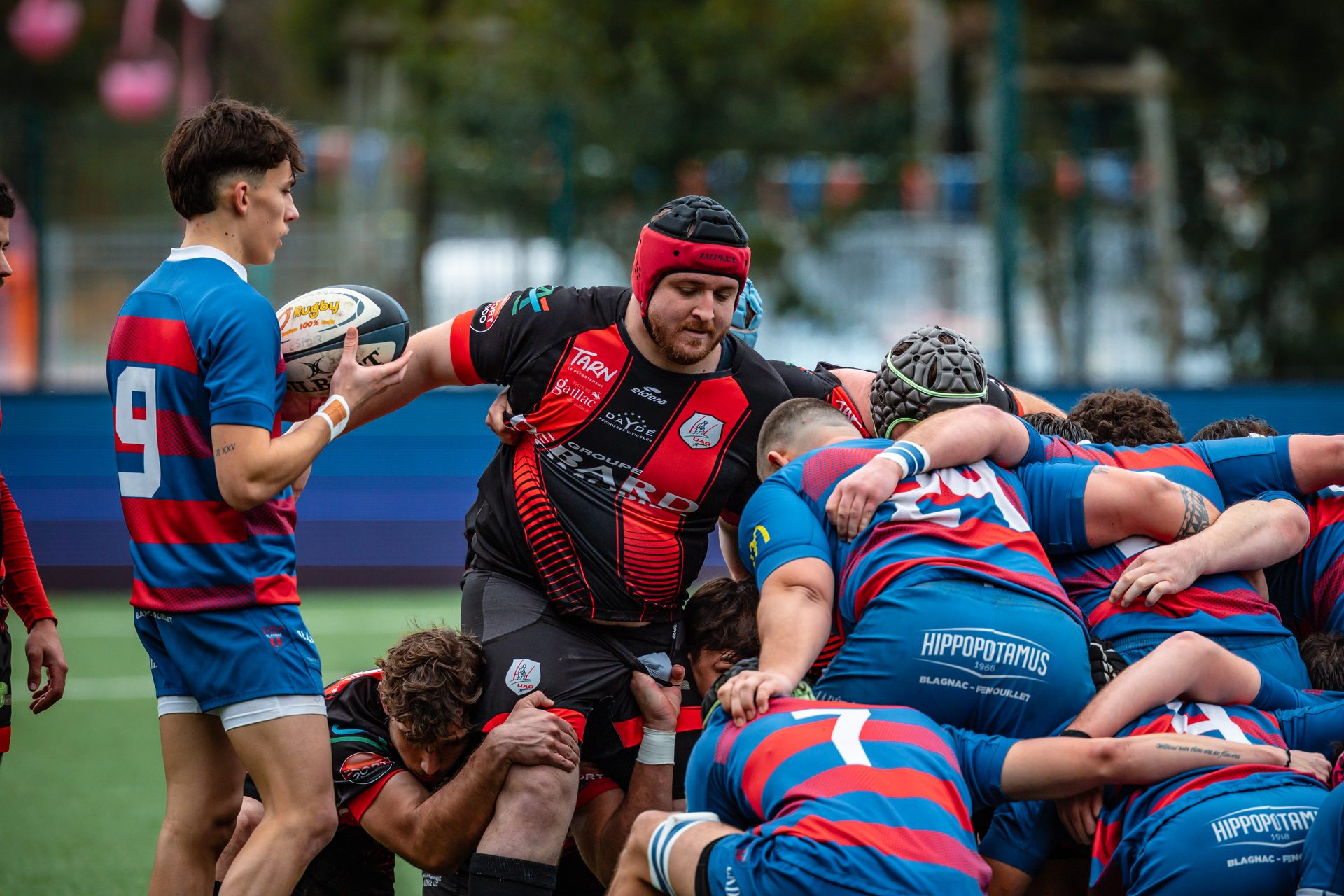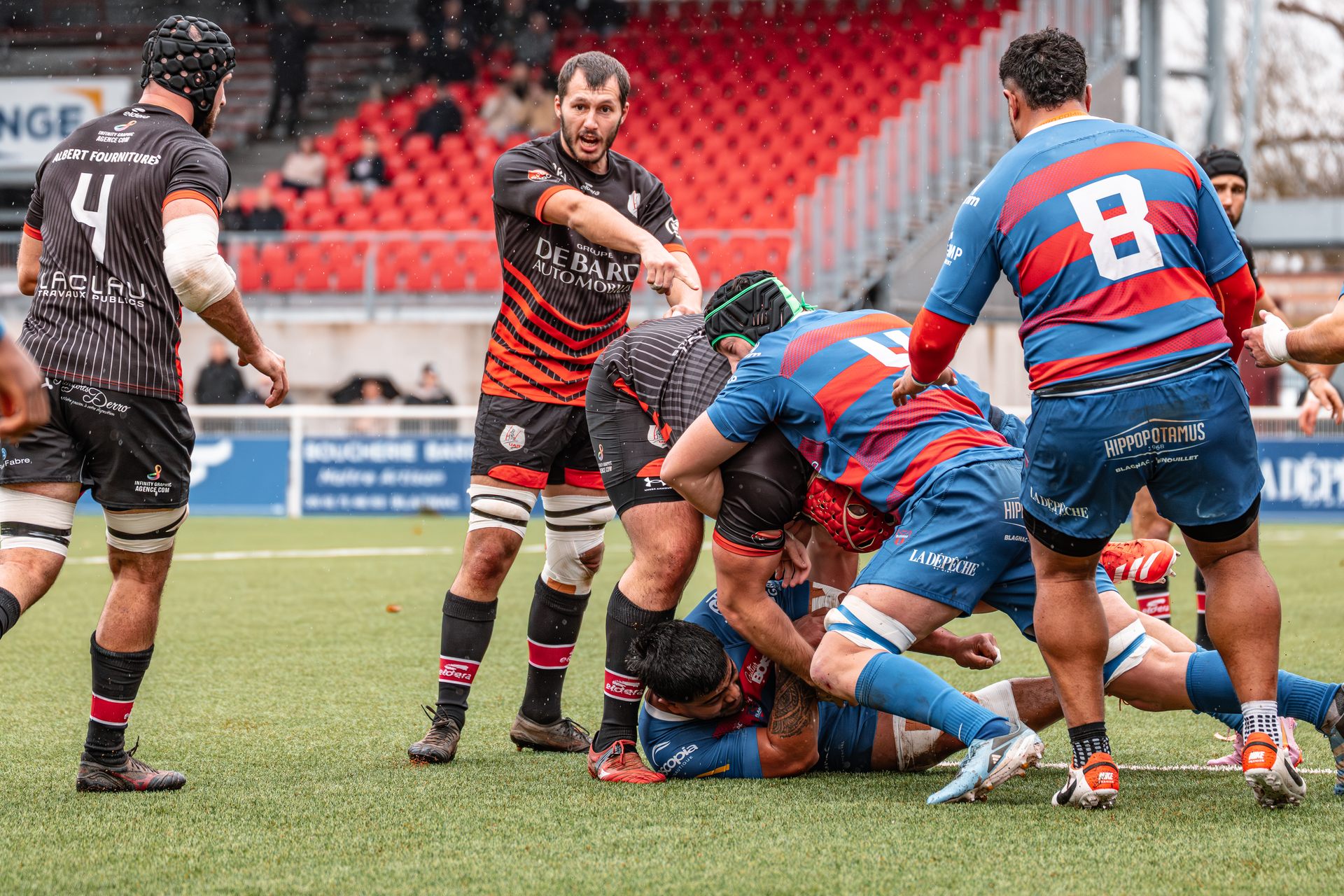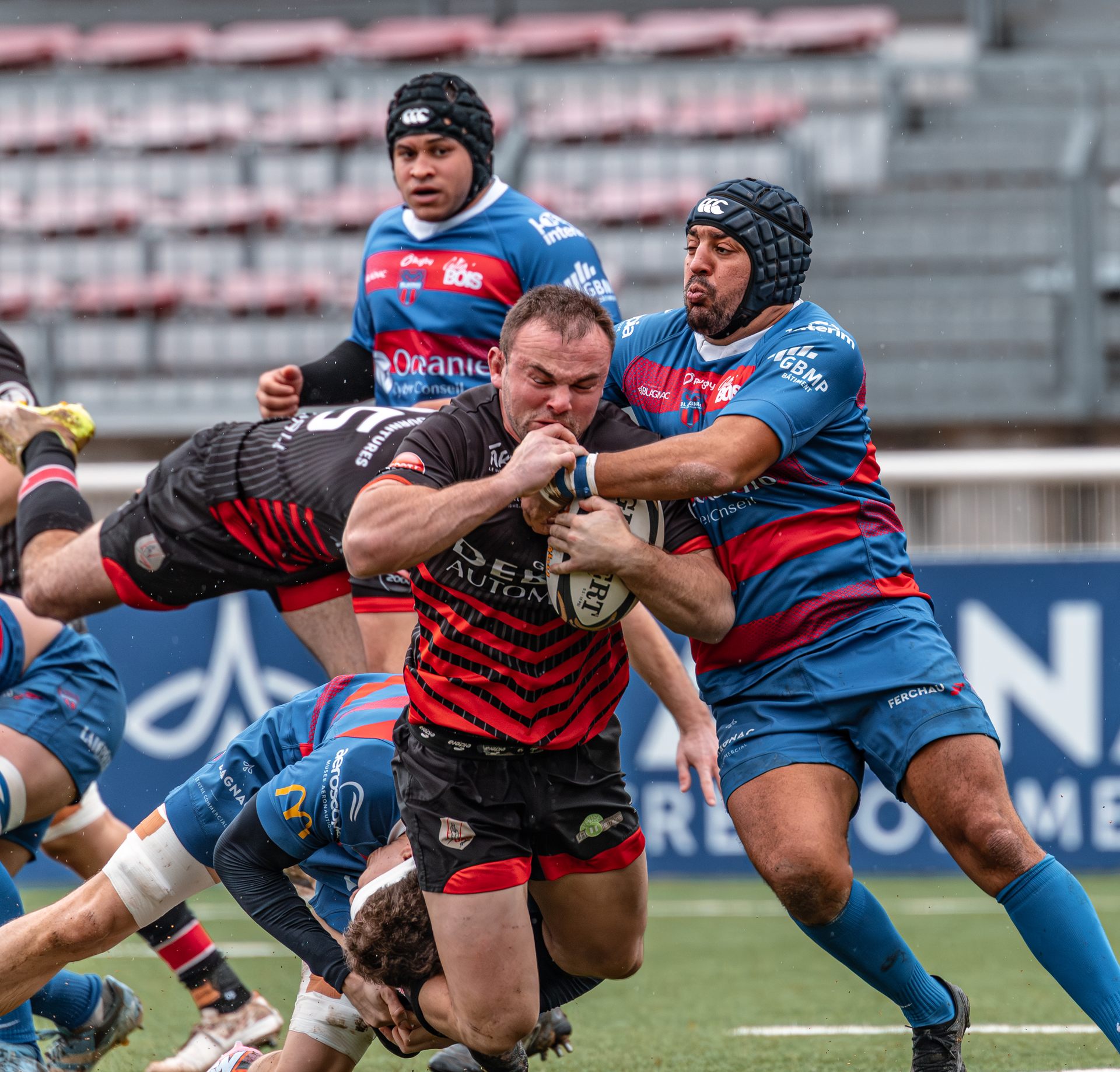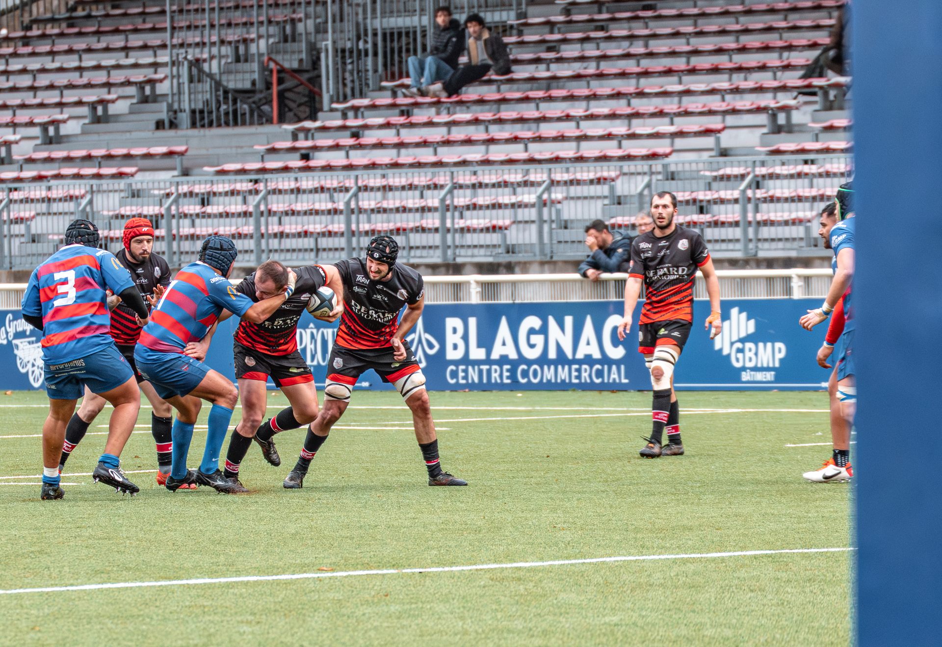 Mais c’est à ce moment-là que l’UAG montre toute sa force collective. Emmenés par un Sandrick Maciotta énorme dans l’impact, les remplaçants rouges et noirs prennent le dessus. La mêlée blagnacaise, jusque-là solide, recule.