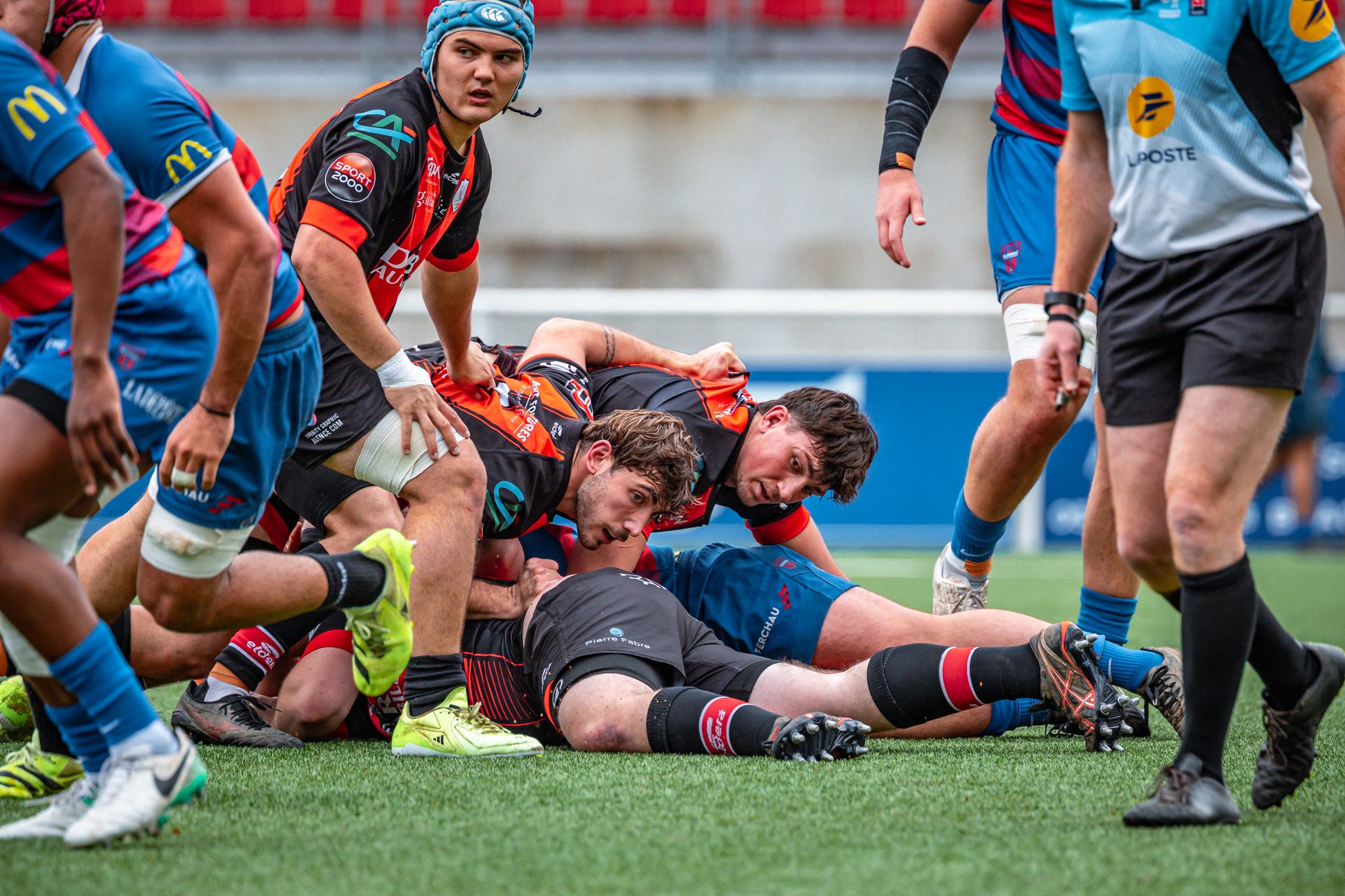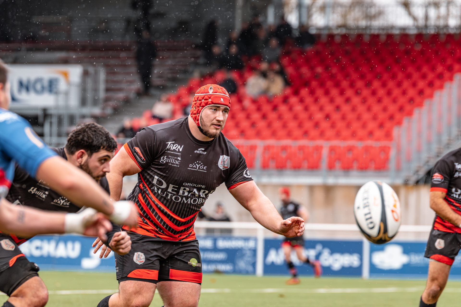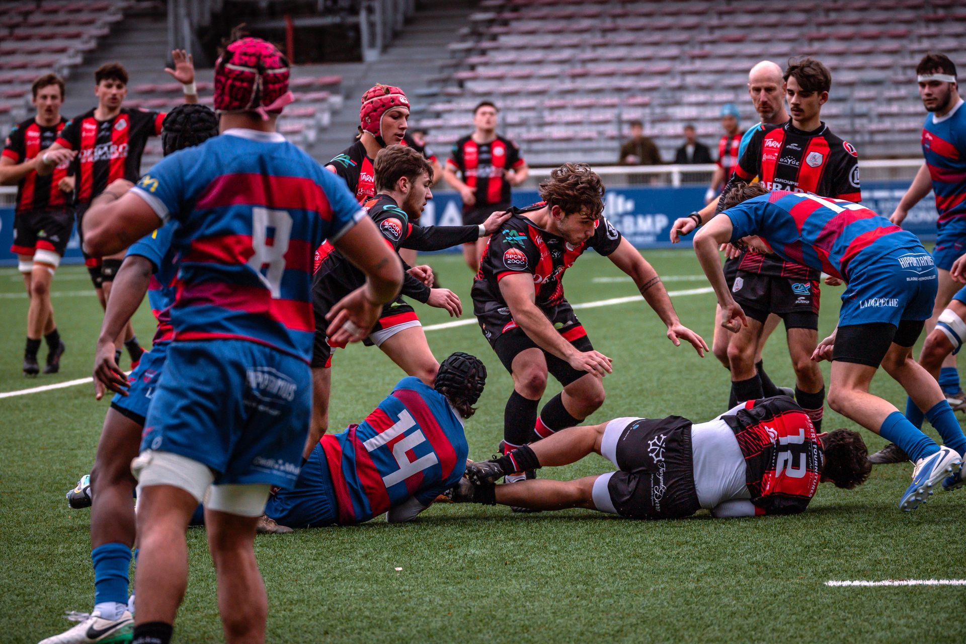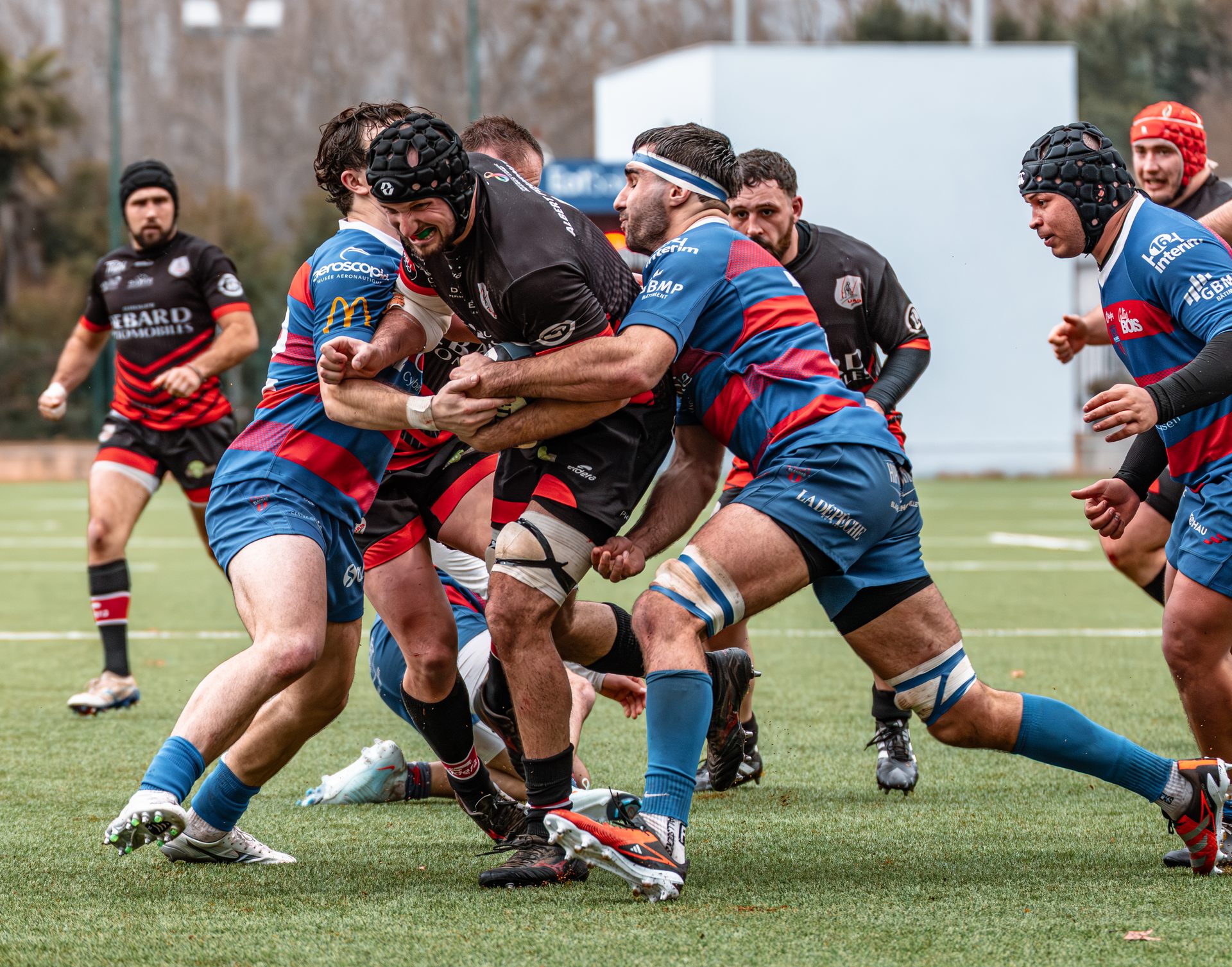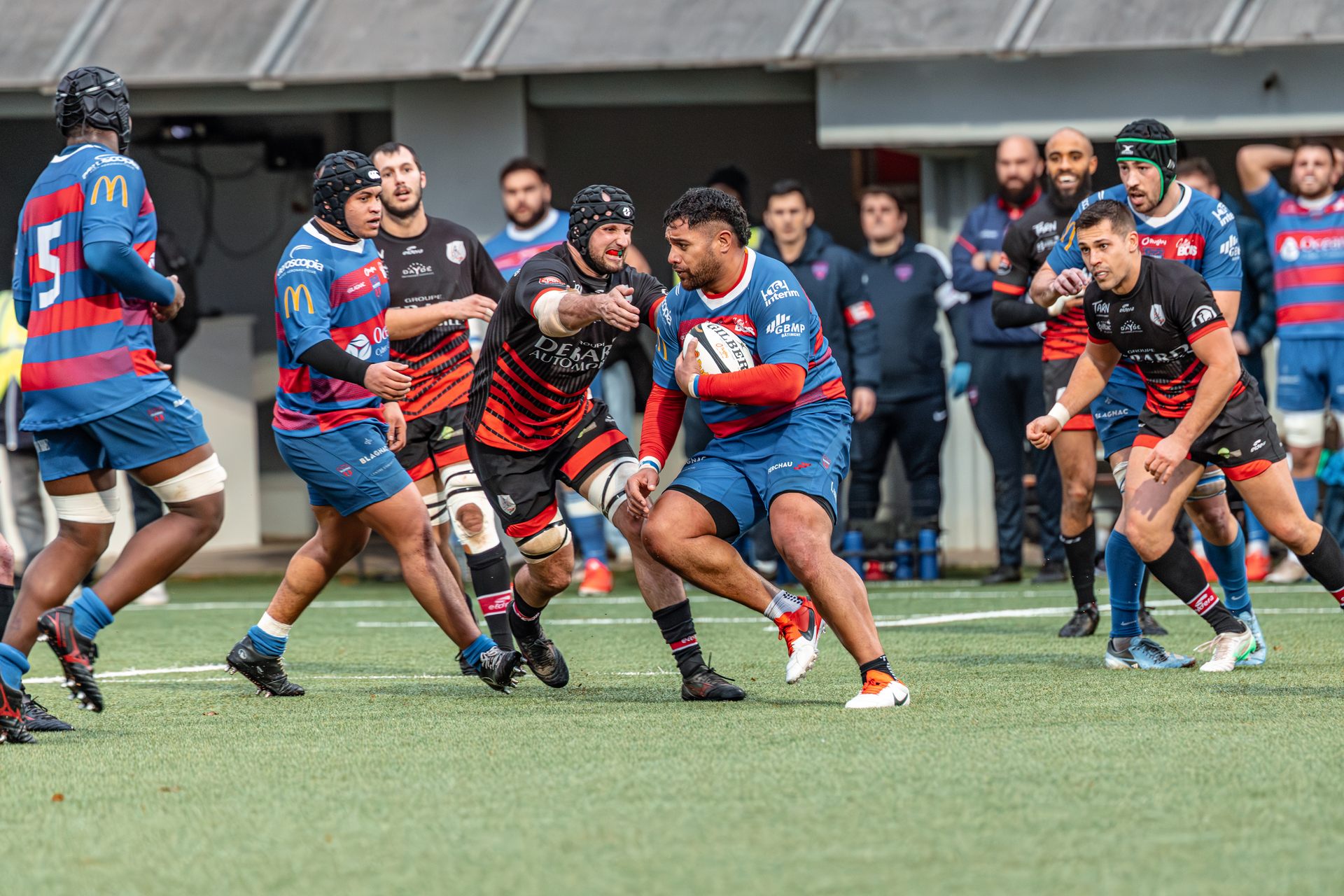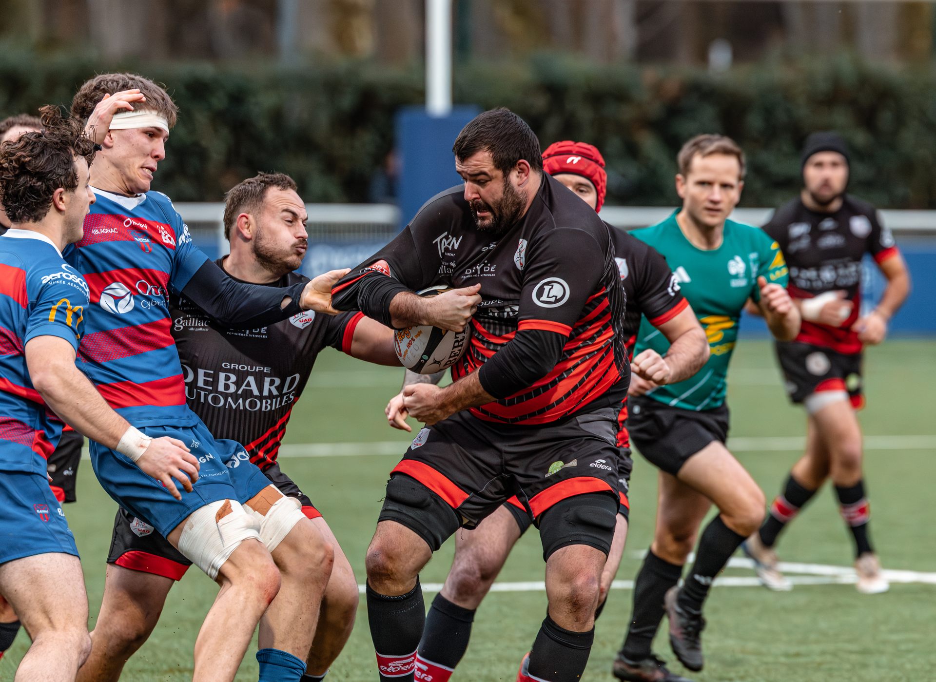 Mais c’est à ce moment-là que l’UAG montre toute sa force collective. Emmenés par un Sandrick Maciotta énorme dans l’impact, les remplaçants rouges et noirs prennent le dessus. La mêlée blagnacaise, jusque-là solide, recule.