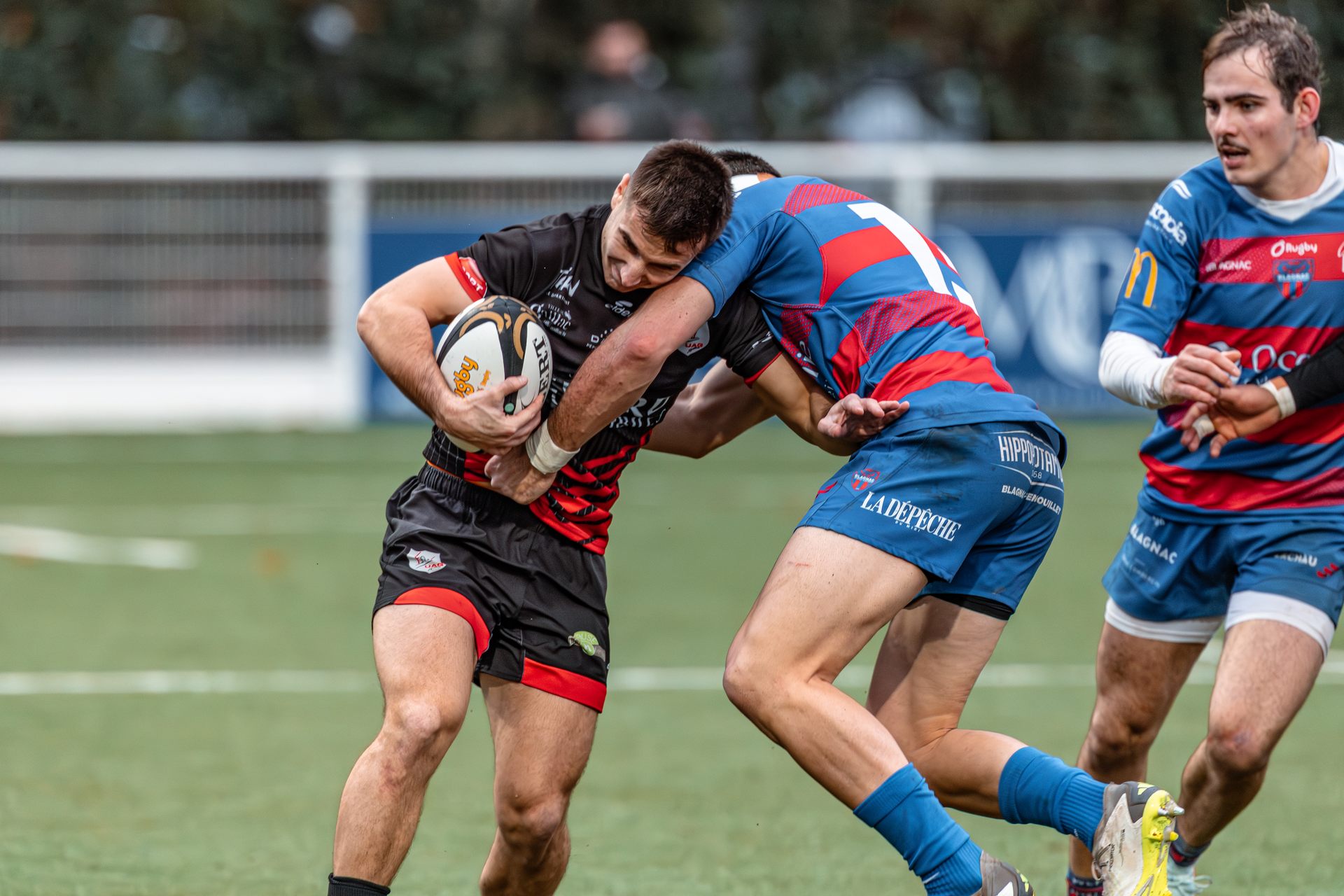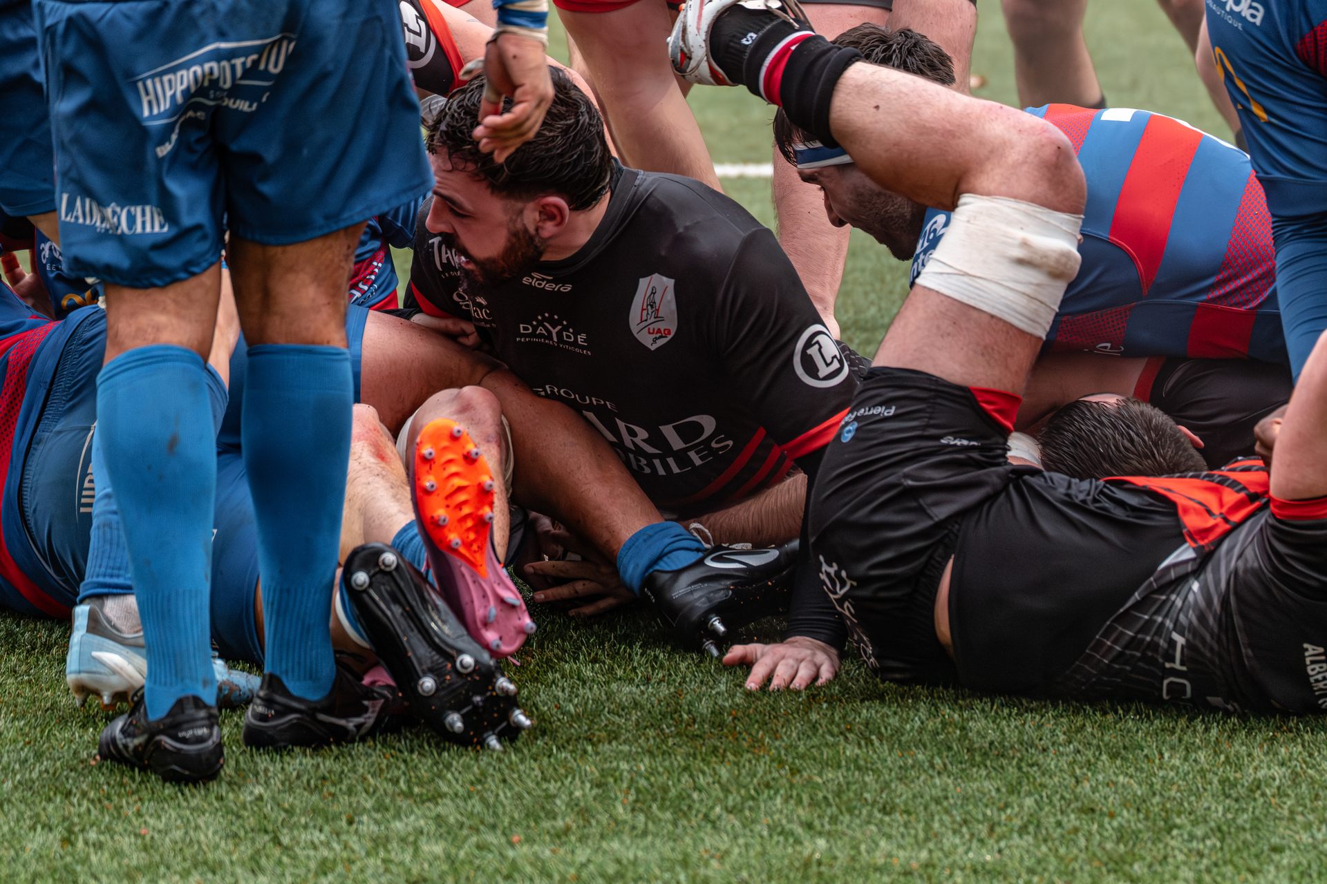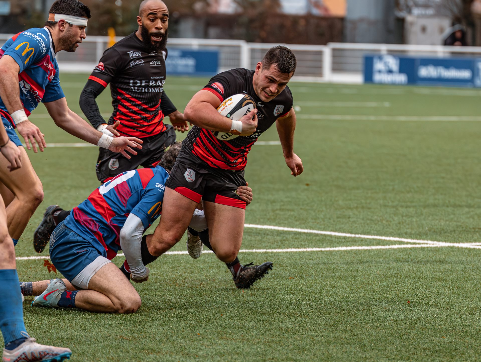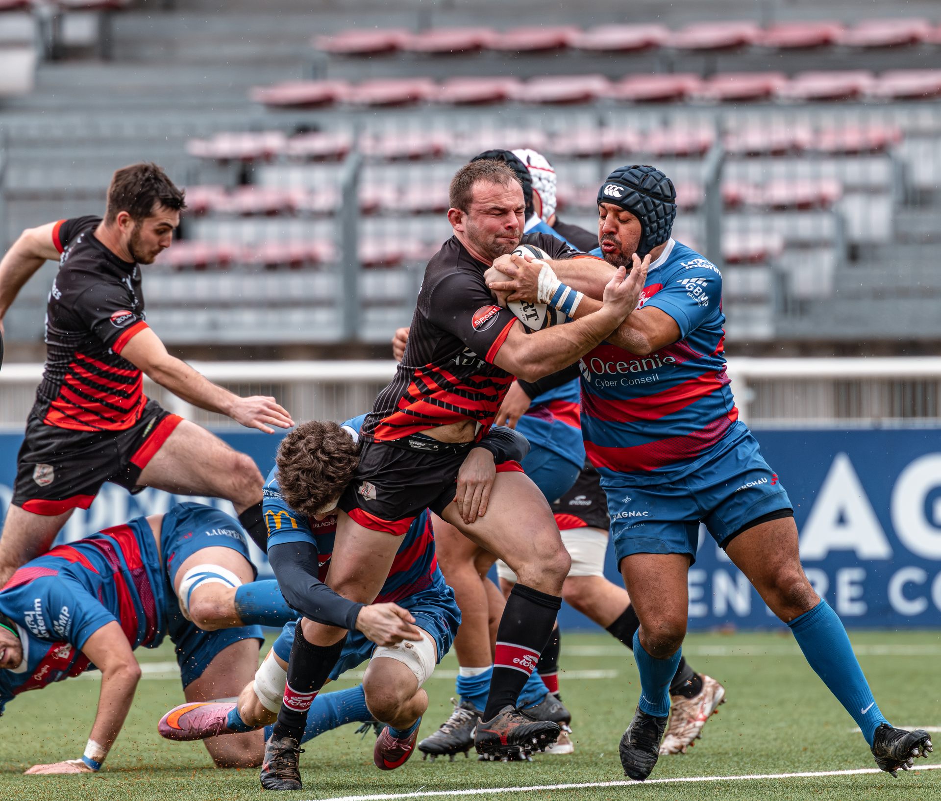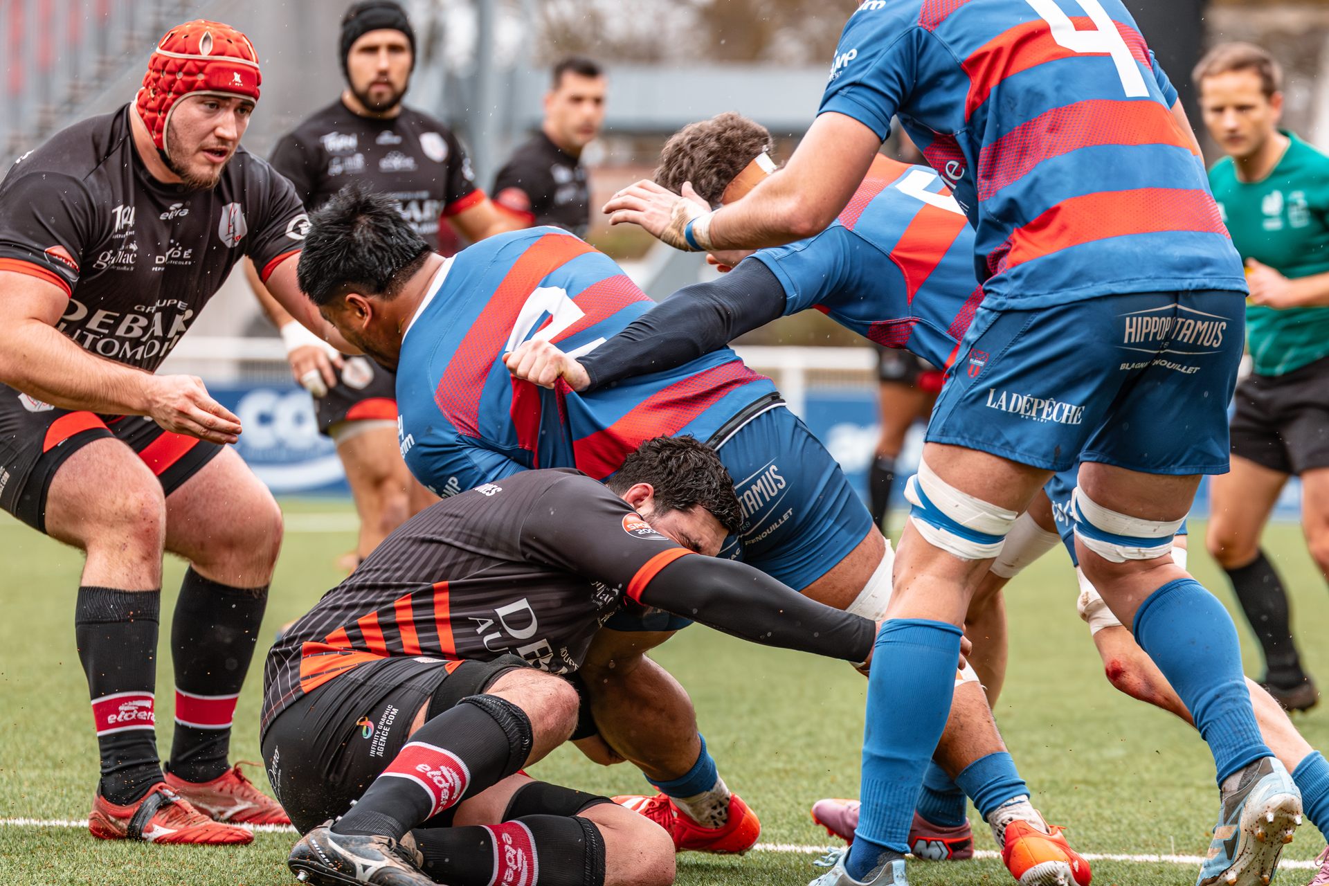 Mais c’est à ce moment-là que l’UAG montre toute sa force collective. Emmenés par un Sandrick Maciotta énorme dans l’impact, les remplaçants rouges et noirs prennent le dessus. La mêlée blagnacaise, jusque-là solide, recule.