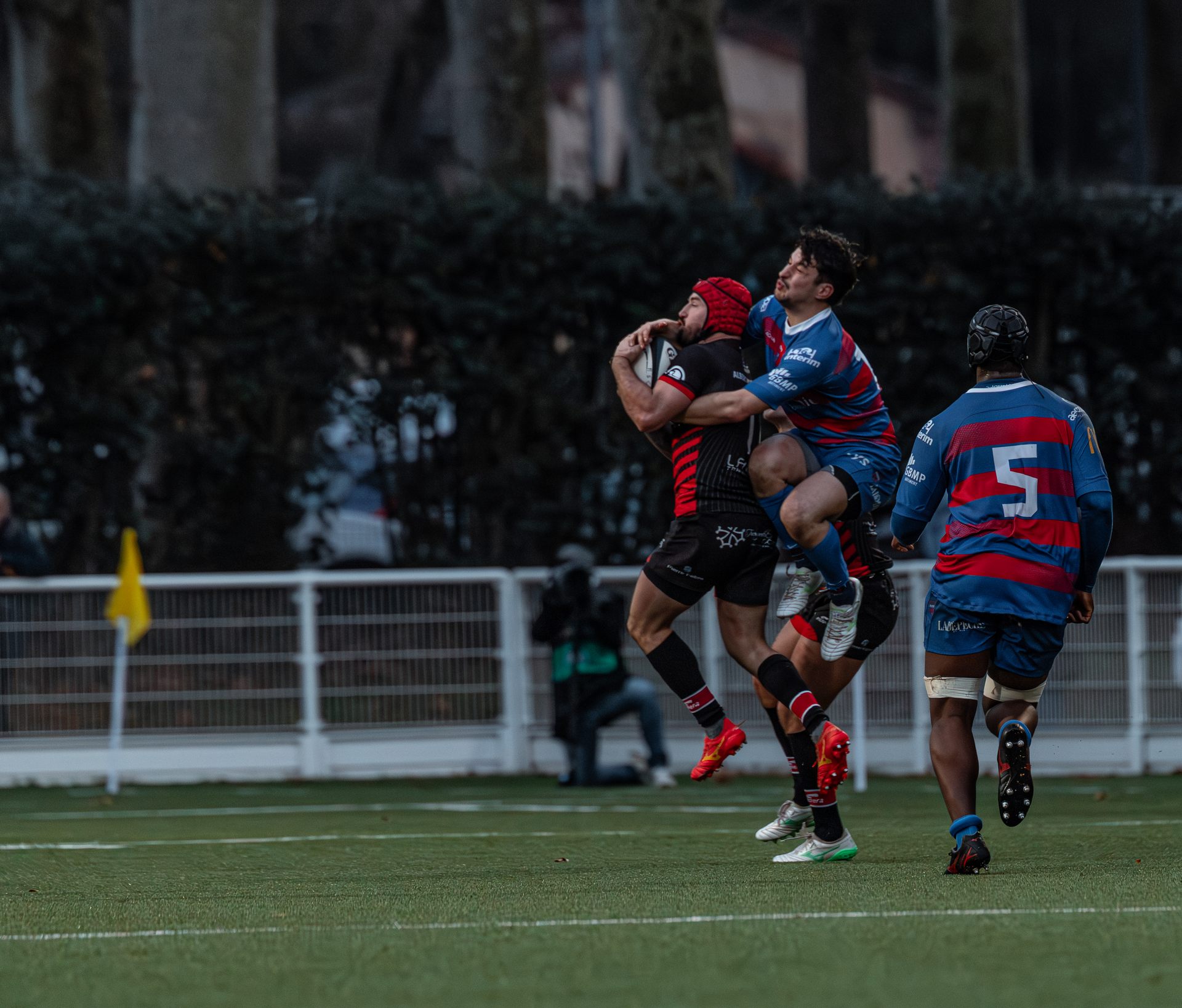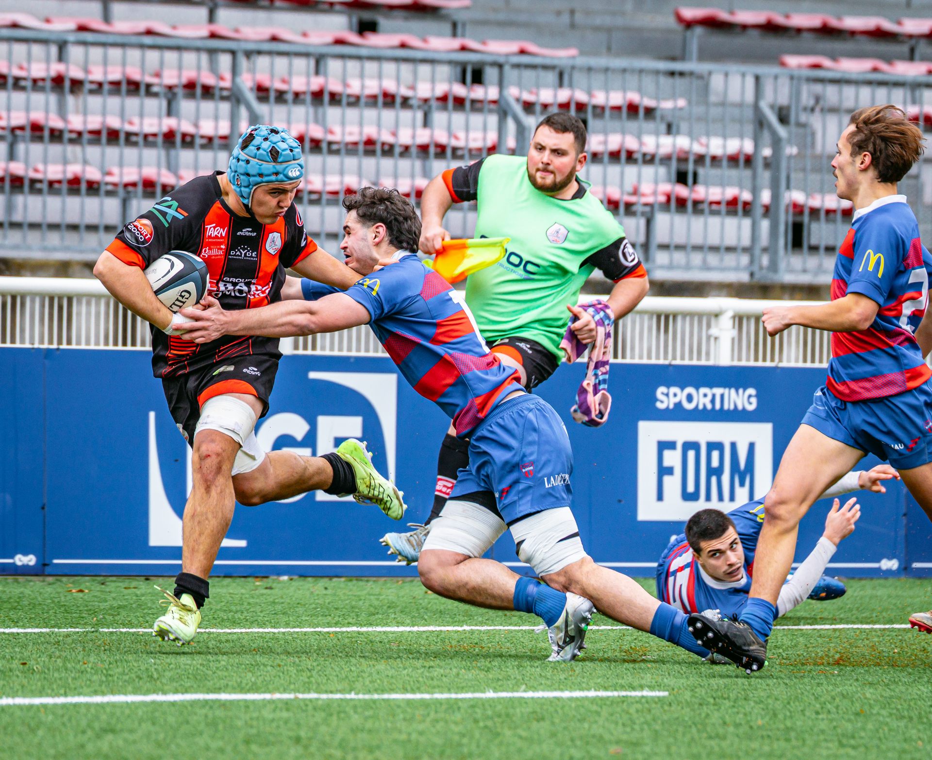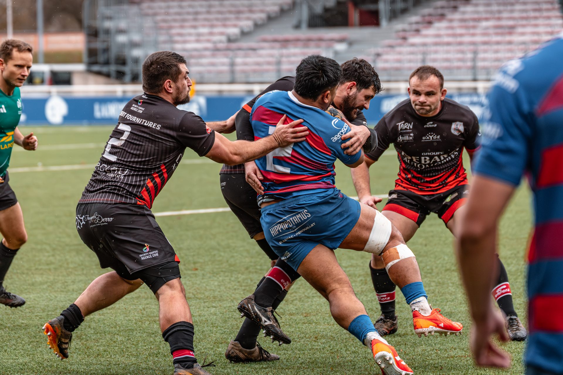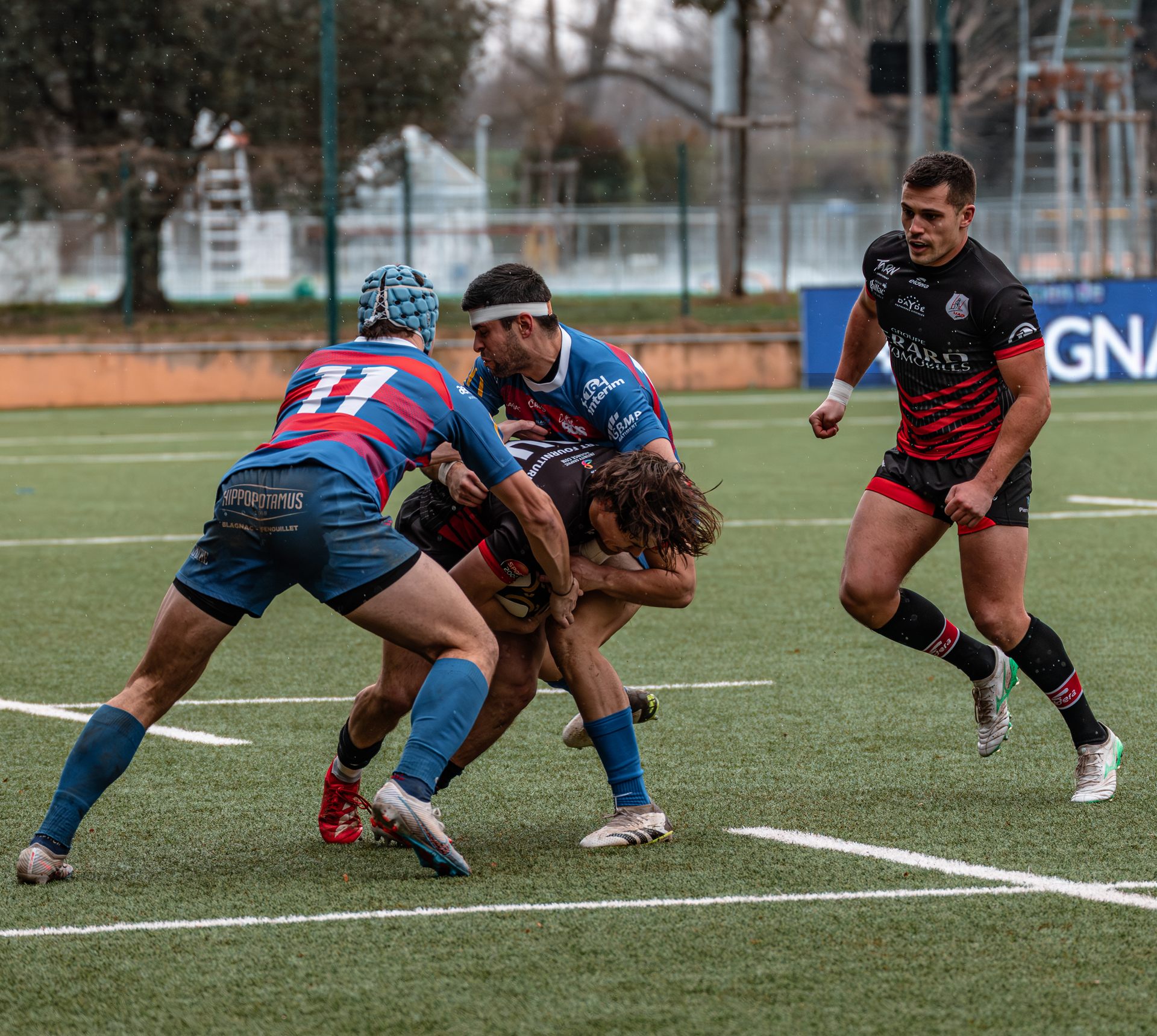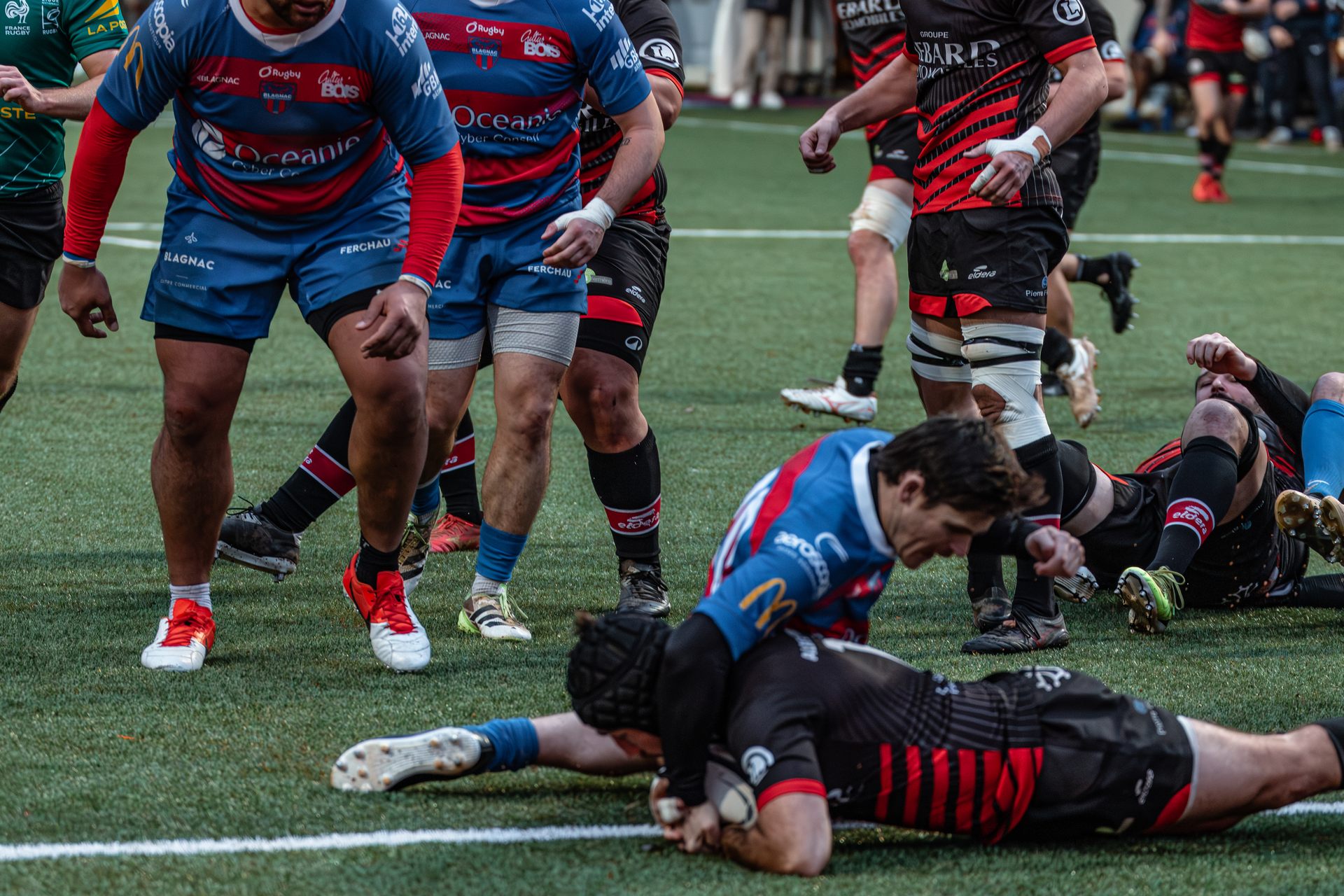Mais c’est à ce moment-là que l’UAG montre toute sa force collective. Emmenés par un Sandrick Maciotta énorme dans l’impact, les remplaçants rouges et noirs prennent le dessus. La mêlée blagnacaise, jusque-là solide, recule.