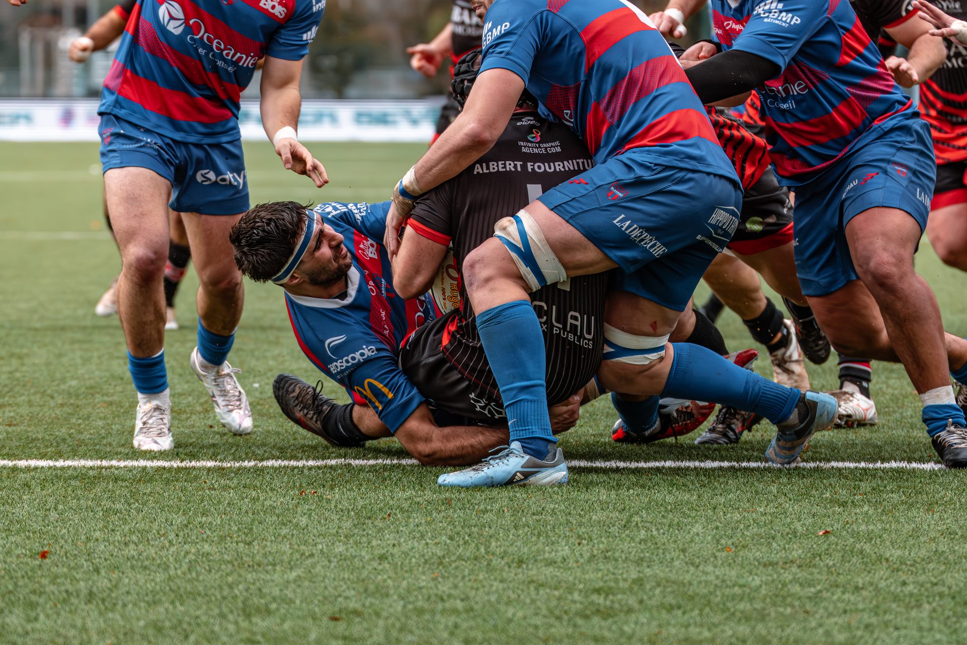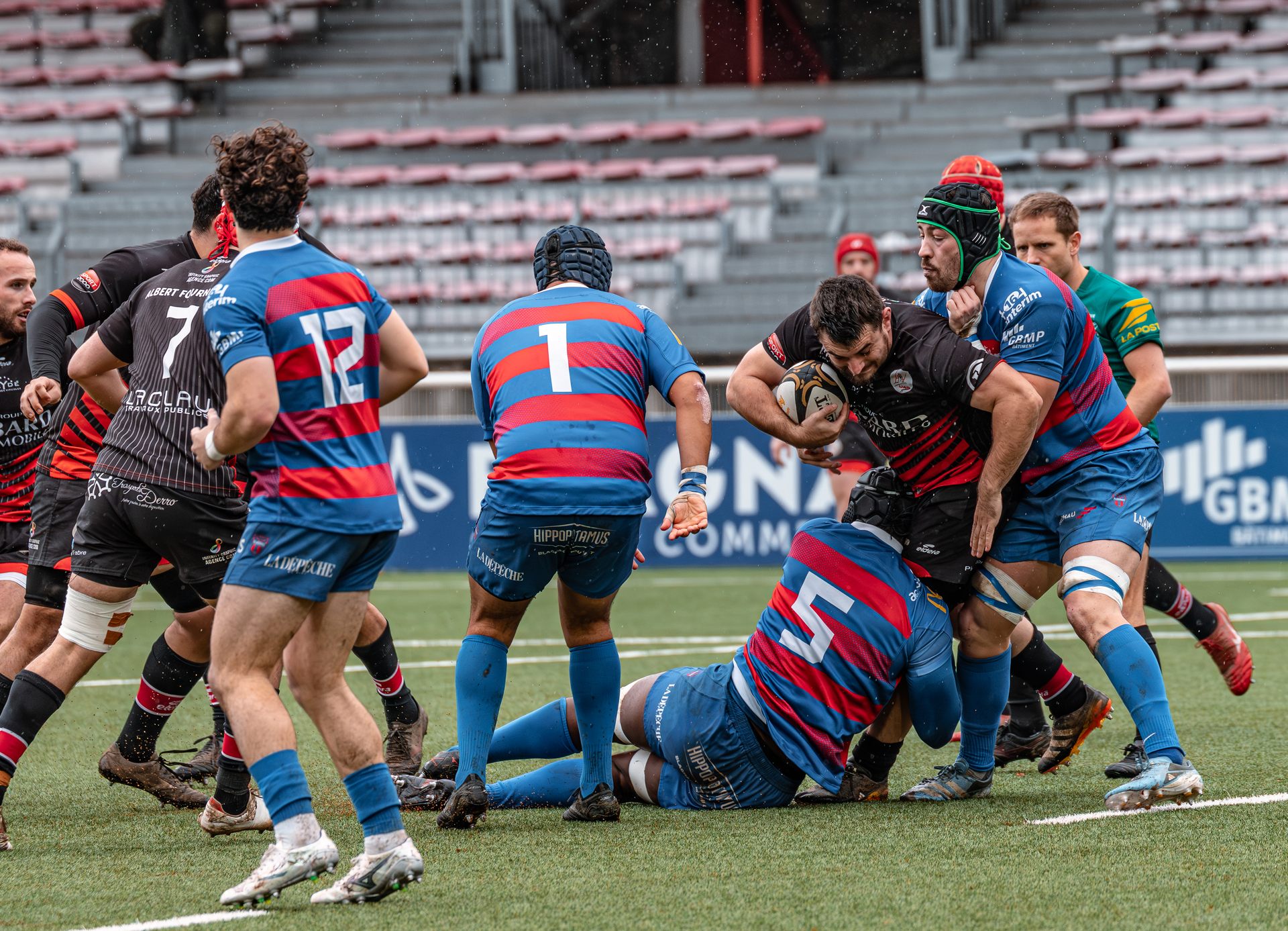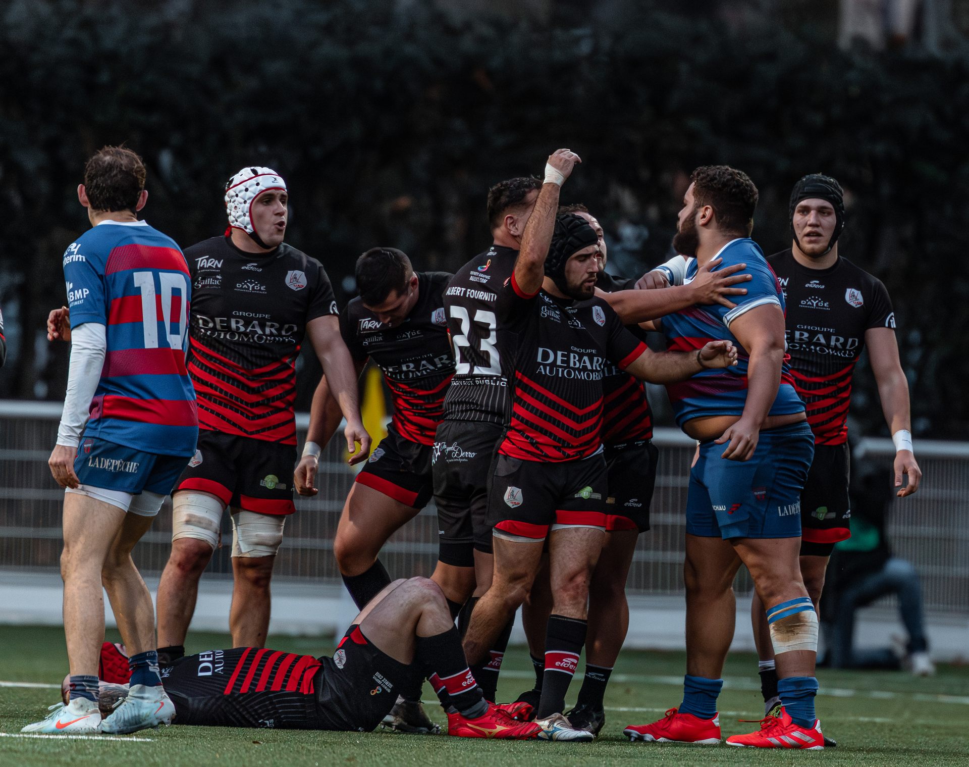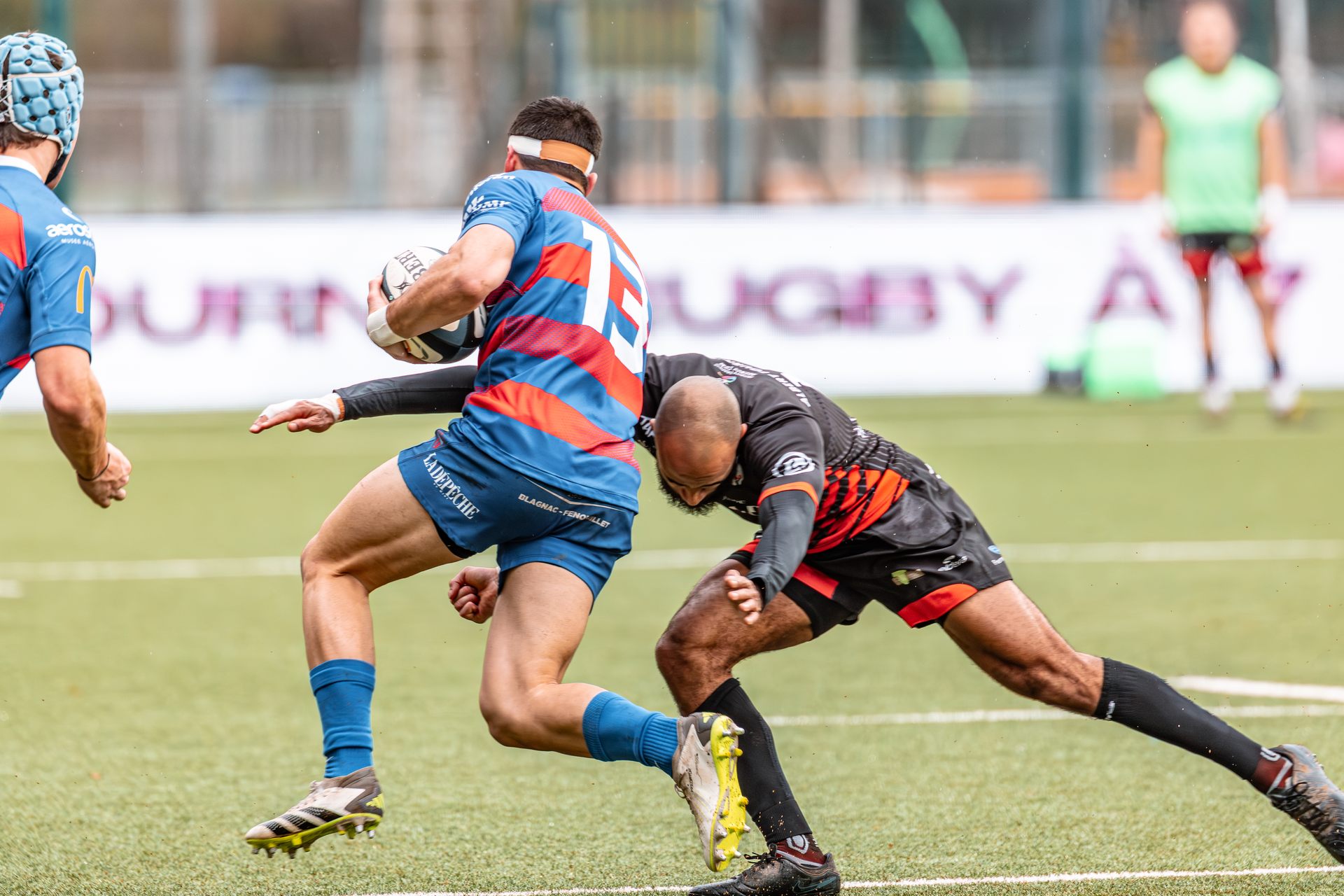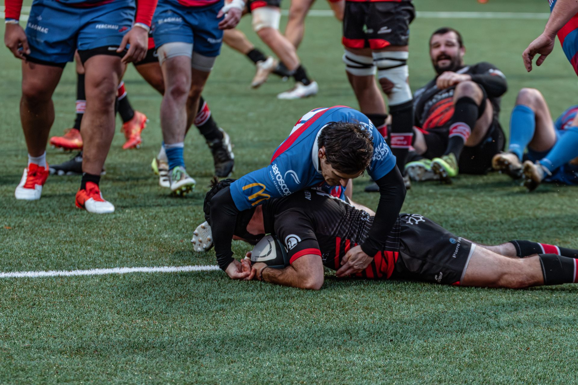 Mais c’est à ce moment-là que l’UAG montre toute sa force collective. Emmenés par un Sandrick Maciotta énorme dans l’impact, les remplaçants rouges et noirs prennent le dessus. La mêlée blagnacaise, jusque-là solide, recule.