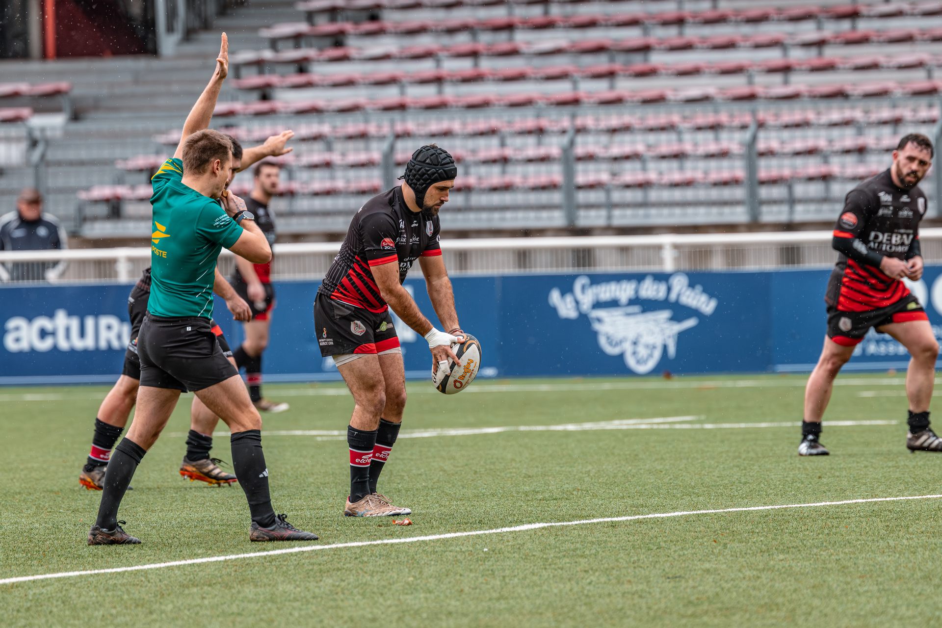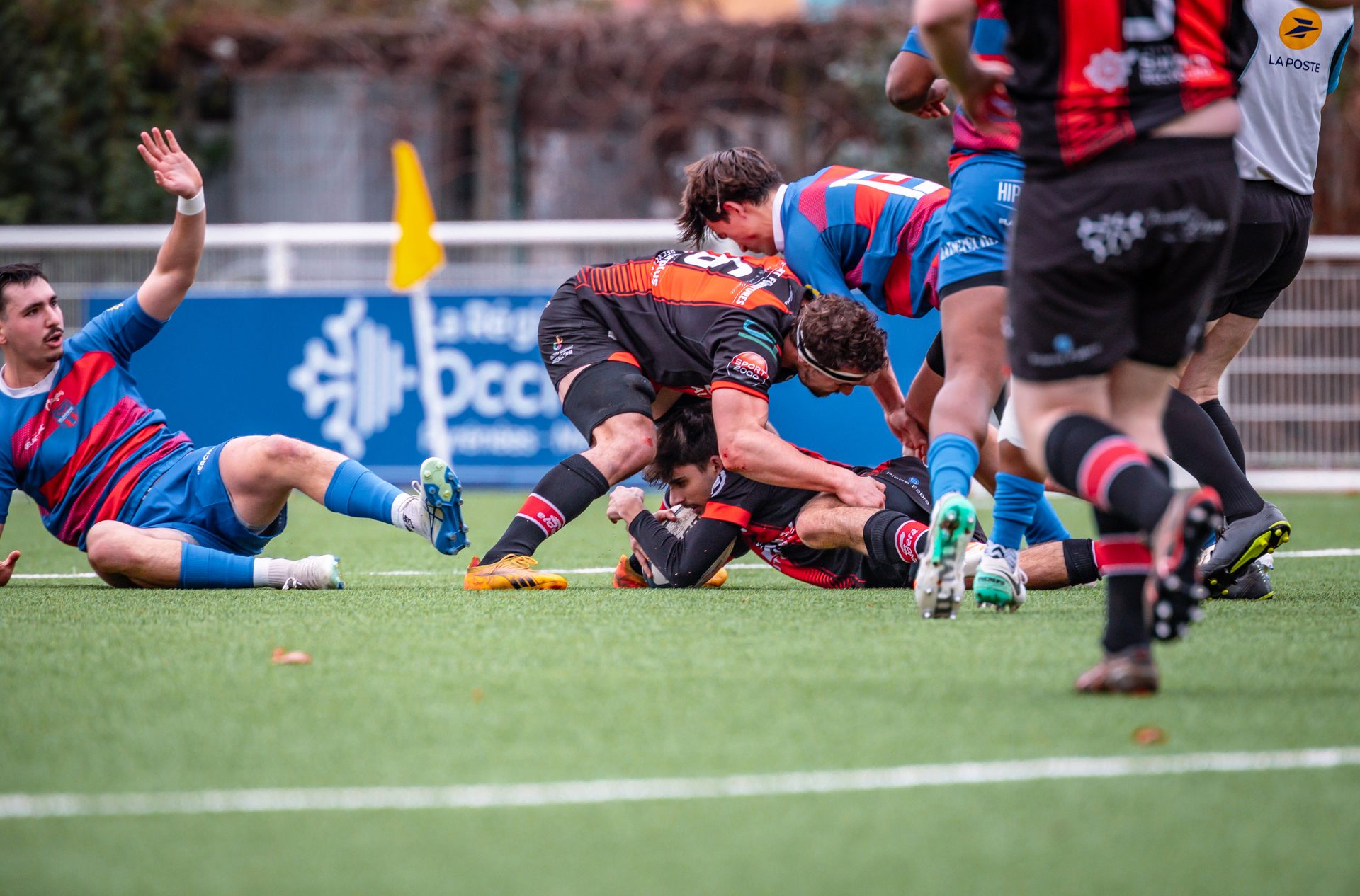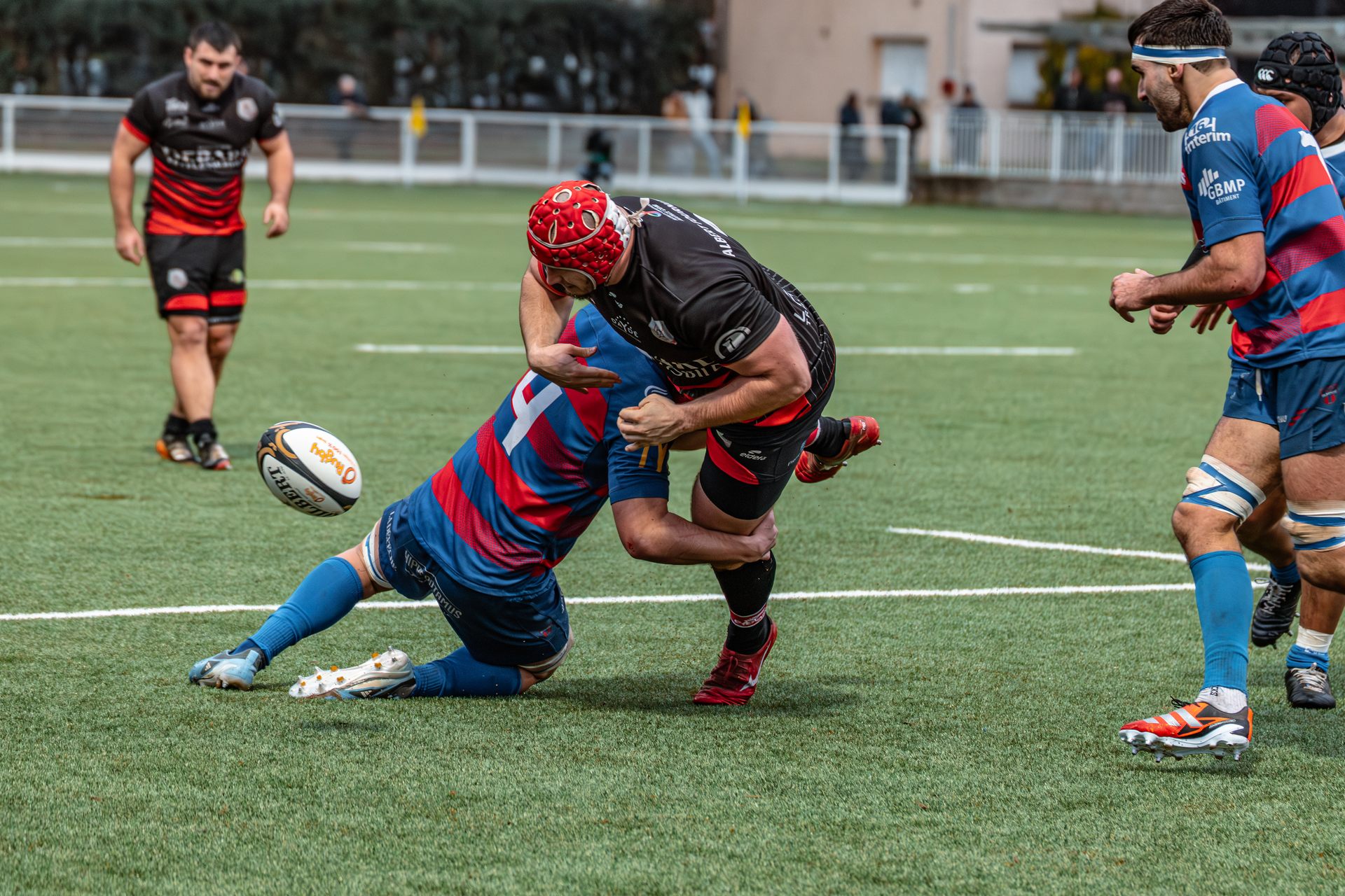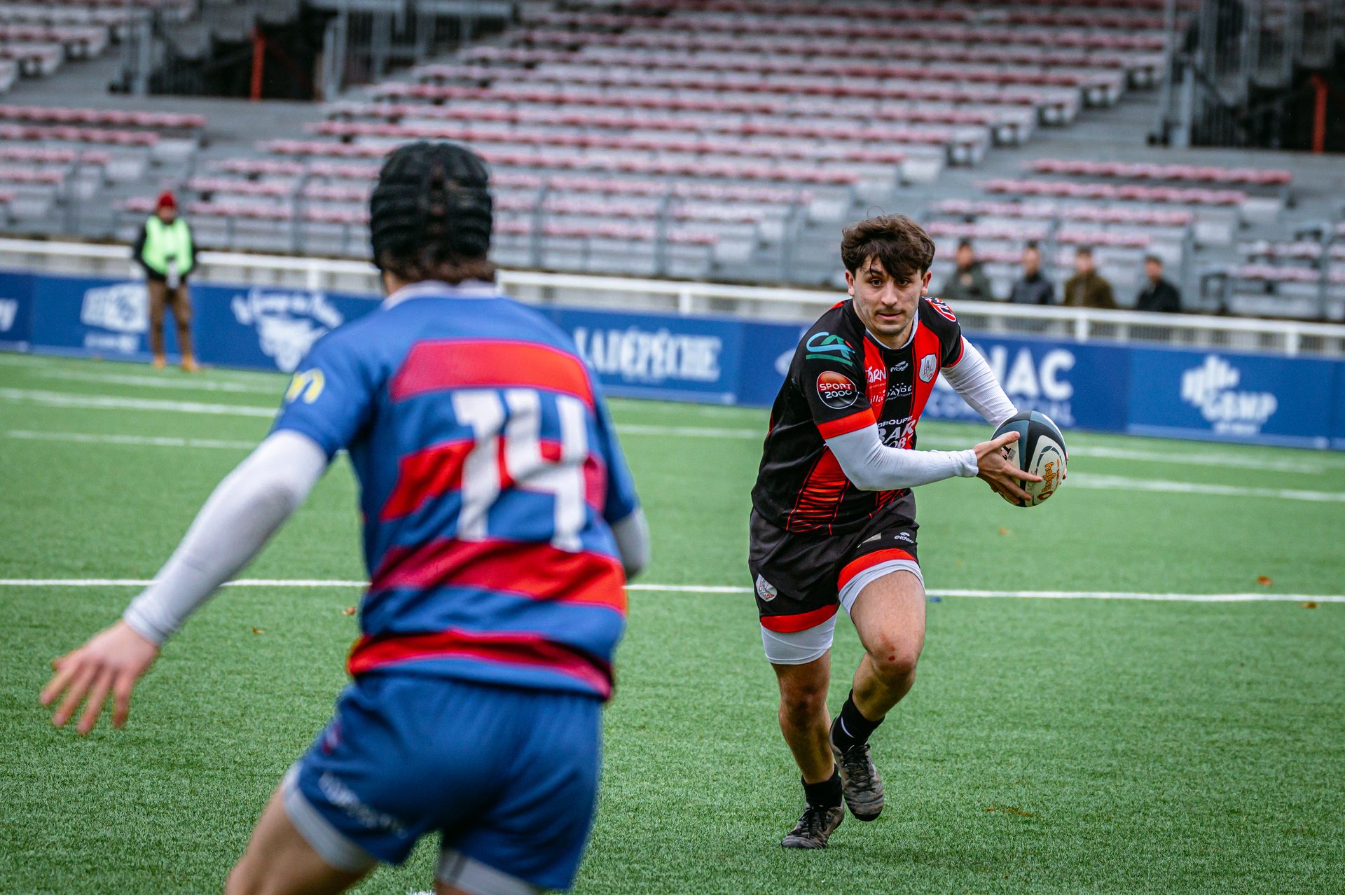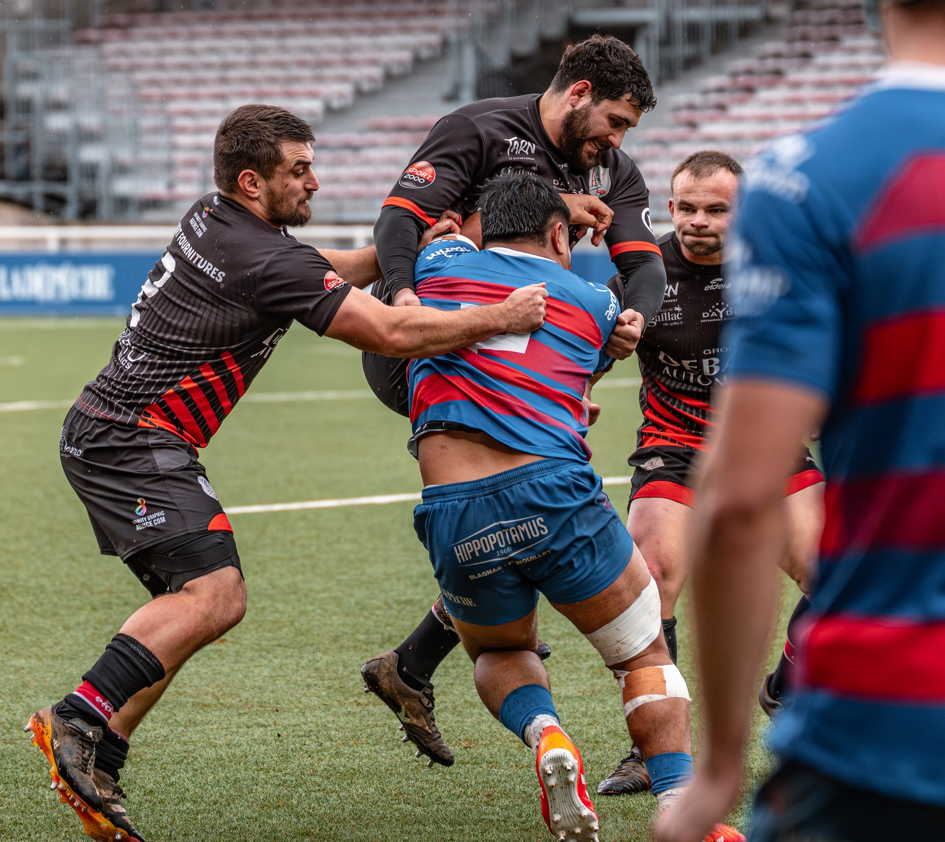 Mais c’est à ce moment-là que l’UAG montre toute sa force collective. Emmenés par un Sandrick Maciotta énorme dans l’impact, les remplaçants rouges et noirs prennent le dessus. La mêlée blagnacaise, jusque-là solide, recule.