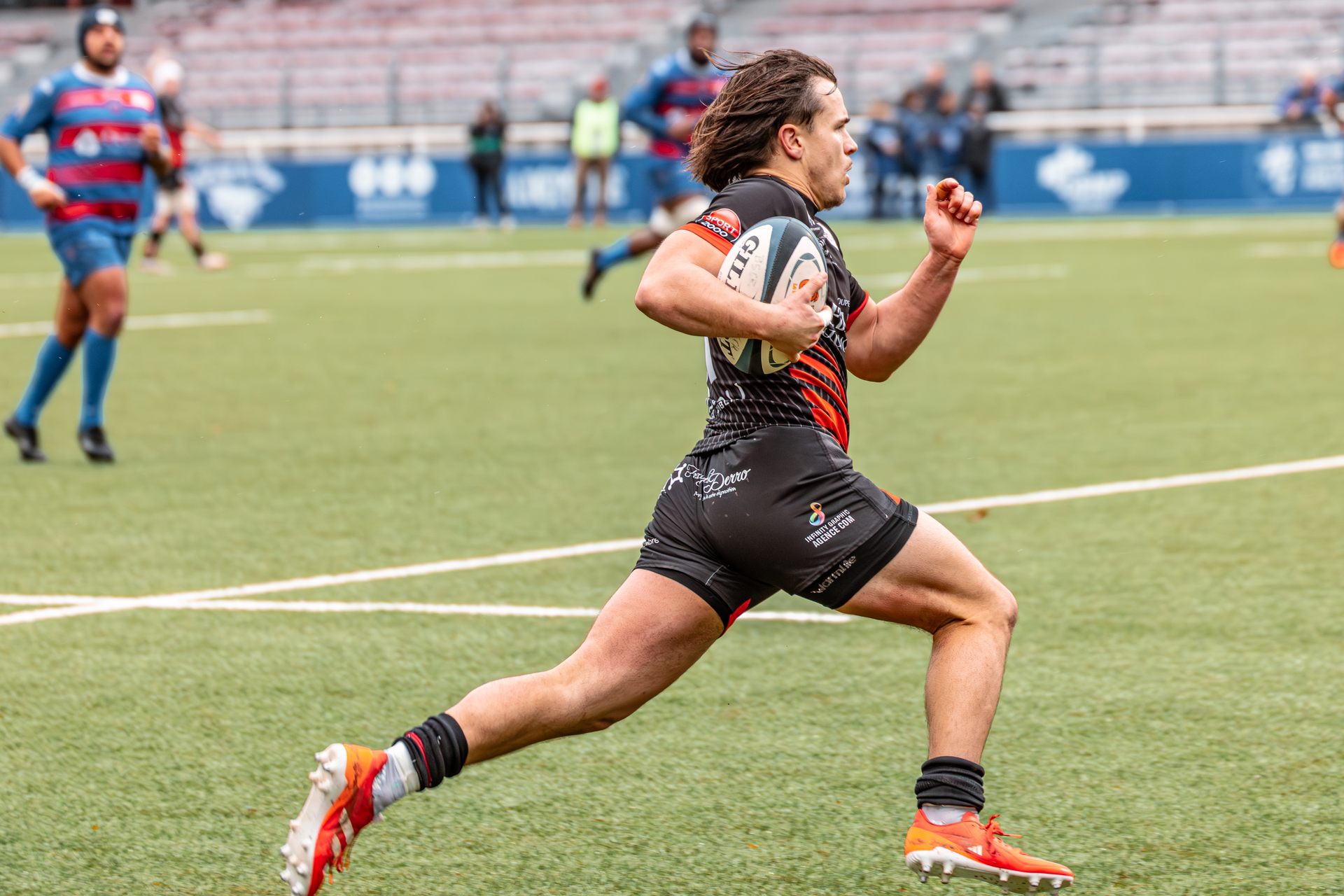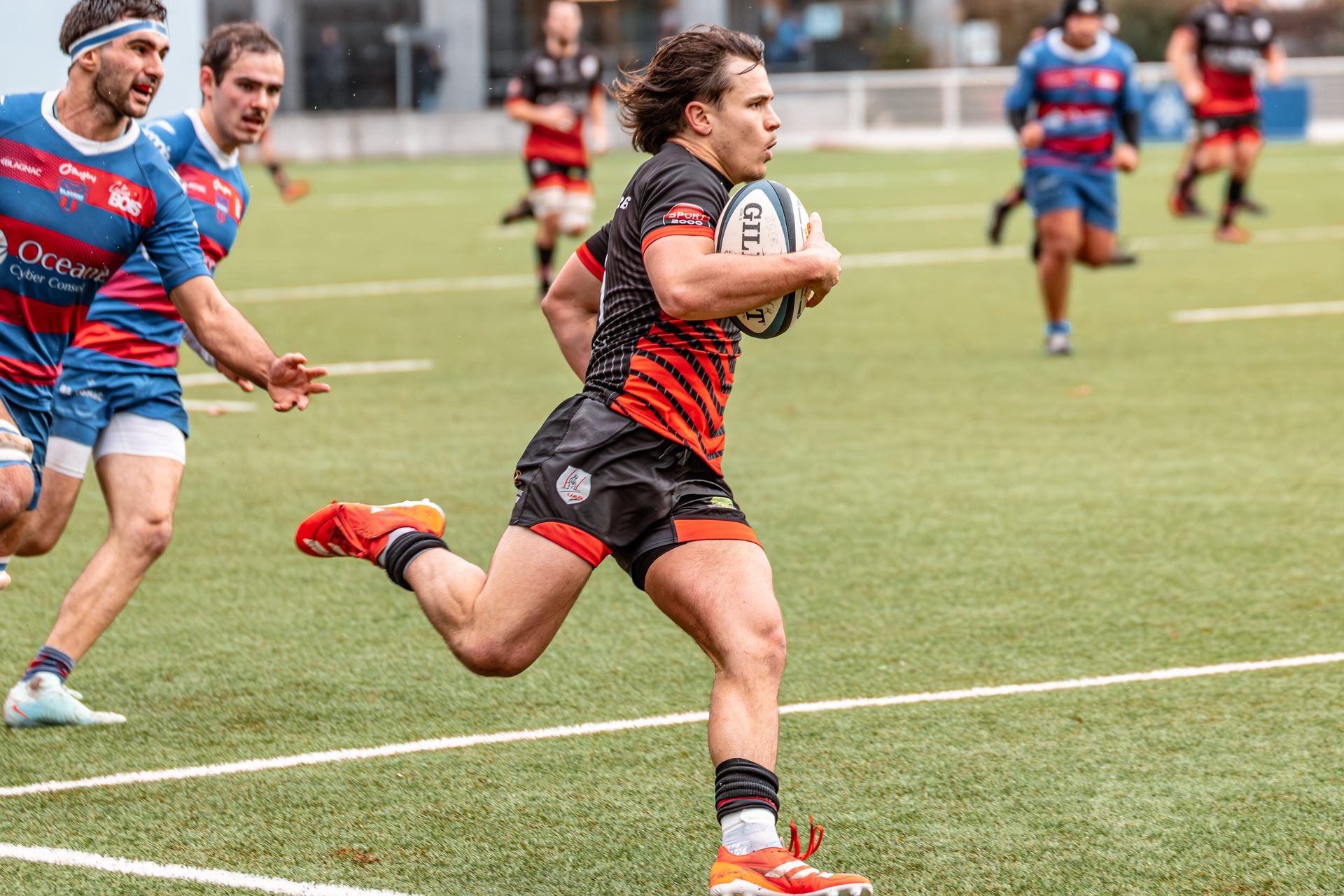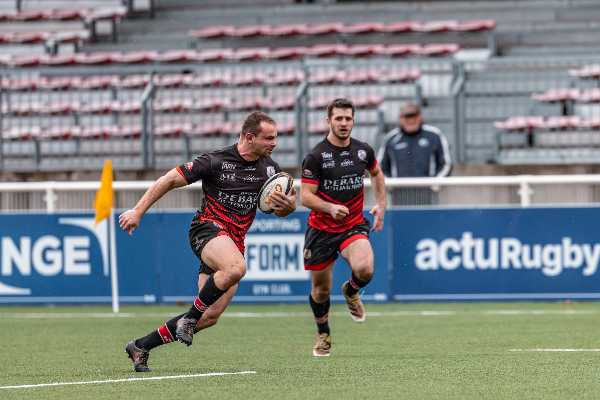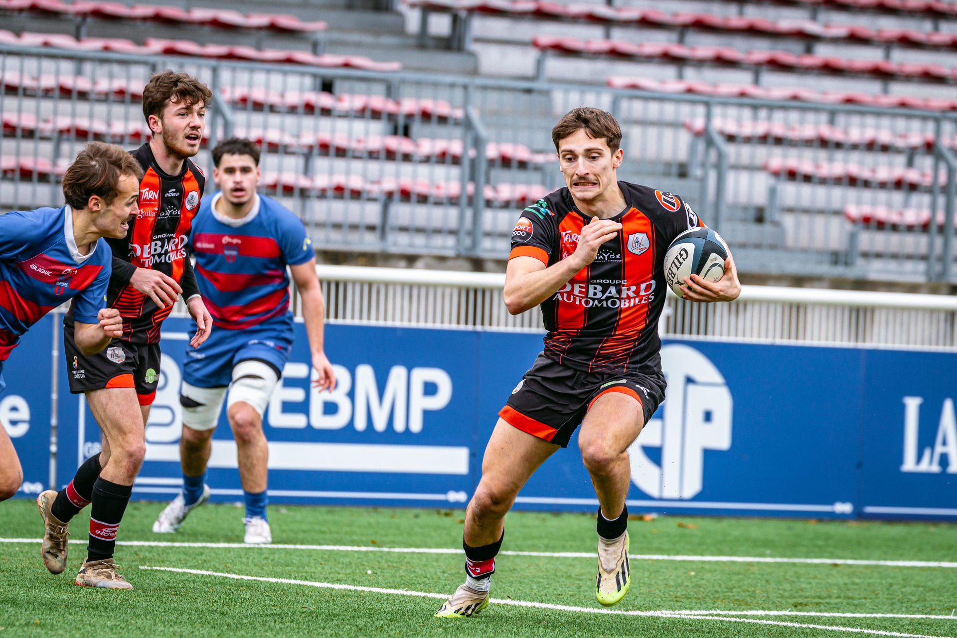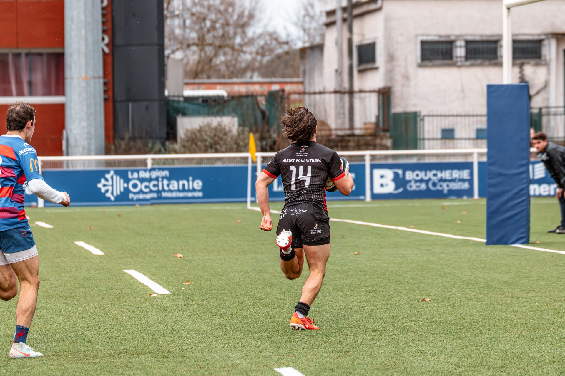 La réaction gaillacoise est immédiate. Sur un ballon de récupération, Tilian Escaffit transperce la défense et file le long de la touche pour égaliser (7-7, 21’).