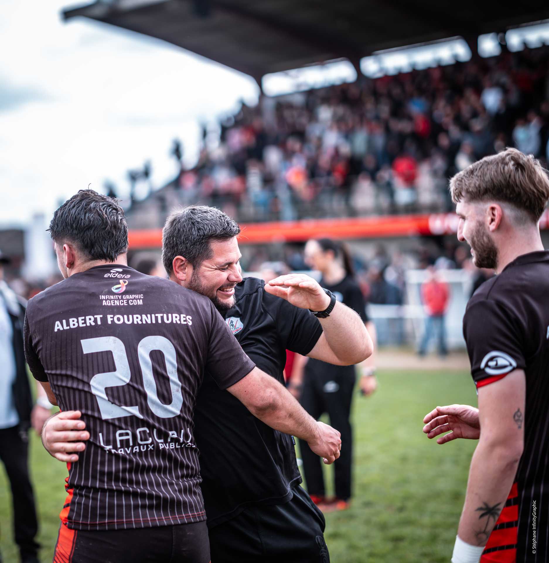 La saison 2024-2025 de notre équipe première restera marquée par des montagnes russes. Après une fin d’année 2024 tonitruante, où nos rouges et noirs régnaient en maîtres en haut du classement, un coup d’arrêt est venu troubler le début de 2025. La trêve des fêtes avait laissé quelques traces… S’en est suivi un enchaînement de matchs frustrants, souvent perdus sur le fil. Mais comme savent si bien le faire nos Gaillacois, c’est en équipe, avec cœur et travail, qu’ils se sont relevés ! Depuis plusieurs semaines, la dynamique est revenue, le sourire aussi. Ce dimanche 27 avril à Laborie, nos Gaillacois avaient l’occasion de confirmer ce retour en forme face à Nuits-Saint-Georges pour le match de barrage.
