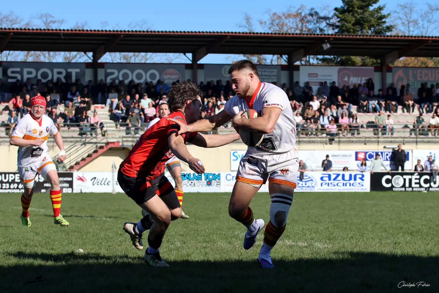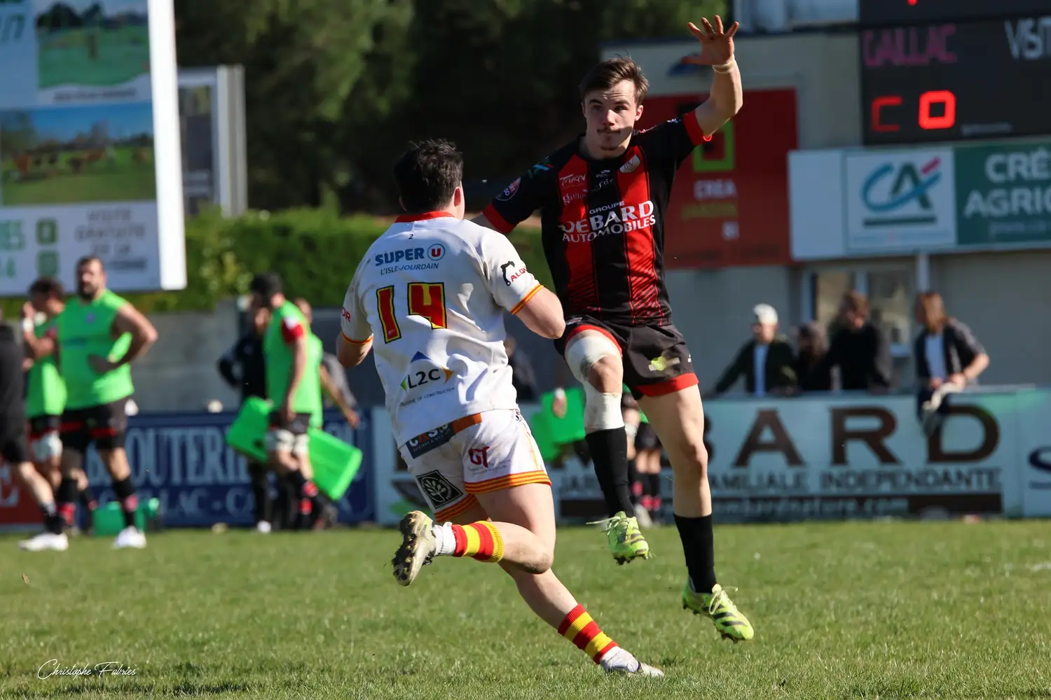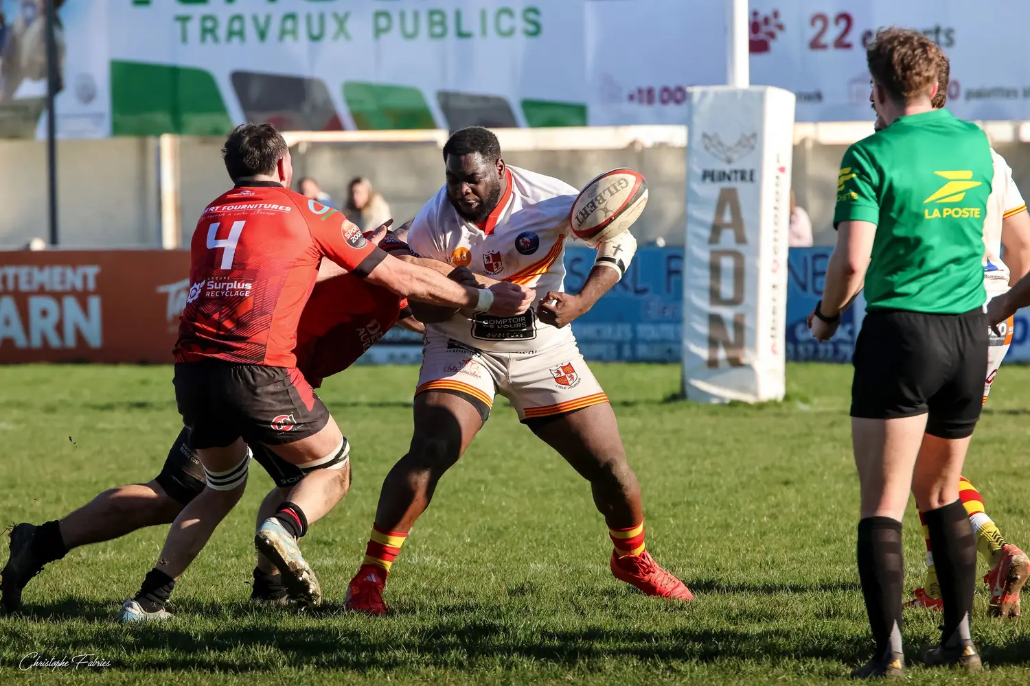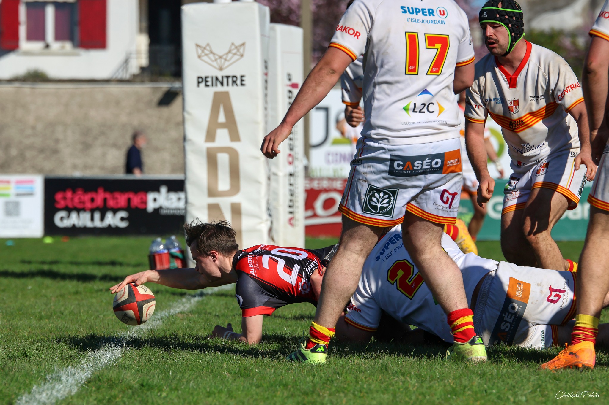 Mais L’Isle-Jourdain n’est pas leader pour rien. Les Gersois repartent à l’assaut et profitent d’une mésentente défensive de notre triangle arrière. À la troisième tentative, Tafili franchit la ligne…