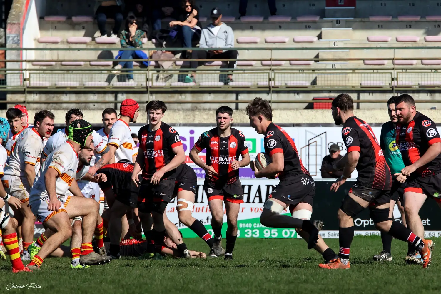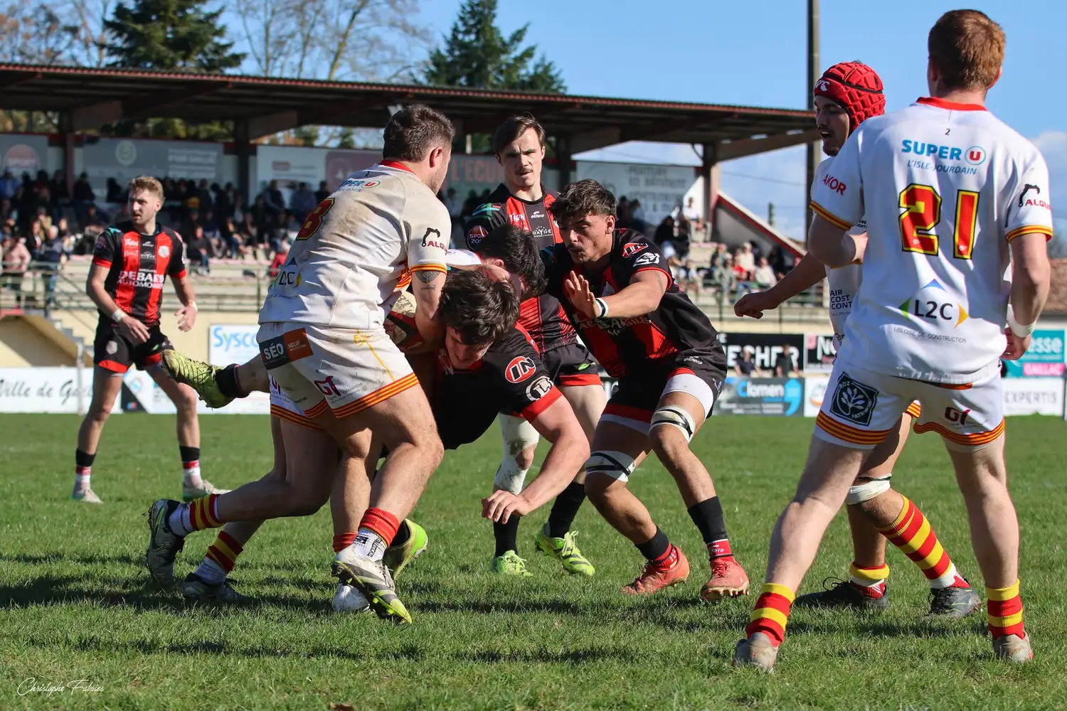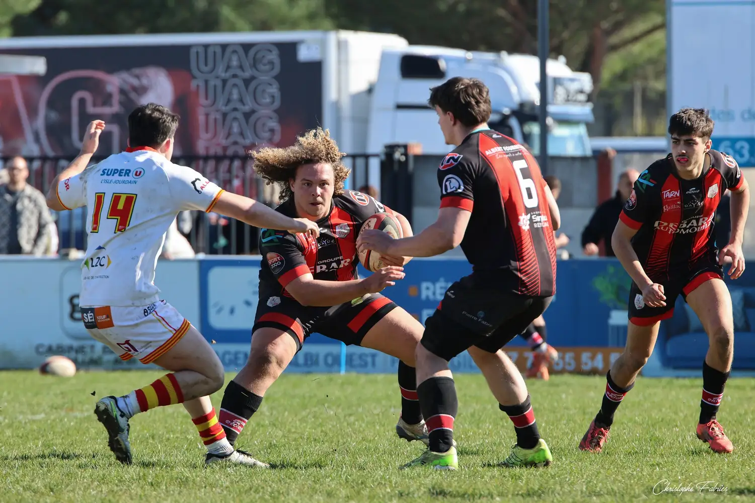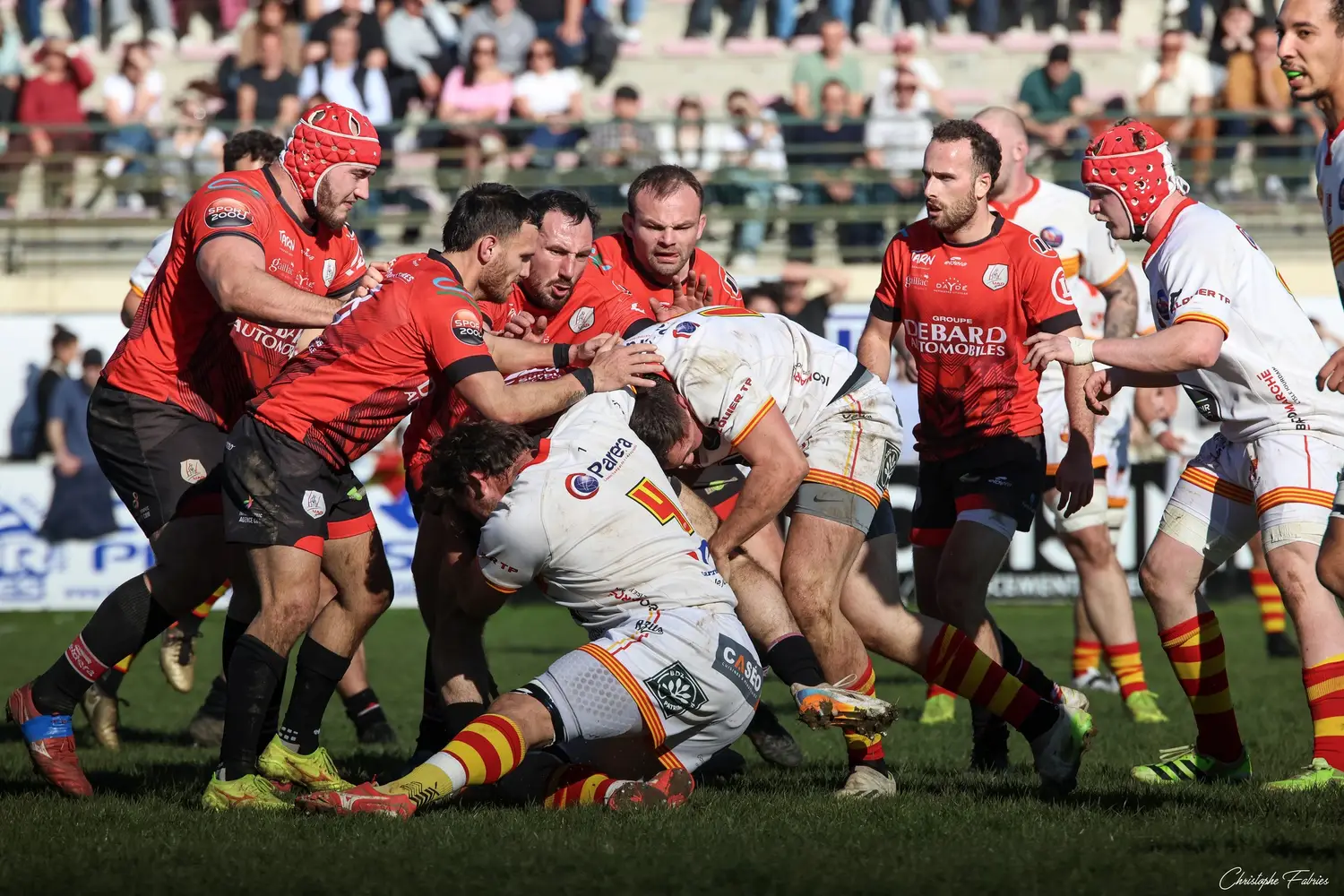 Dès la 30e minute, L’Isle-Jourdain tient déjà le bonus offensif (6-22). Les Gersois vont plus vite partout : dans les franchissements, dans les courses, dans les soutiens. En face, nos rouges et noirs sont à côté de la plaque. La touche cafouille. Les offensives restent stériles. Les charges au près se heurtent à un mur compact.