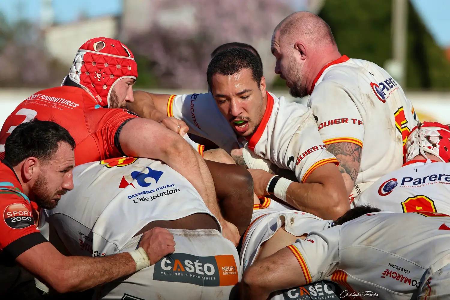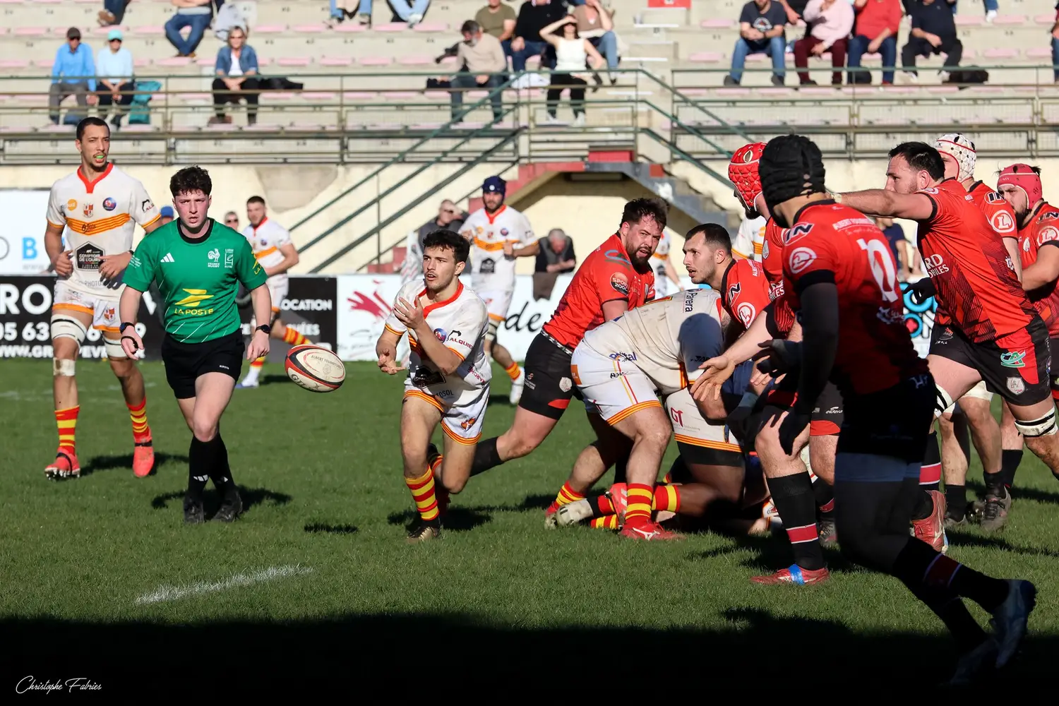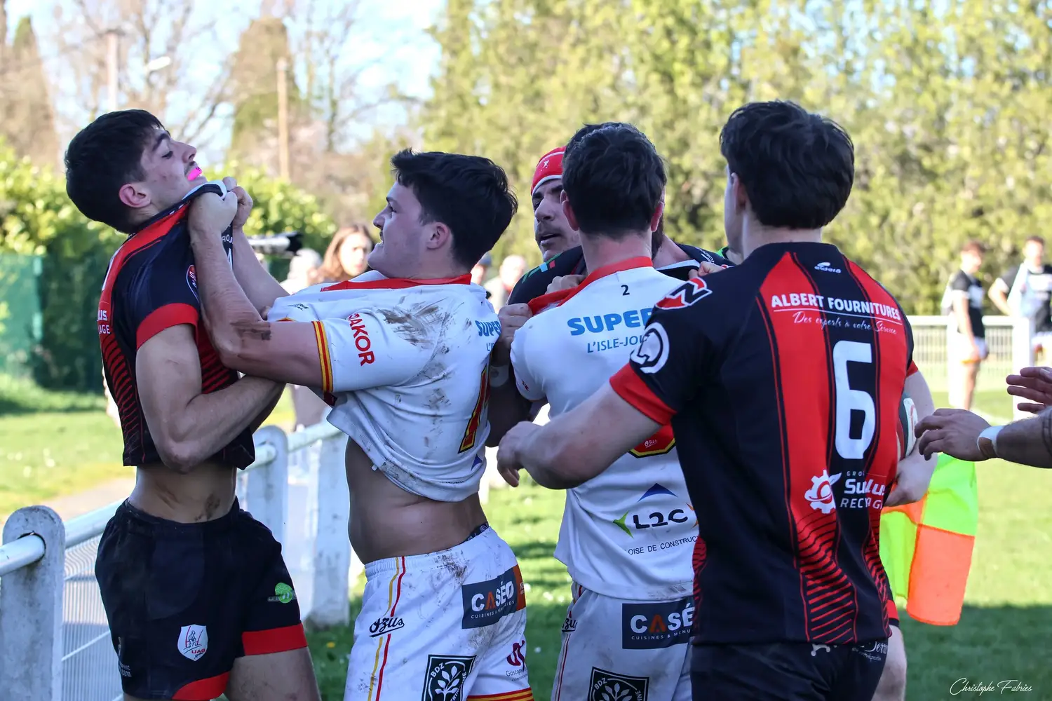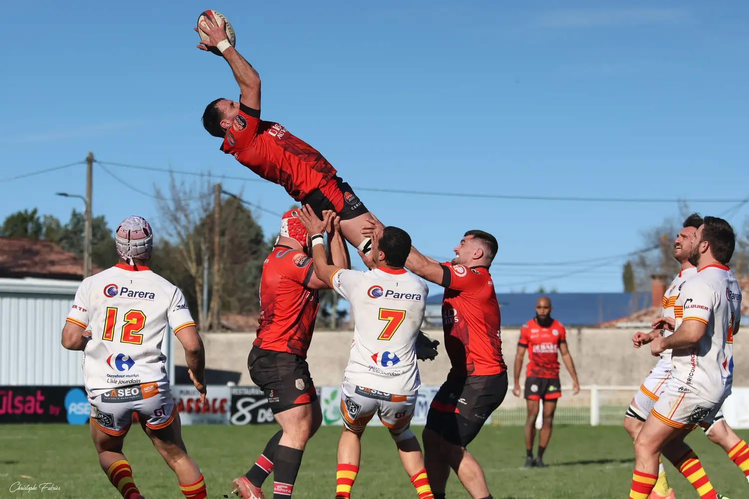 Dès la 30e minute, L’Isle-Jourdain tient déjà le bonus offensif (6-22). Les Gersois vont plus vite partout : dans les franchissements, dans les courses, dans les soutiens. En face, nos rouges et noirs sont à côté de la plaque. La touche cafouille. Les offensives restent stériles. Les charges au près se heurtent à un mur compact.