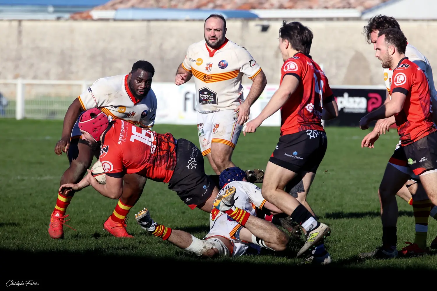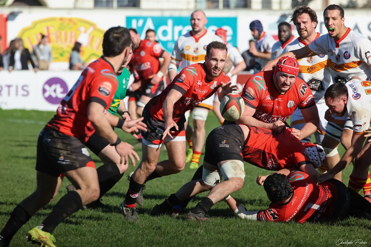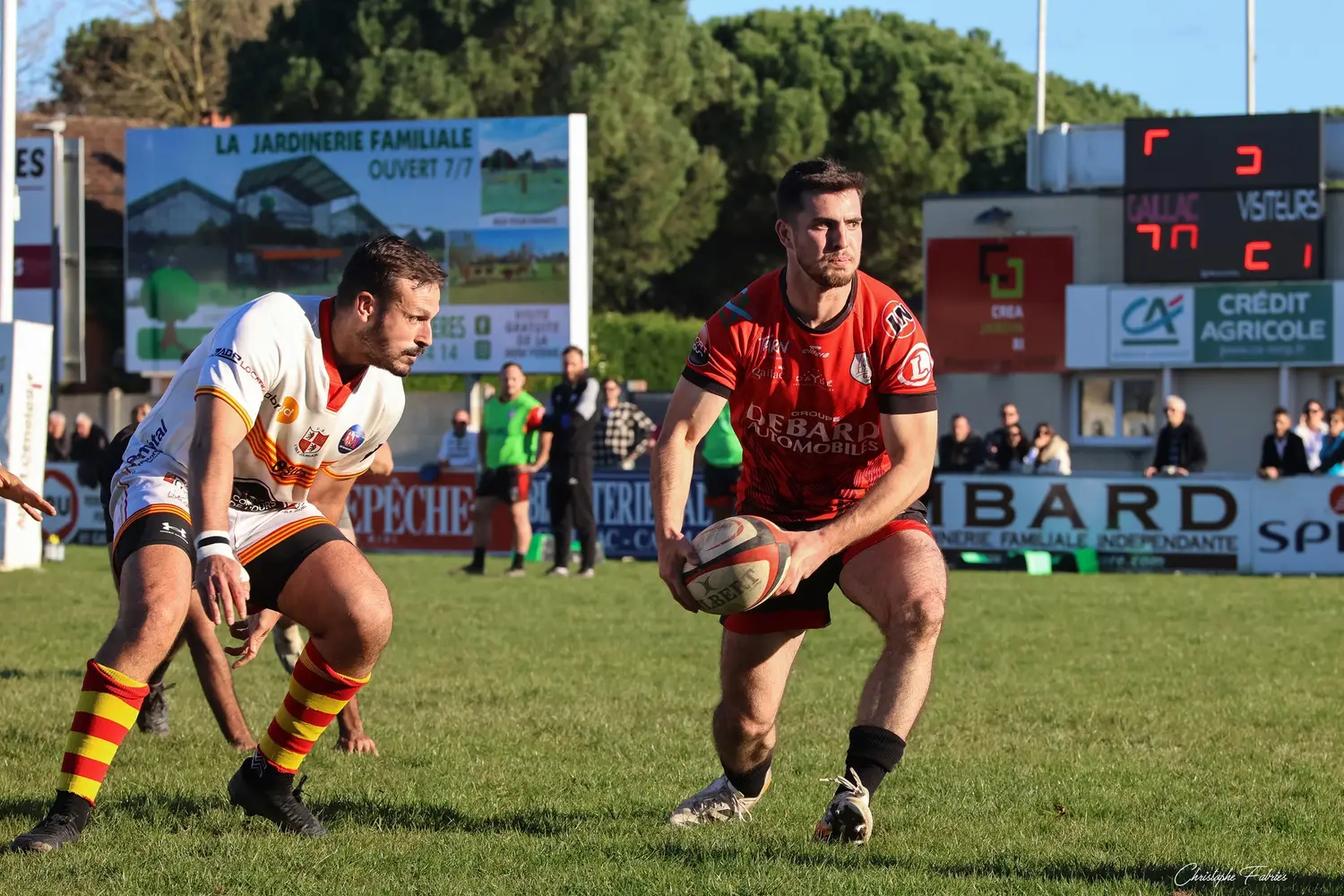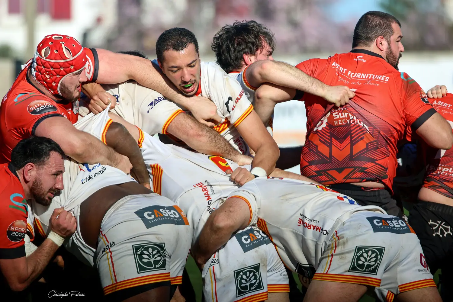 Dès la 30e minute, L’Isle-Jourdain tient déjà le bonus offensif (6-22). Les Gersois vont plus vite partout : dans les franchissements, dans les courses, dans les soutiens. En face, nos rouges et noirs sont à côté de la plaque. La touche cafouille. Les offensives restent stériles. Les charges au près se heurtent à un mur compact.