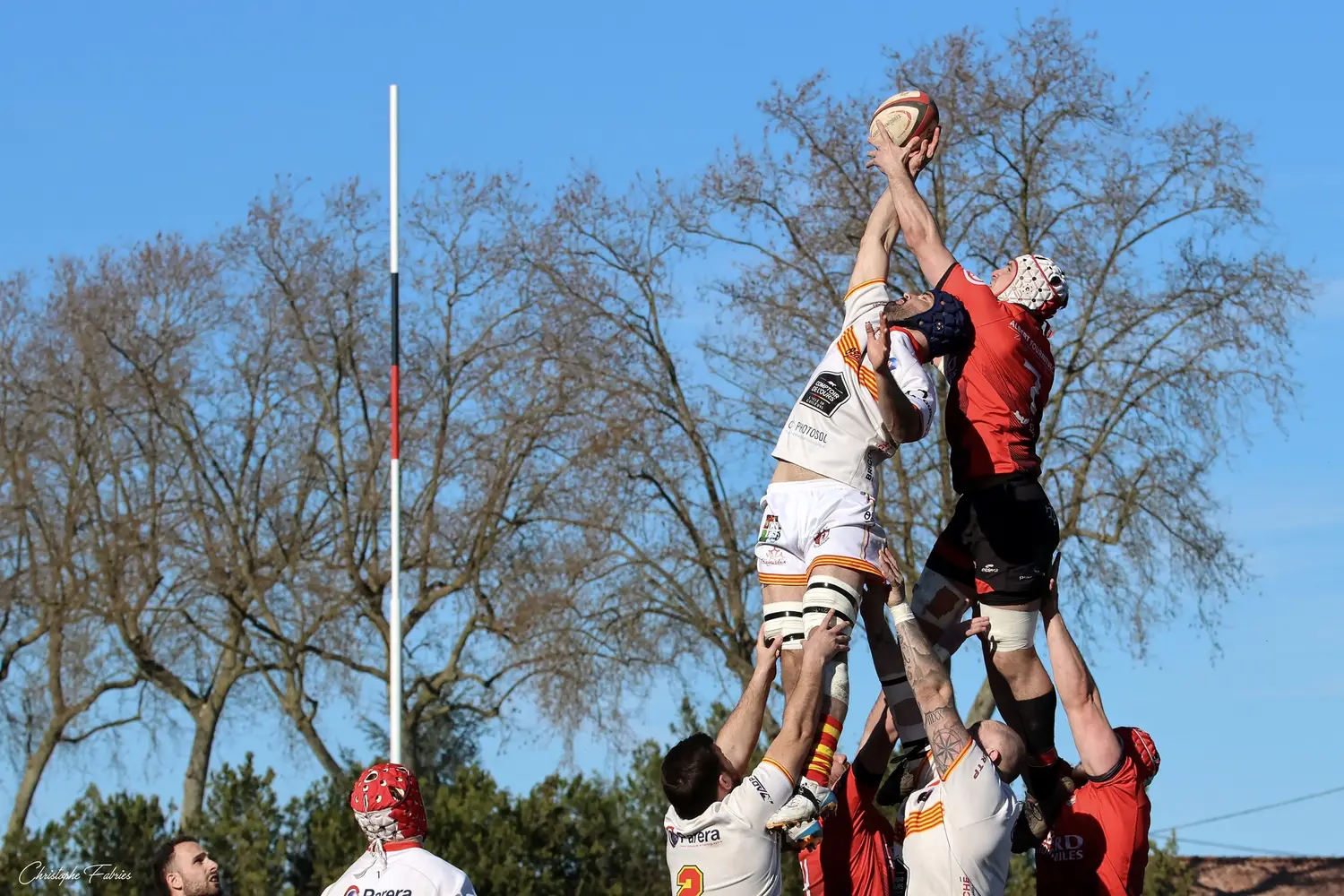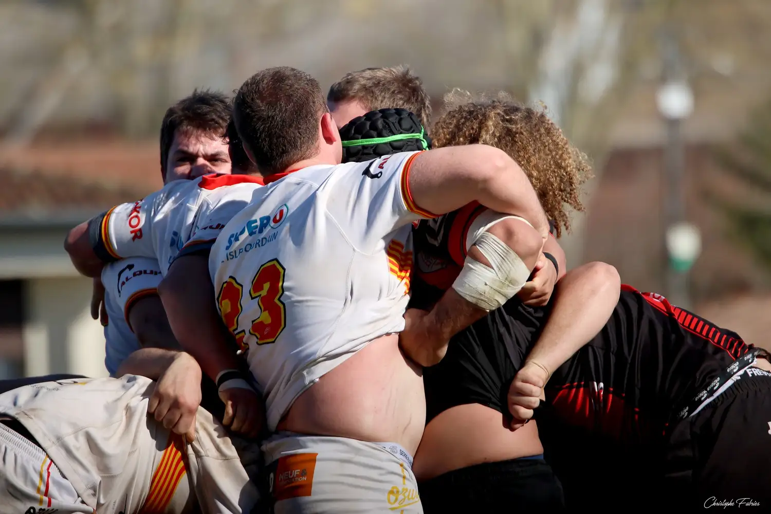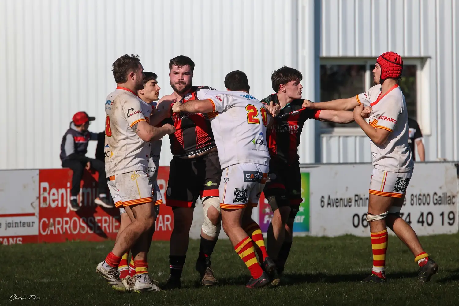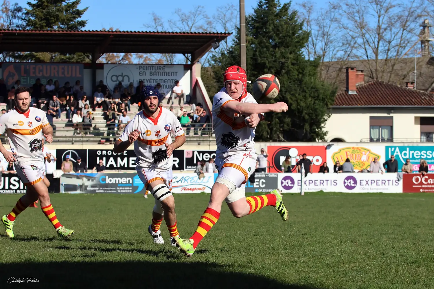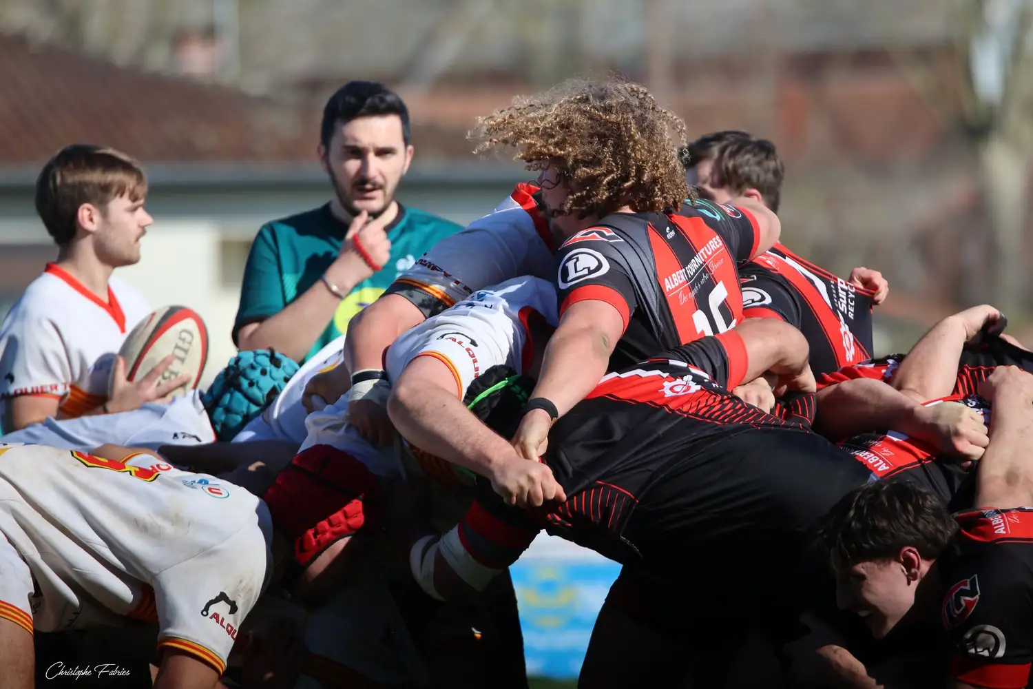 À 14h, nos espoirs lançaient l’après-midi. Et quelle première mi-temps ! Face à des Gersois étonnamment peu à l’aise, nos jeunes rouges et noirs mettent rapidement la main sur le ballon. La domination territoriale est nette. Les visiteurs sont poussés à la faute et nos Gaillacois convertissent trois pénalités.