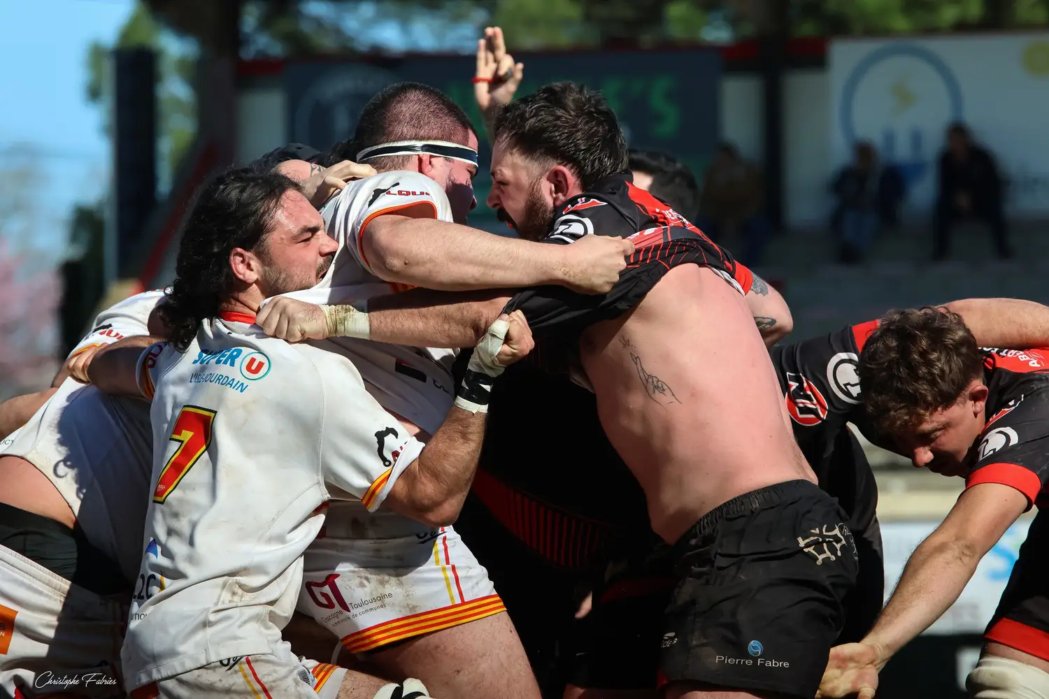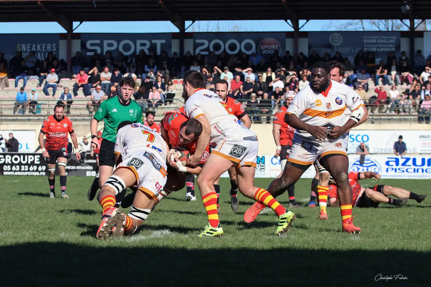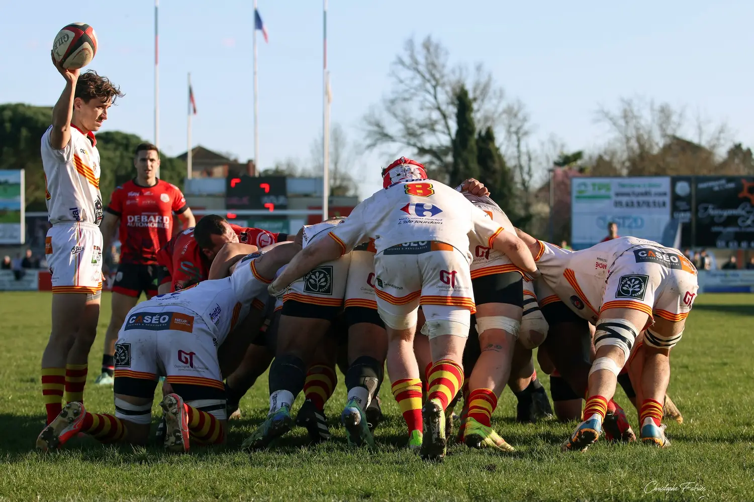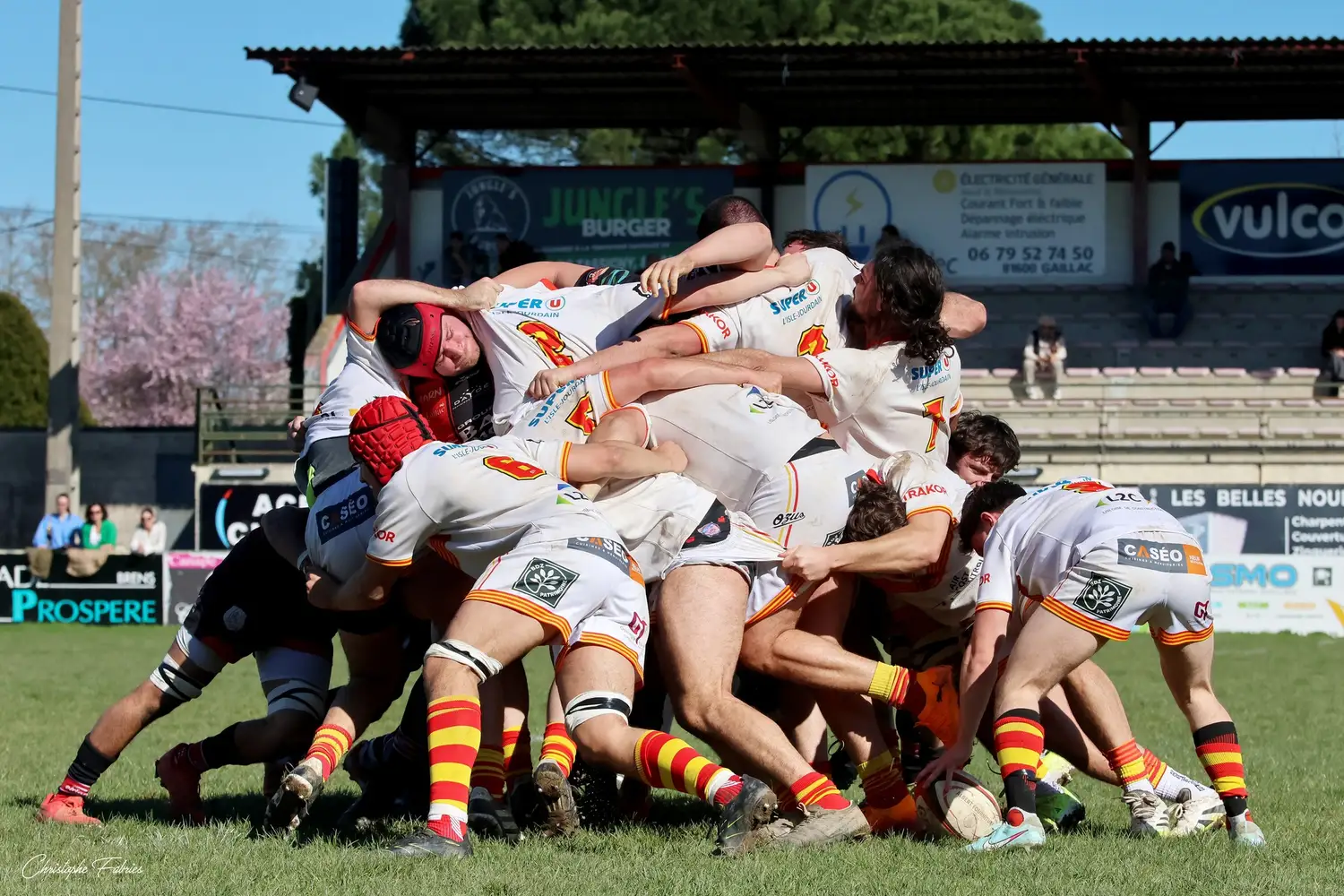 Au retour des vestiaires, même intensité. Même envie. À la 56e minute puis à la 65e, nos joueurs frappent à nouveau en inscrivant deux essais supplémentaires. L’Isle-Jourdain peine à suivre le rythme.