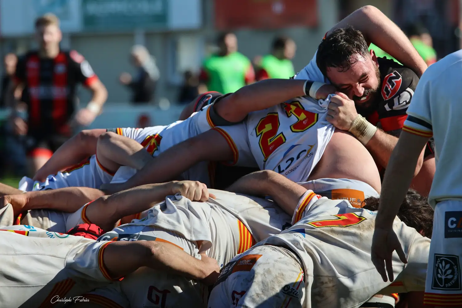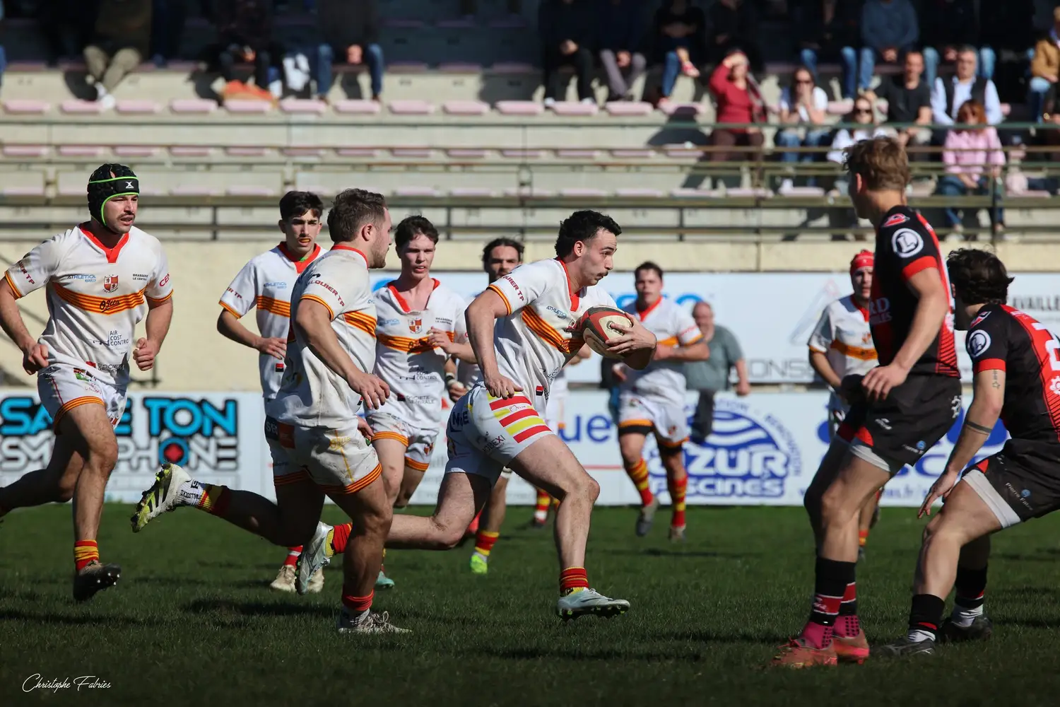 Dès le retour des vestiaires, Tilian Escaffit sonne la révolte. Exploit personnel, deux centres effacés, essai en coin (17-20, 49’). Le stade se réveille.