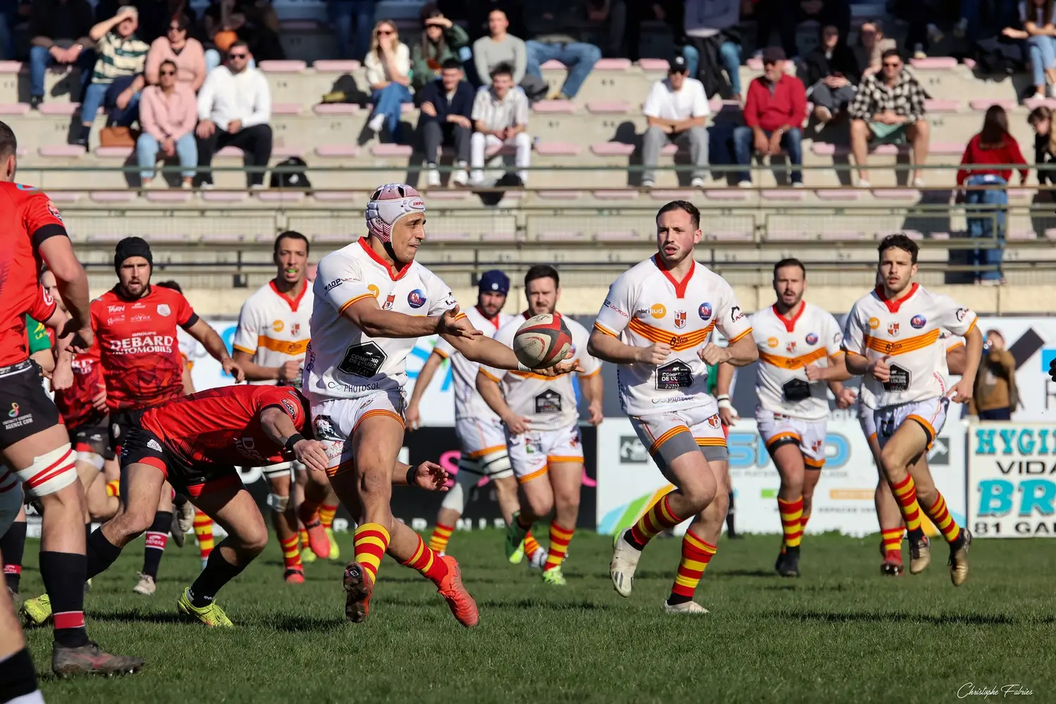 Il faut un éclair pour relancer la machine. Sur une touche, Thomas Breton s’engouffre, fixe l’arrière adverse et décale Benjamin Malignon qui remet Gaillac dans la partie (13-22, 31’).