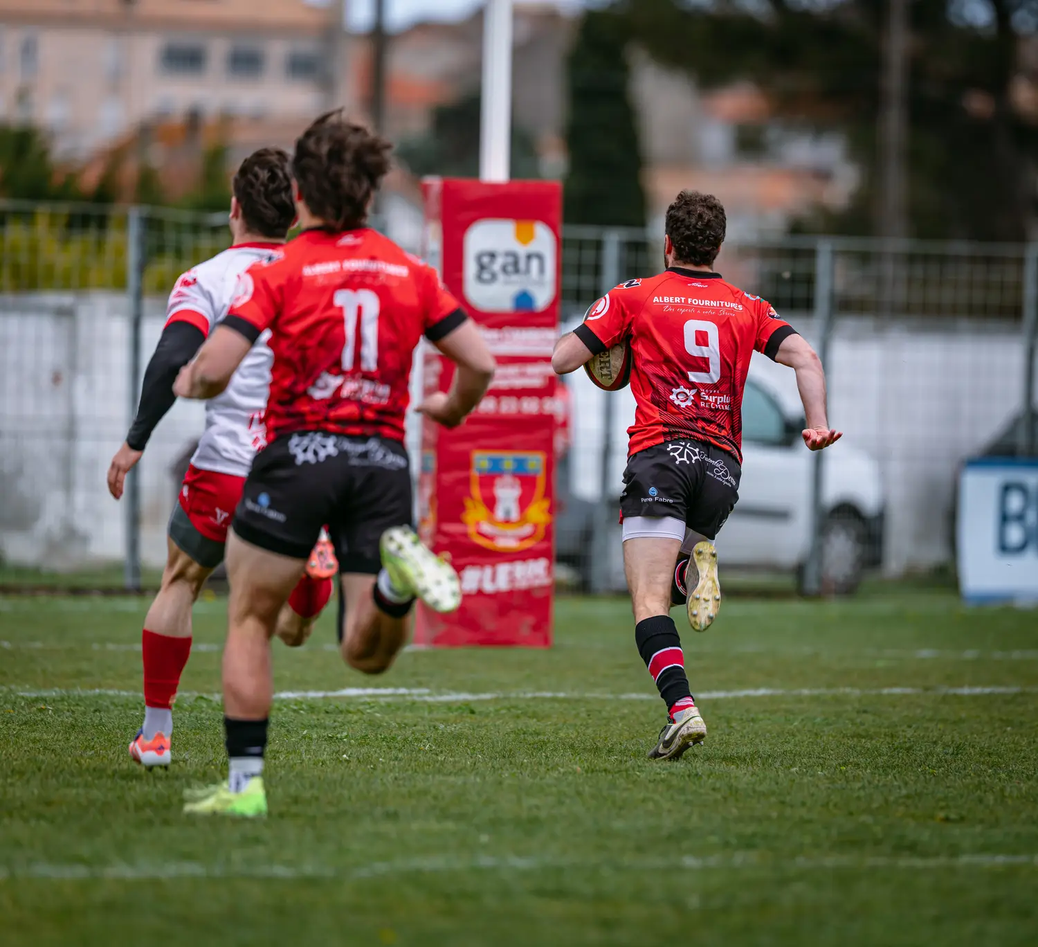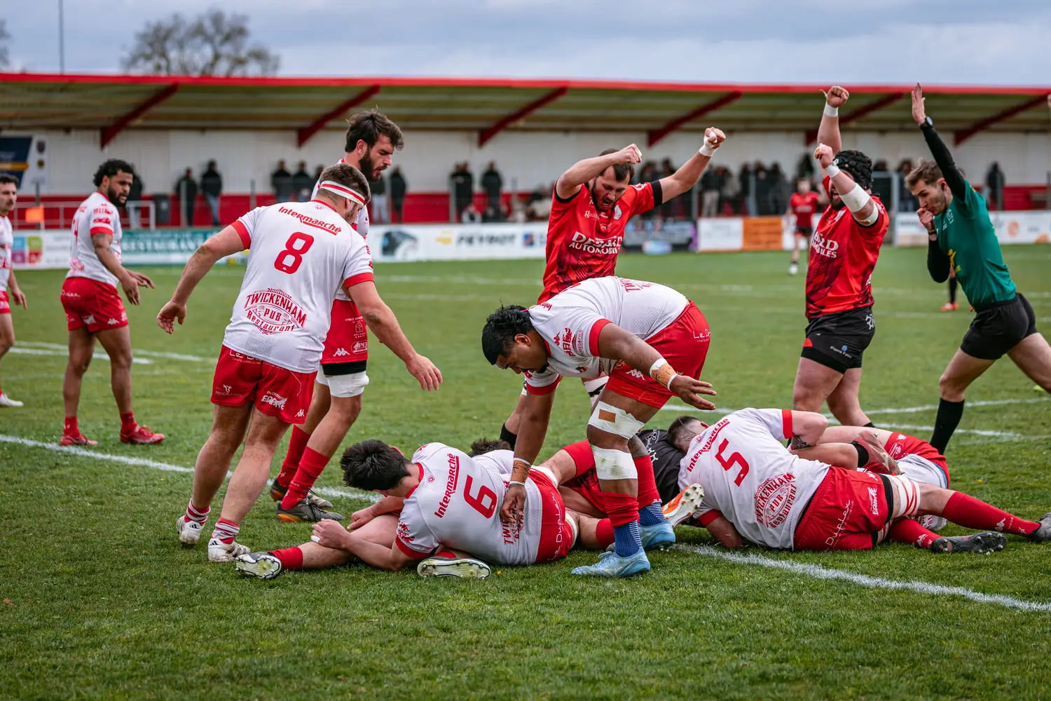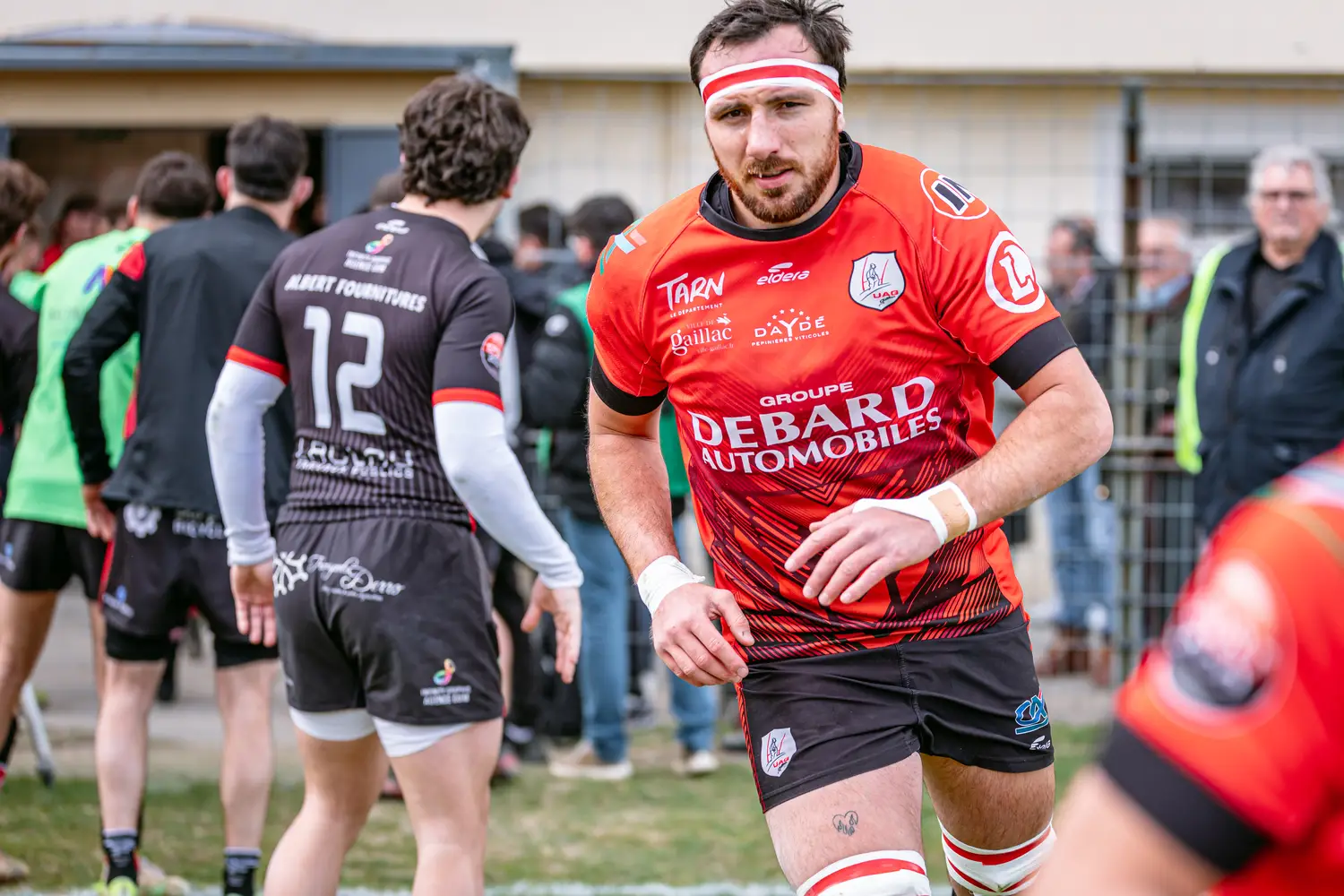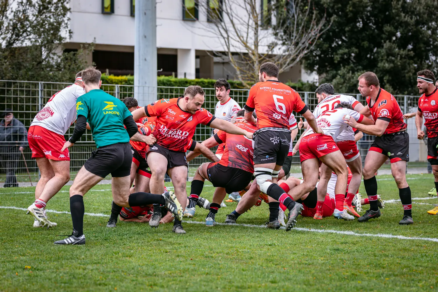 Le début de match est compliqué avec un carton jaune dès la 13e minute, mais malgré cela, les Gaillacois trouvent les ressources pour inscrire le premier essai à la 23e minute par l’intermédiaire de Jean Gaudin.