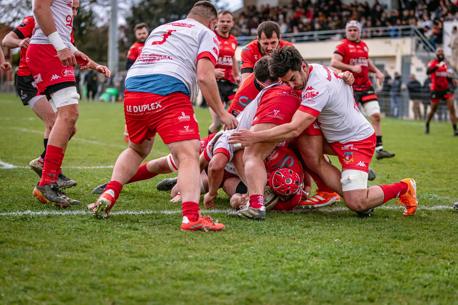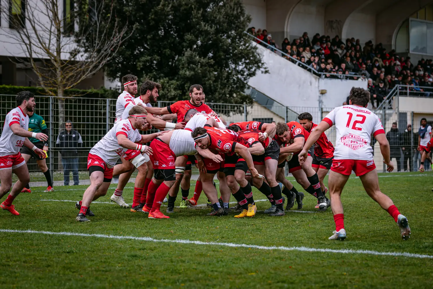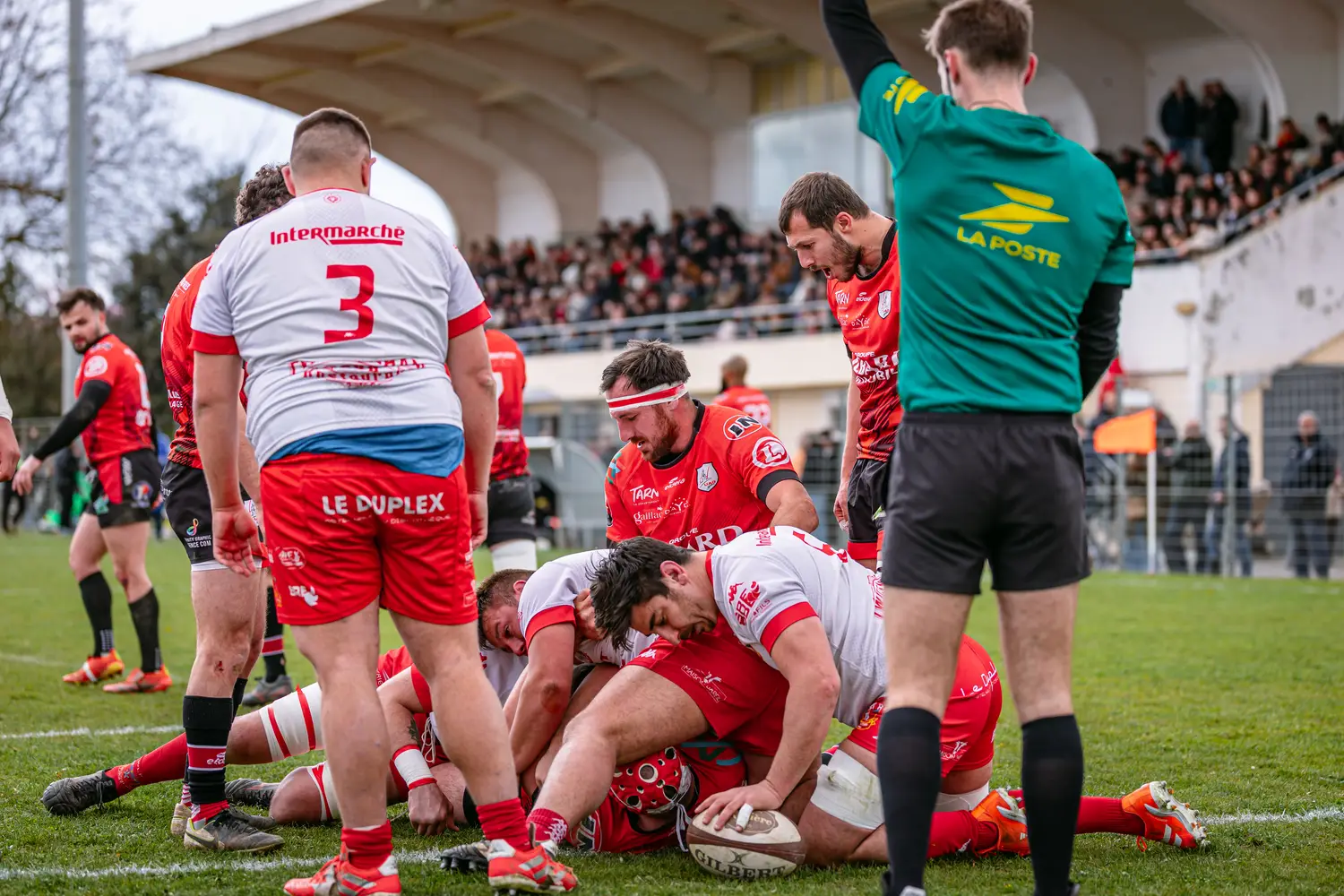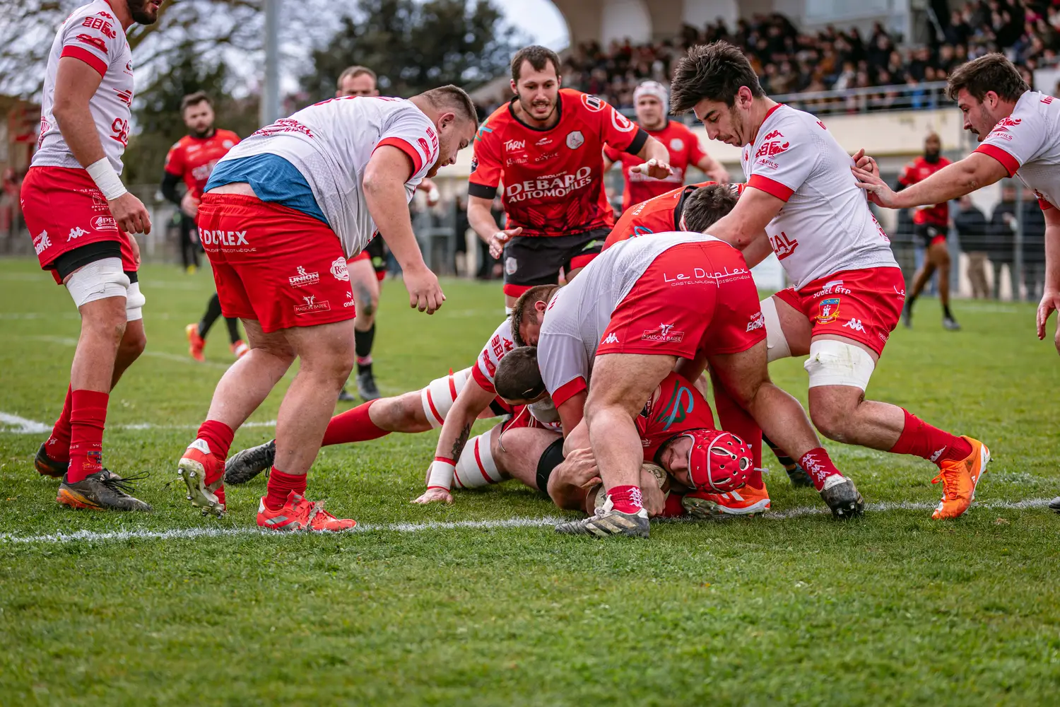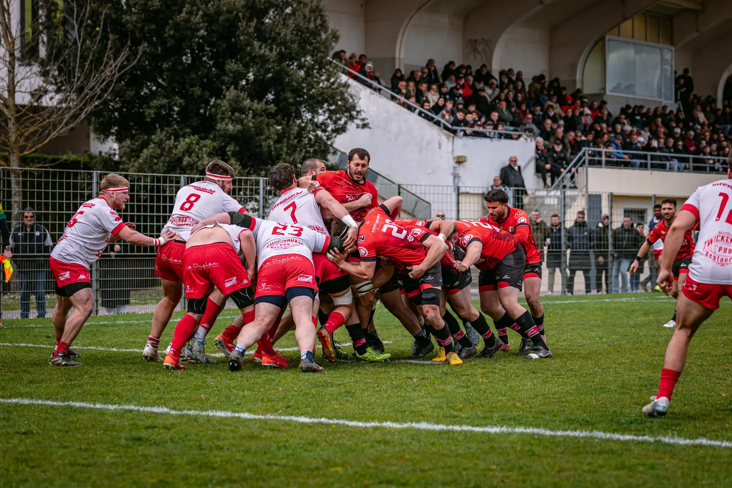 Au retour des vestiaires, les rouges et noirs font le choix de prendre les points au pied. Un choix payant, d’autant plus que les locaux reviennent à 25-22 à la 51e minute.