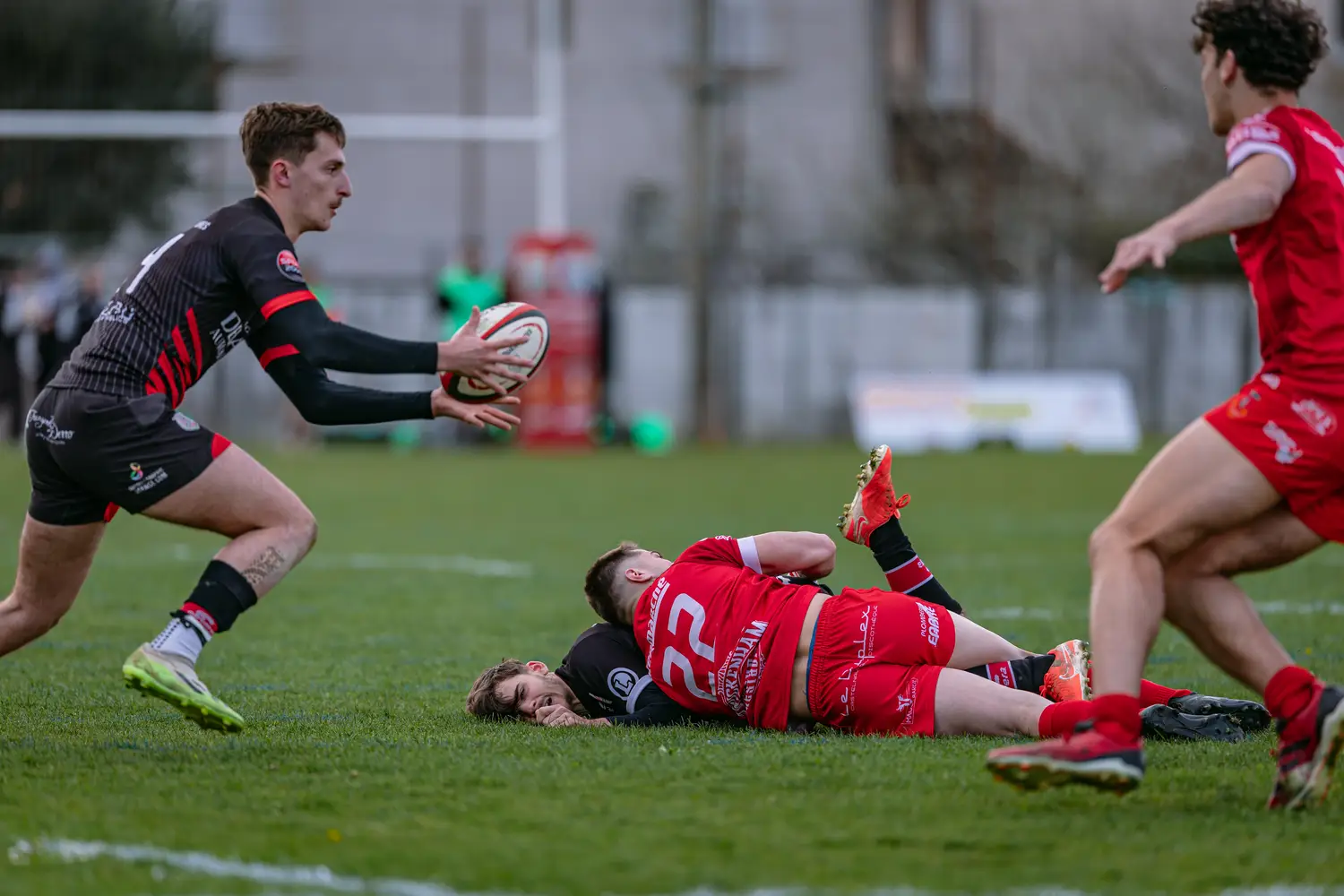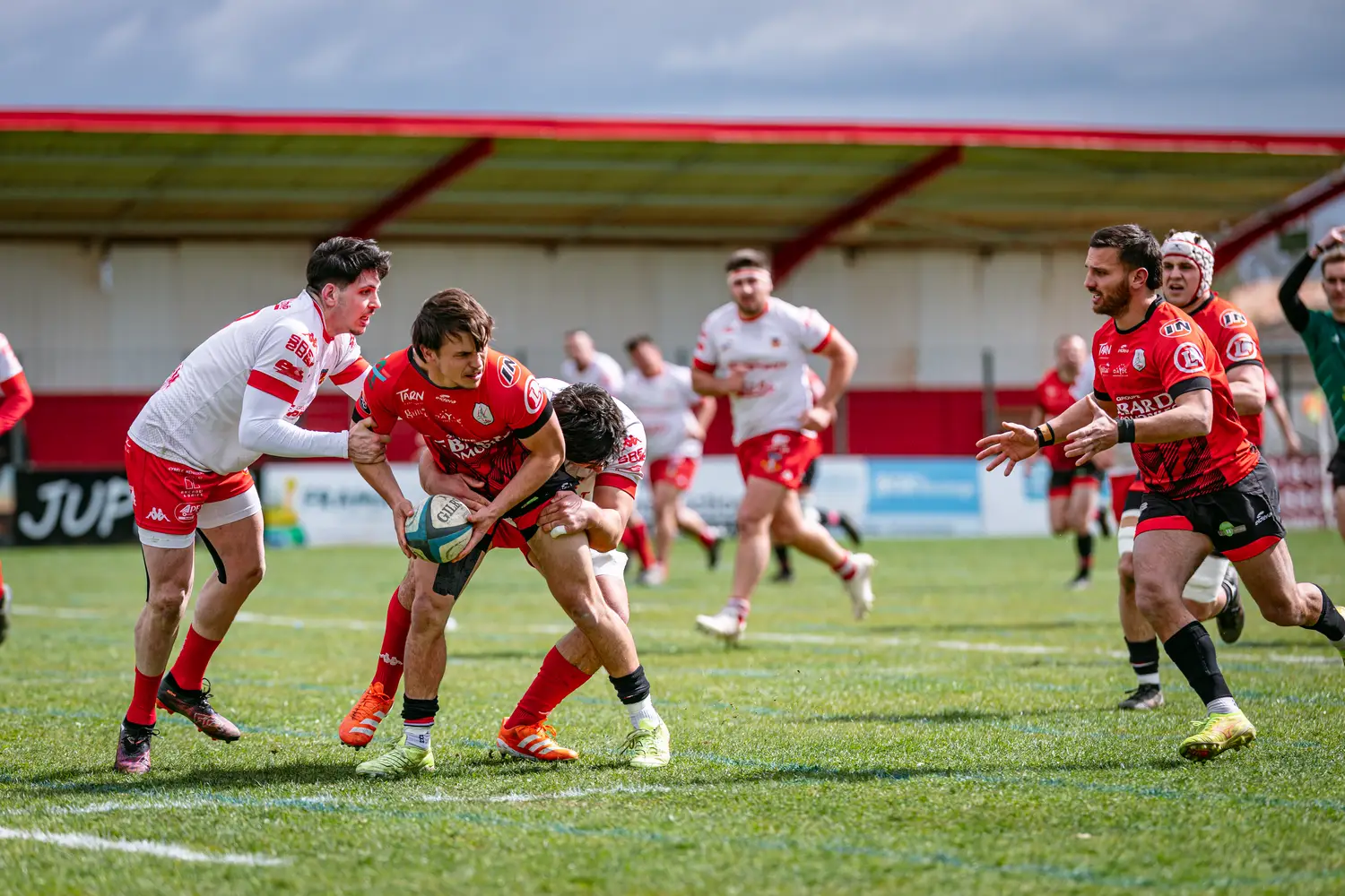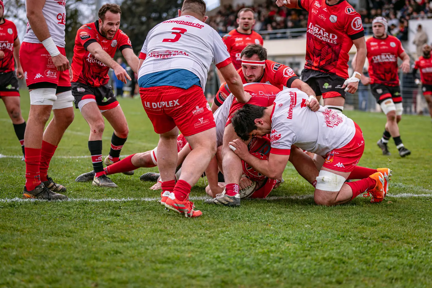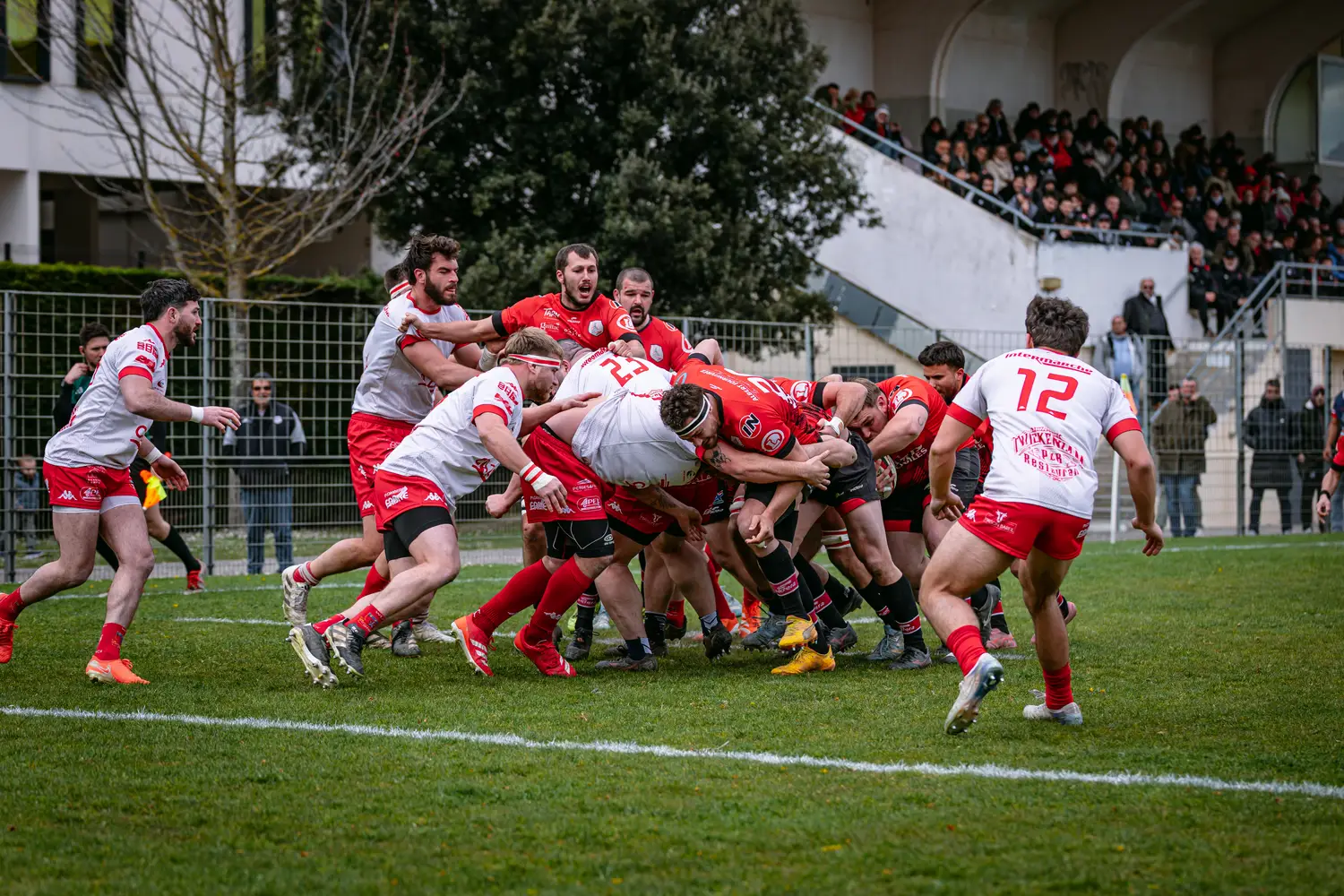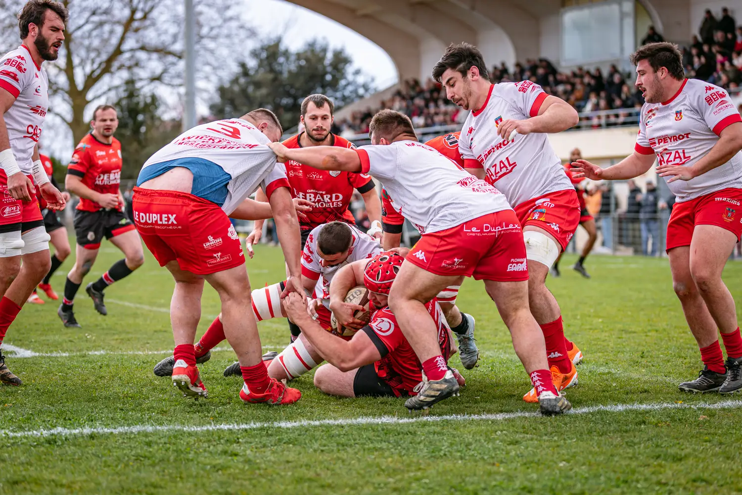 Au retour des vestiaires, les rouges et noirs font le choix de prendre les points au pied. Un choix payant, d’autant plus que les locaux reviennent à 25-22 à la 51e minute.
