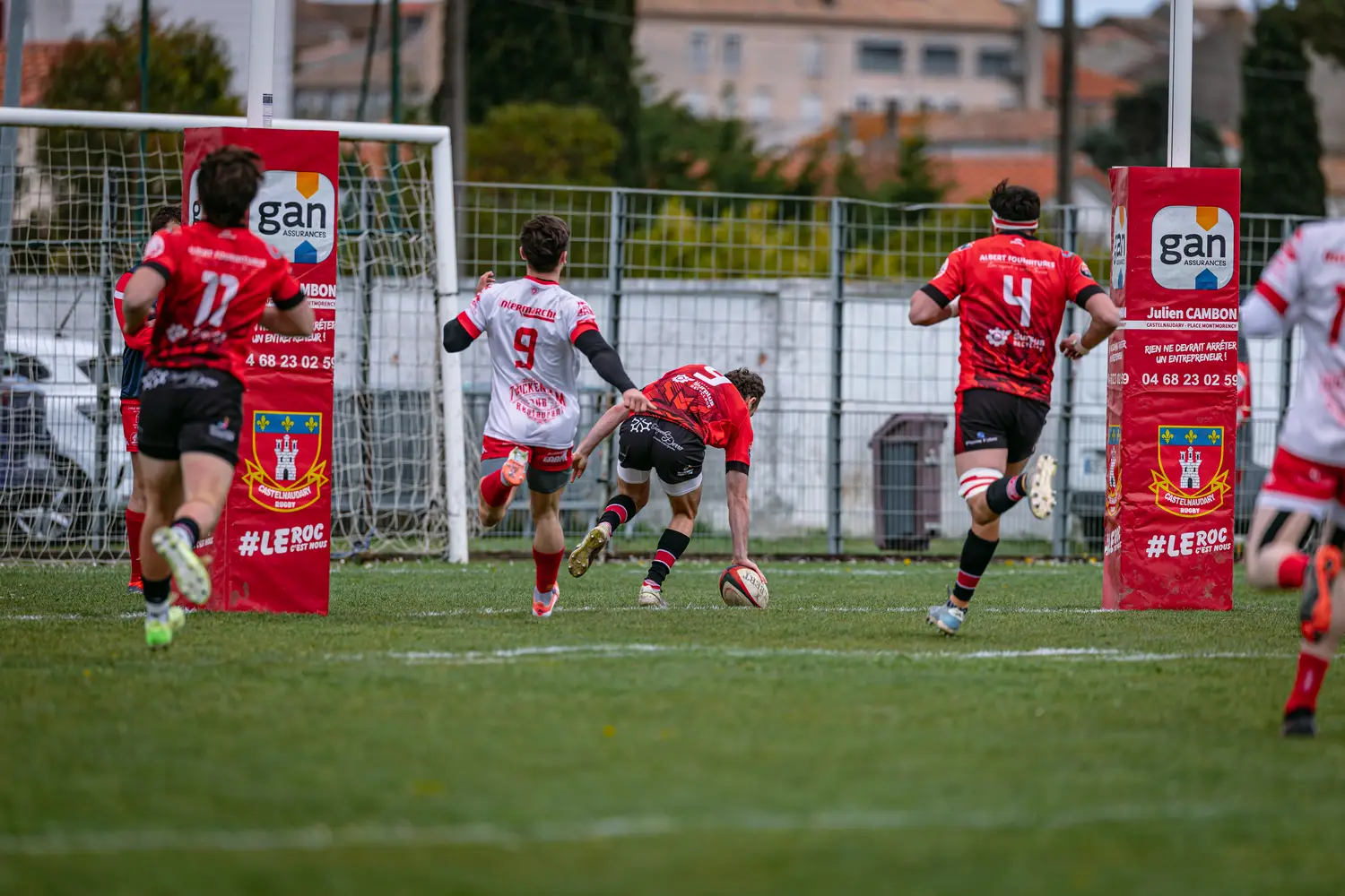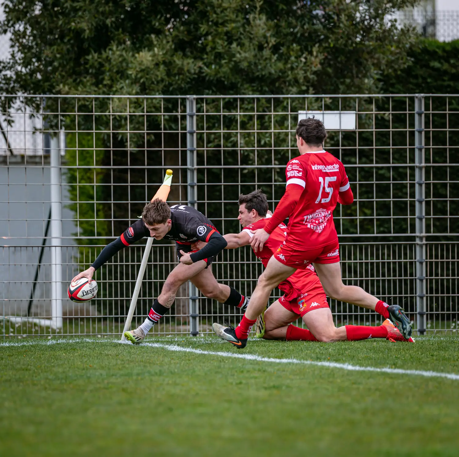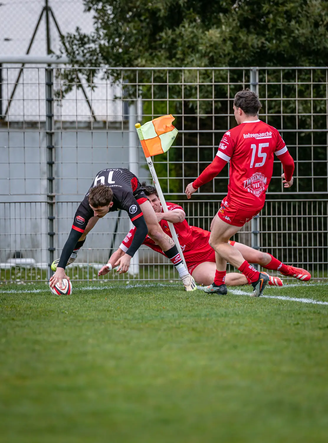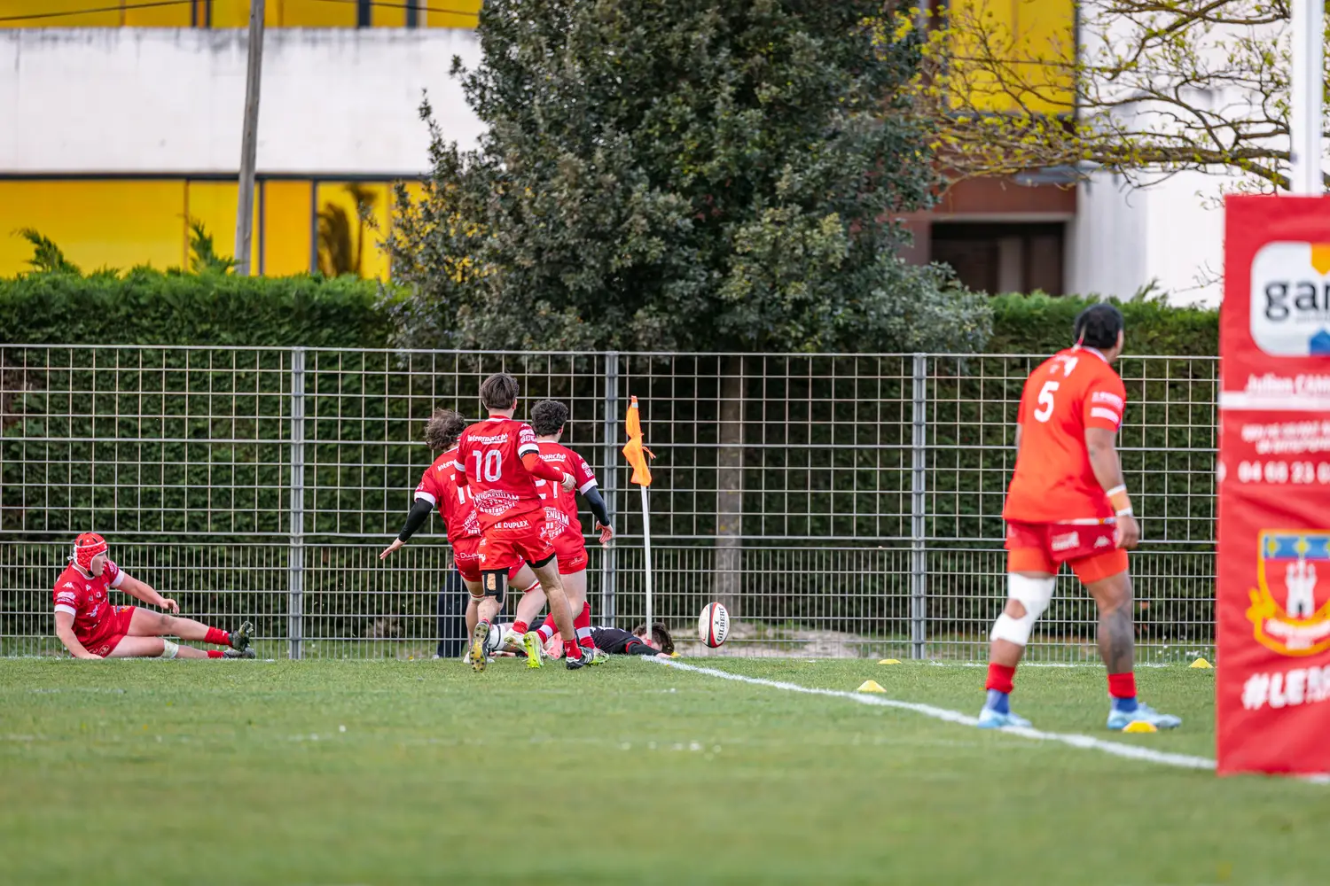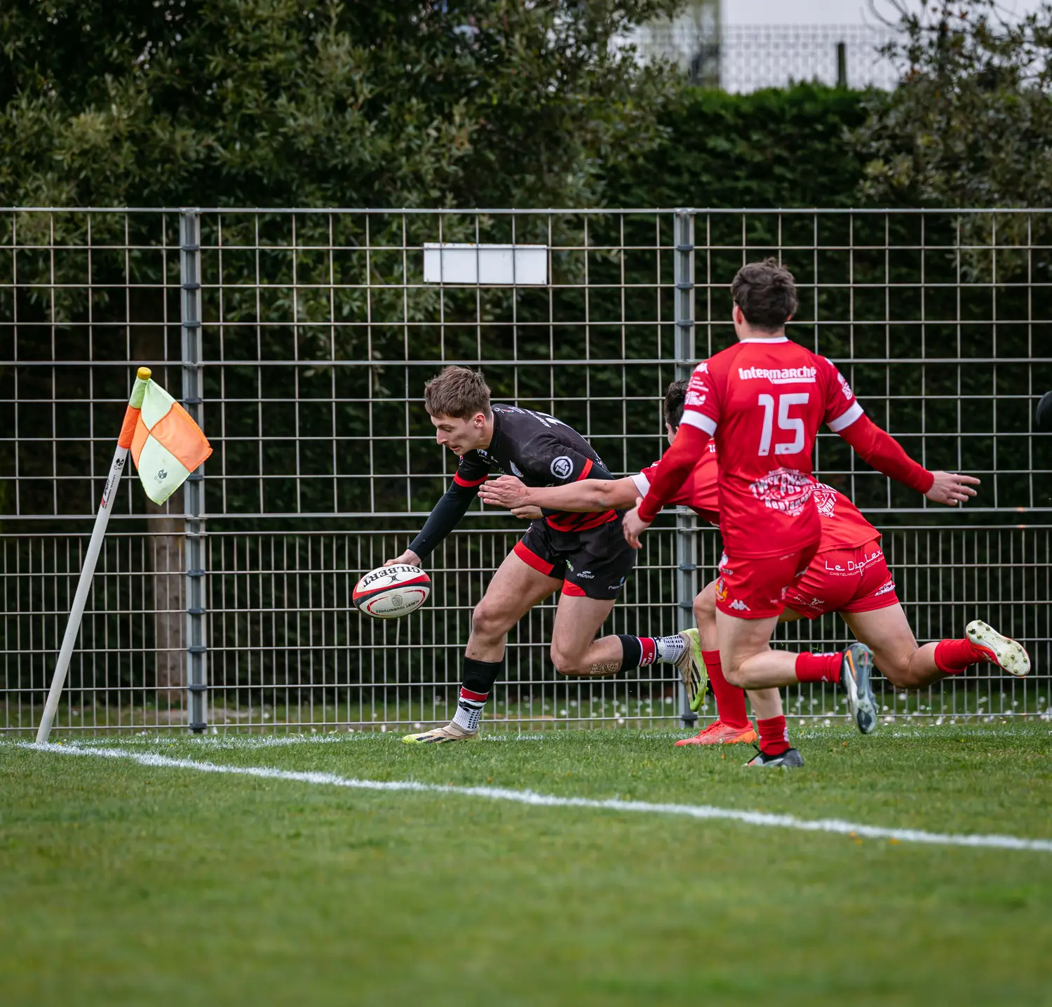 Sur une touche bien négociée, Maëlik Canda vient inscrire l’essai qui scelle la rencontre.