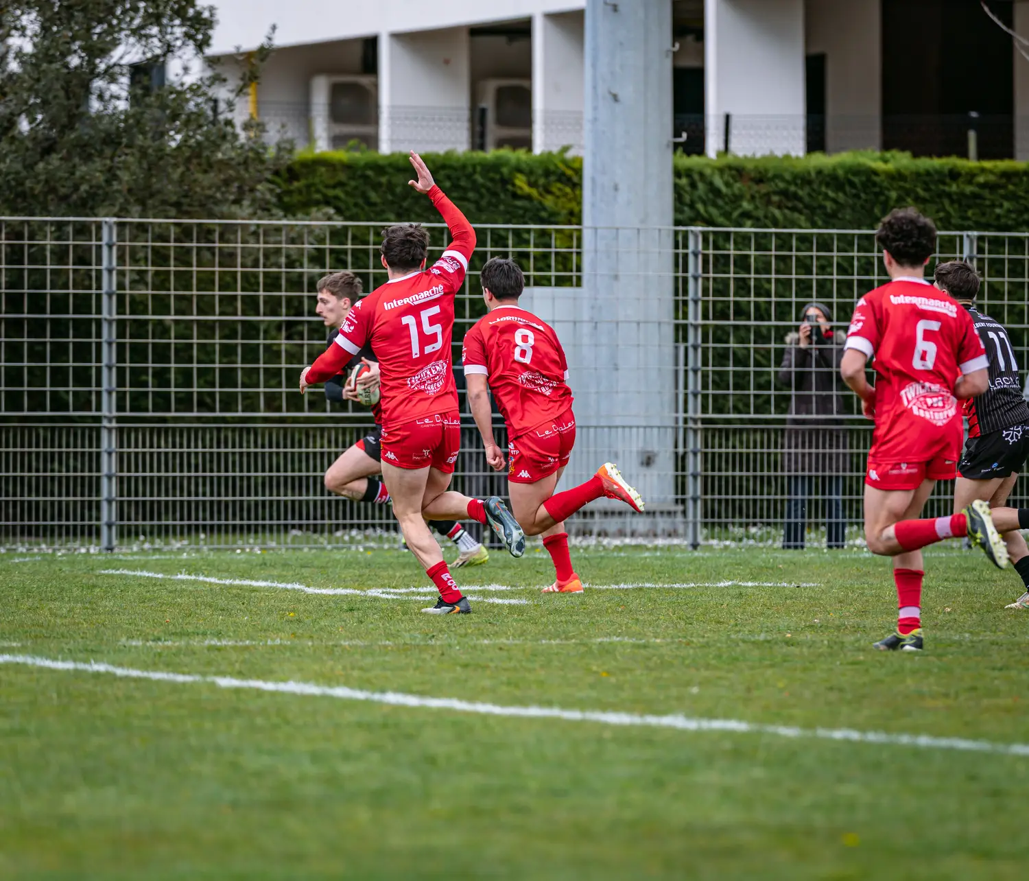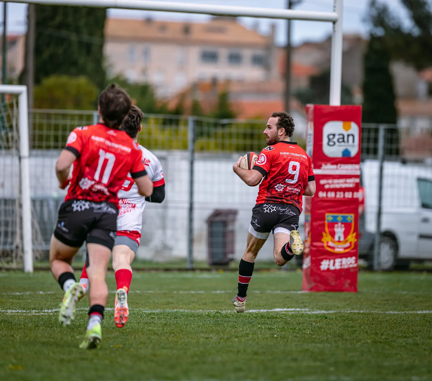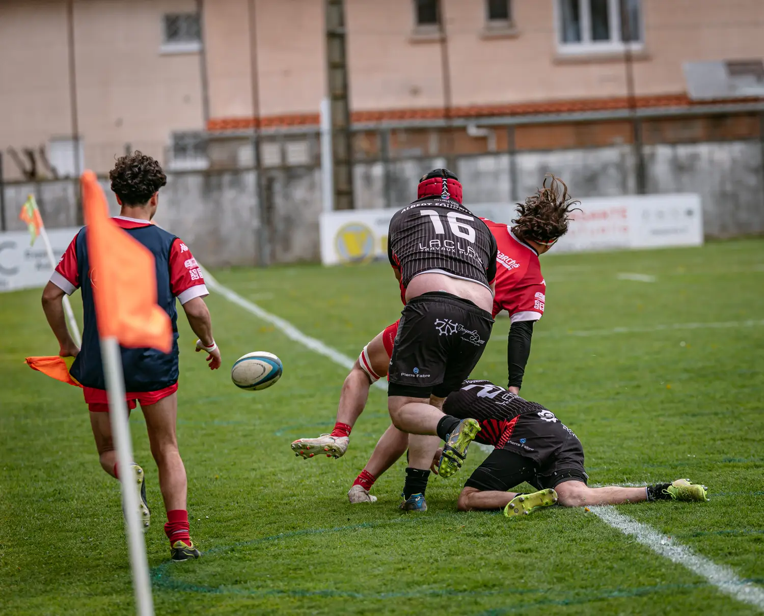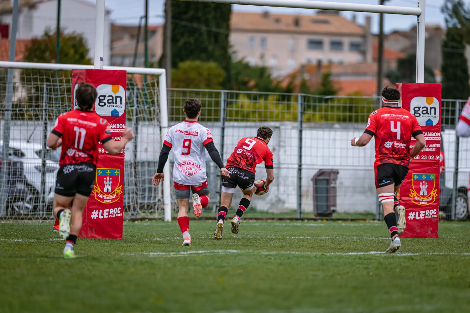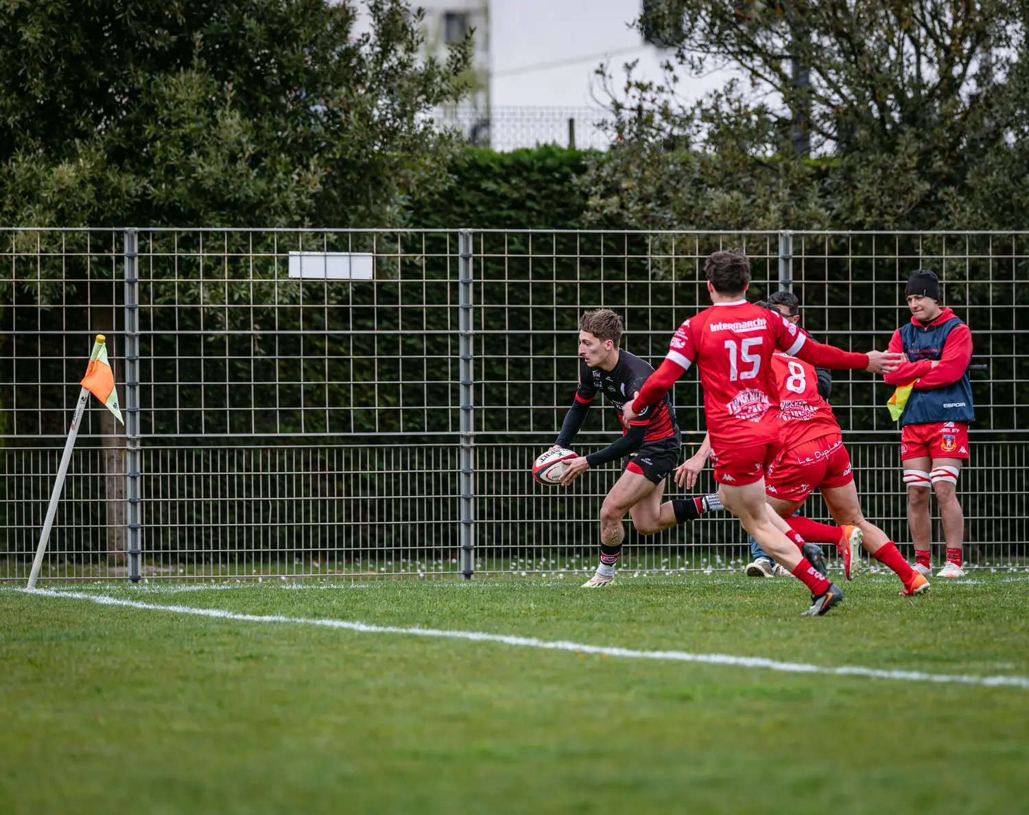 Sur une touche bien négociée, Maëlik Canda vient inscrire l’essai qui scelle la rencontre.