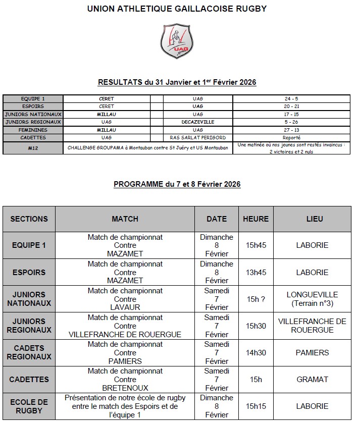 Et parce qu’à l’UAG, le rugby ne s’arrête pas au coup de sifflet final, la journée se prolongera avec une soirée tartiflette organisée par les joueurs. Un moment convivial, au chaud, pour partager cette fin de journée tous ensemble.