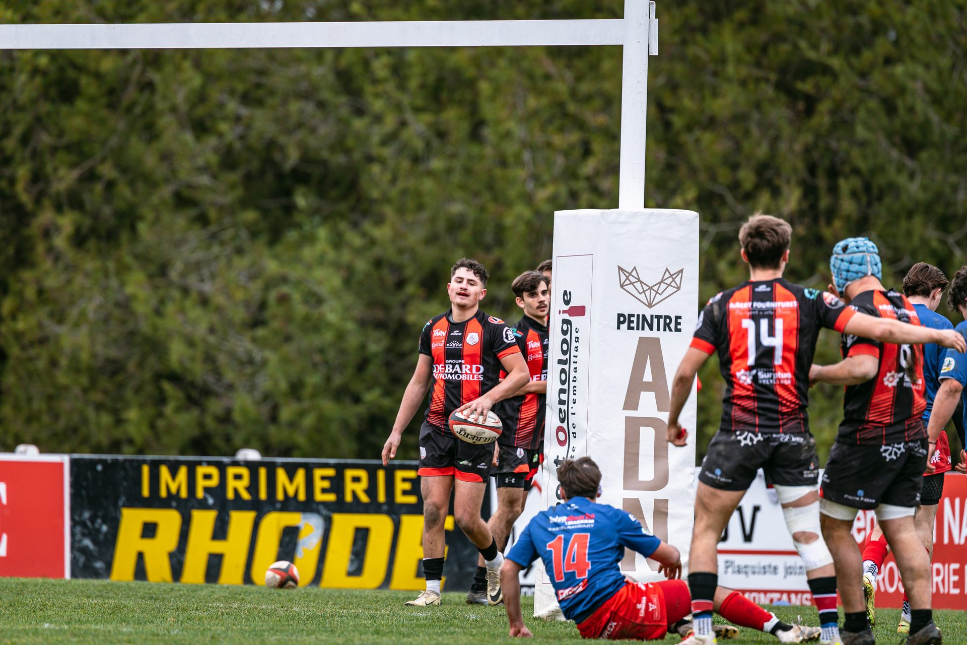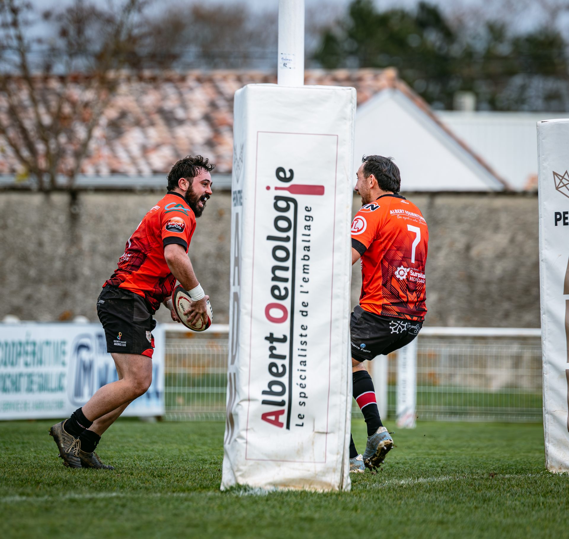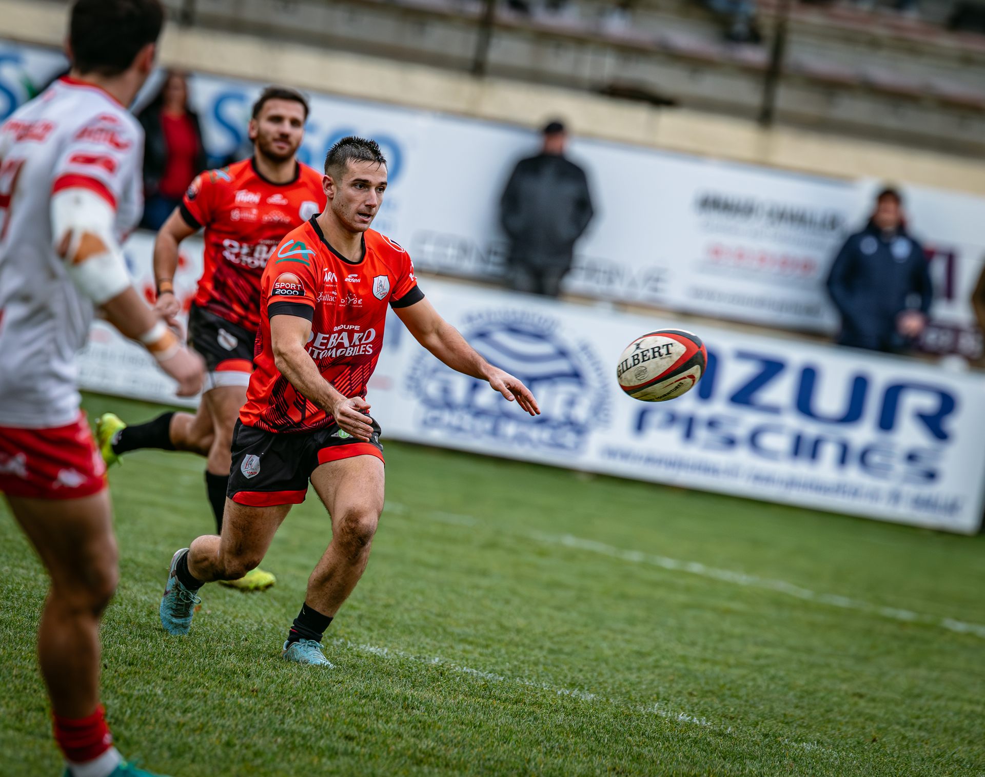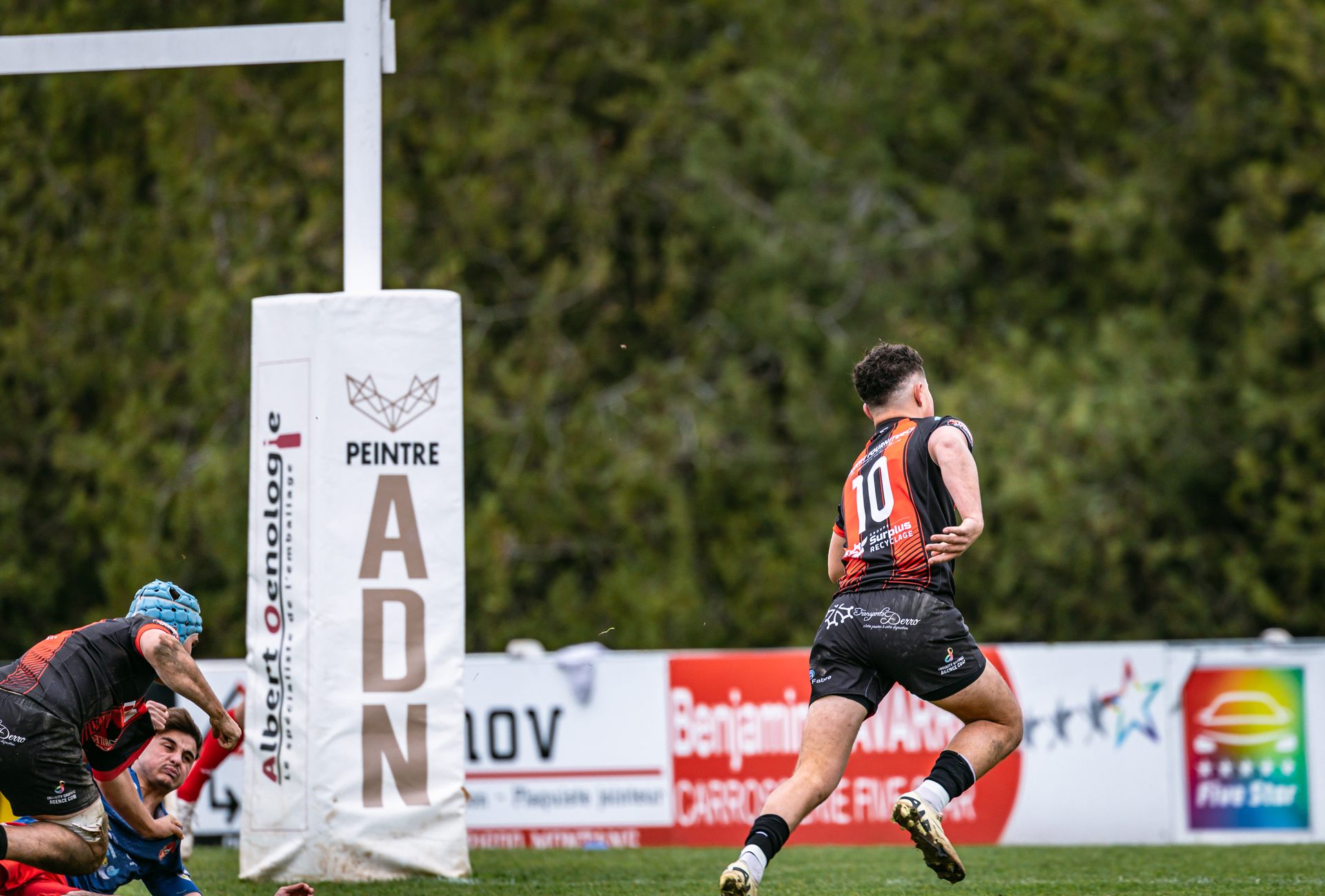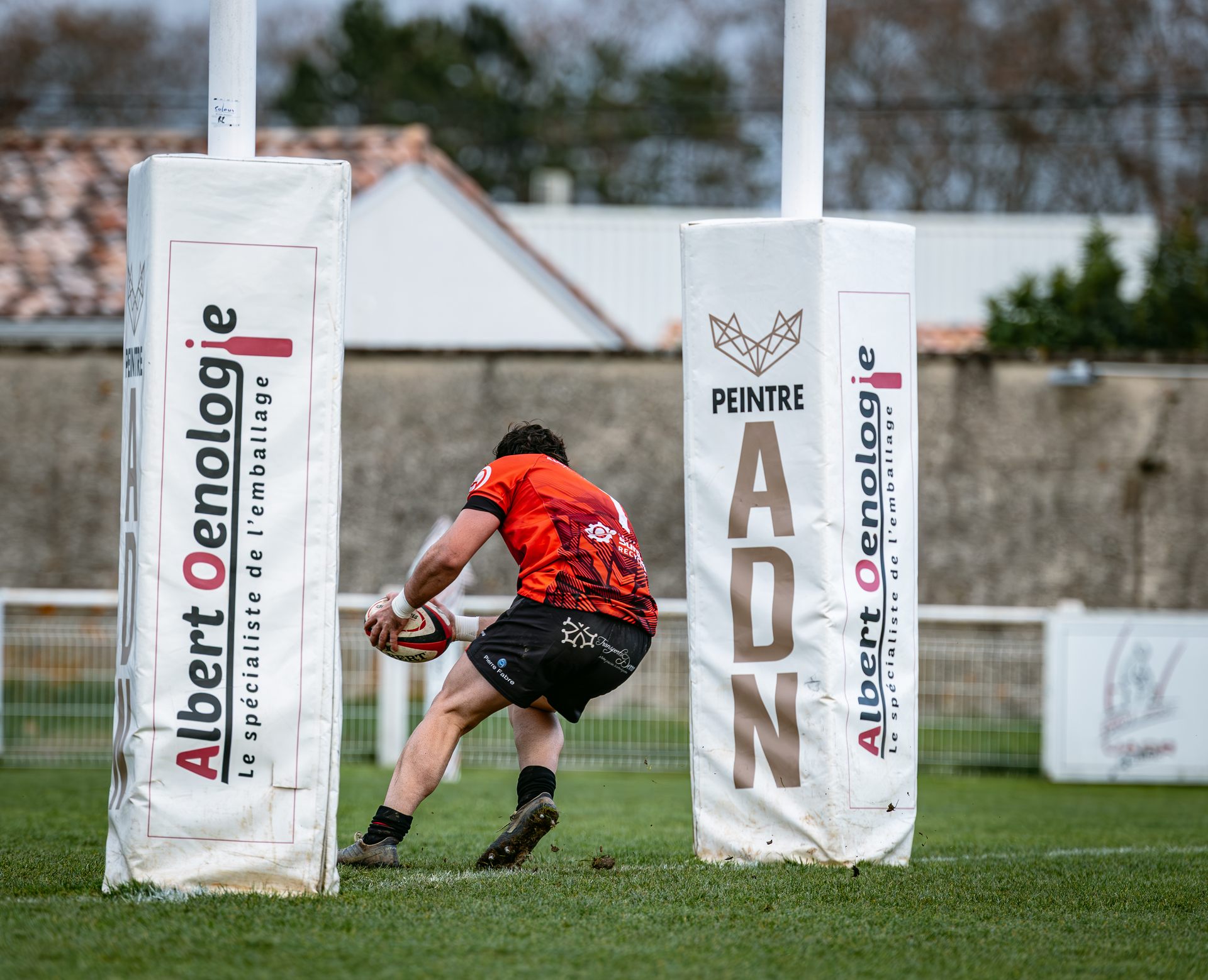 Thomas Breton, le double coup de massue. Entré en jeu avec fraîcheur et envie, il marque deux essais qui relancent totalement la rencontre ! Les deux transformations sont signées Charly Goze.