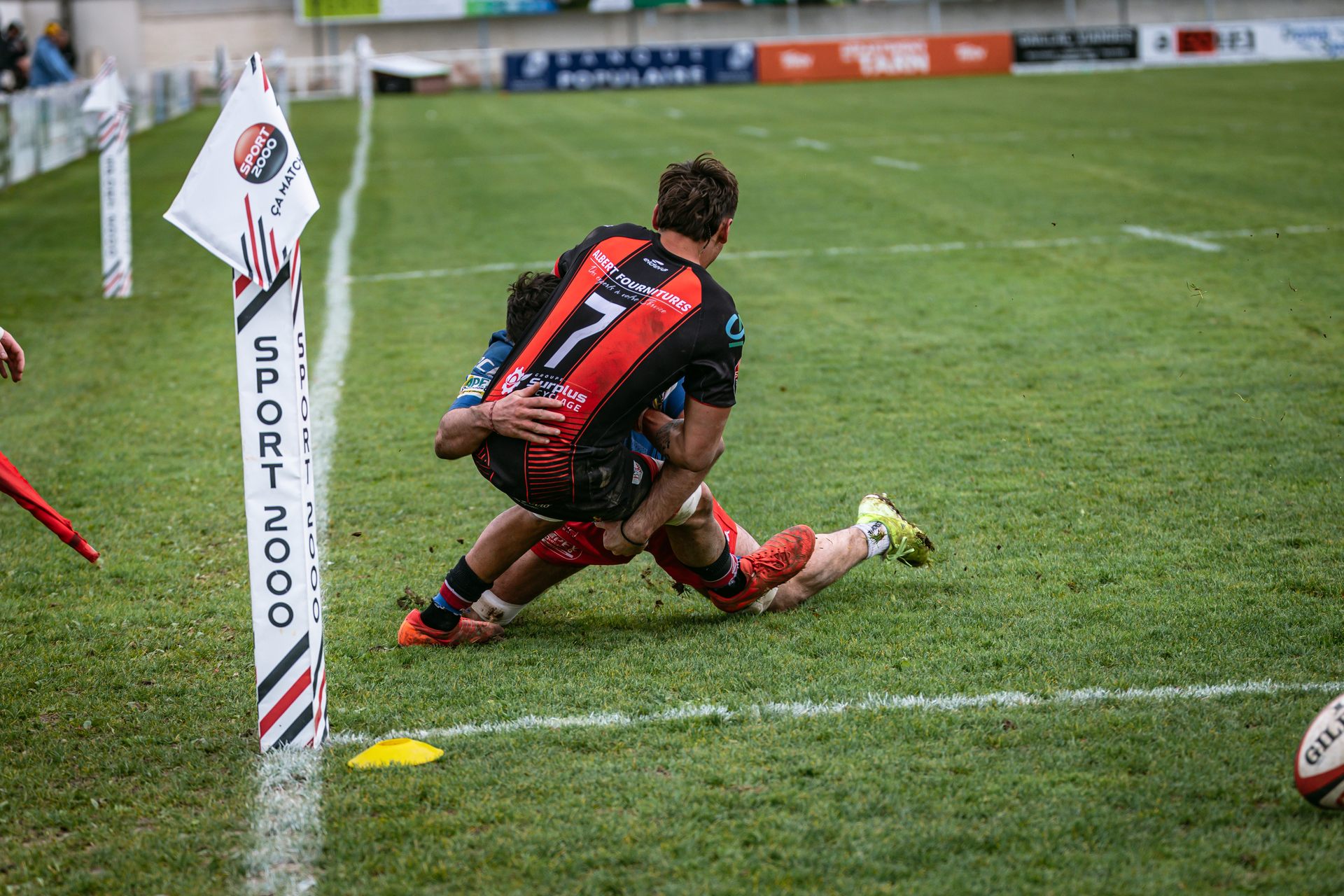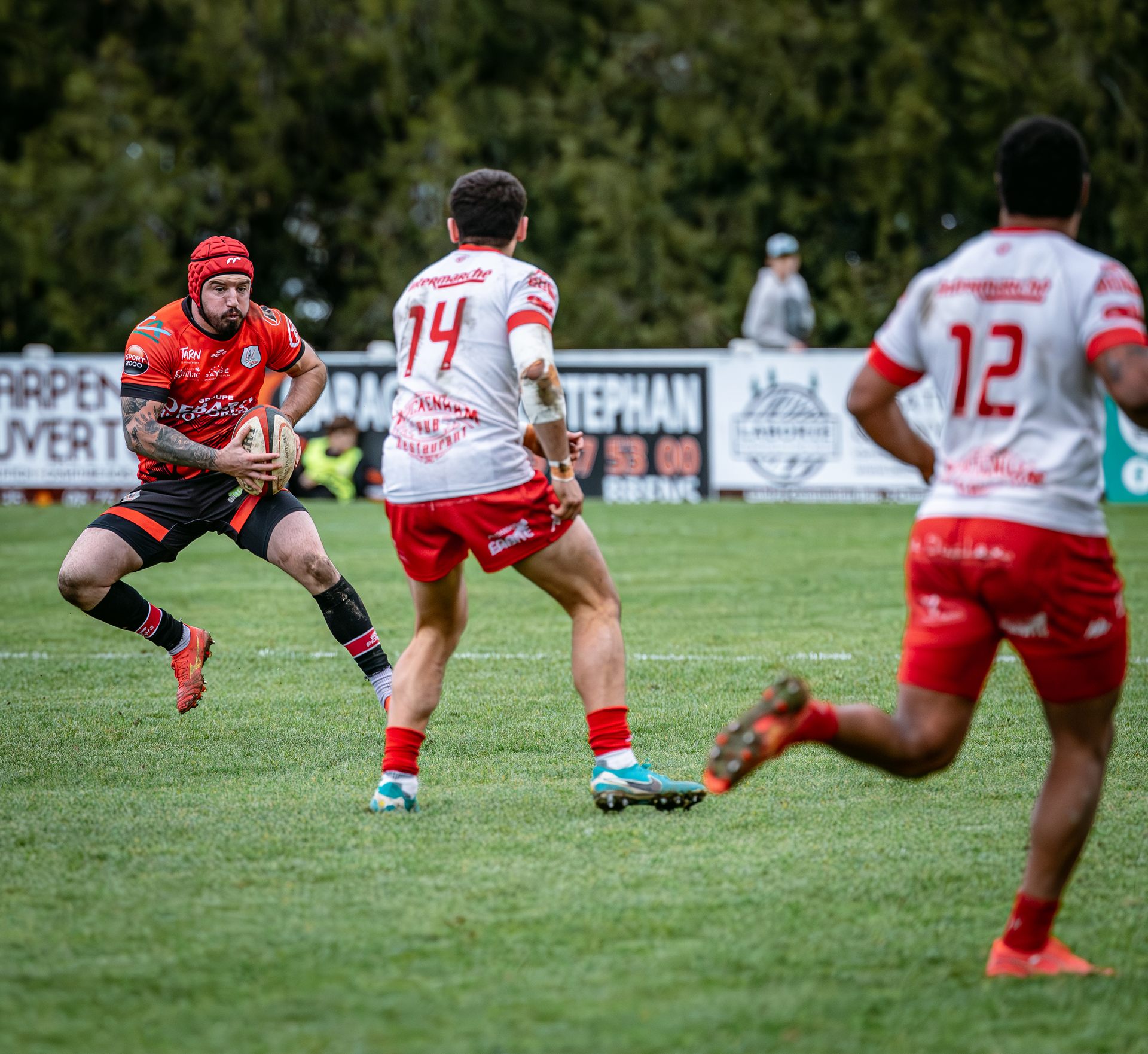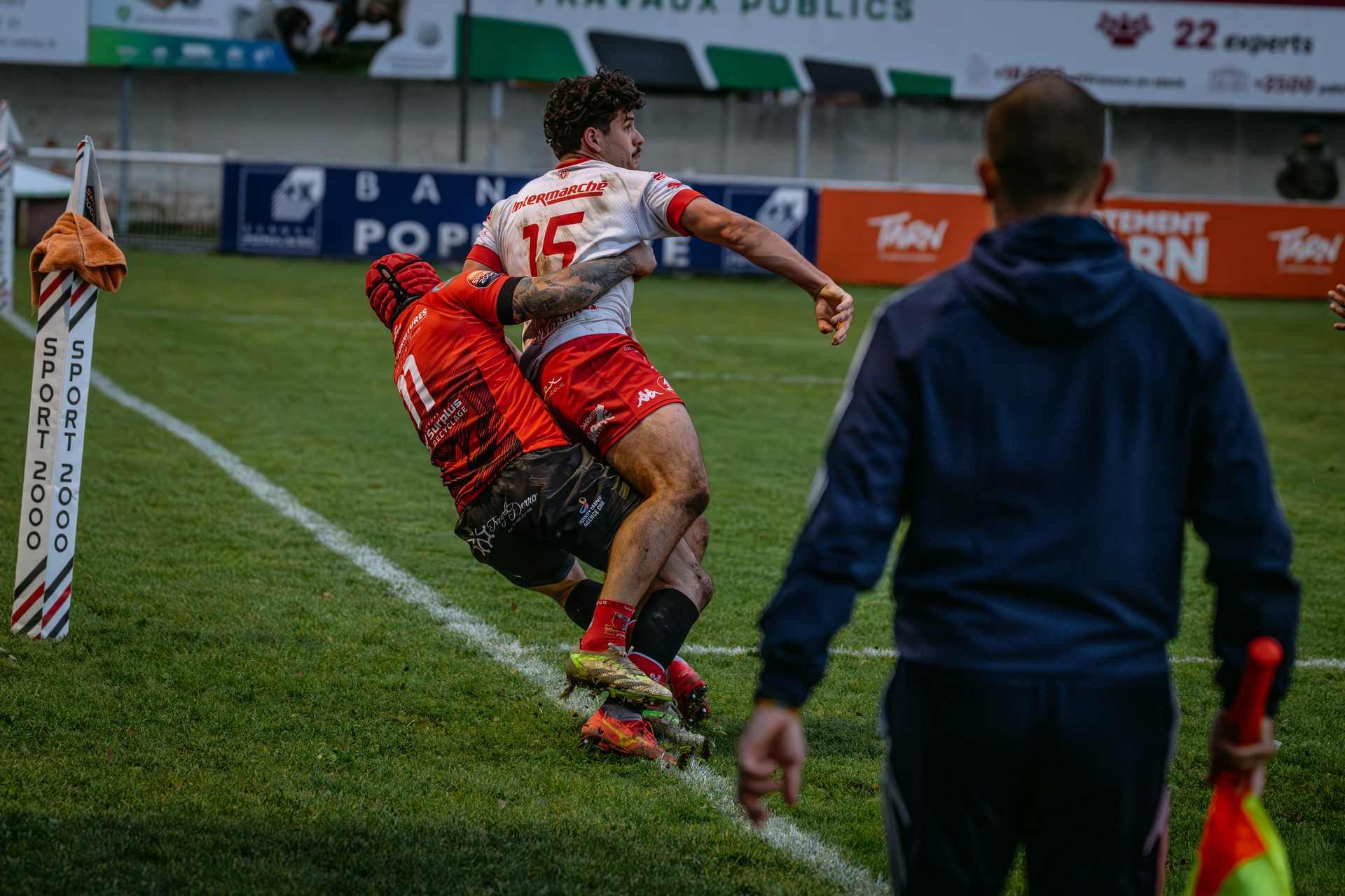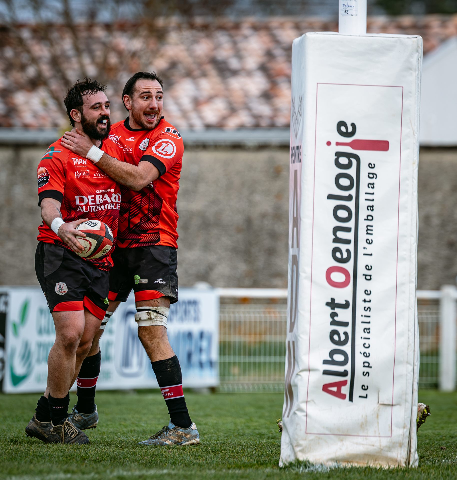 Thomas Breton, le double coup de massue. Entré en jeu avec fraîcheur et envie, il marque deux essais qui relancent totalement la rencontre ! Les deux transformations sont signées Charly Goze.