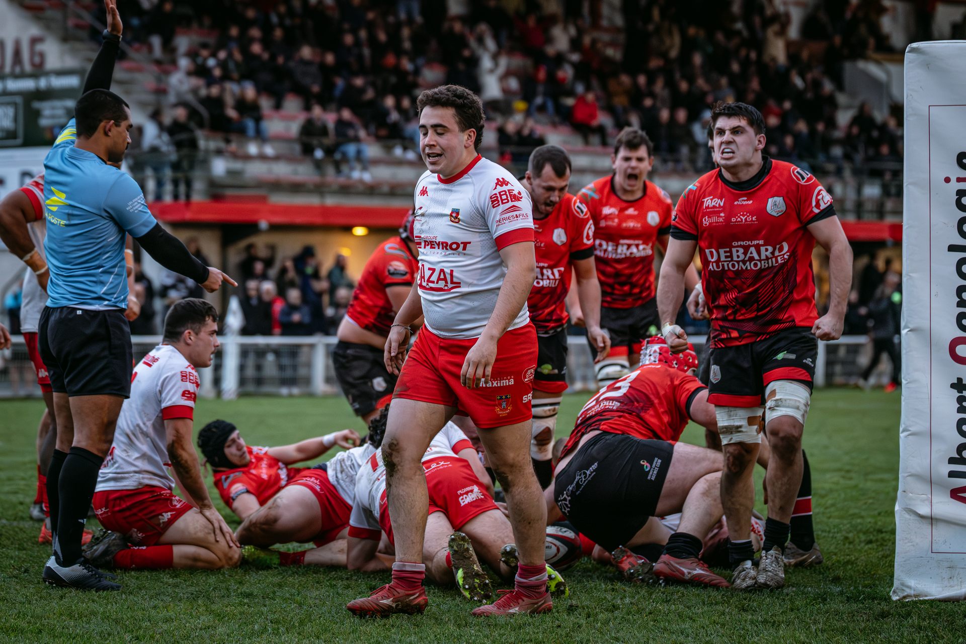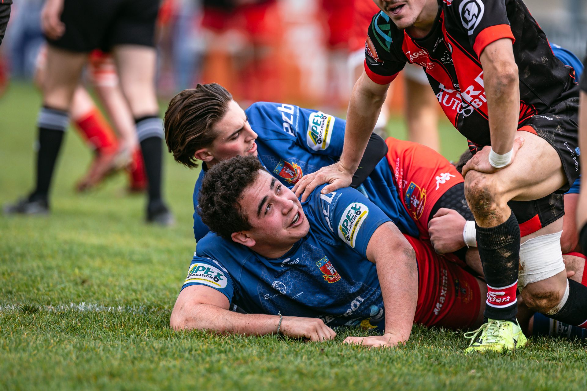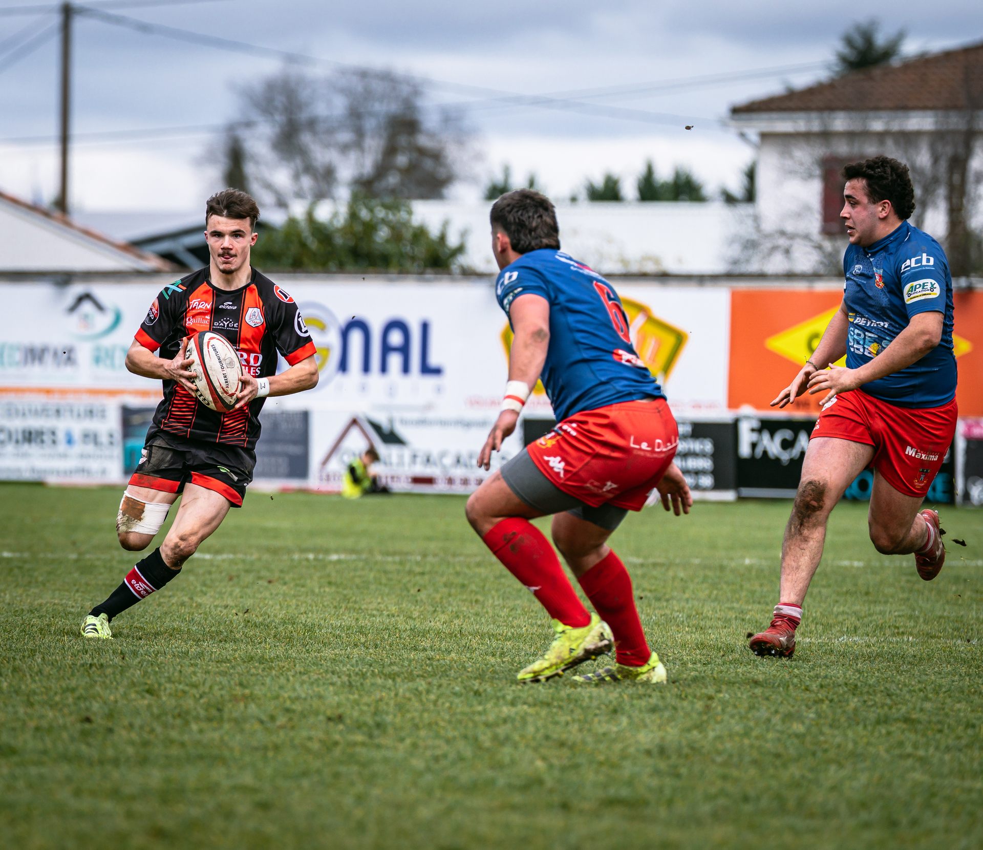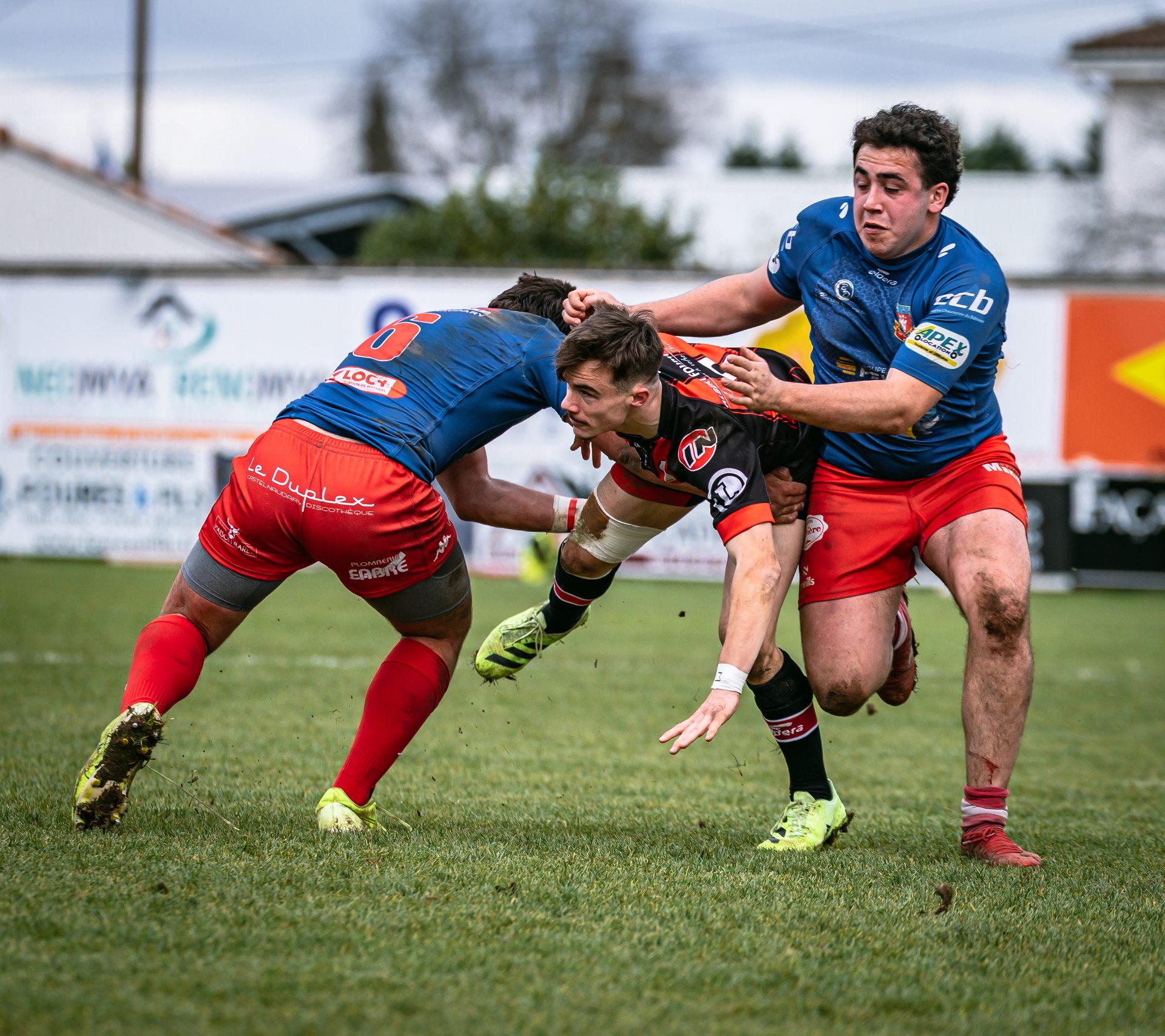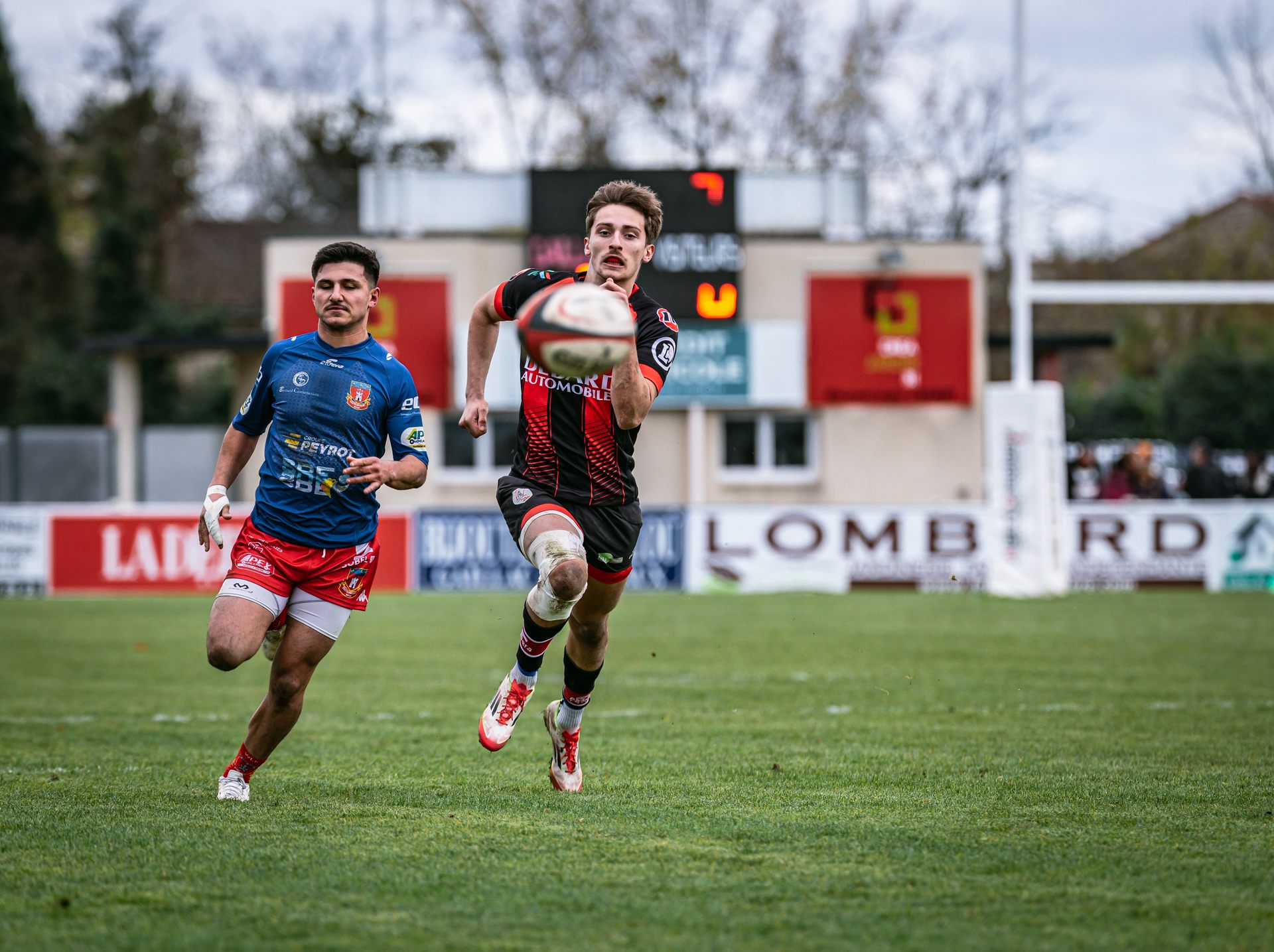 Thomas Breton, le double coup de massue. Entré en jeu avec fraîcheur et envie, il marque deux essais qui relancent totalement la rencontre ! Les deux transformations sont signées Charly Goze.