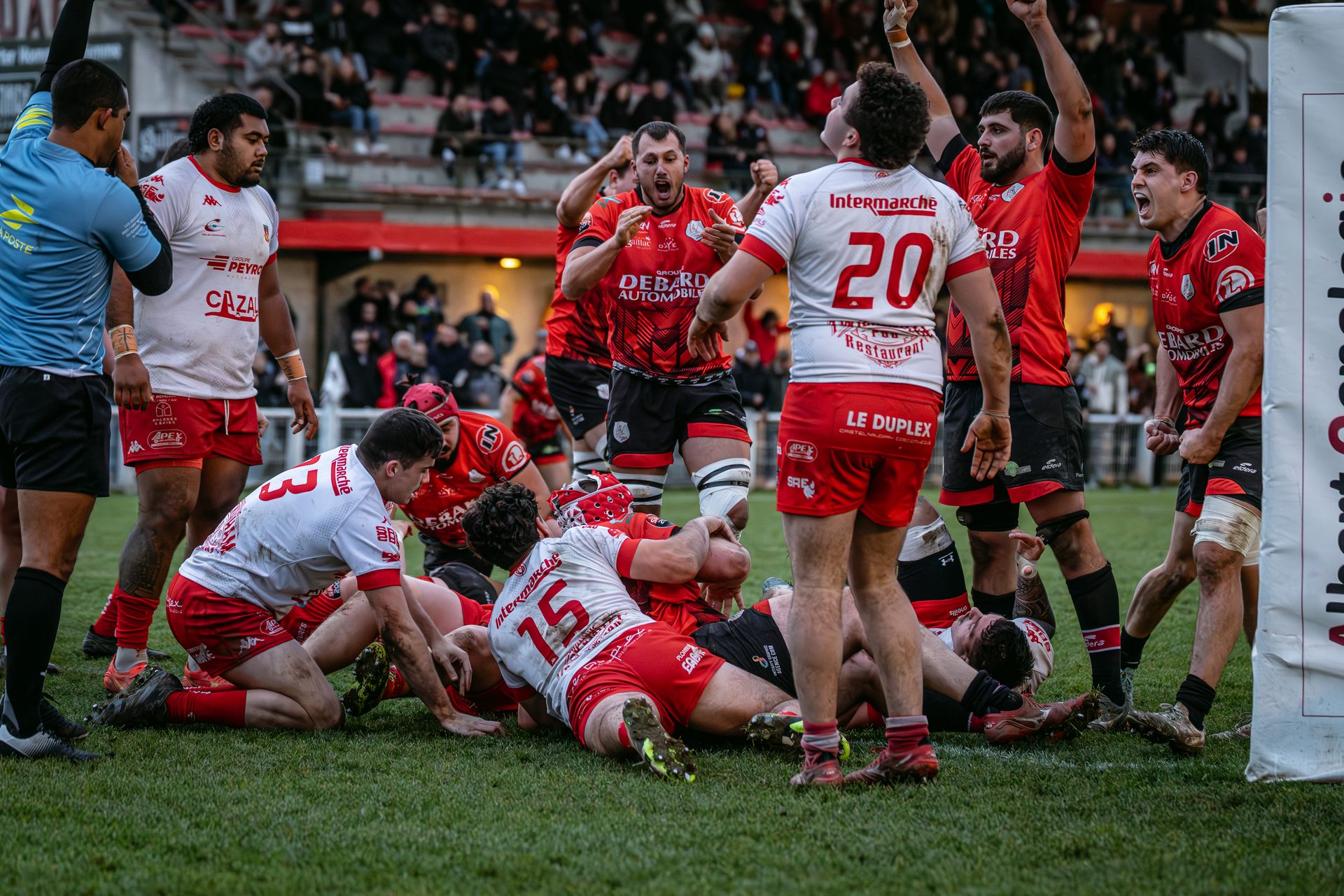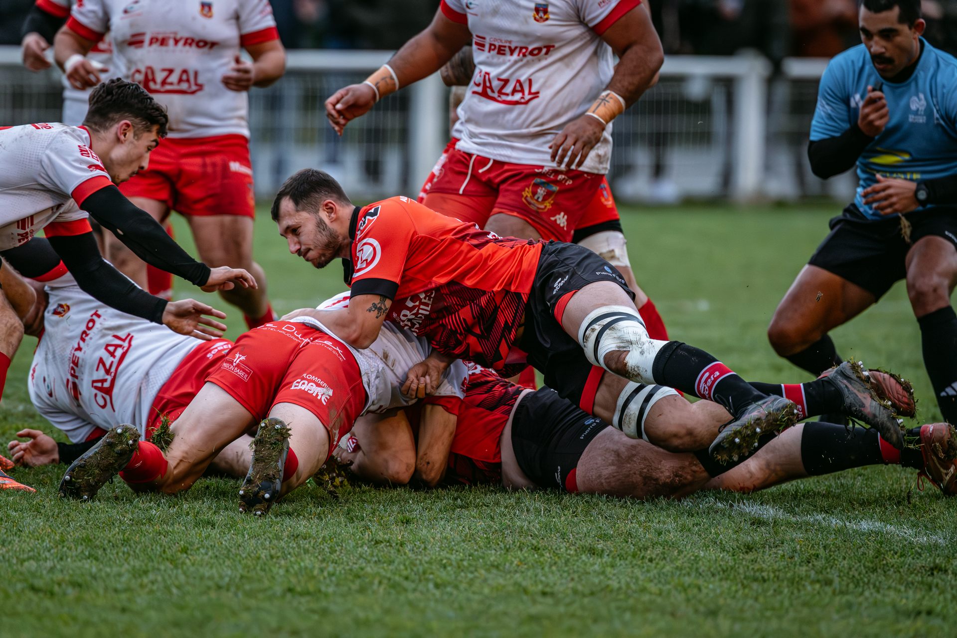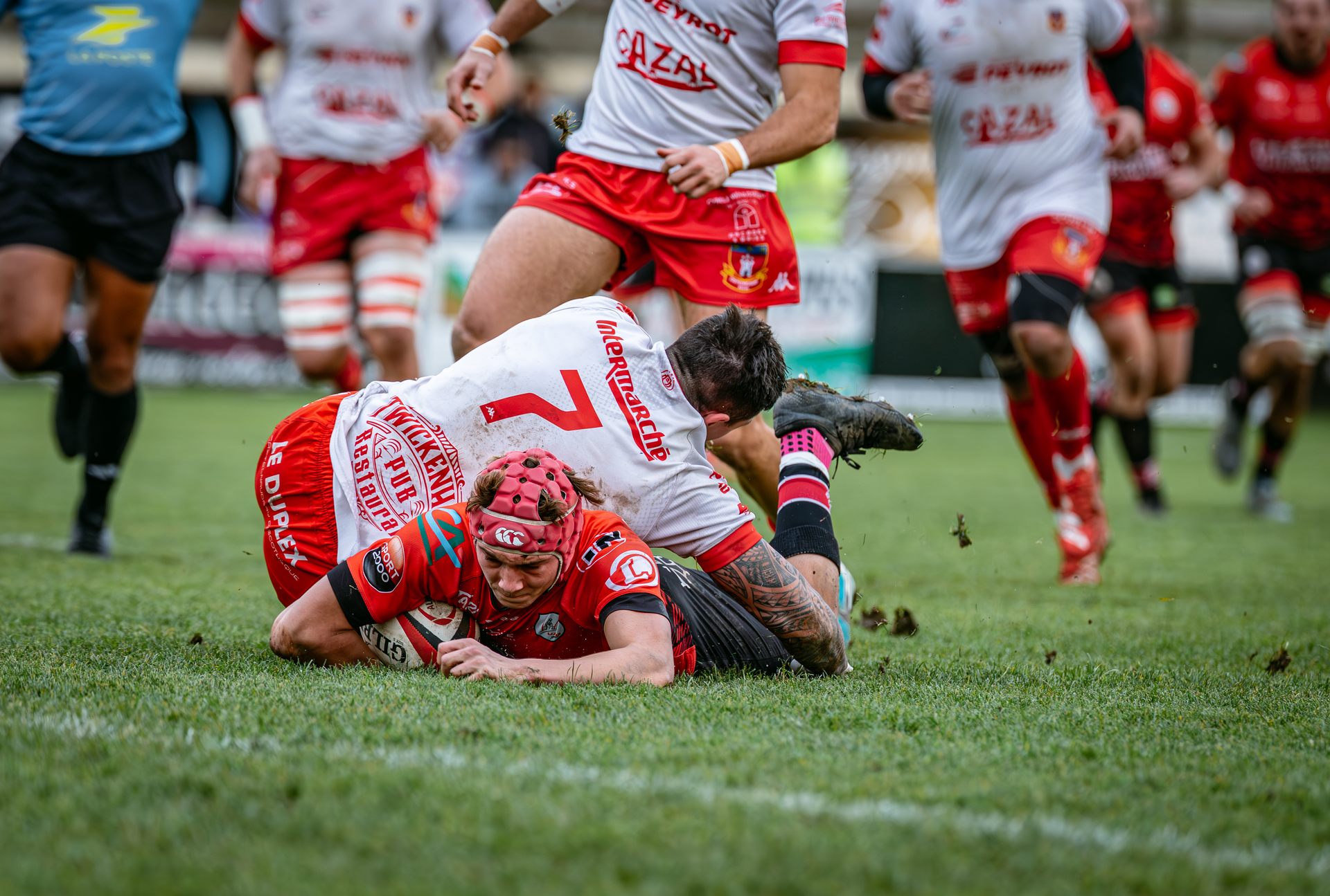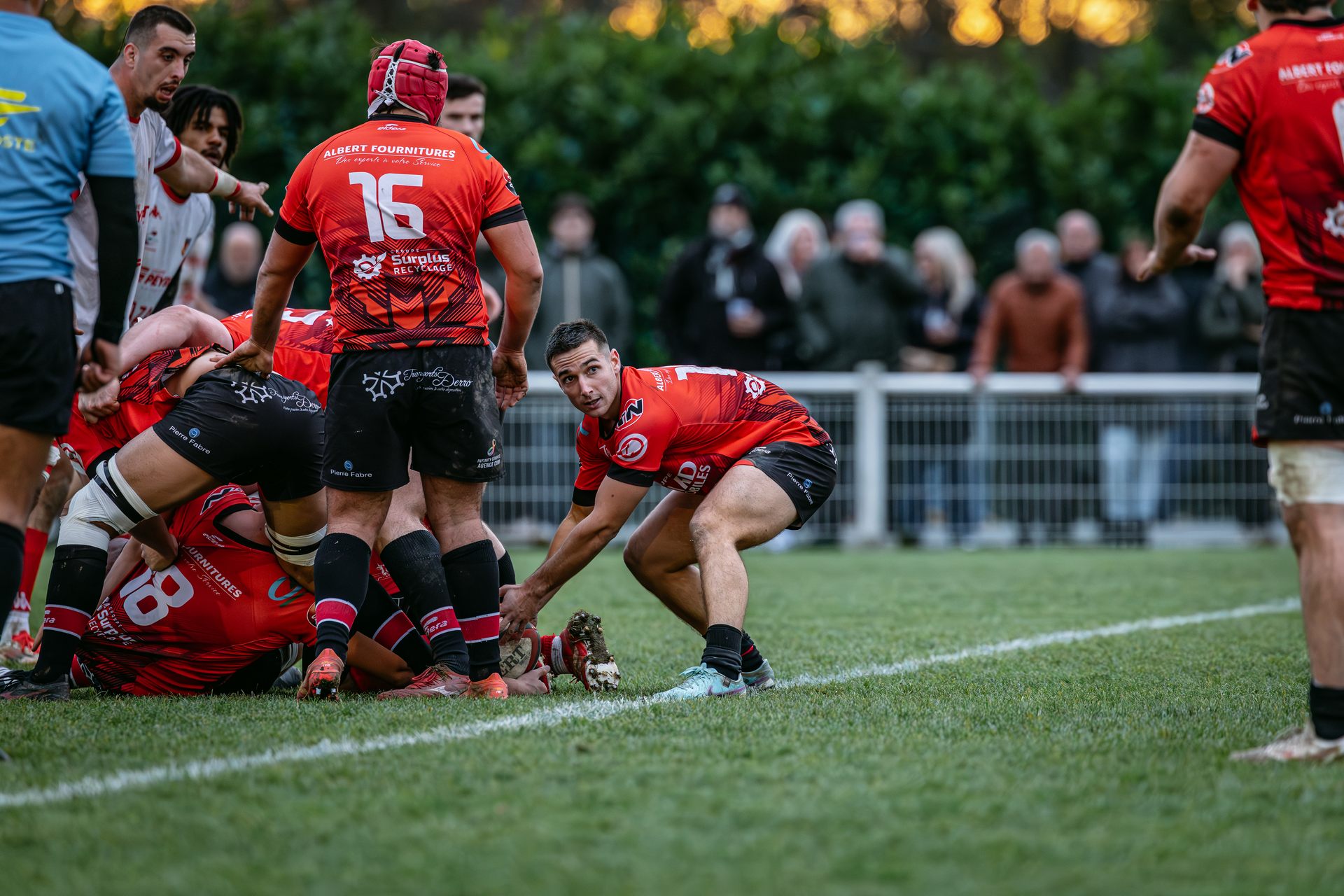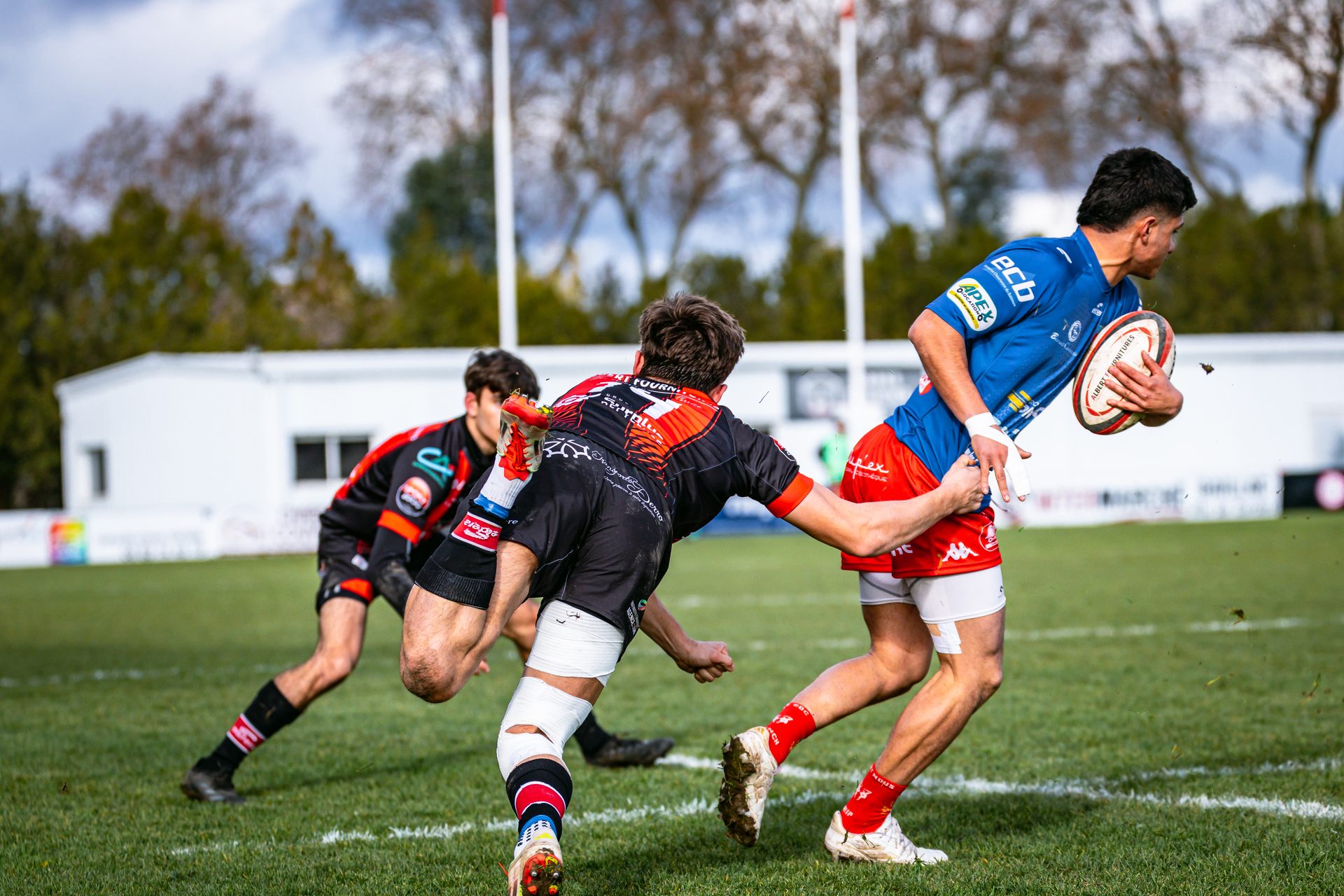 Thomas Breton, le double coup de massue. Entré en jeu avec fraîcheur et envie, il marque deux essais qui relancent totalement la rencontre ! Les deux transformations sont signées Charly Goze.