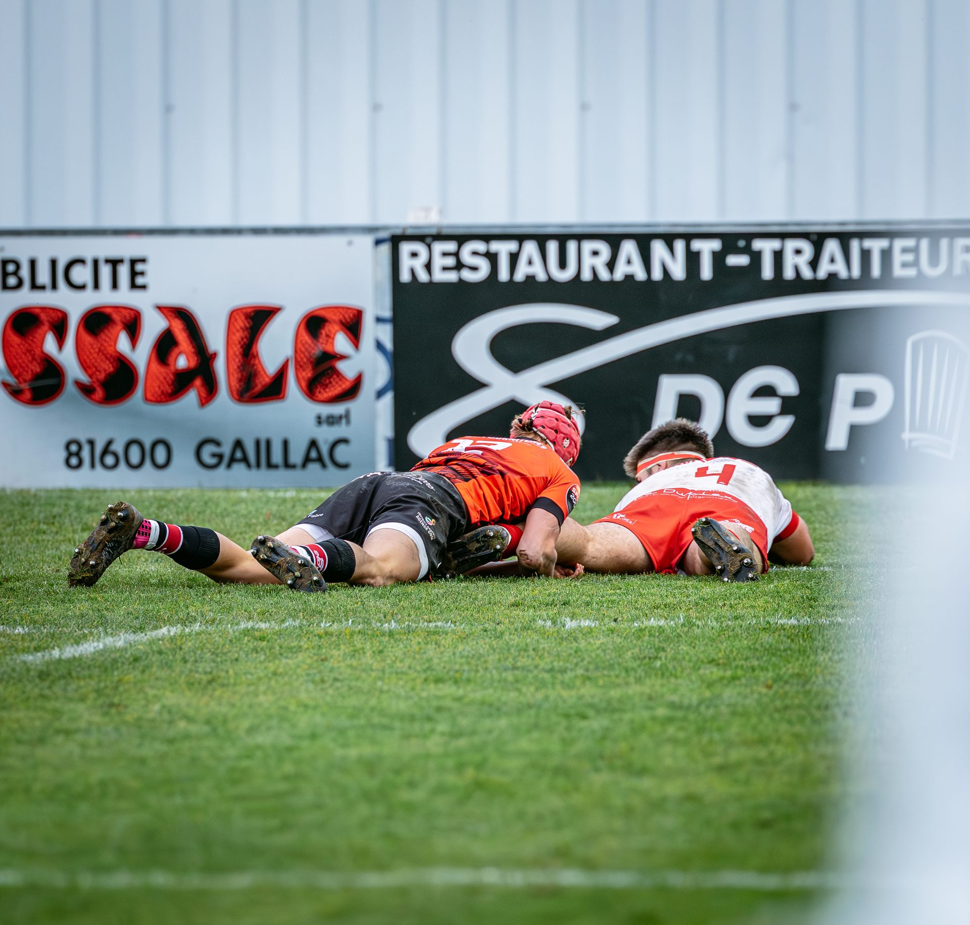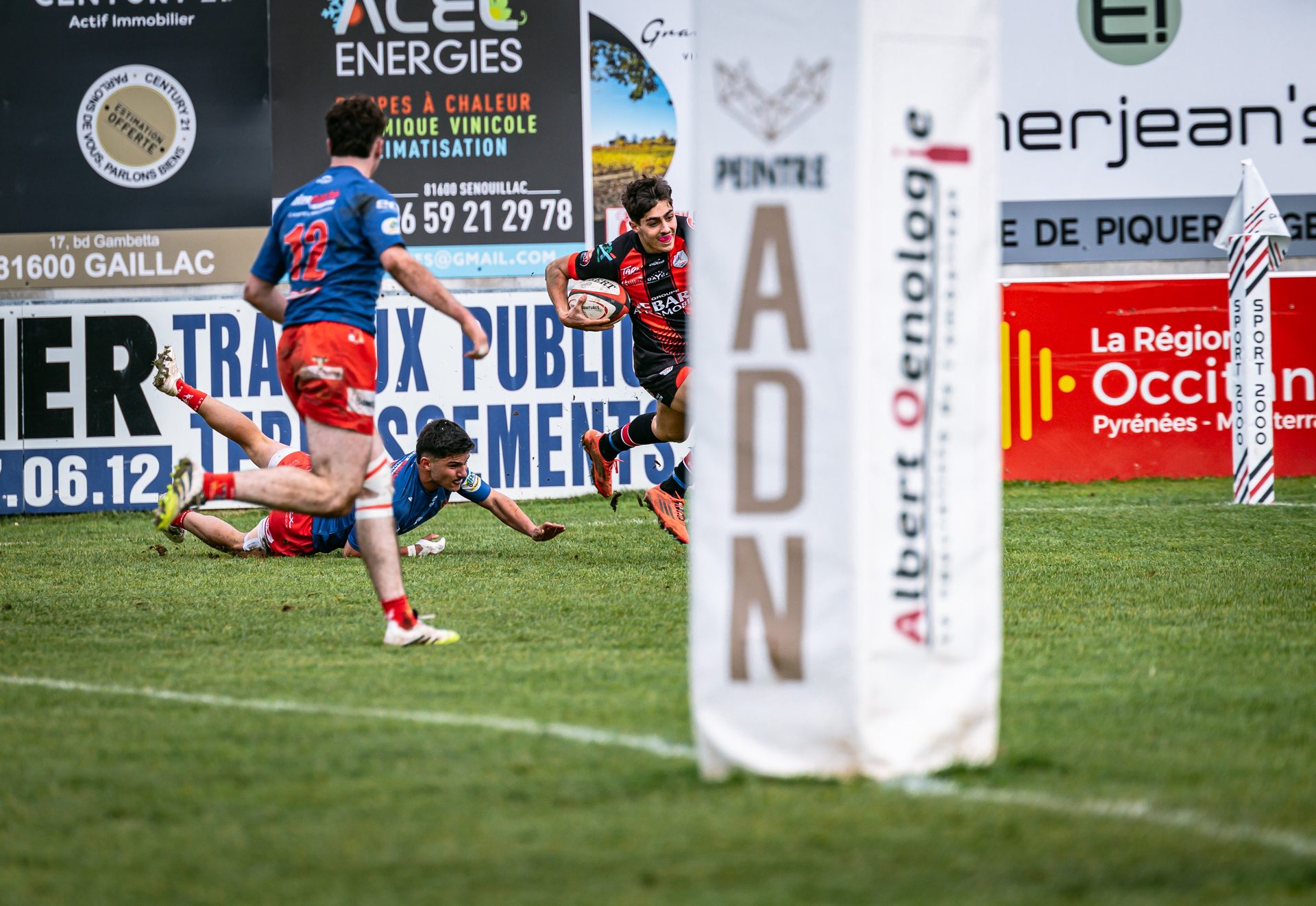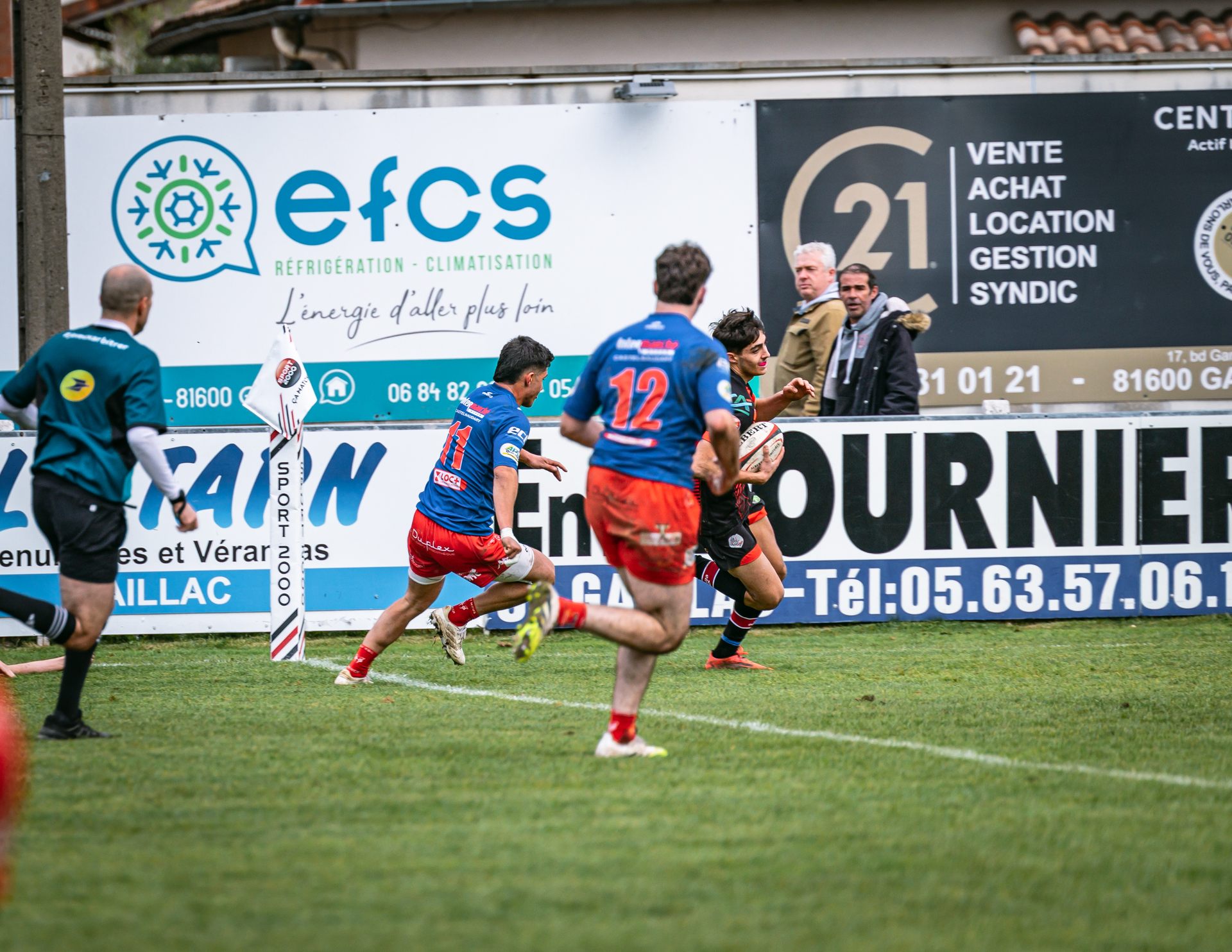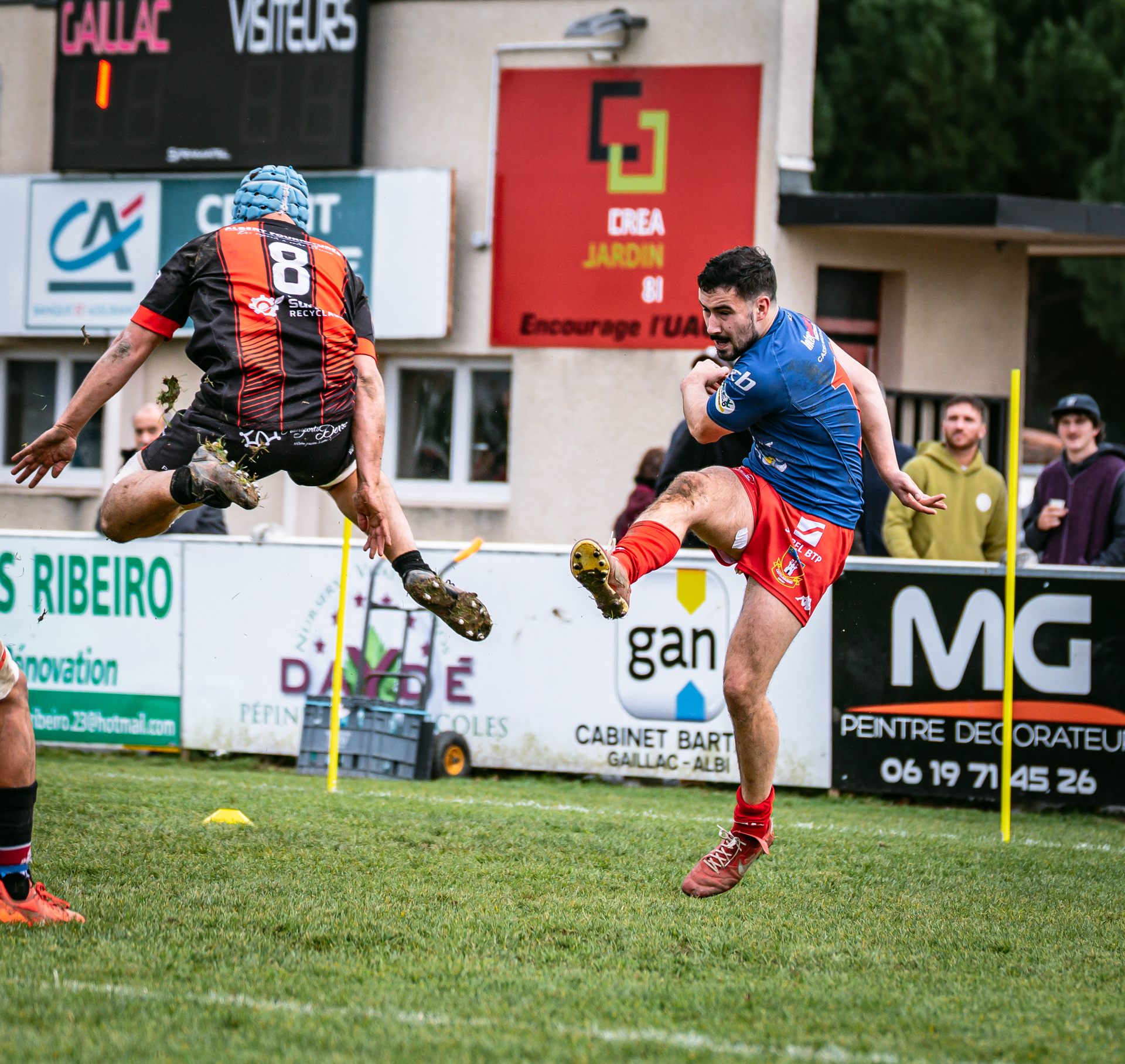 Une course le long de la touche, un raffut qui passe… et voilà le second essai gaillacois. Transformation manquée