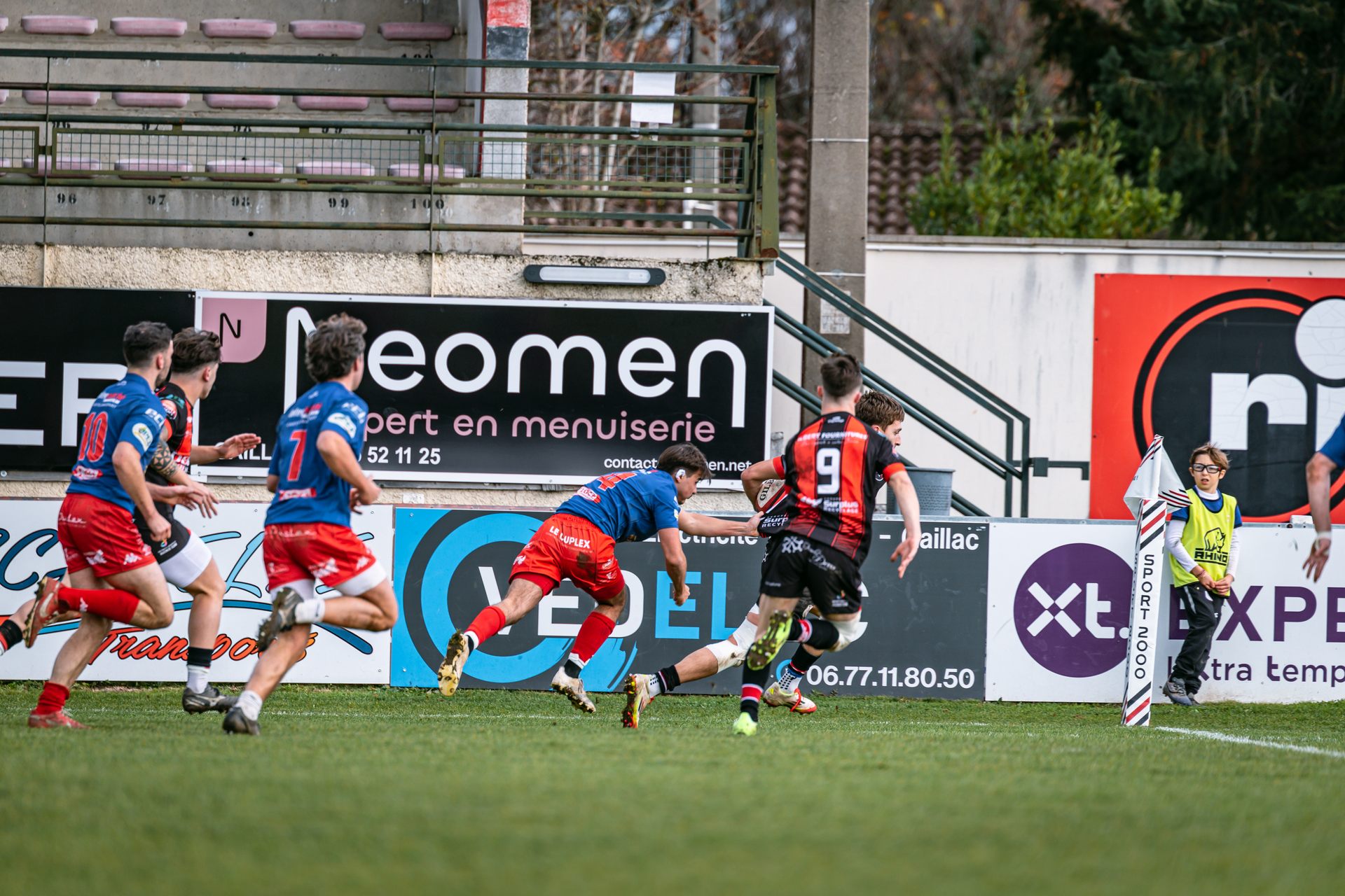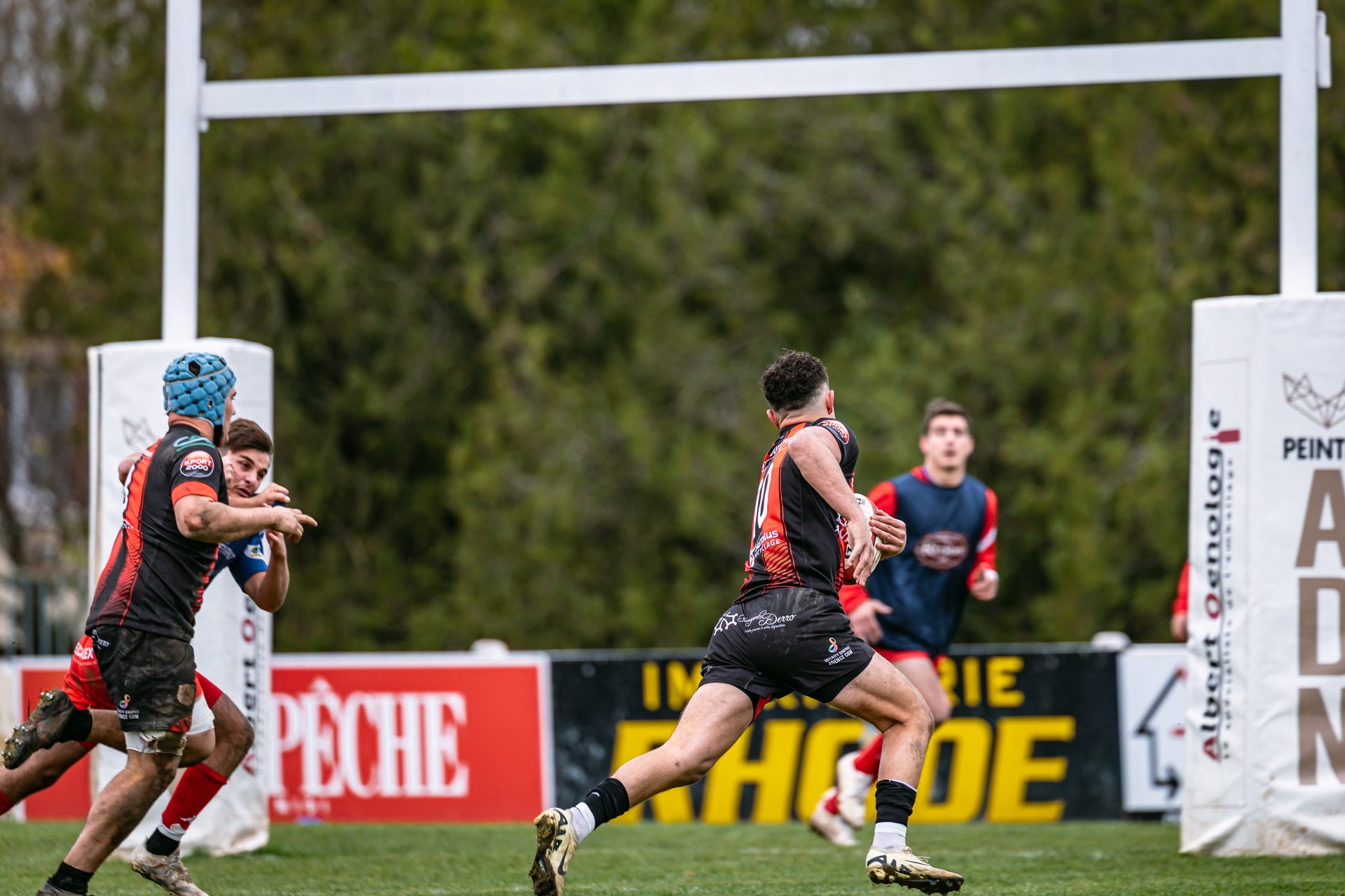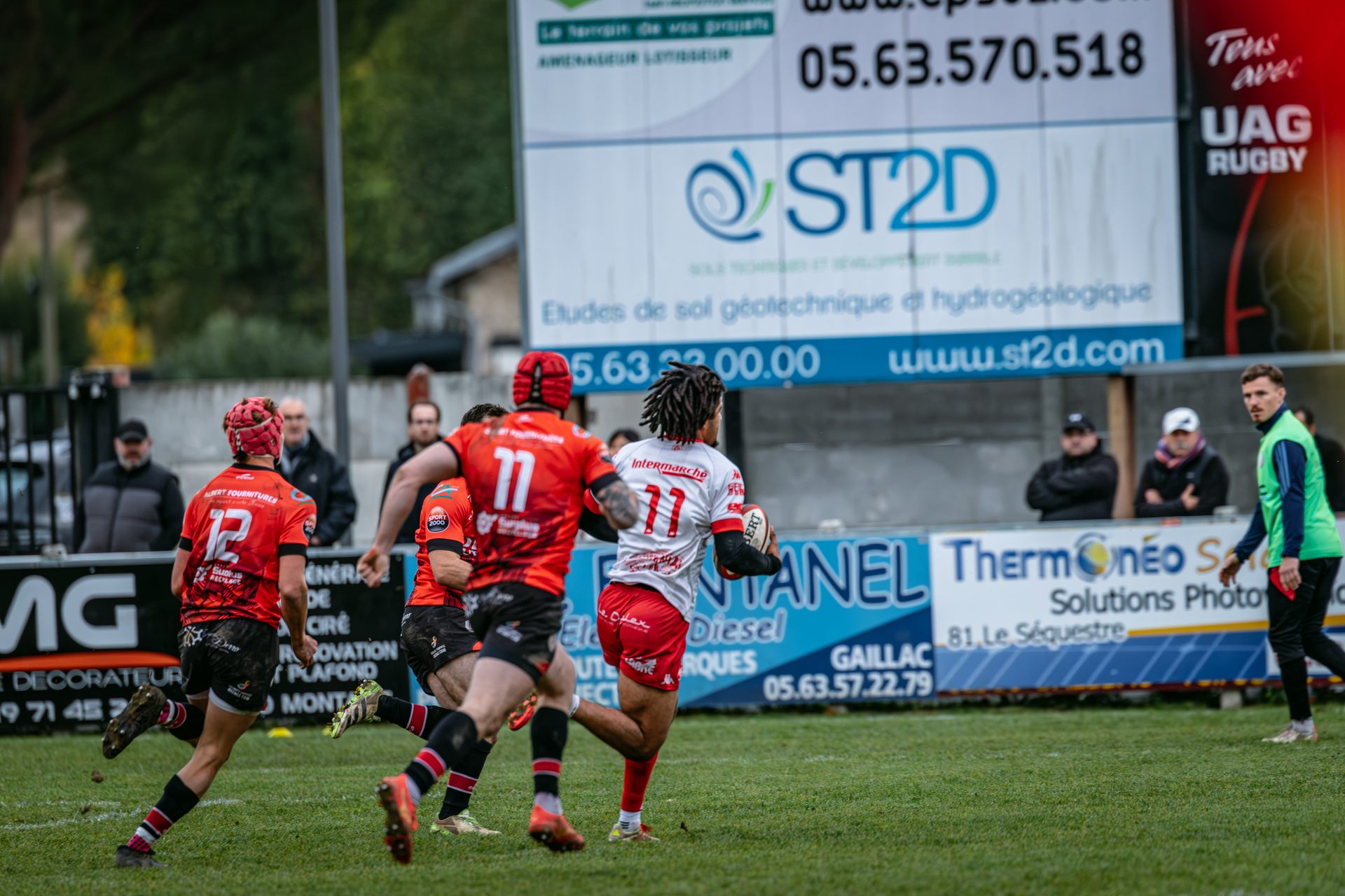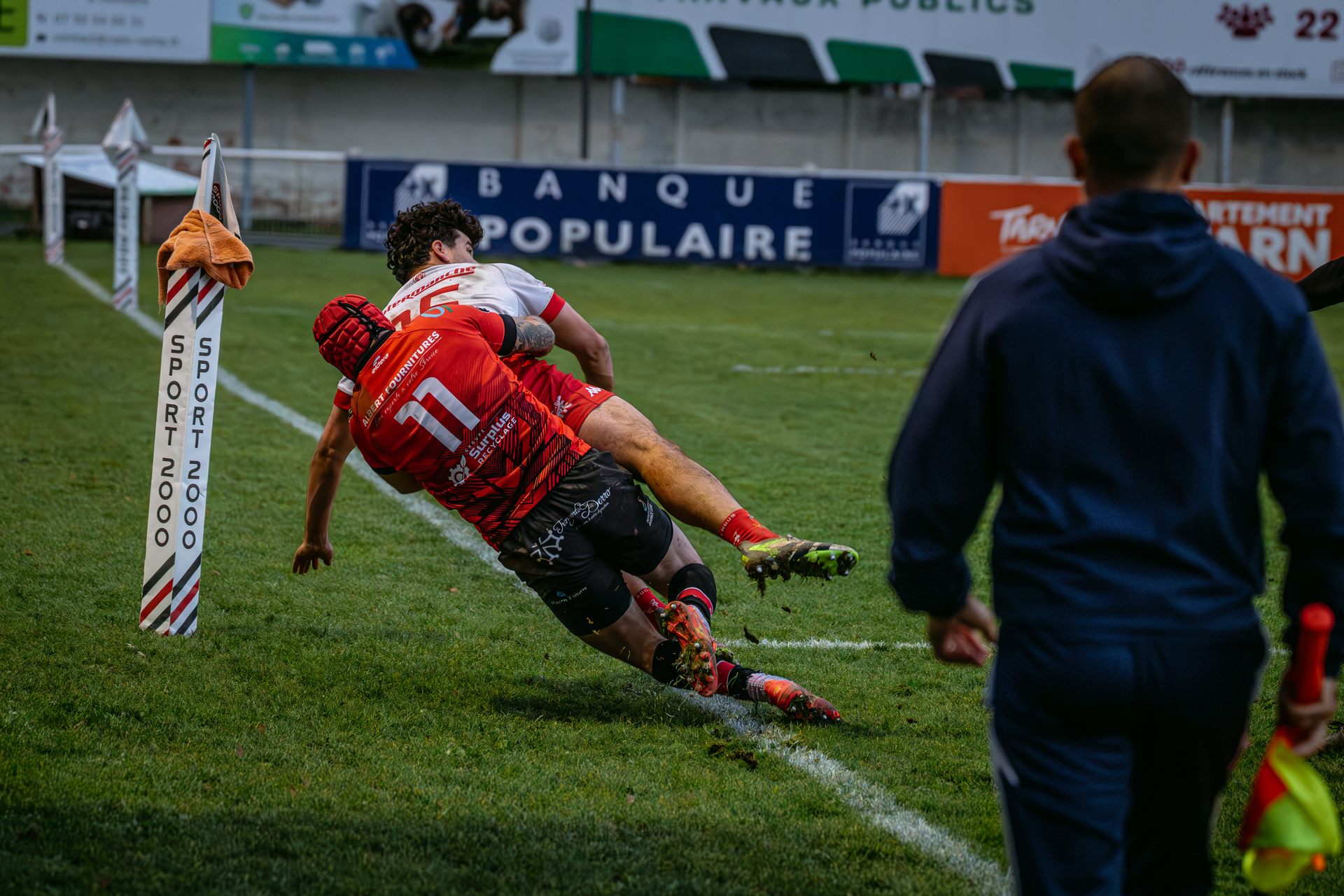 Une course le long de la touche, un raffut qui passe… et voilà le second essai gaillacois. Transformation manquée