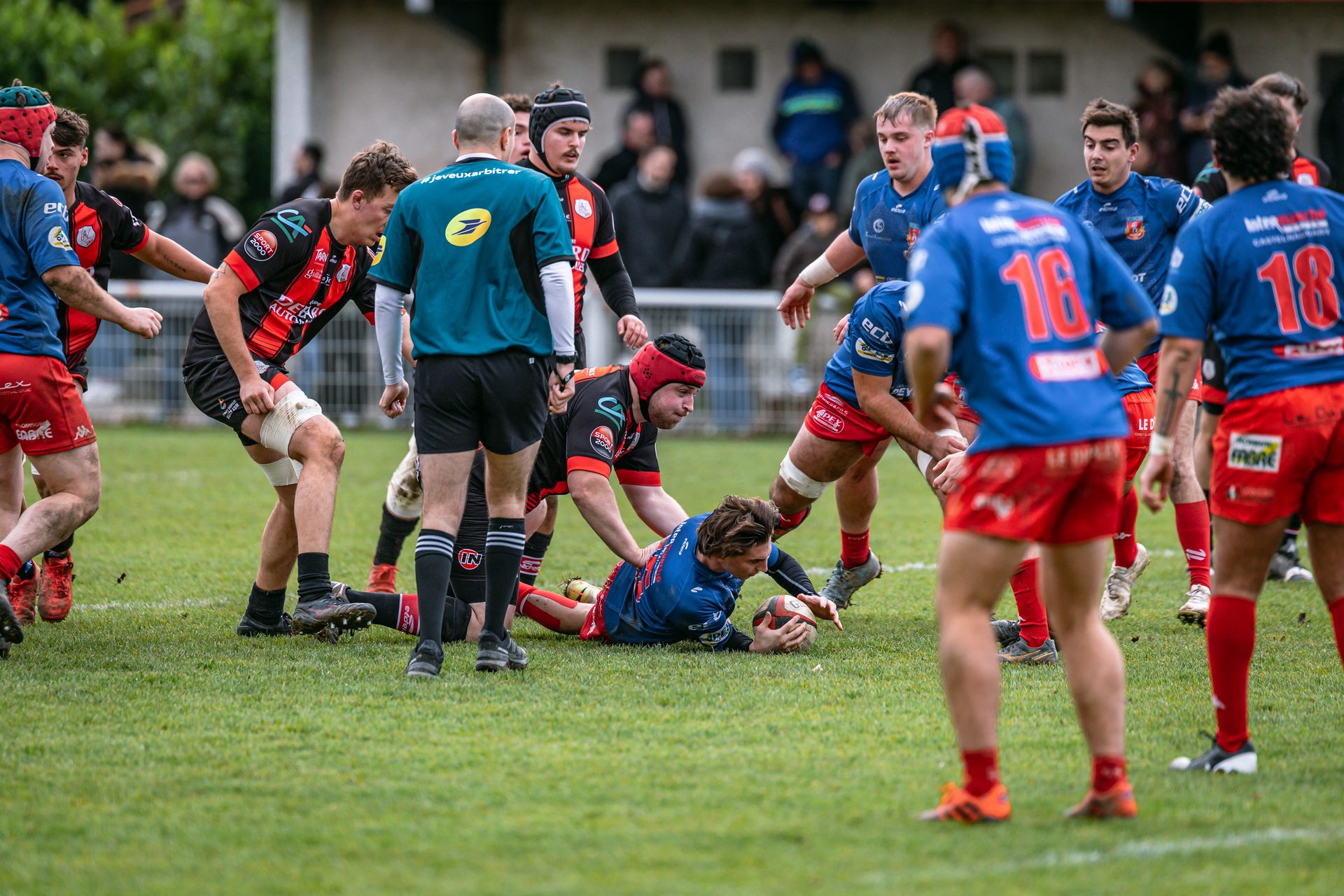 Après un gros travail des avants, le maul s’écroule dans l’en-but.