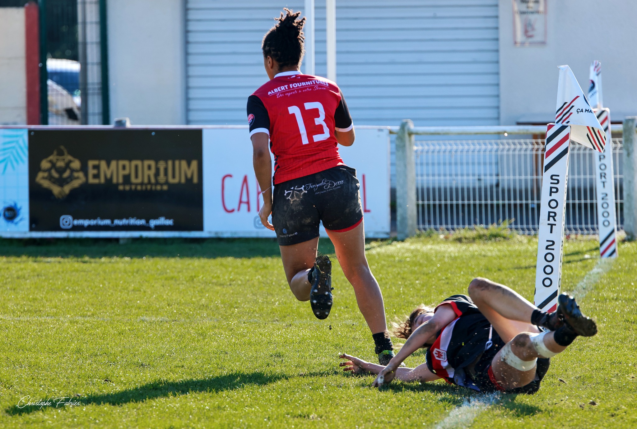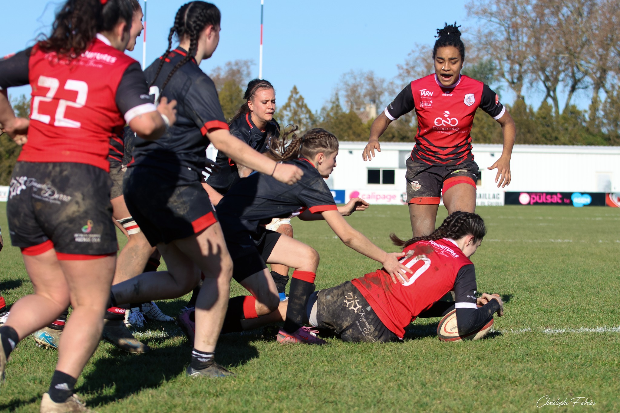 Cinq essais sont inscrits : Manon Roumegas (9’) ; Tessa Nonga Ibaa (17’) ; Léa Vaysse (33’) ; Maëlys Pinsard (51’) ; Justine Escrouzaille (77’), transformé en essai de pénalité