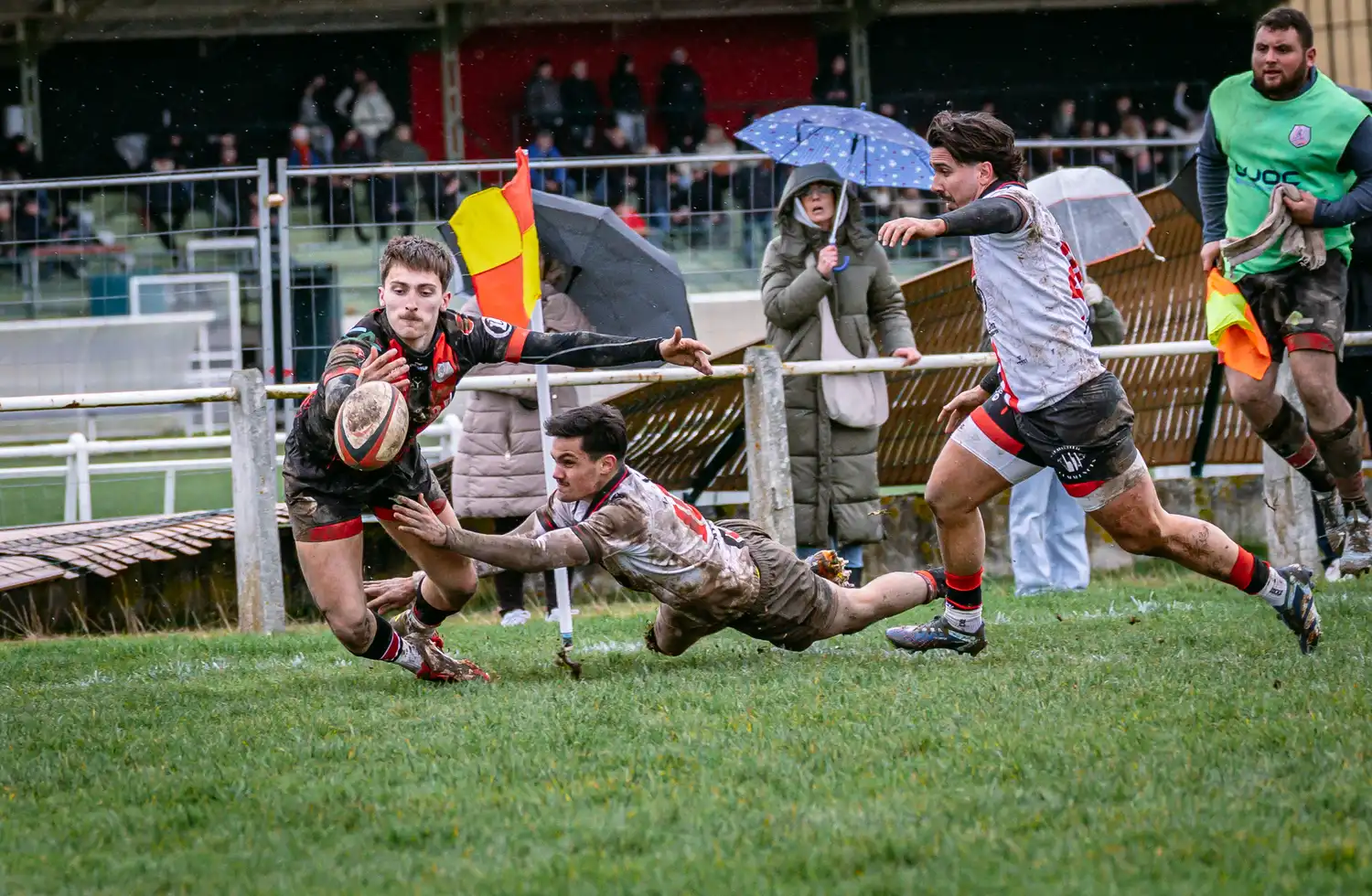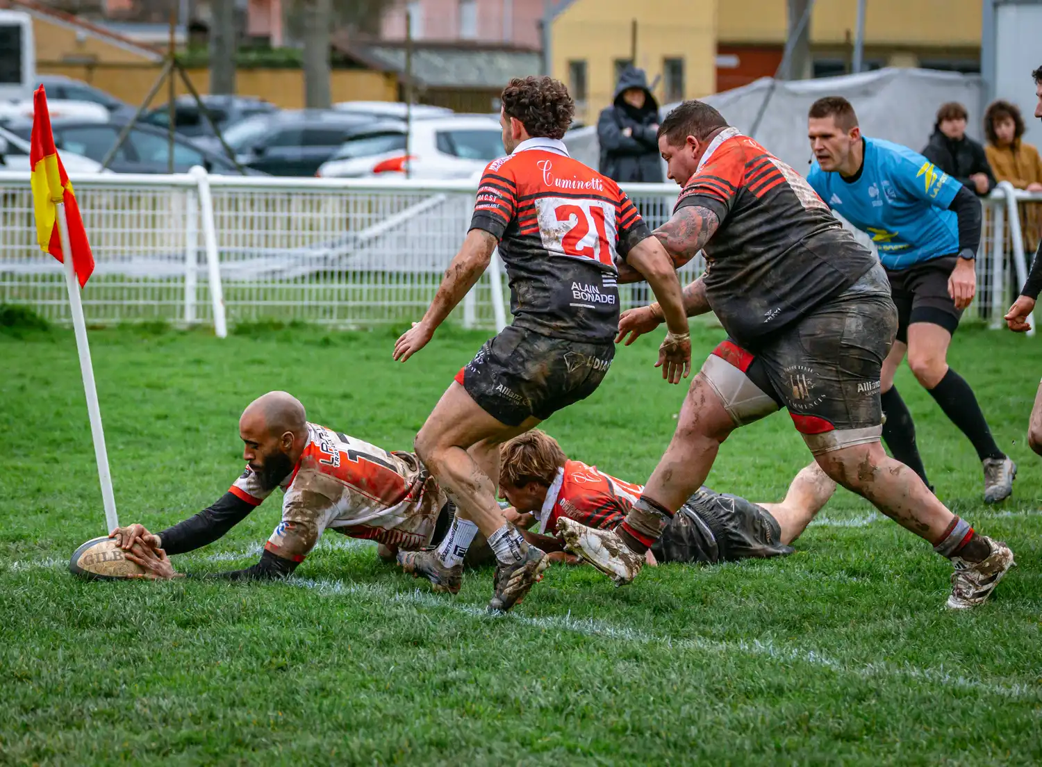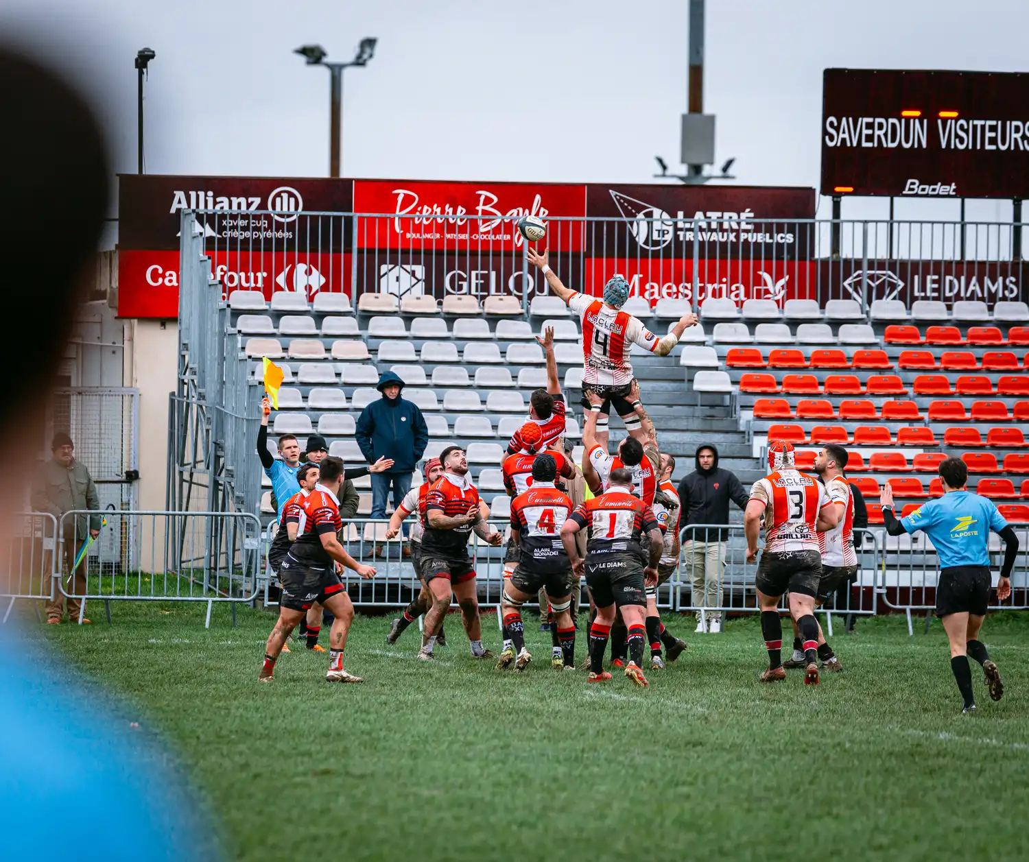 À la 71e minute, Saverdun trouve la faille sur une touche dans nos 22 mètres. Le maul se structure et les locaux prennent l’avantage pour la première fois : 13-10.