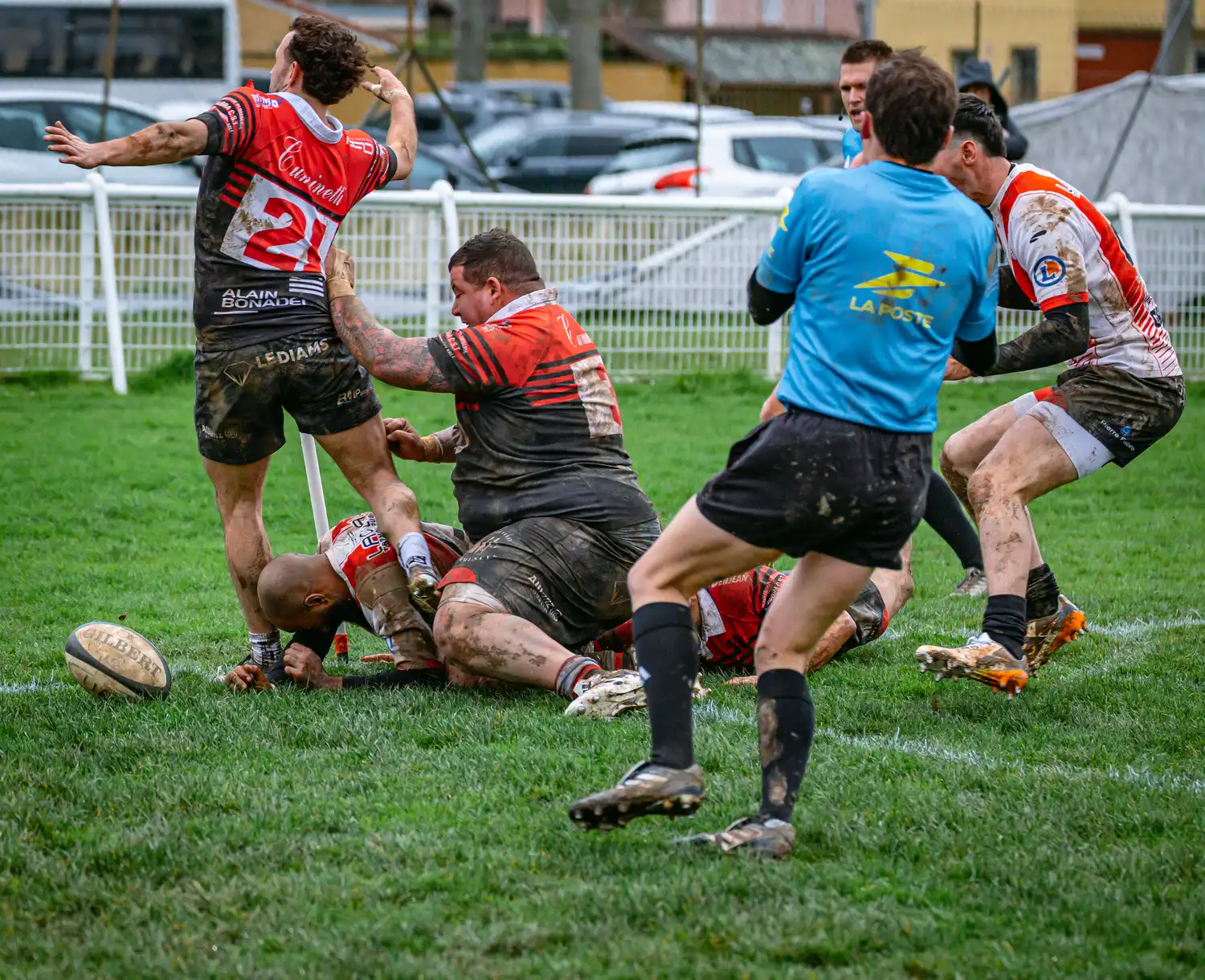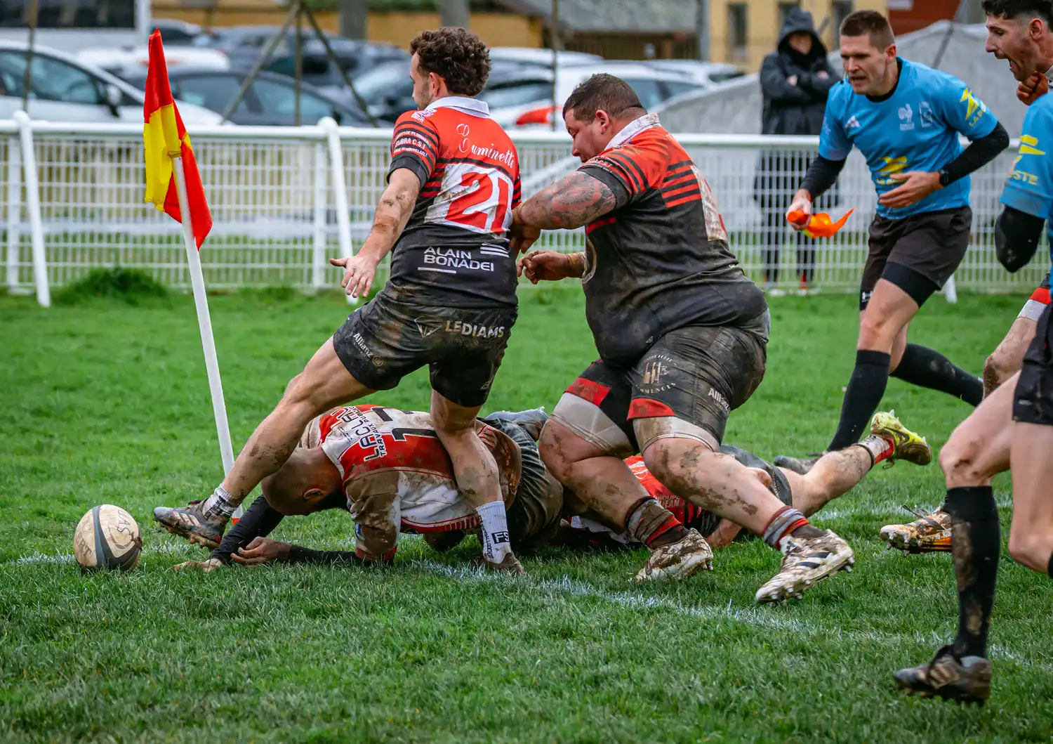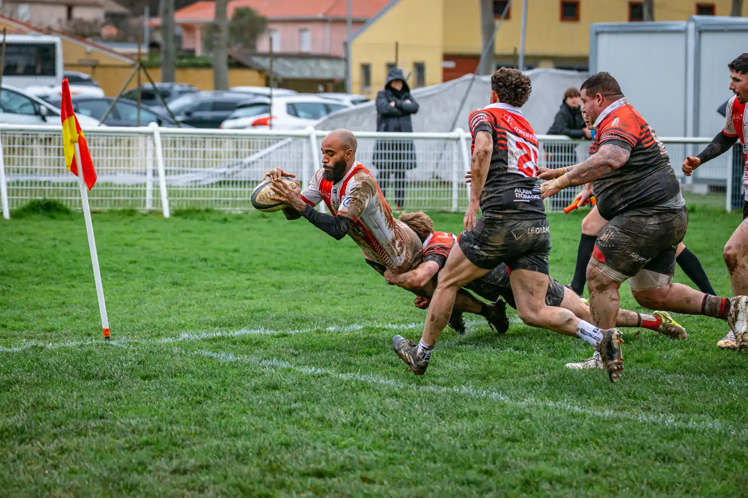 À la 71e minute, Saverdun trouve la faille sur une touche dans nos 22 mètres. Le maul se structure et les locaux prennent l’avantage pour la première fois : 13-10.