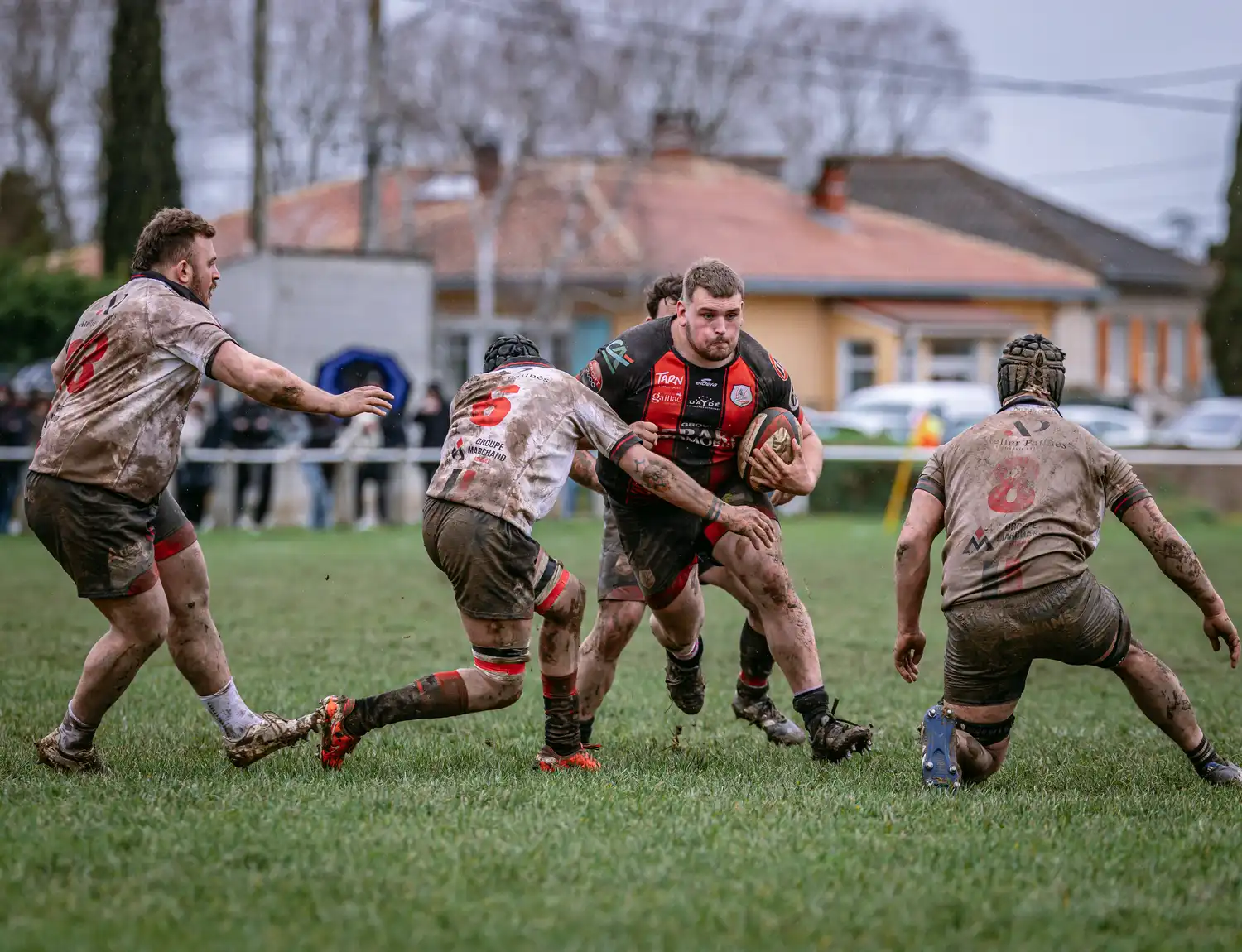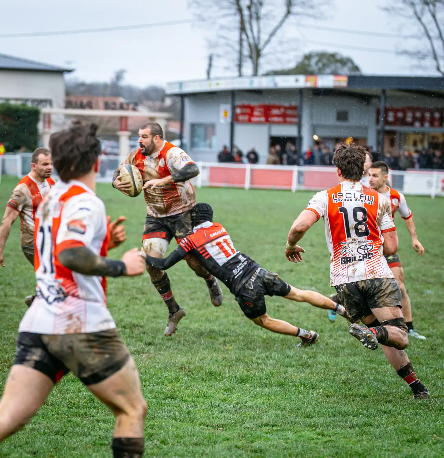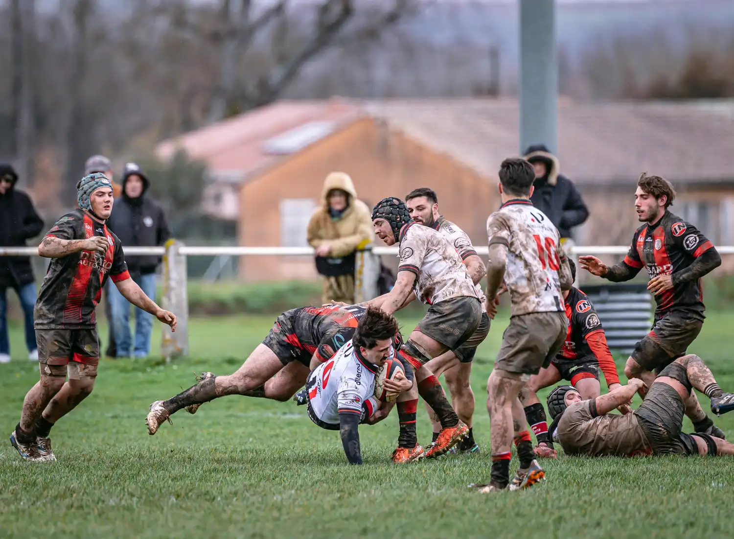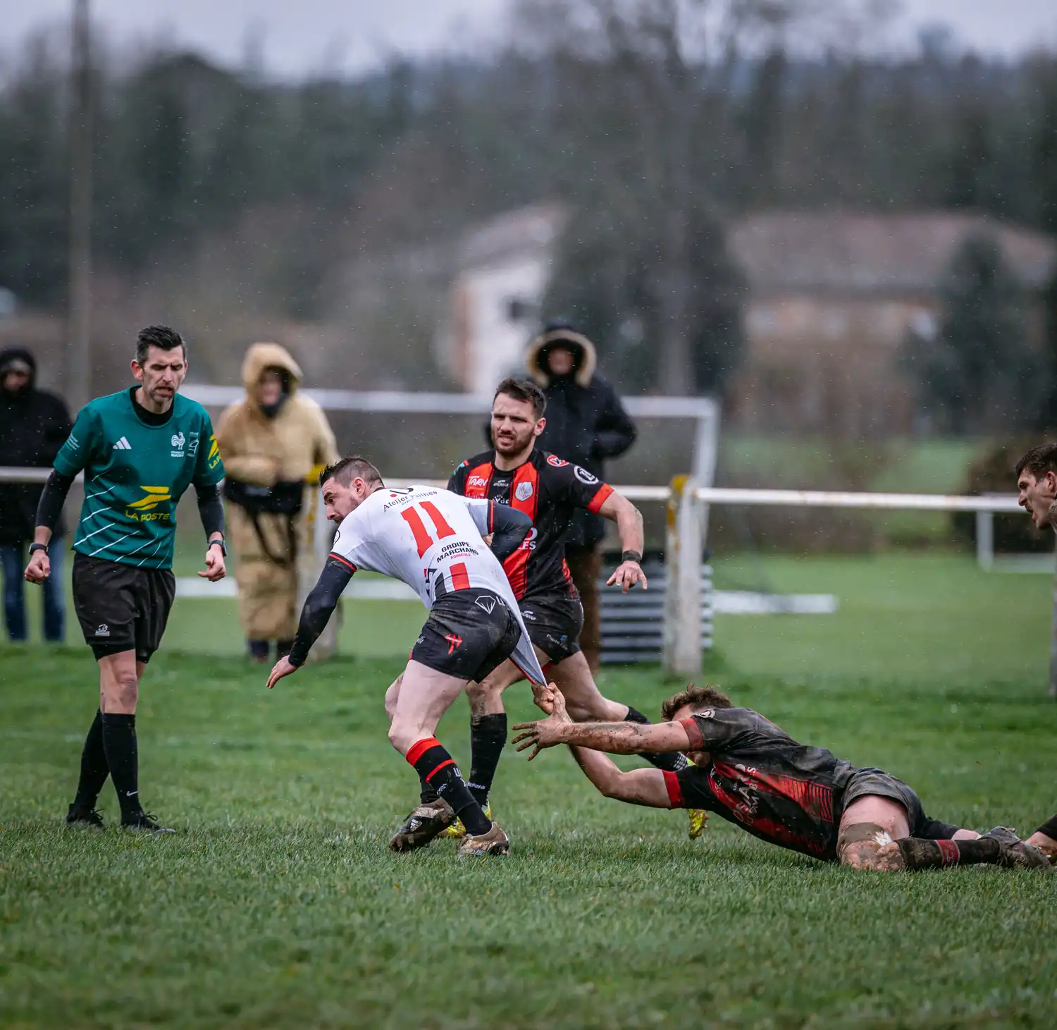 Malgré des conditions météorologiques compliquées ces derniers jours, qui ont contraint la totalité de nos autres sections à voir leurs rencontres reportées pour terrains suspendus, nos séniors, eux, avaient bien rendez-vous en Ariège. Et les conditions n’étaient pas optimales : pluie, vent, terrain gras… tout était réuni pour un vrai combat d’hiver.