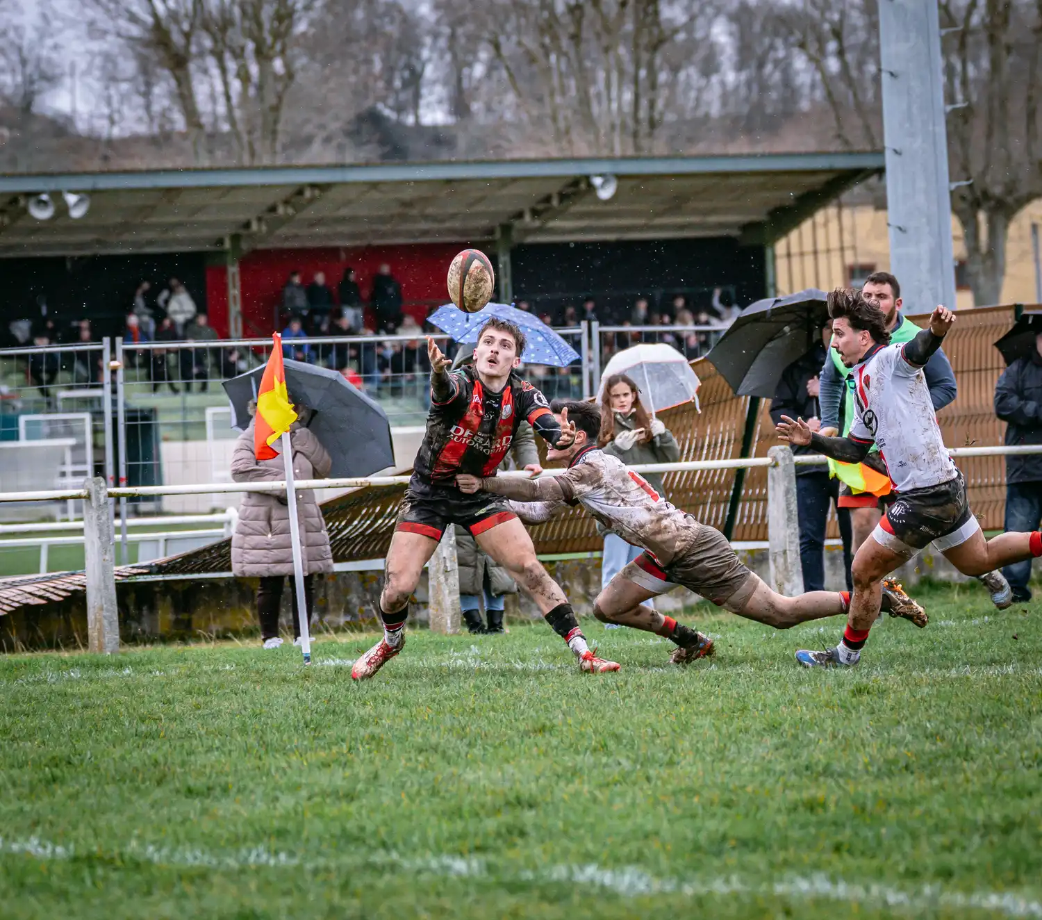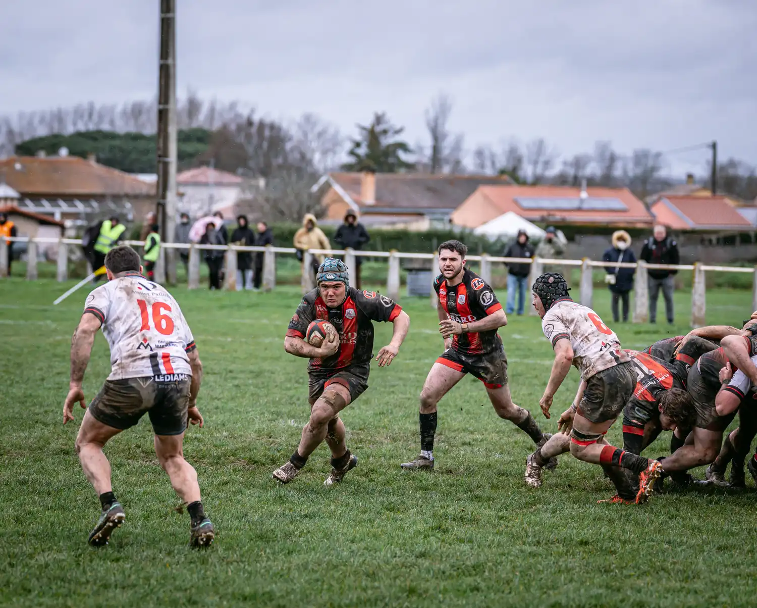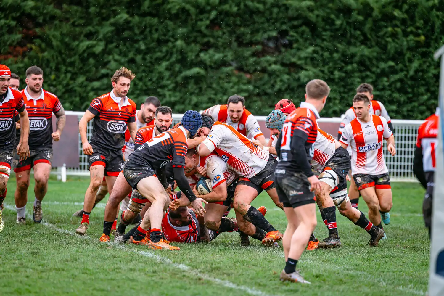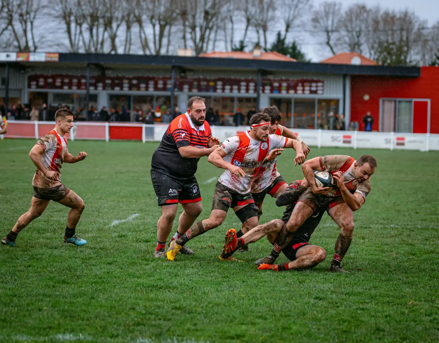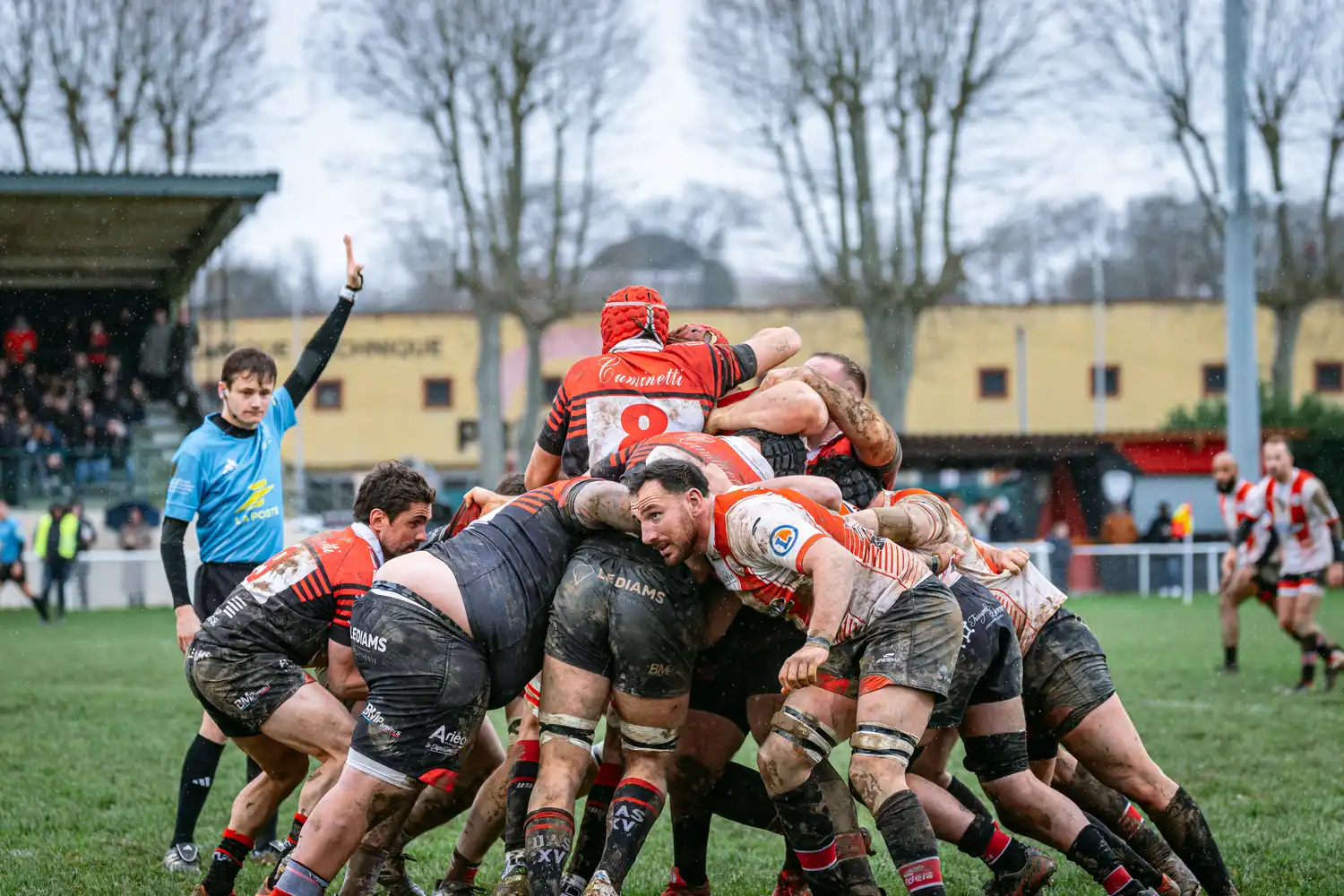 Malgré des conditions météorologiques compliquées ces derniers jours, qui ont contraint la totalité de nos autres sections à voir leurs rencontres reportées pour terrains suspendus, nos séniors, eux, avaient bien rendez-vous en Ariège. Et les conditions n’étaient pas optimales : pluie, vent, terrain gras… tout était réuni pour un vrai combat d’hiver.