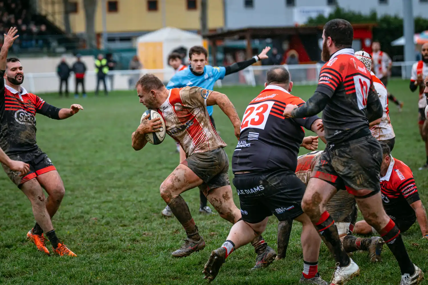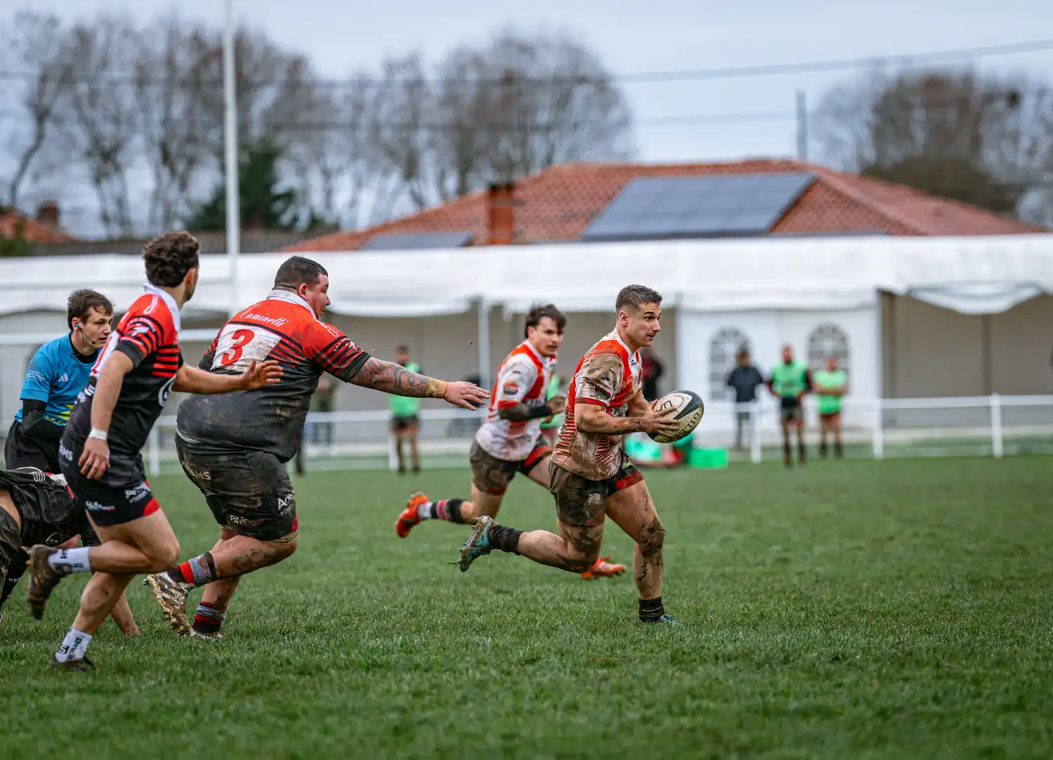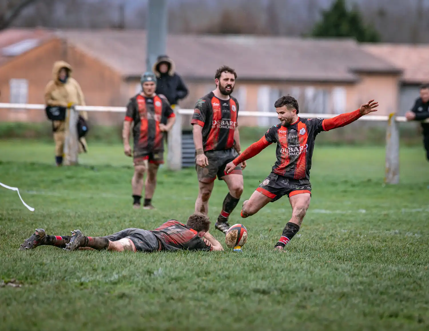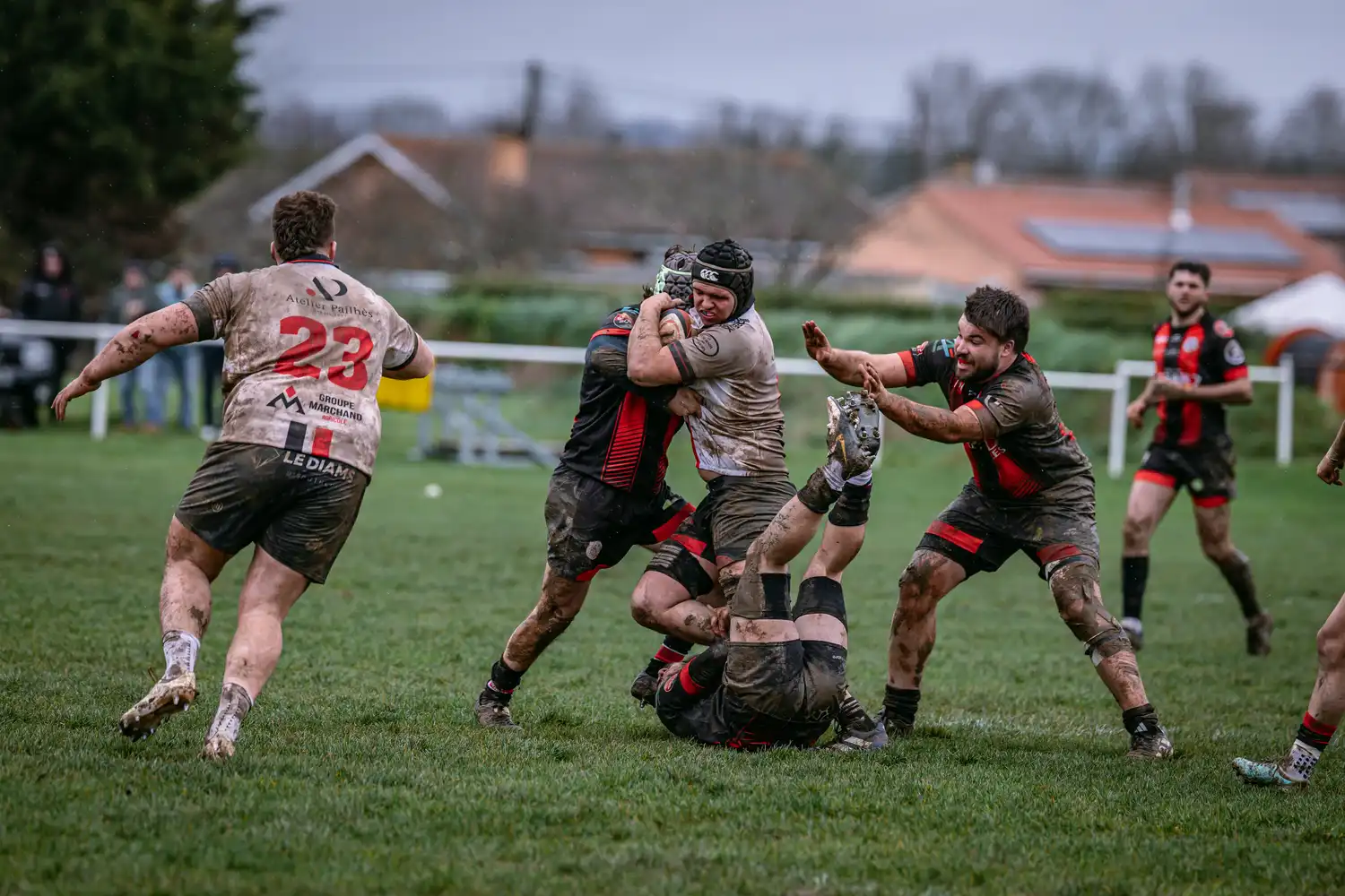 Malgré des conditions météorologiques compliquées ces derniers jours, qui ont contraint la totalité de nos autres sections à voir leurs rencontres reportées pour terrains suspendus, nos séniors, eux, avaient bien rendez-vous en Ariège. Et les conditions n’étaient pas optimales : pluie, vent, terrain gras… tout était réuni pour un vrai combat d’hiver.